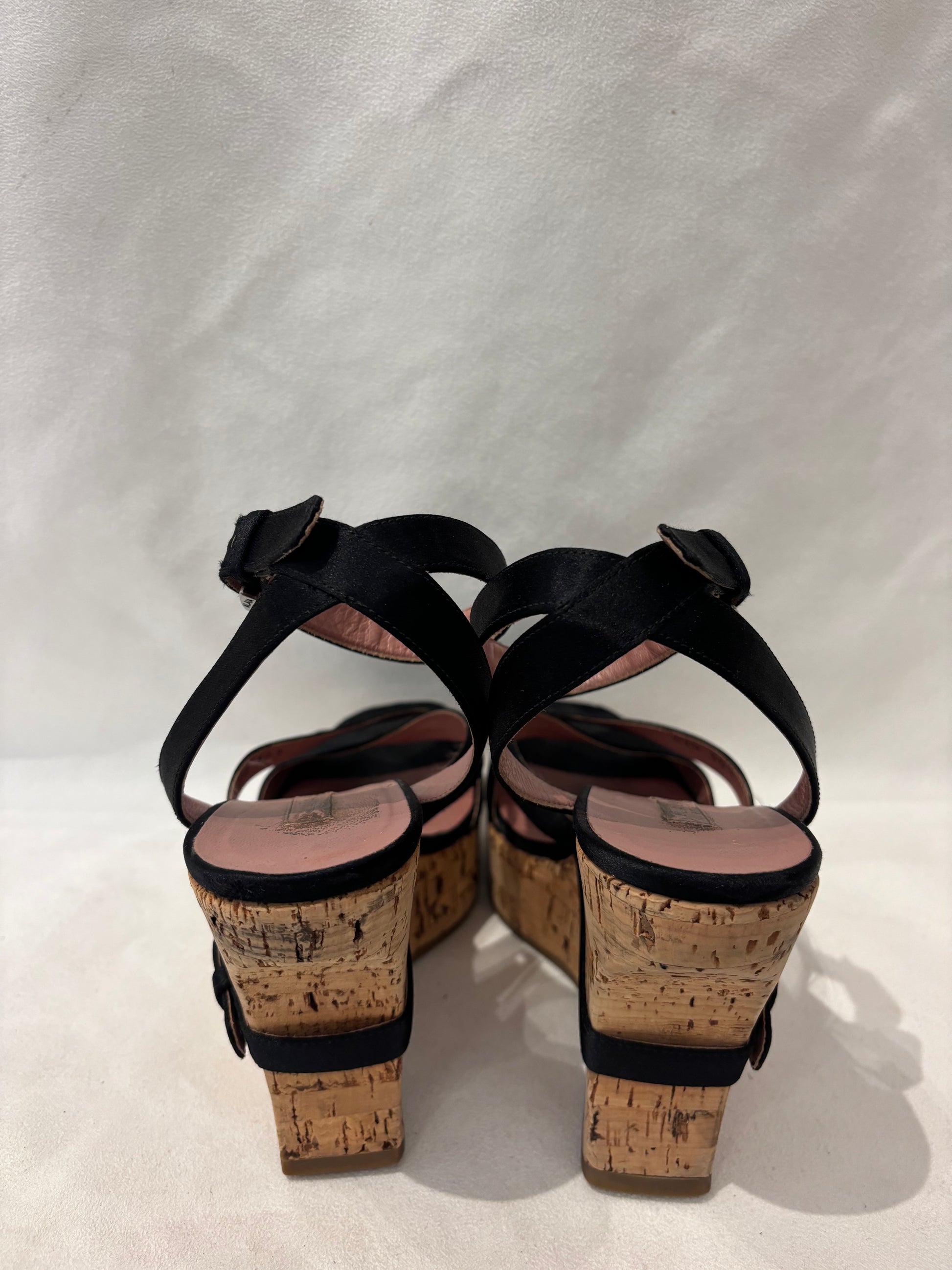 Alaia Black Silk Cross Strap Cork Wedges Size 38.5