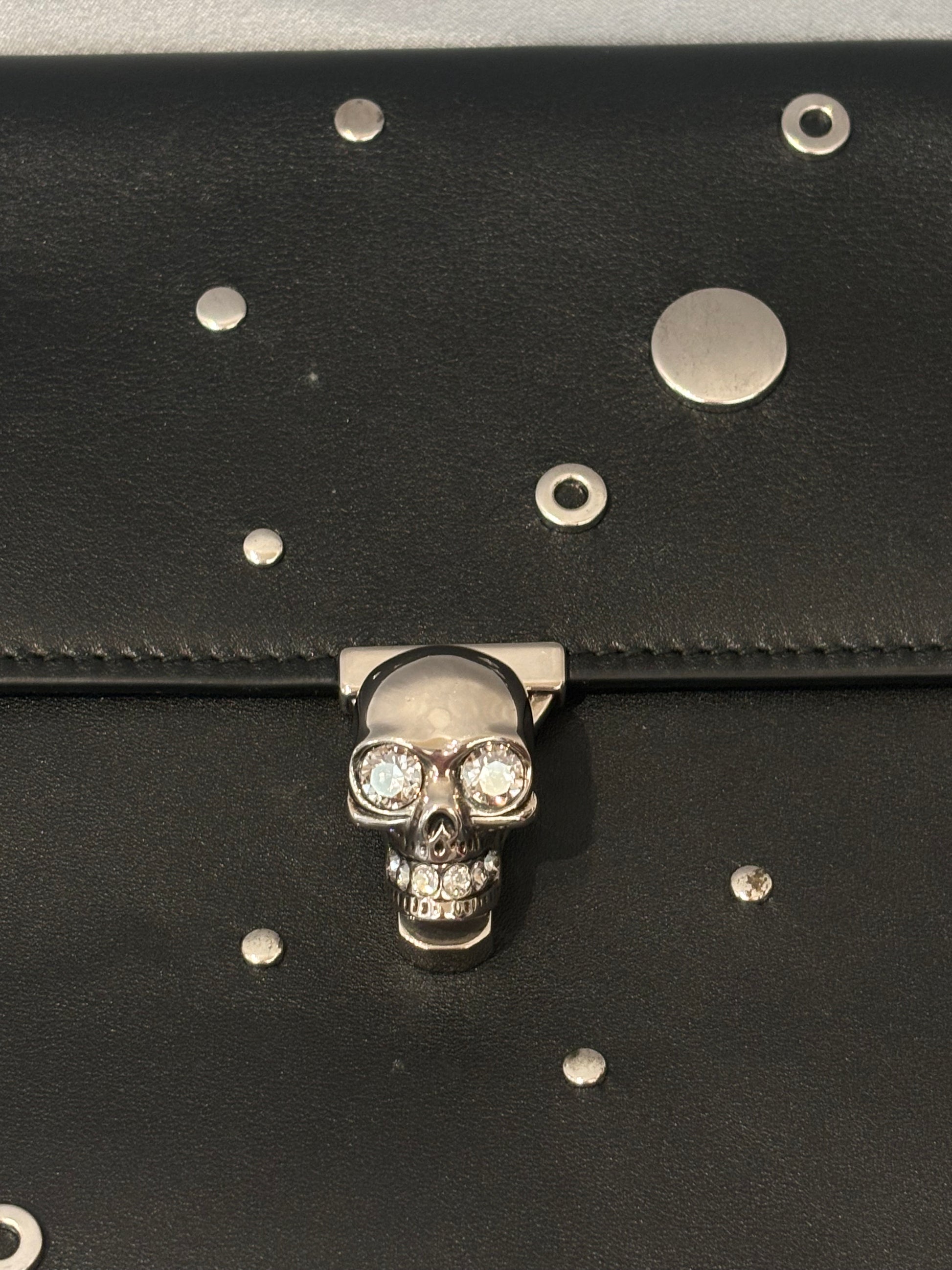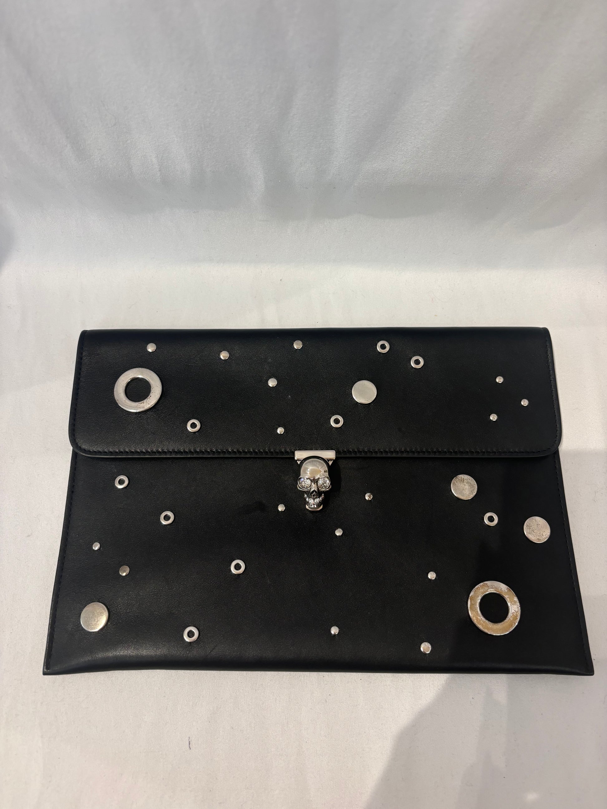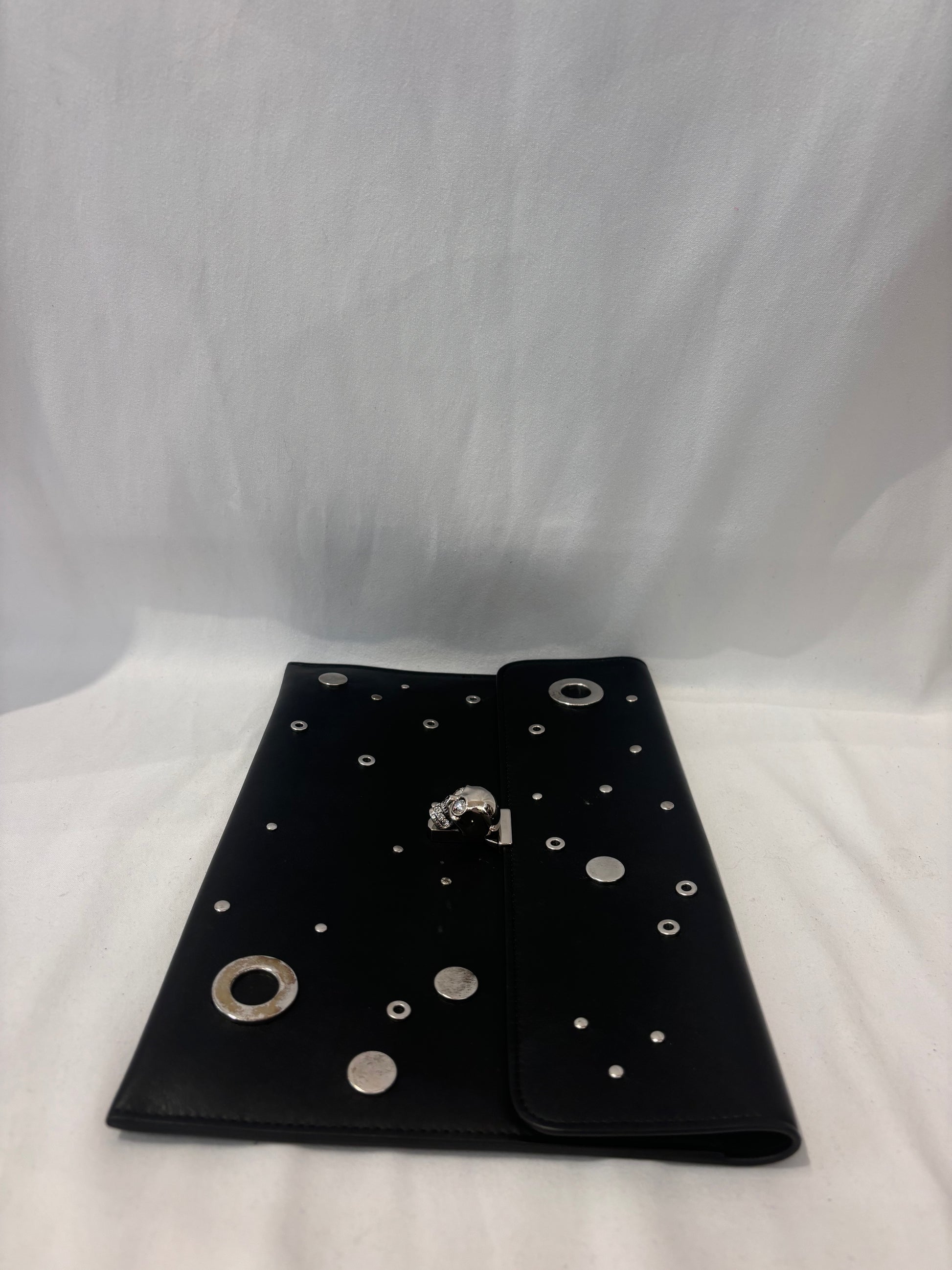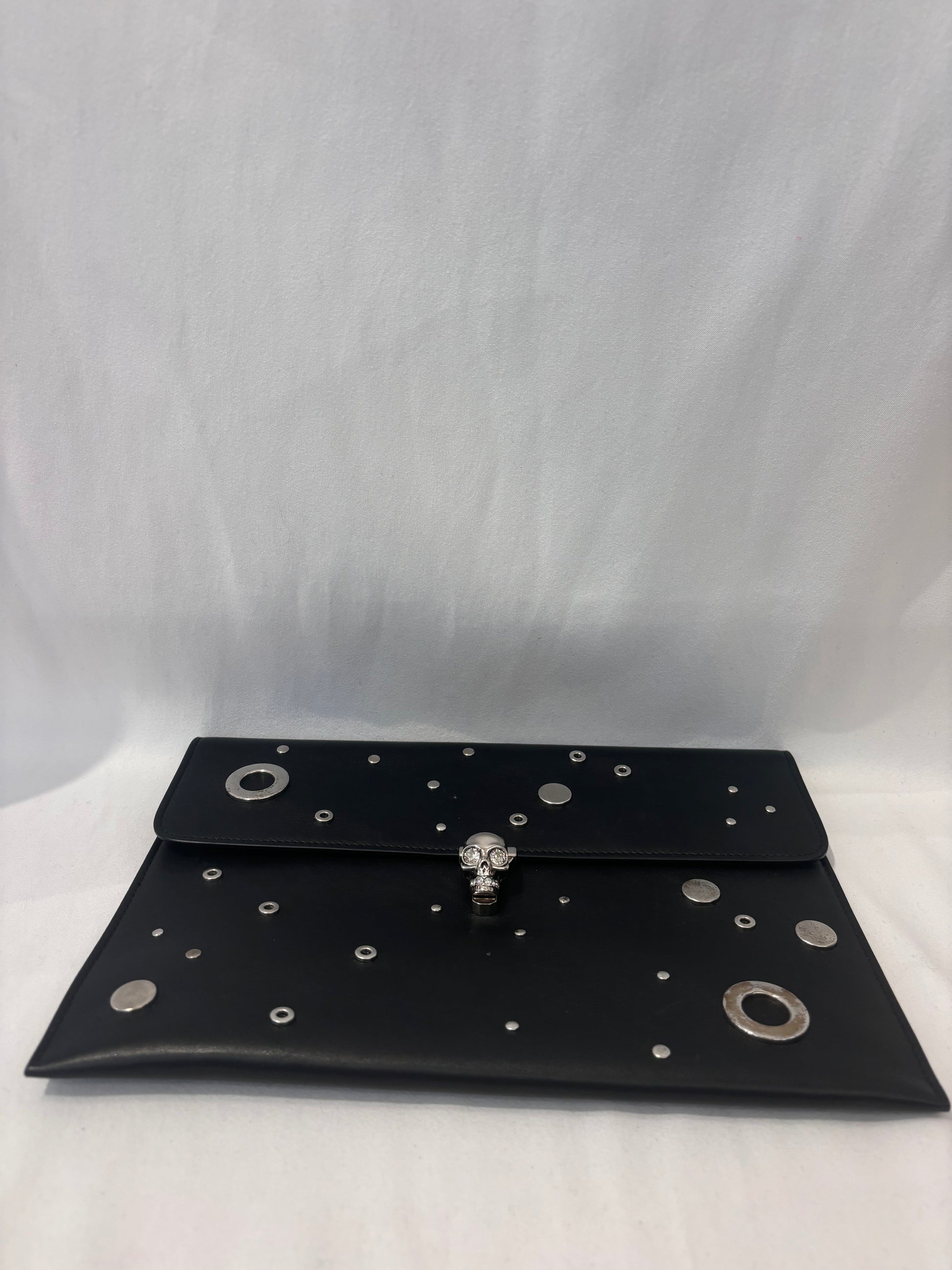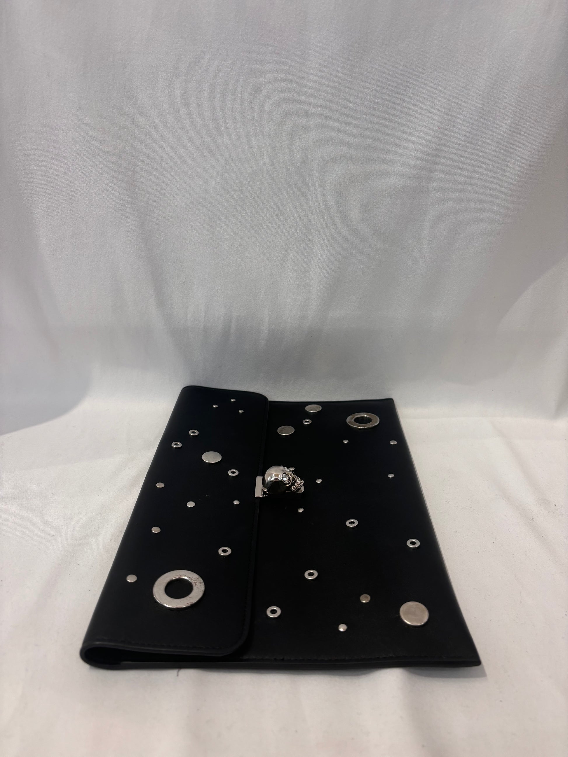 Alexander McQueen Black Clutch with Silver Grommets and Silver Skull