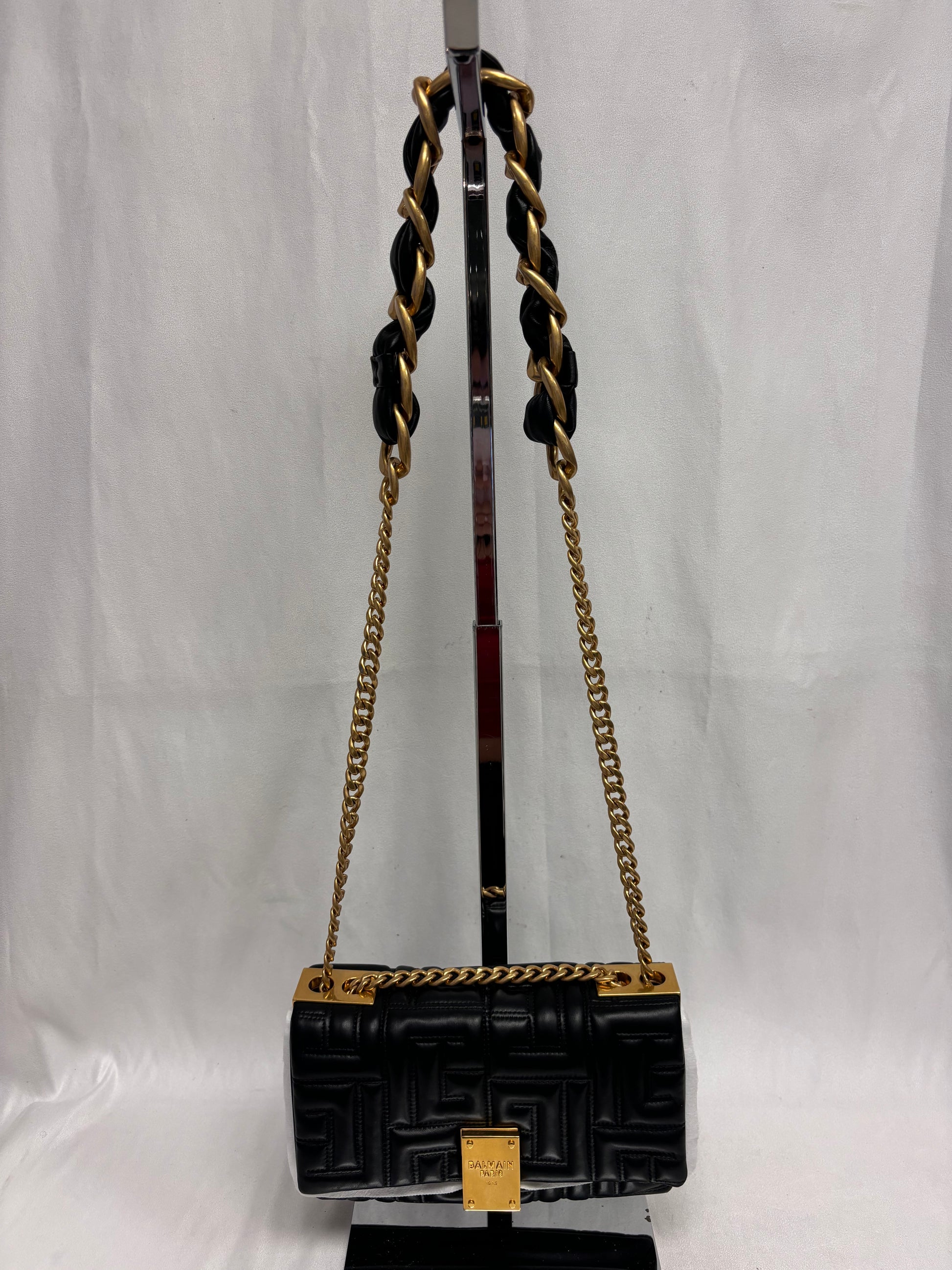 Balmain Small Black 1945 Quilted Crossbody Bag
