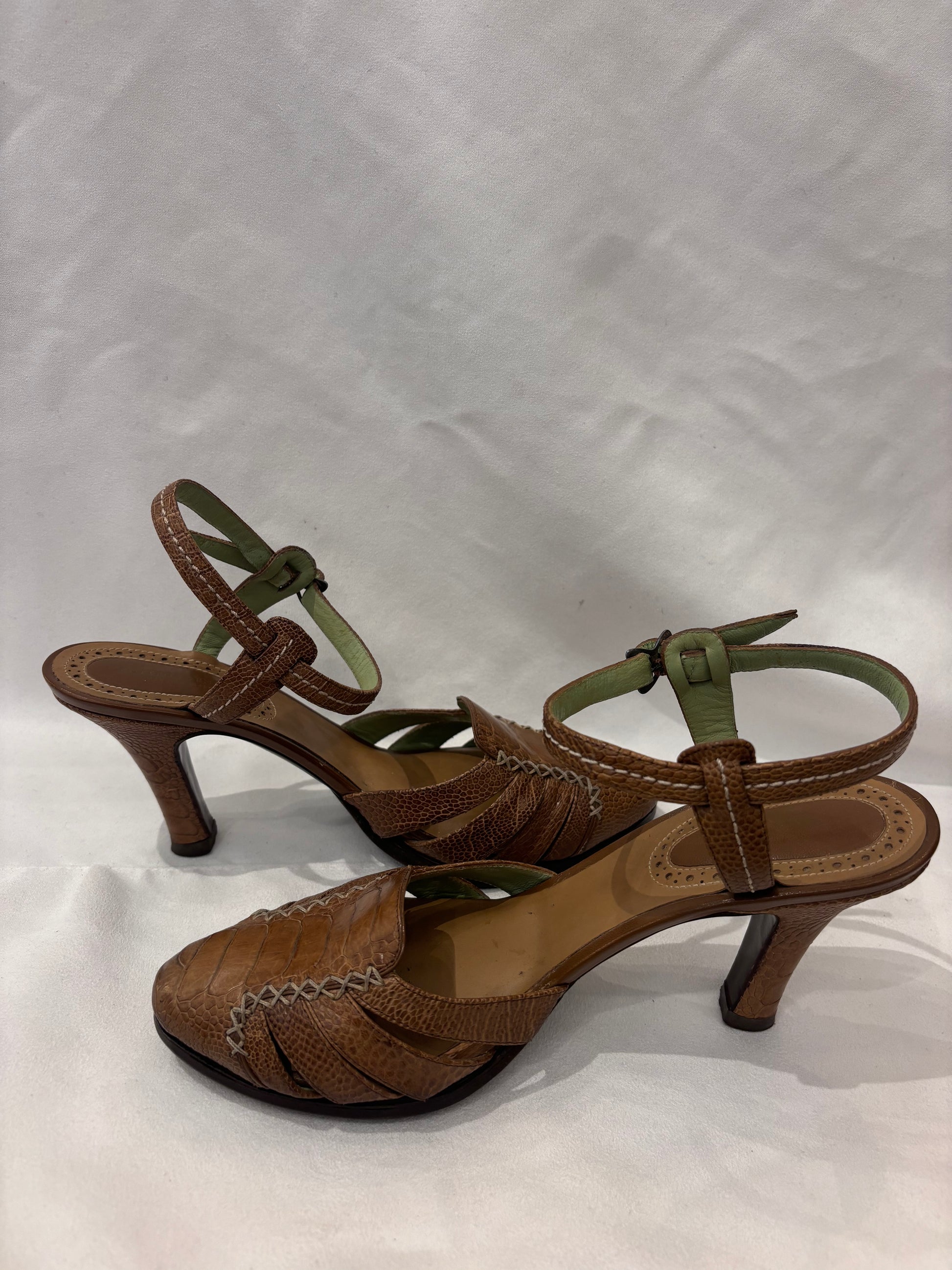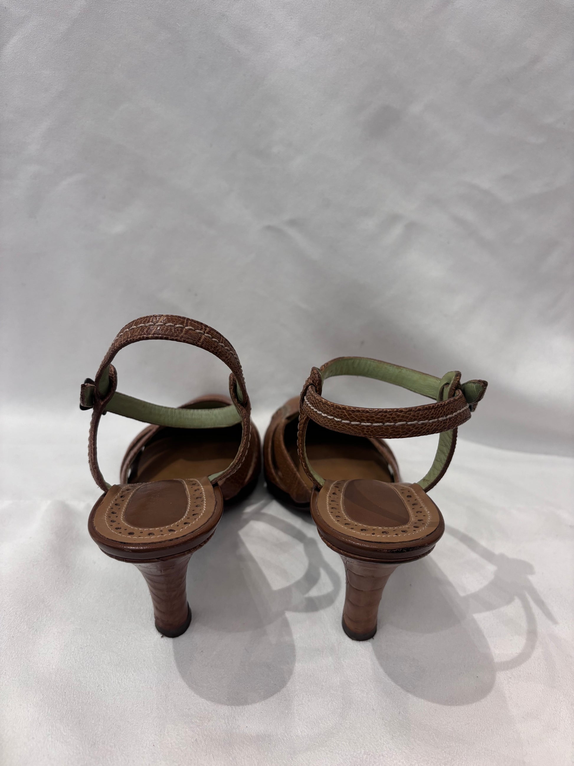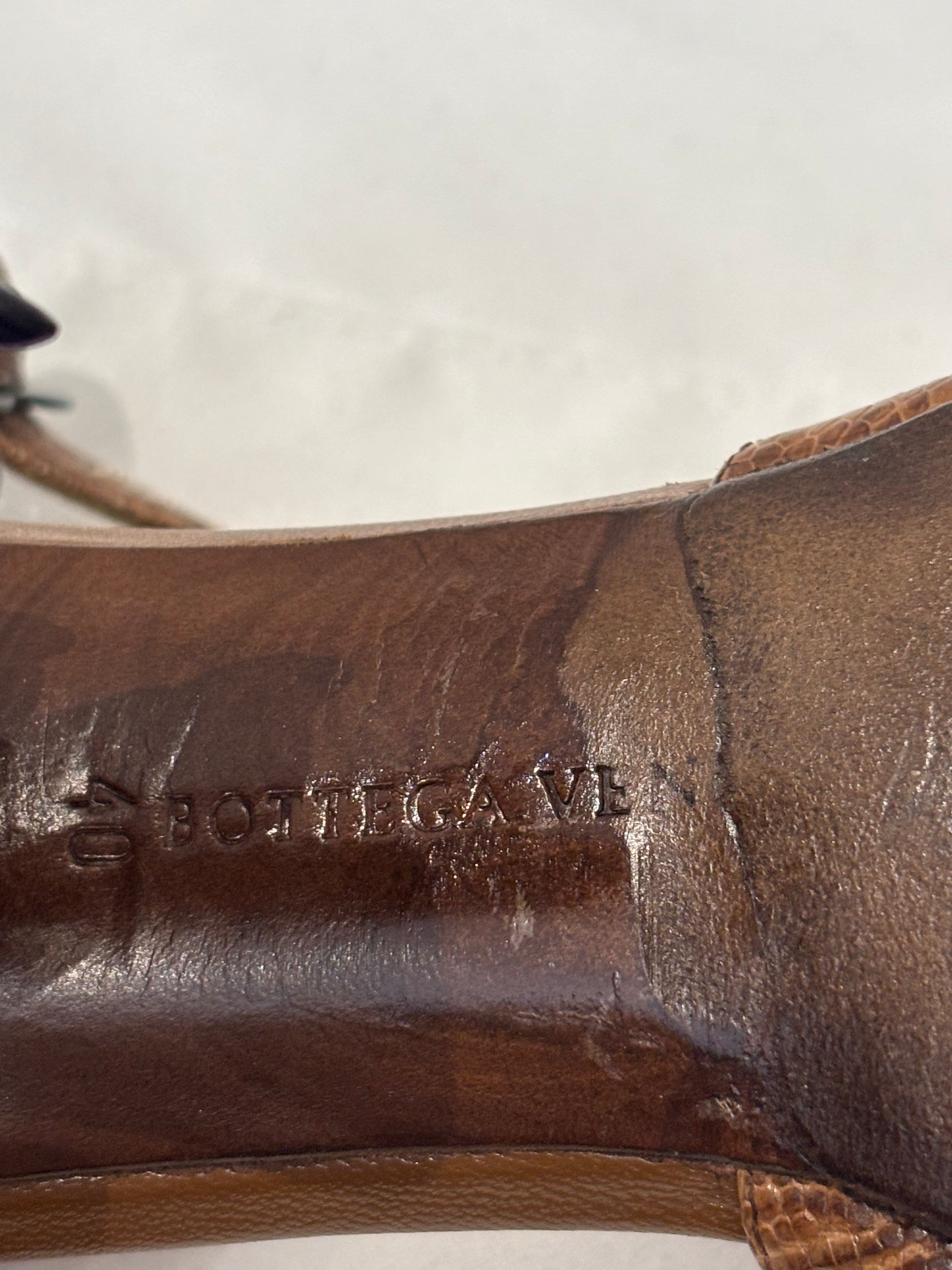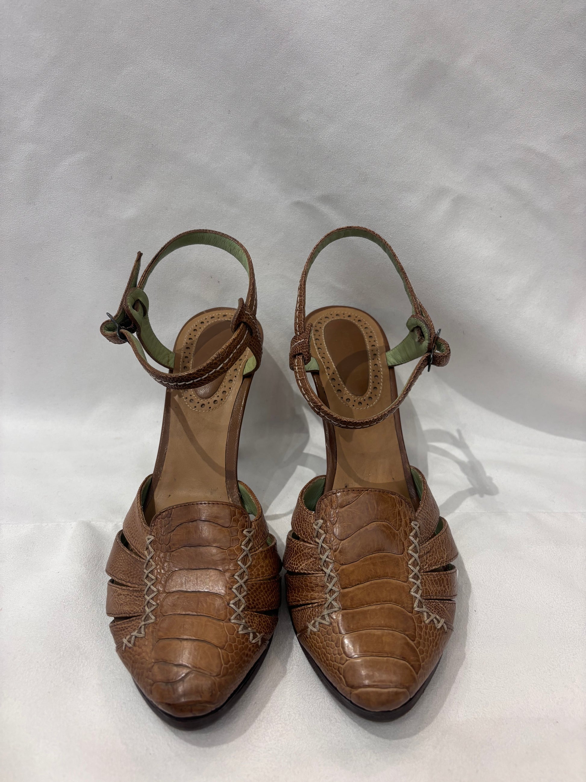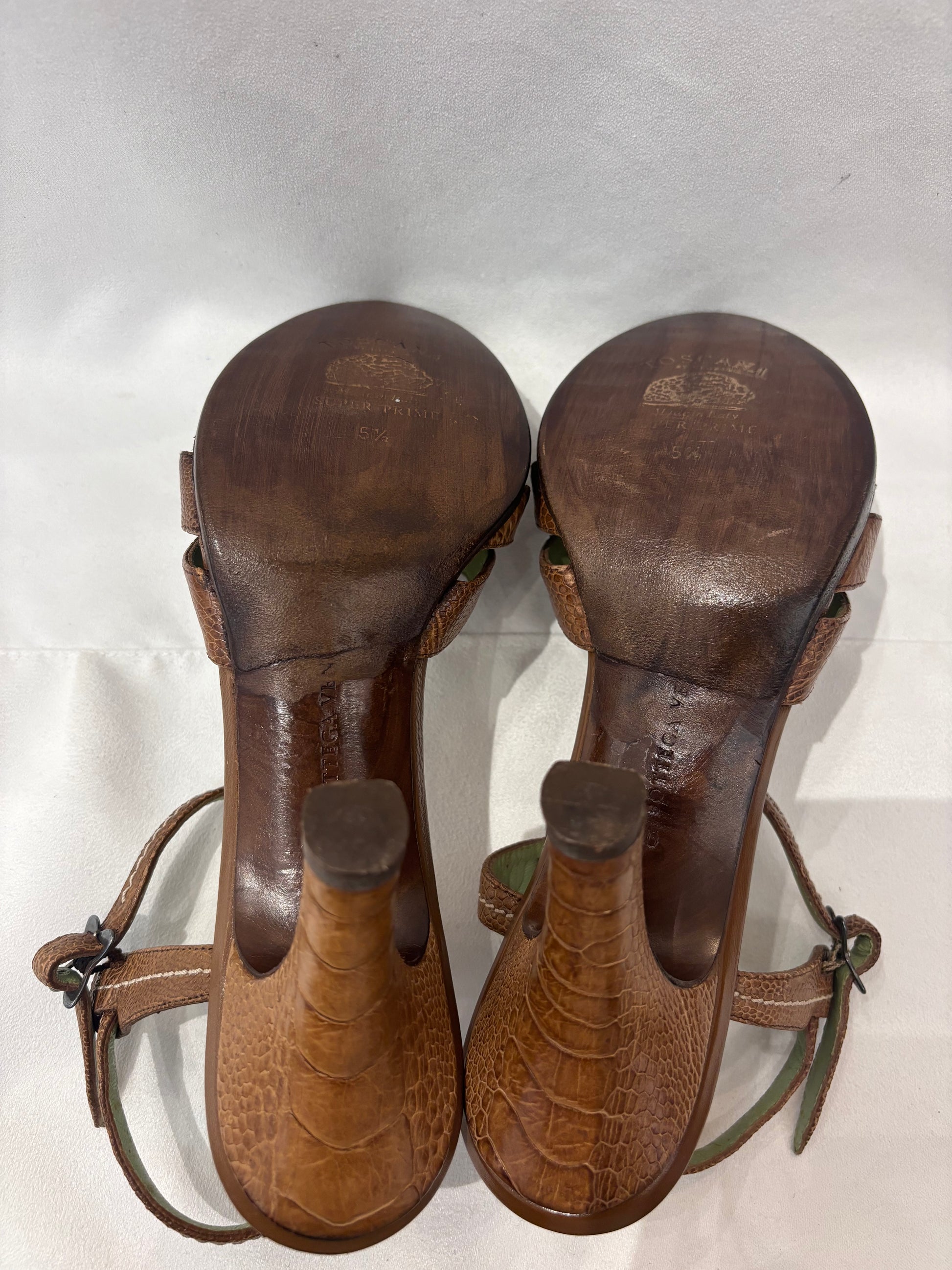 Bottega Veneta Brown Croc Embossed Pump with Ankle Strap Size 40