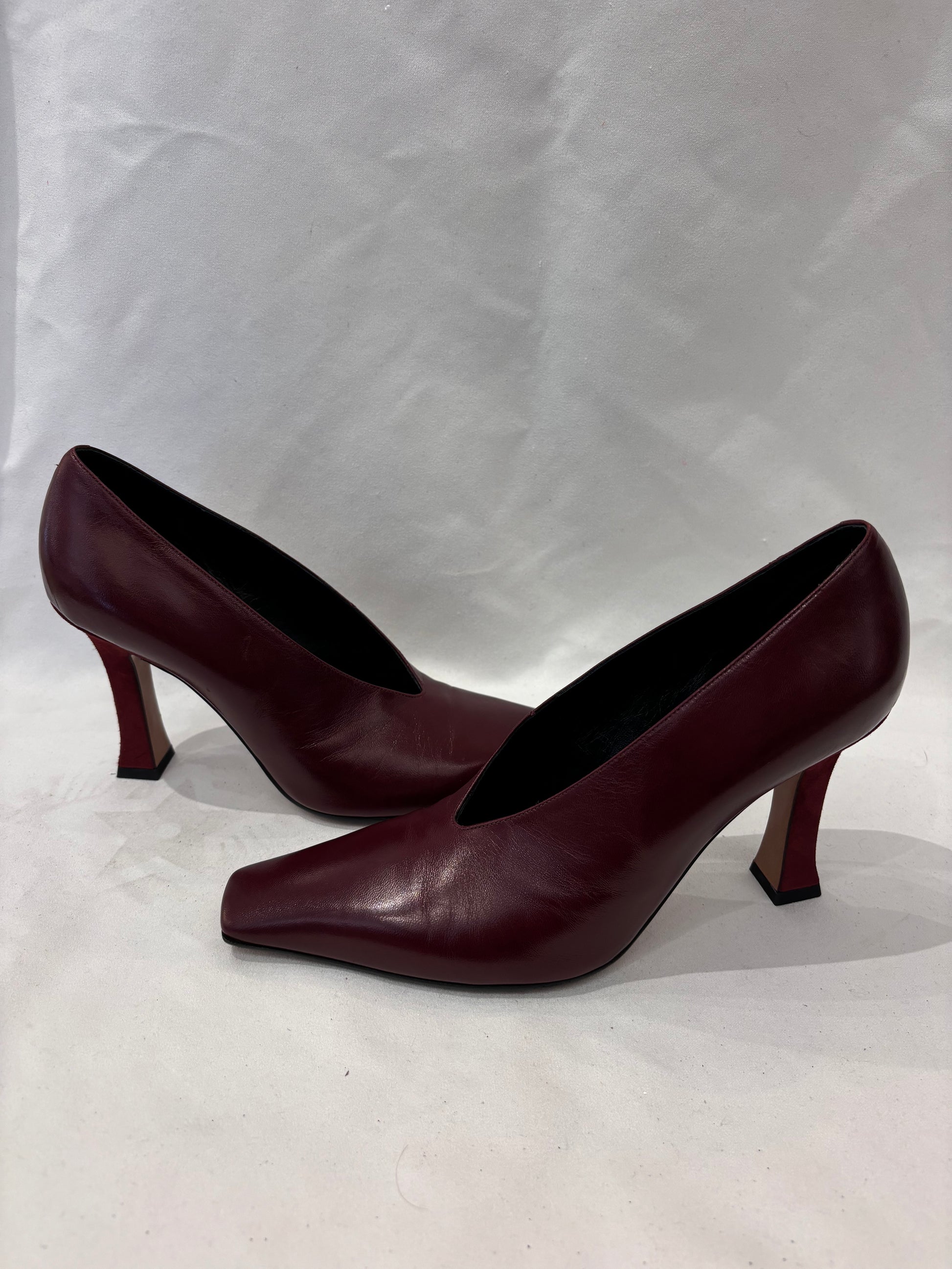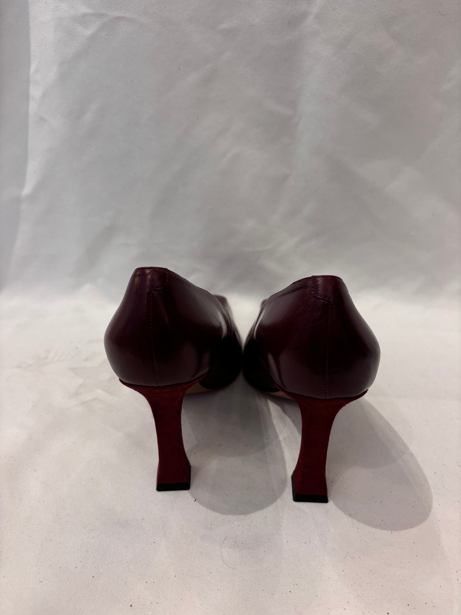 Celine Burgundy Square Toe Pump Size 37