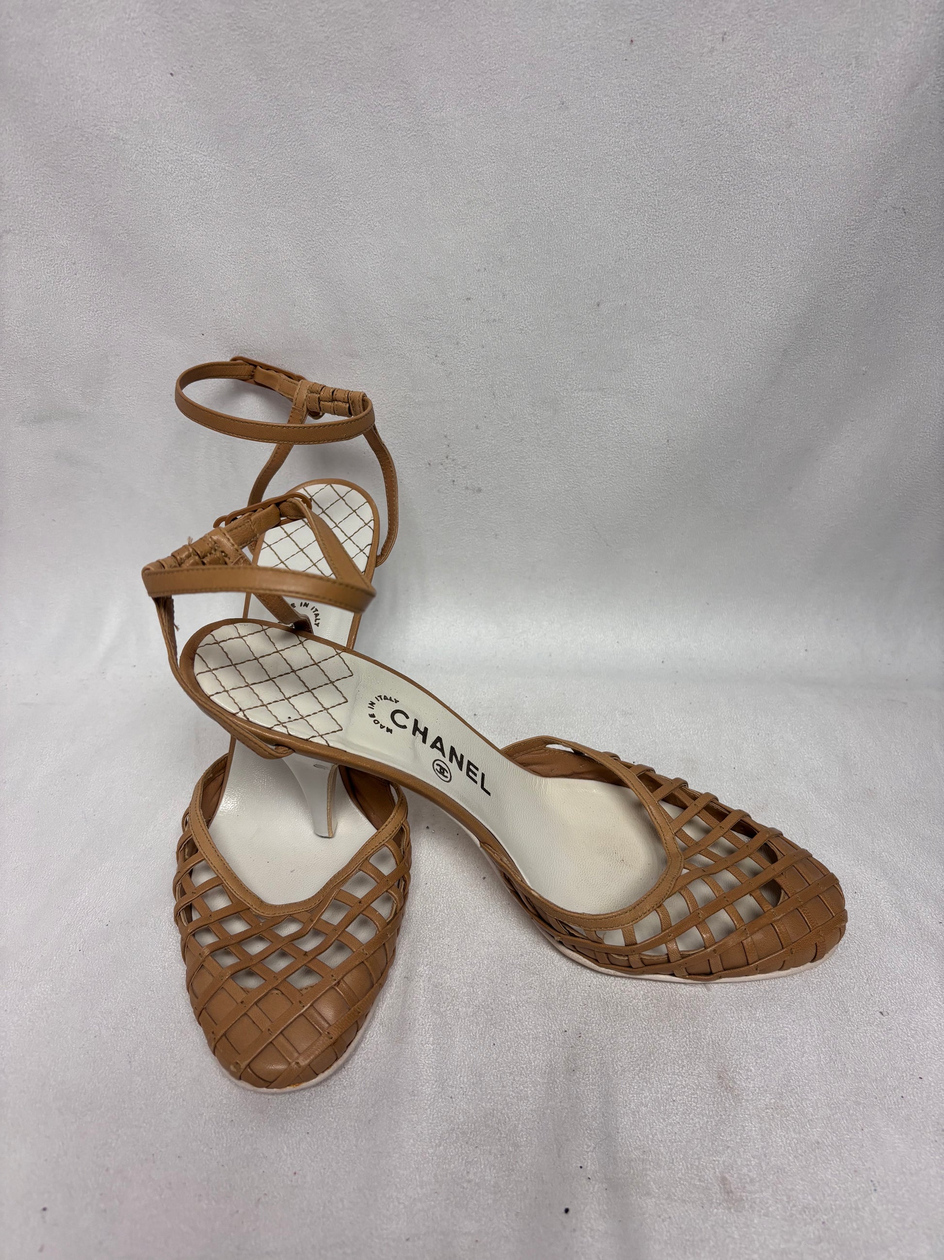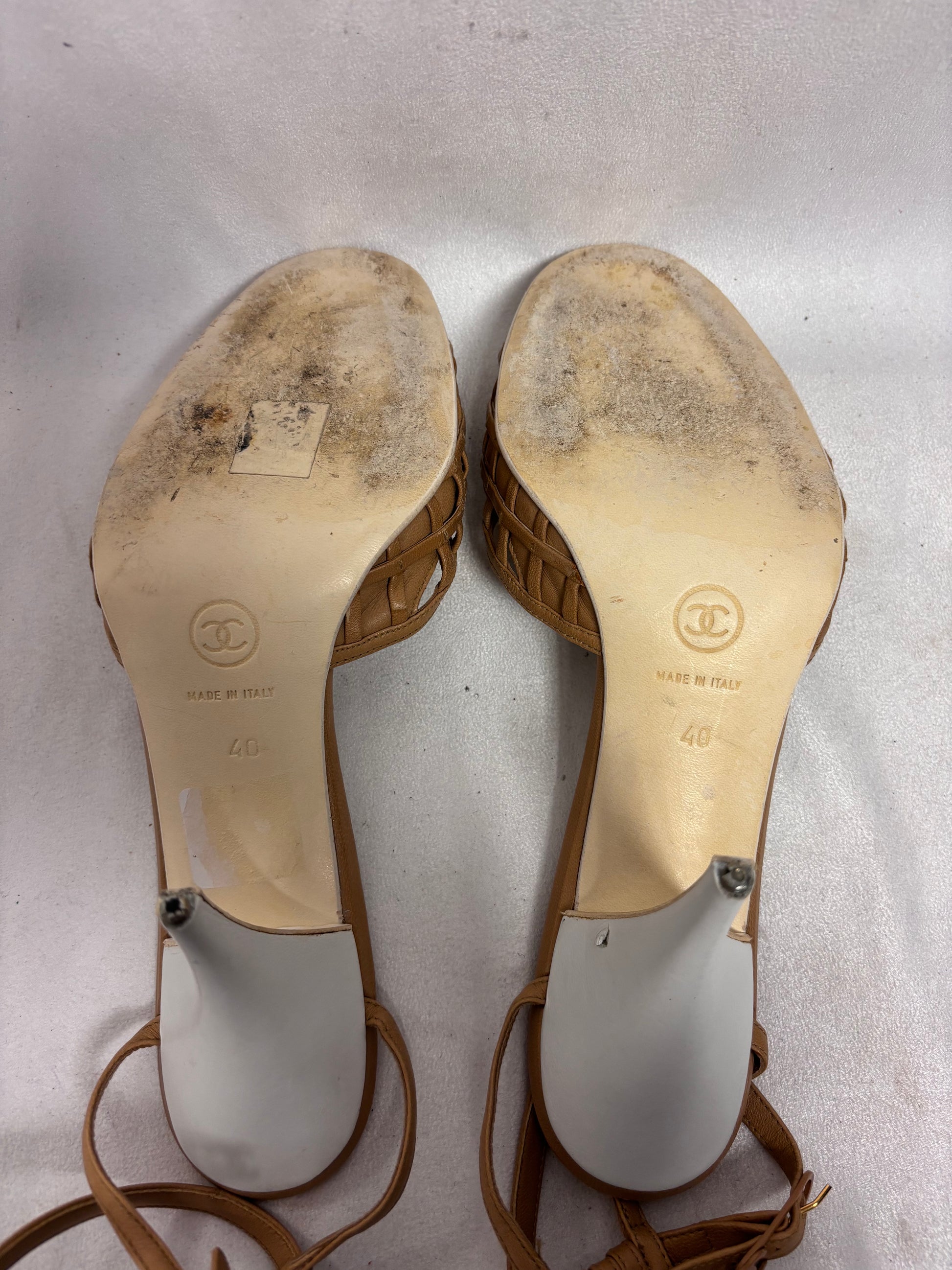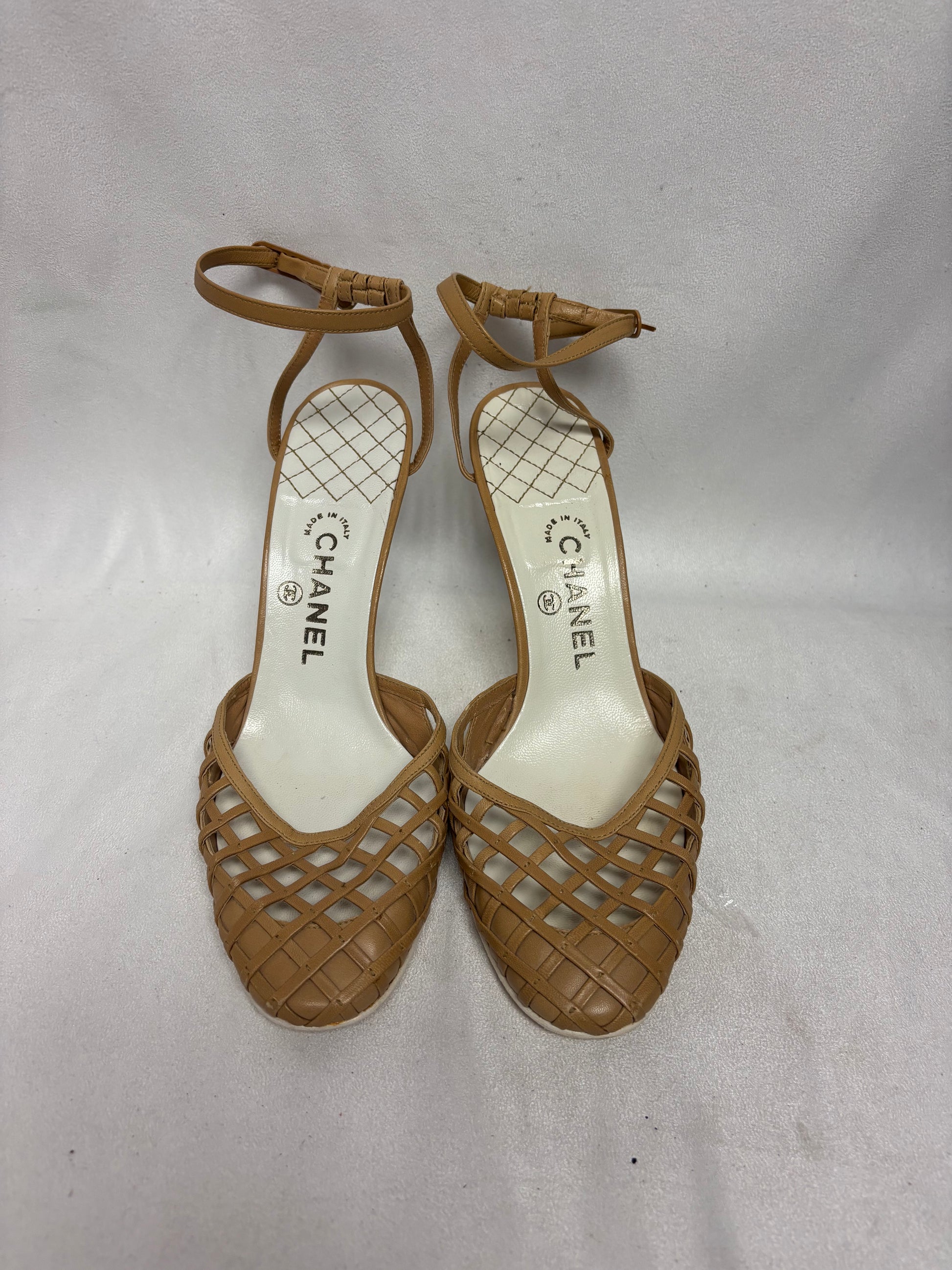 Chanel Beige Woven Pump with Ankle Strap Size 40