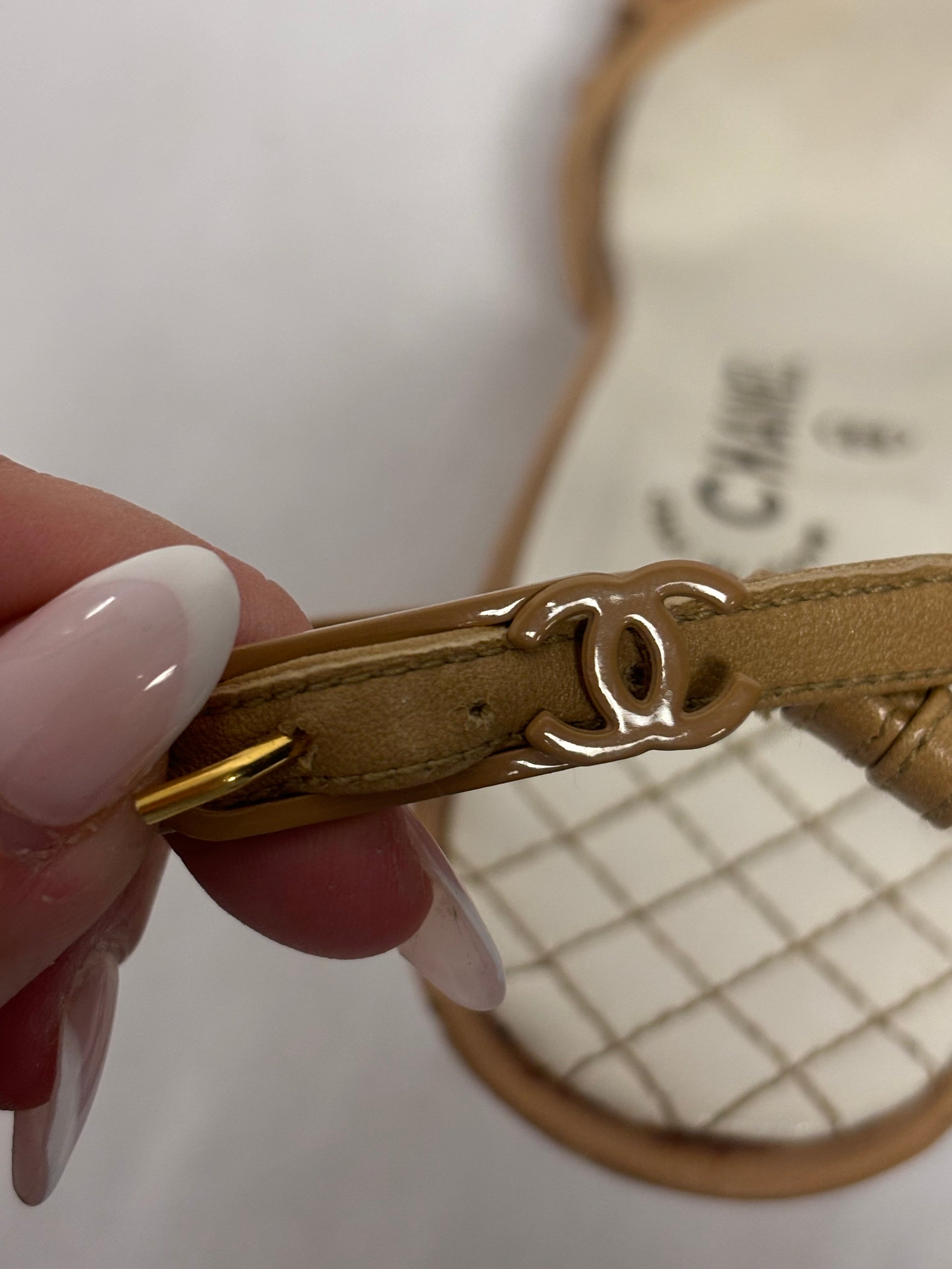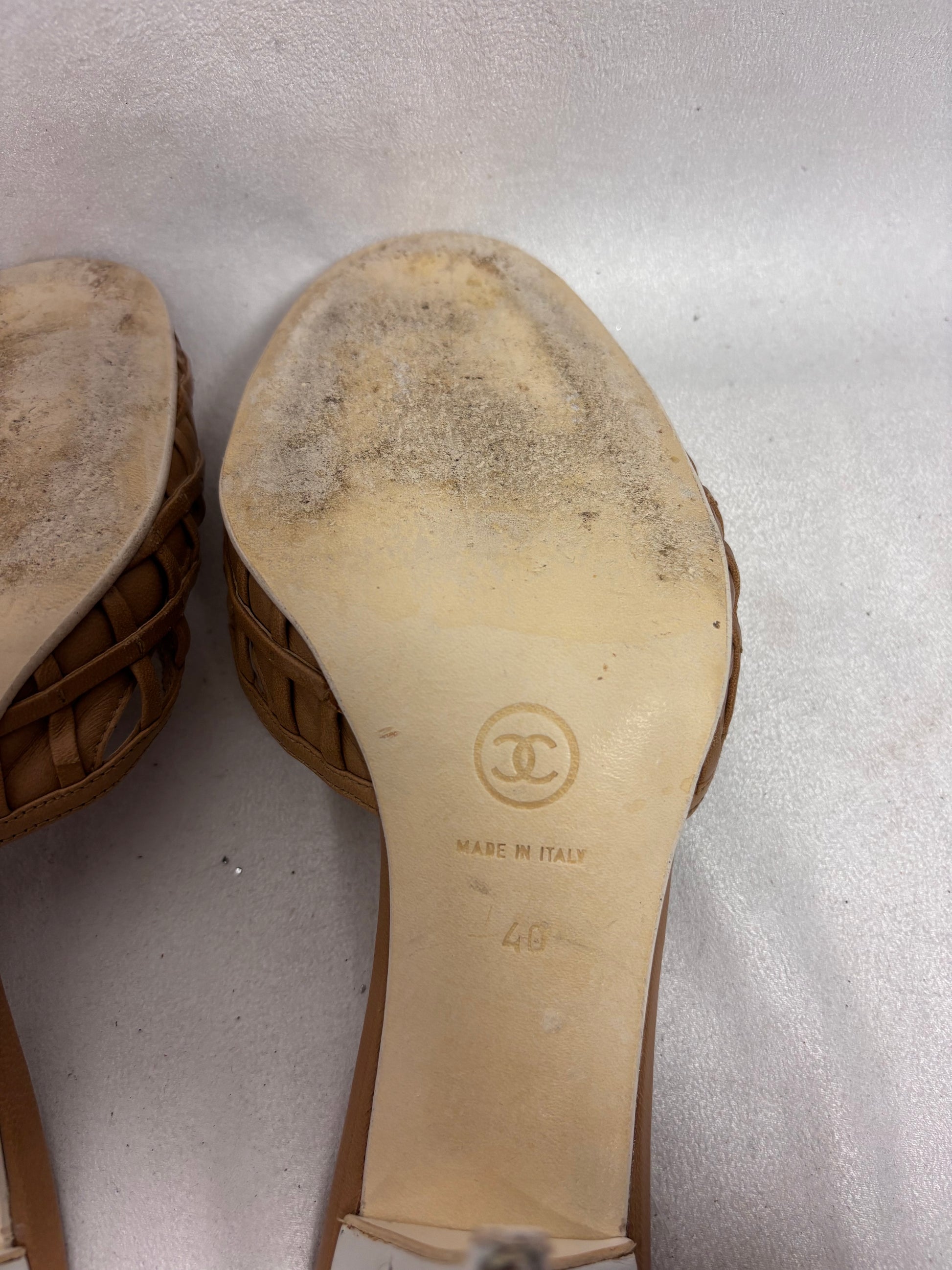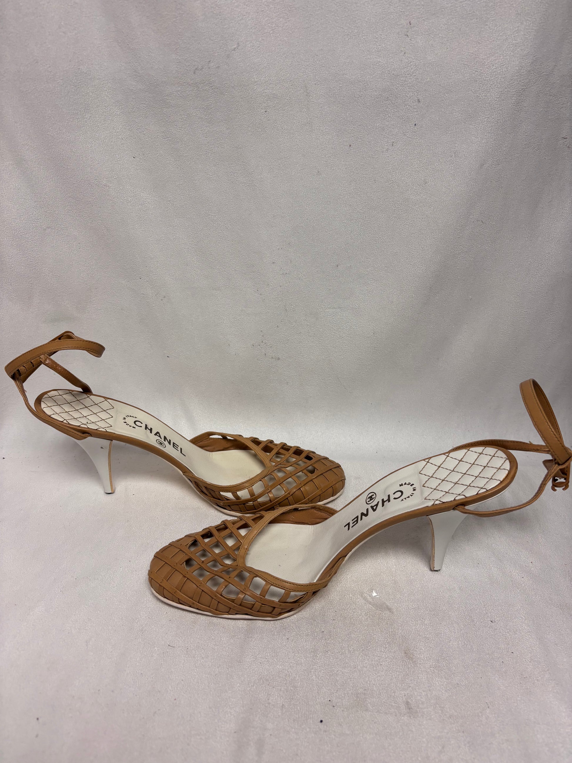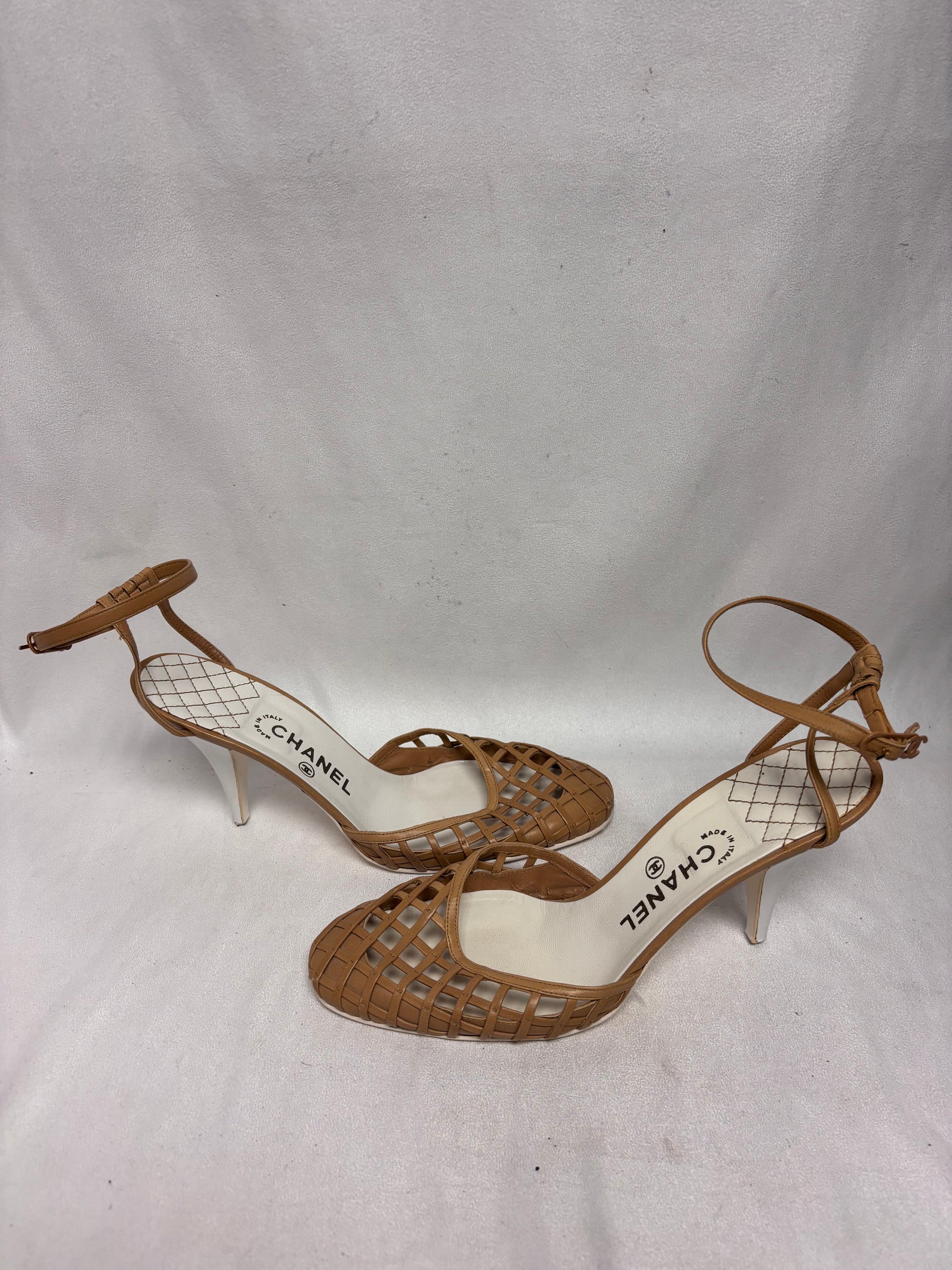 Chanel Beige Woven Pump with Ankle Strap Size 40