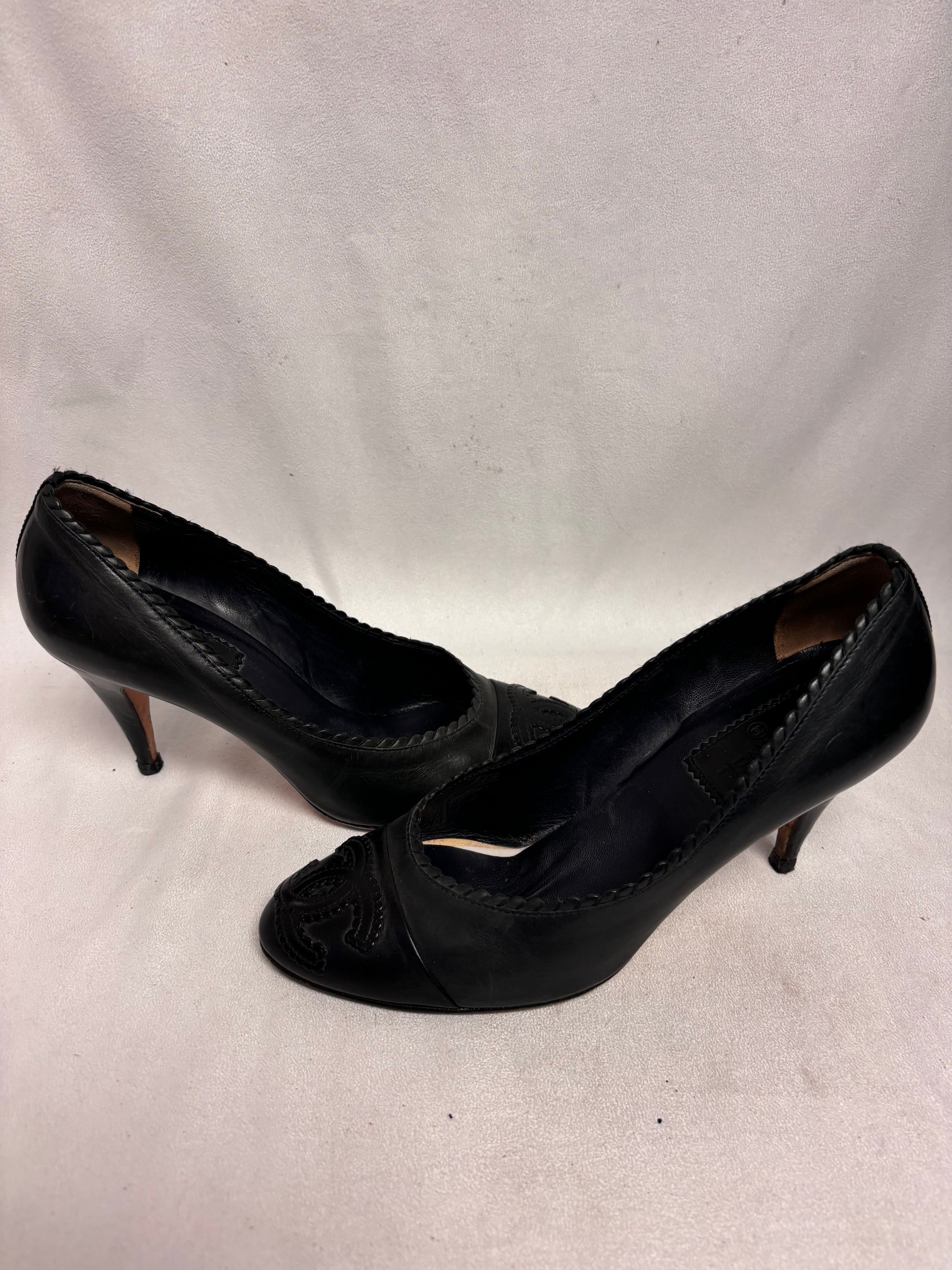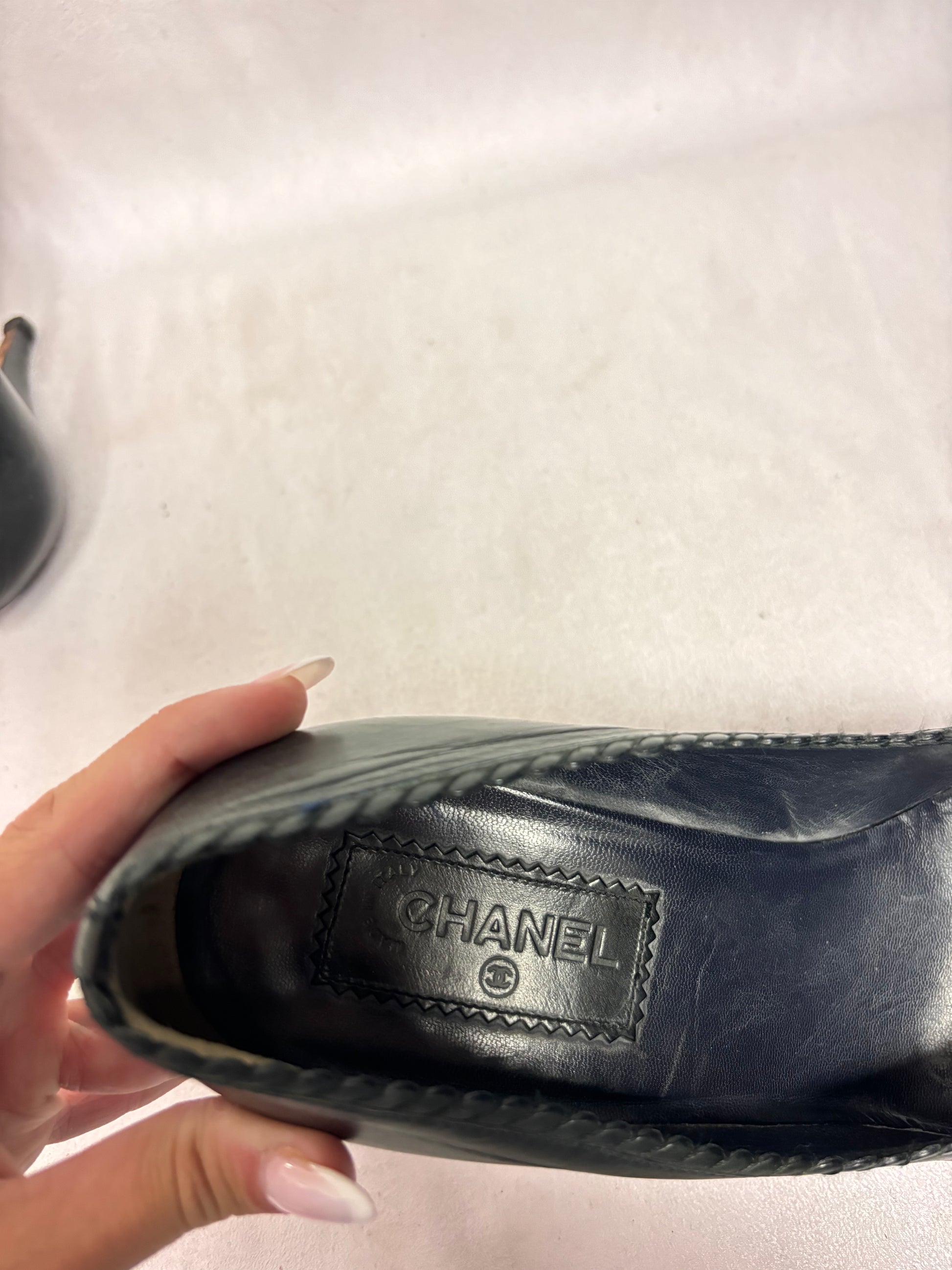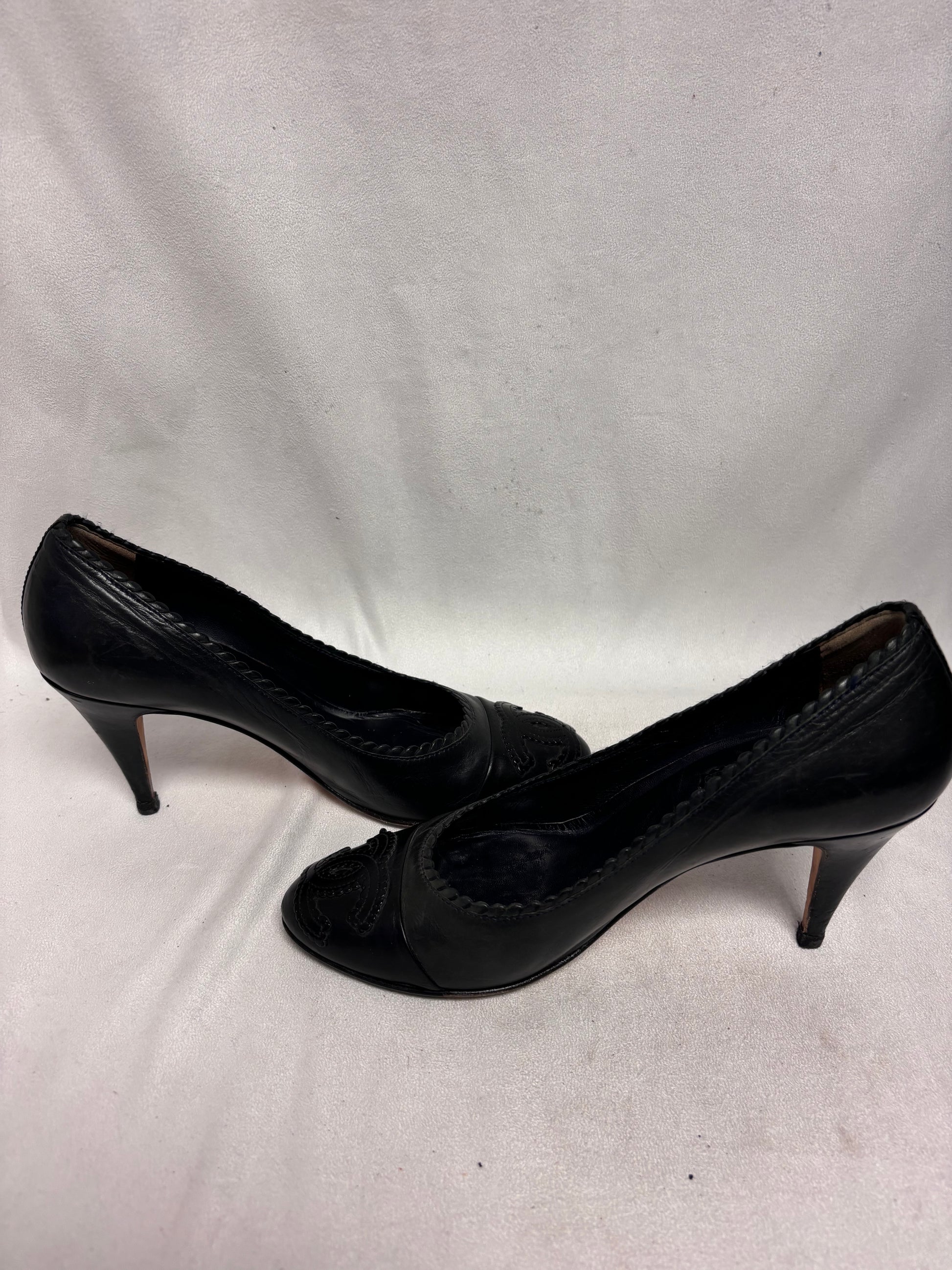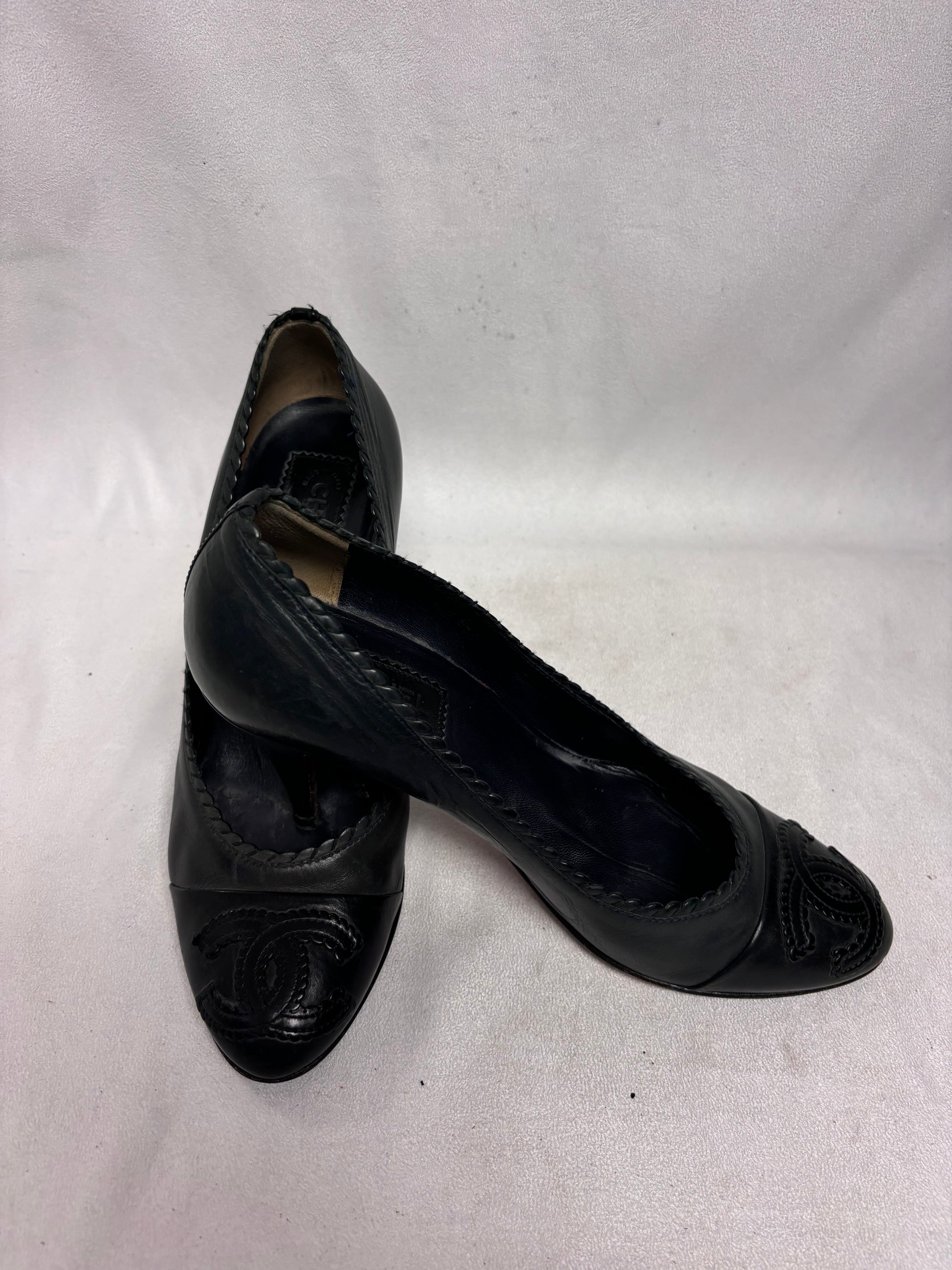 Chanel Vintage Navy Pump with Scalloped Trim Size 38