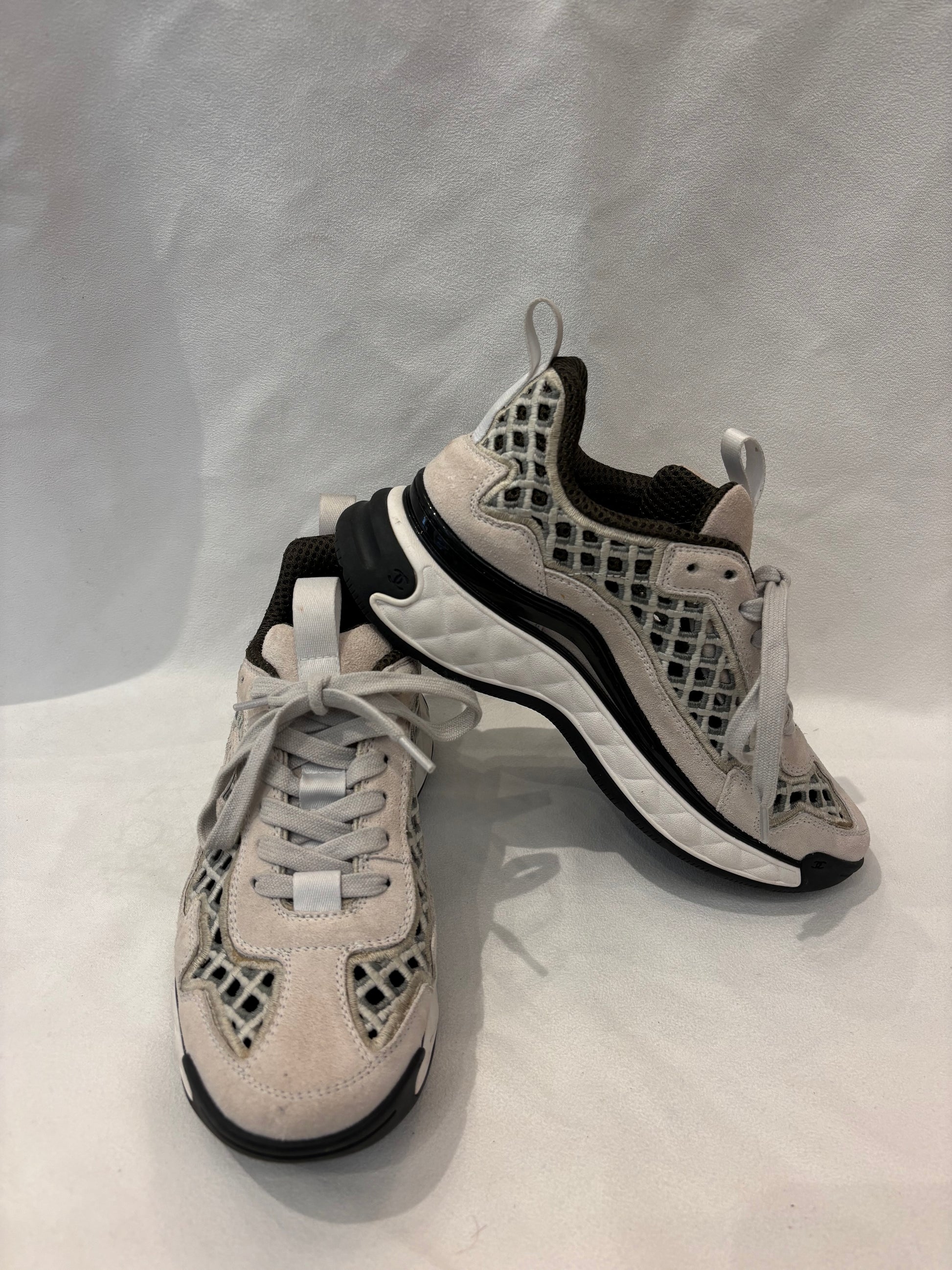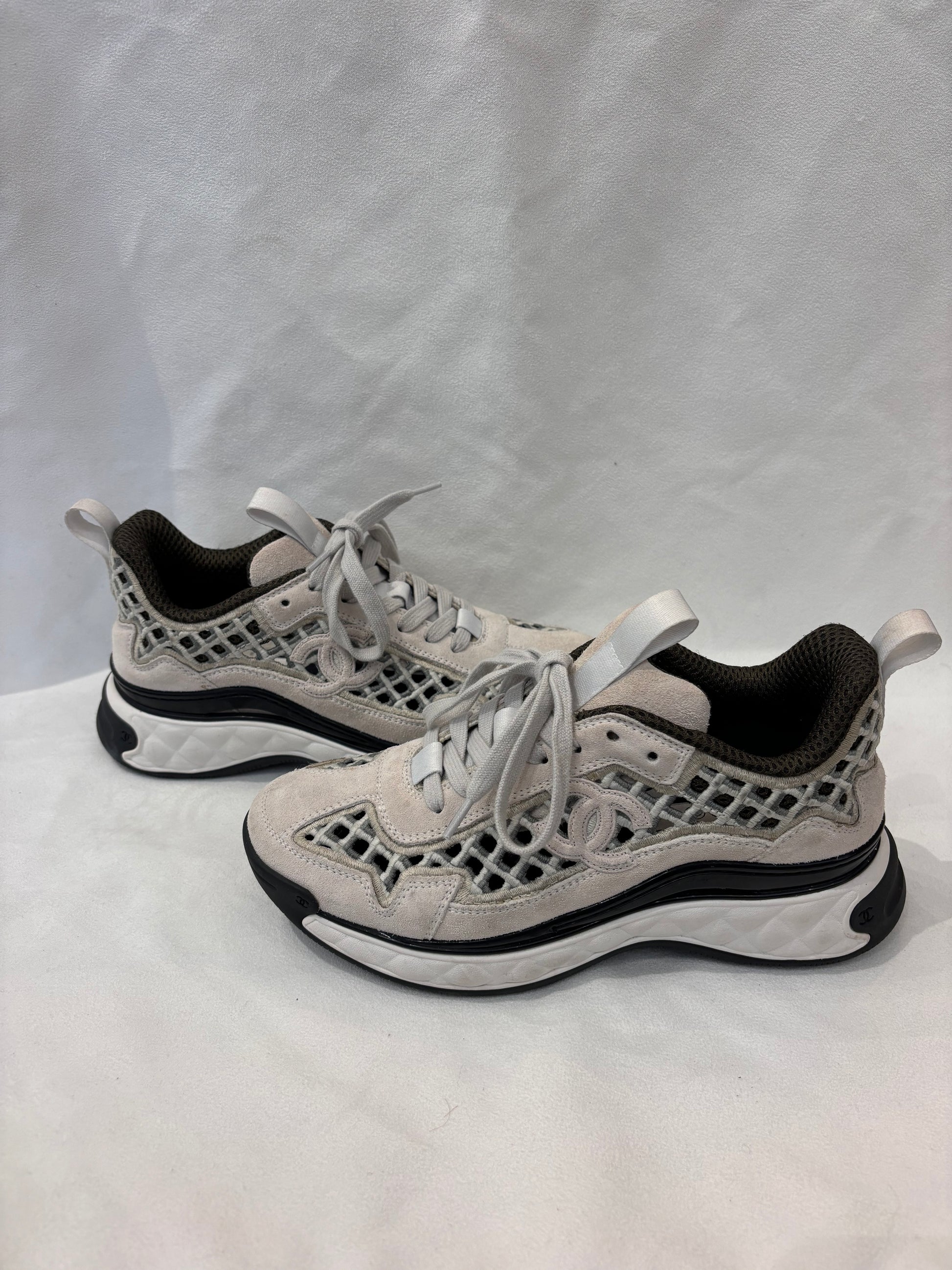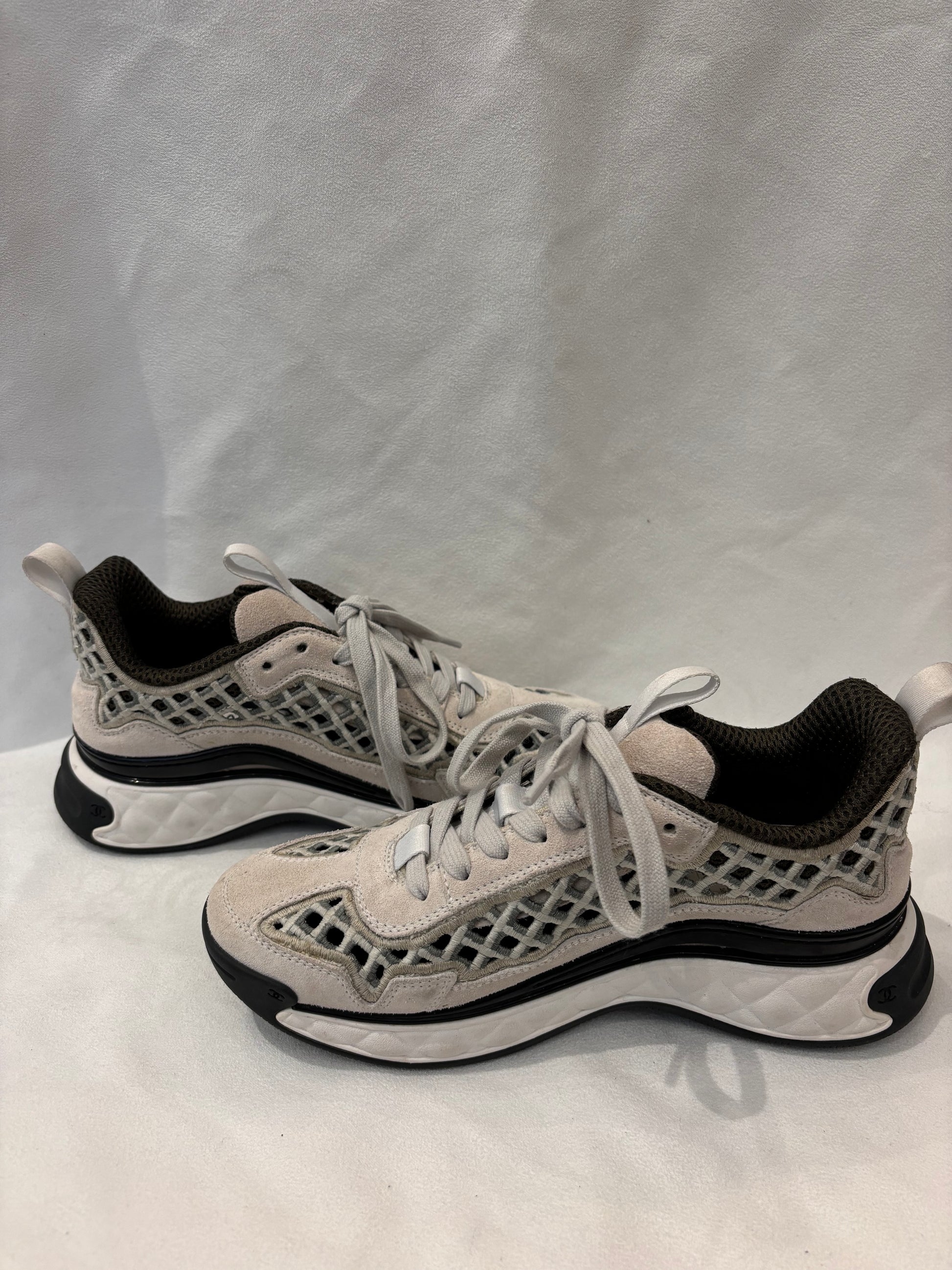 Chanel Olive Nylon/Chalk Suede Sneakers Size 36