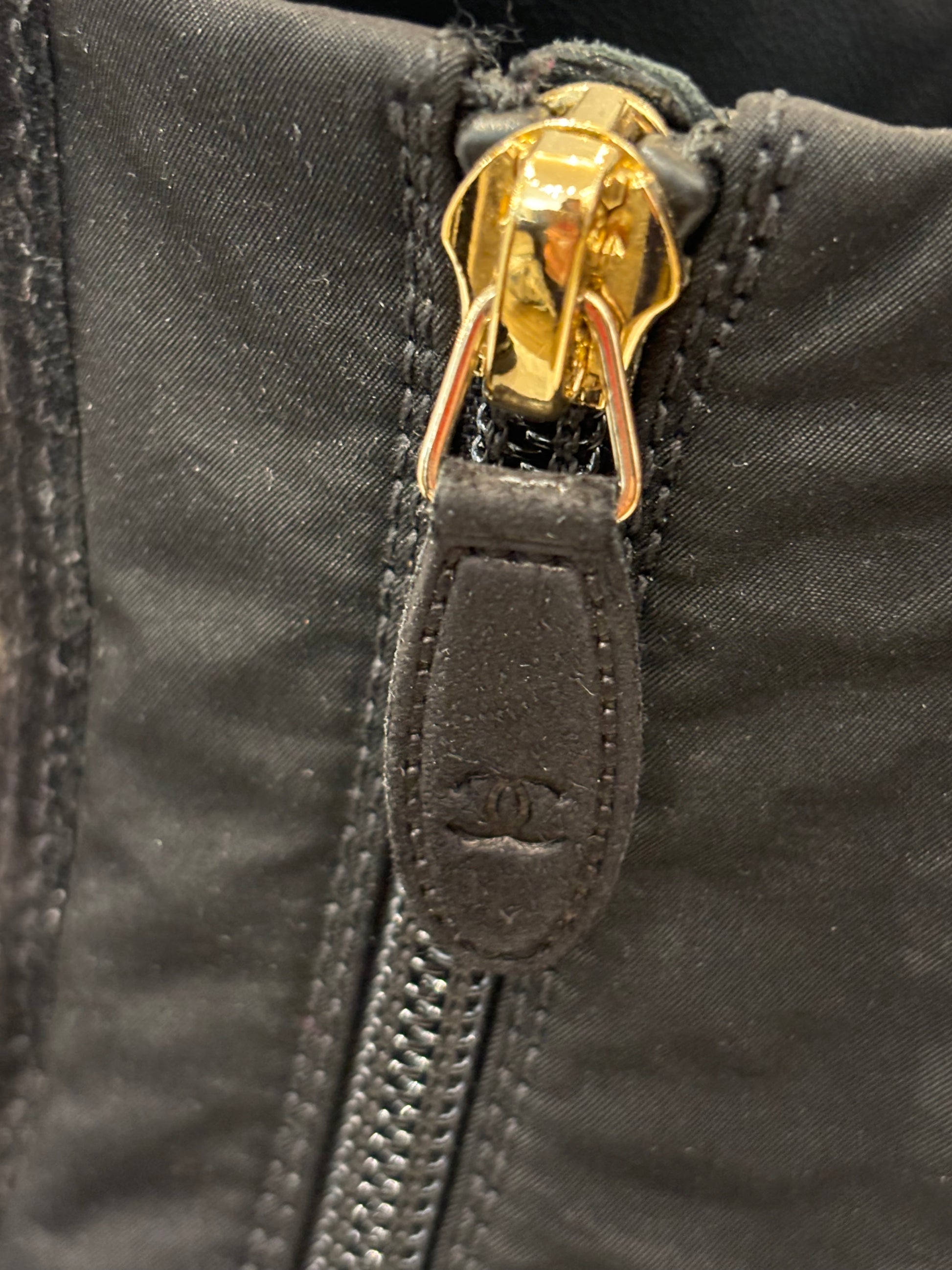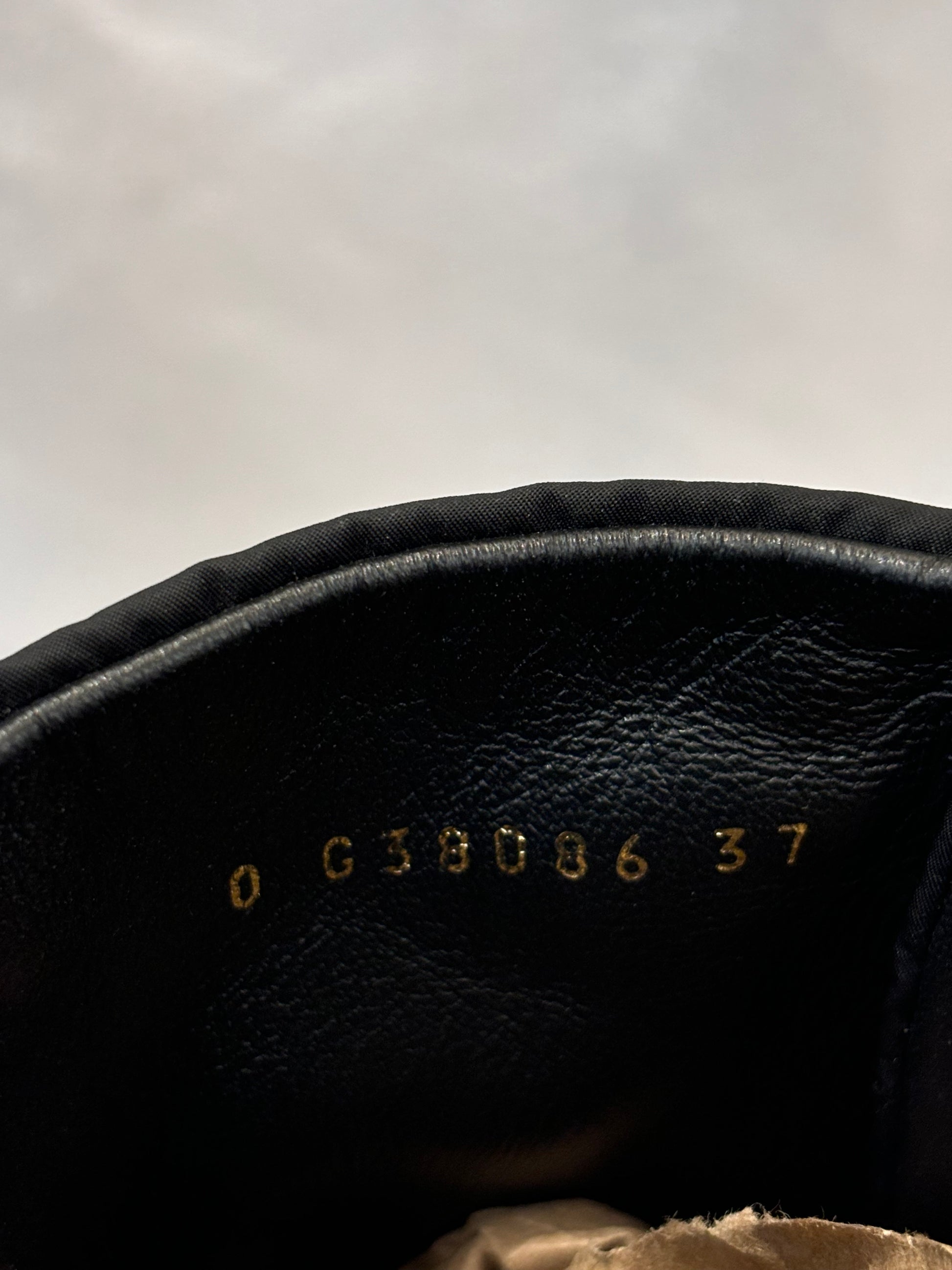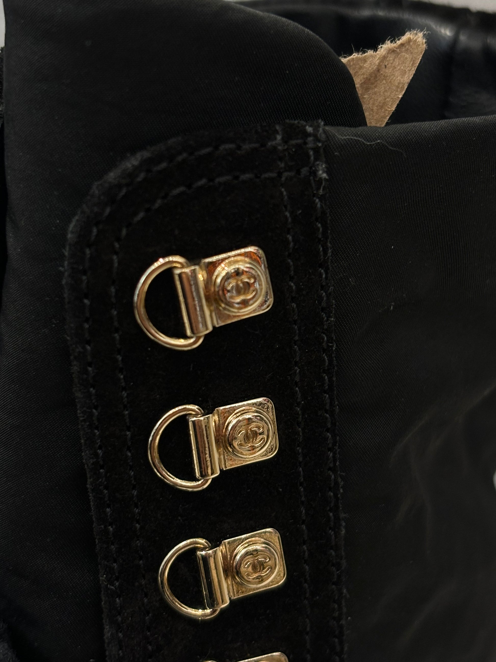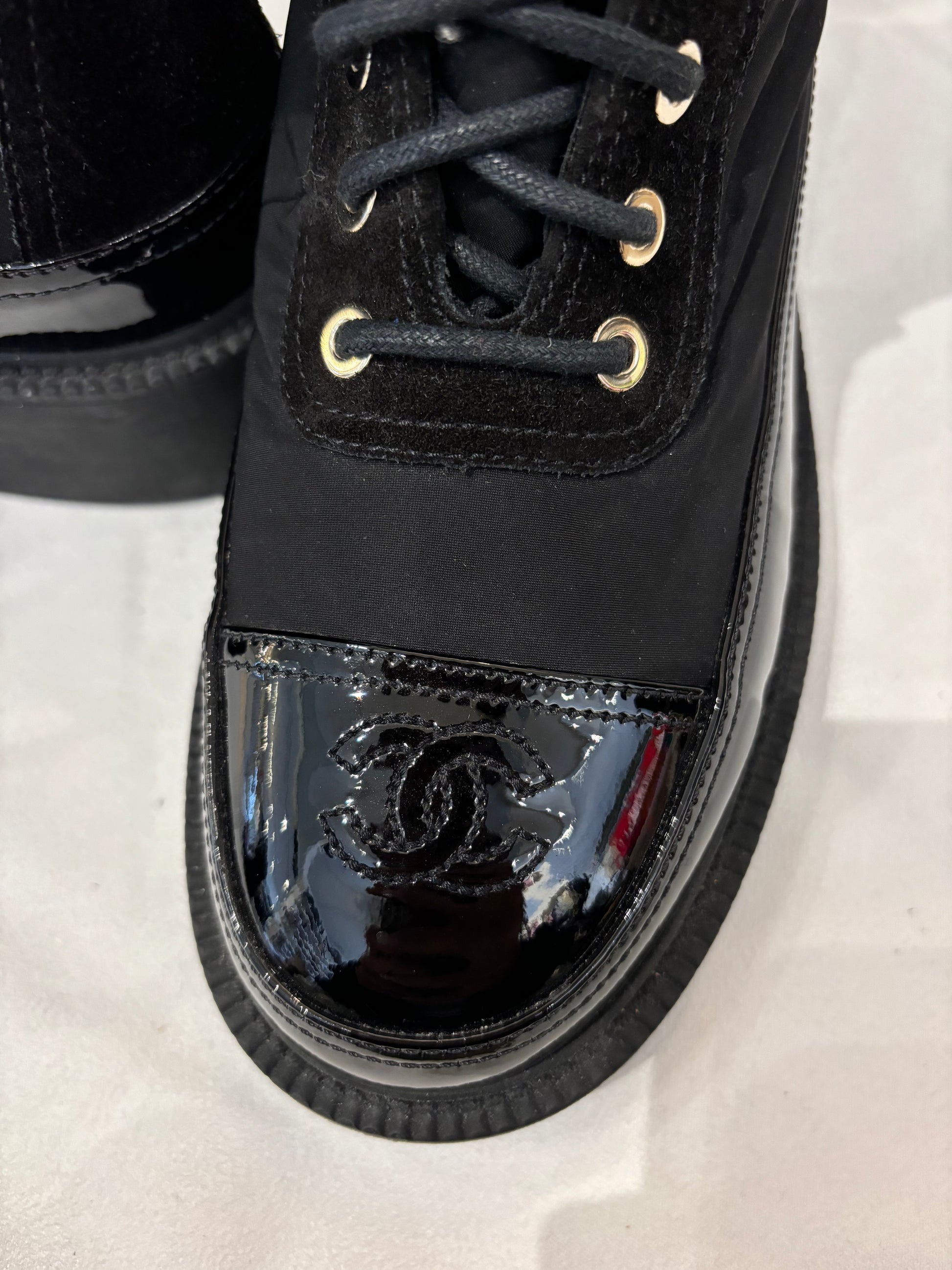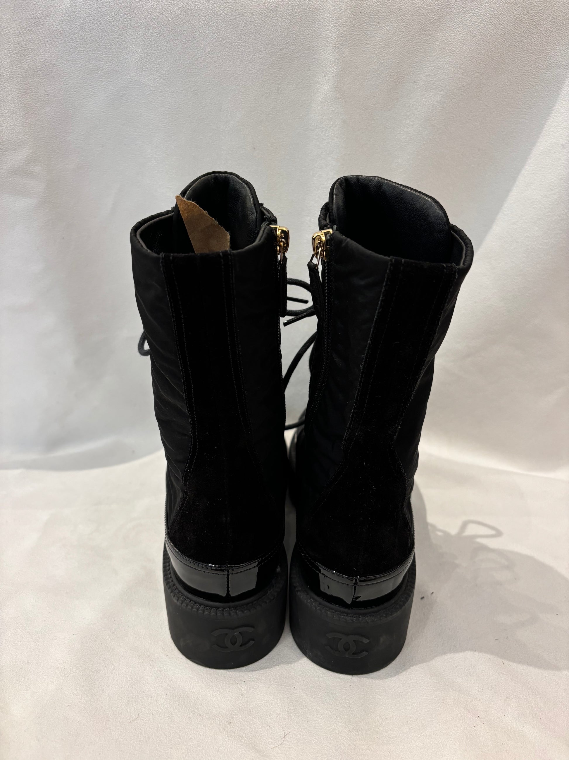 Chanel Black Nylon Combat Boots with Patent Leather Toe Cap Size 37