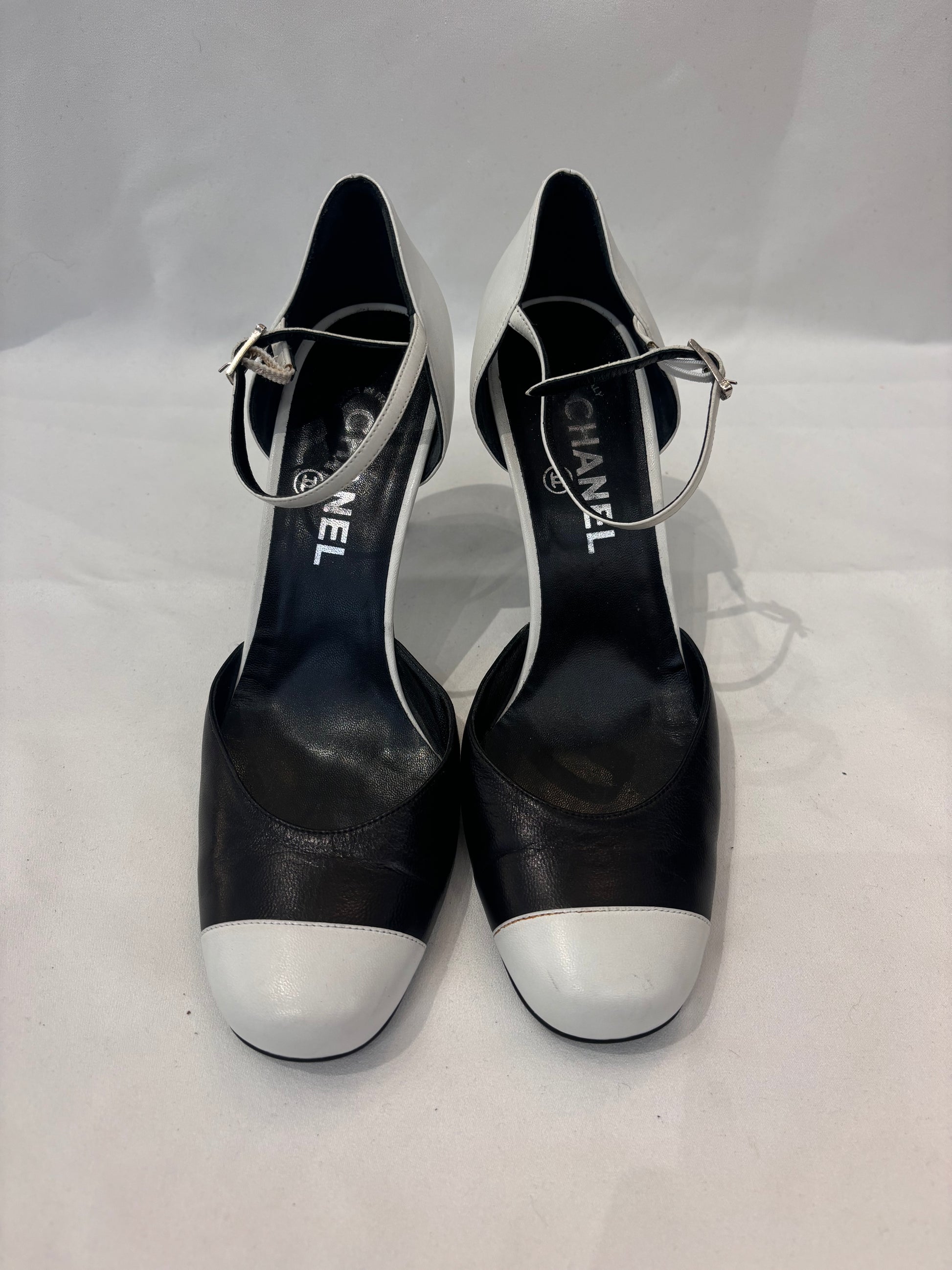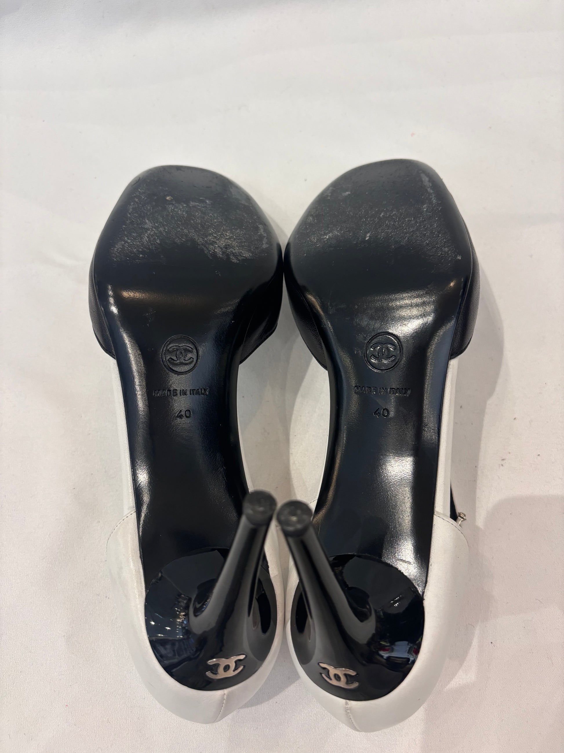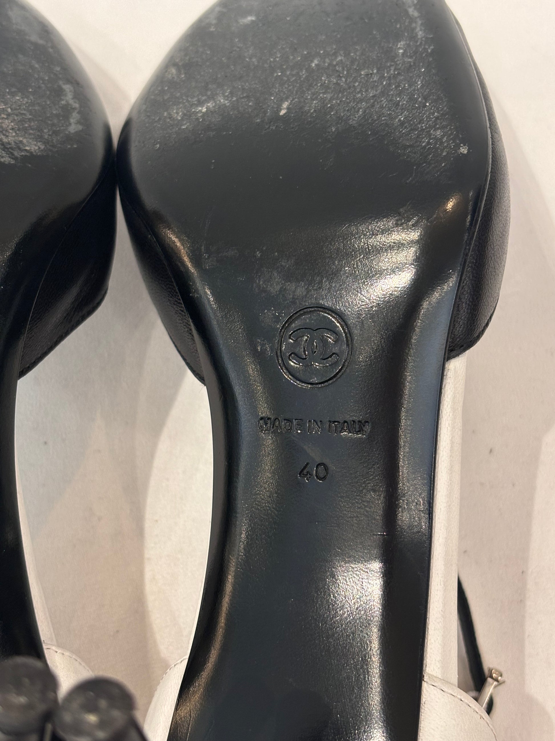 Chanel Black Round Toe Pump with White Toe Cap Size 40