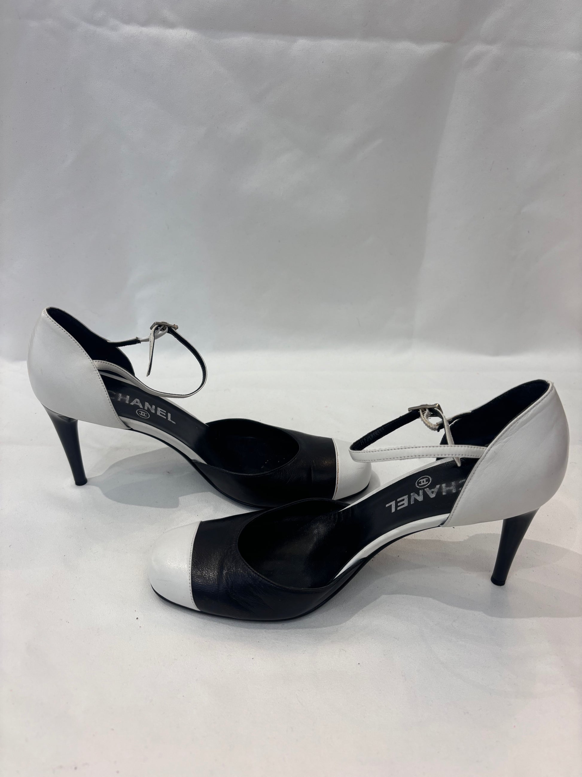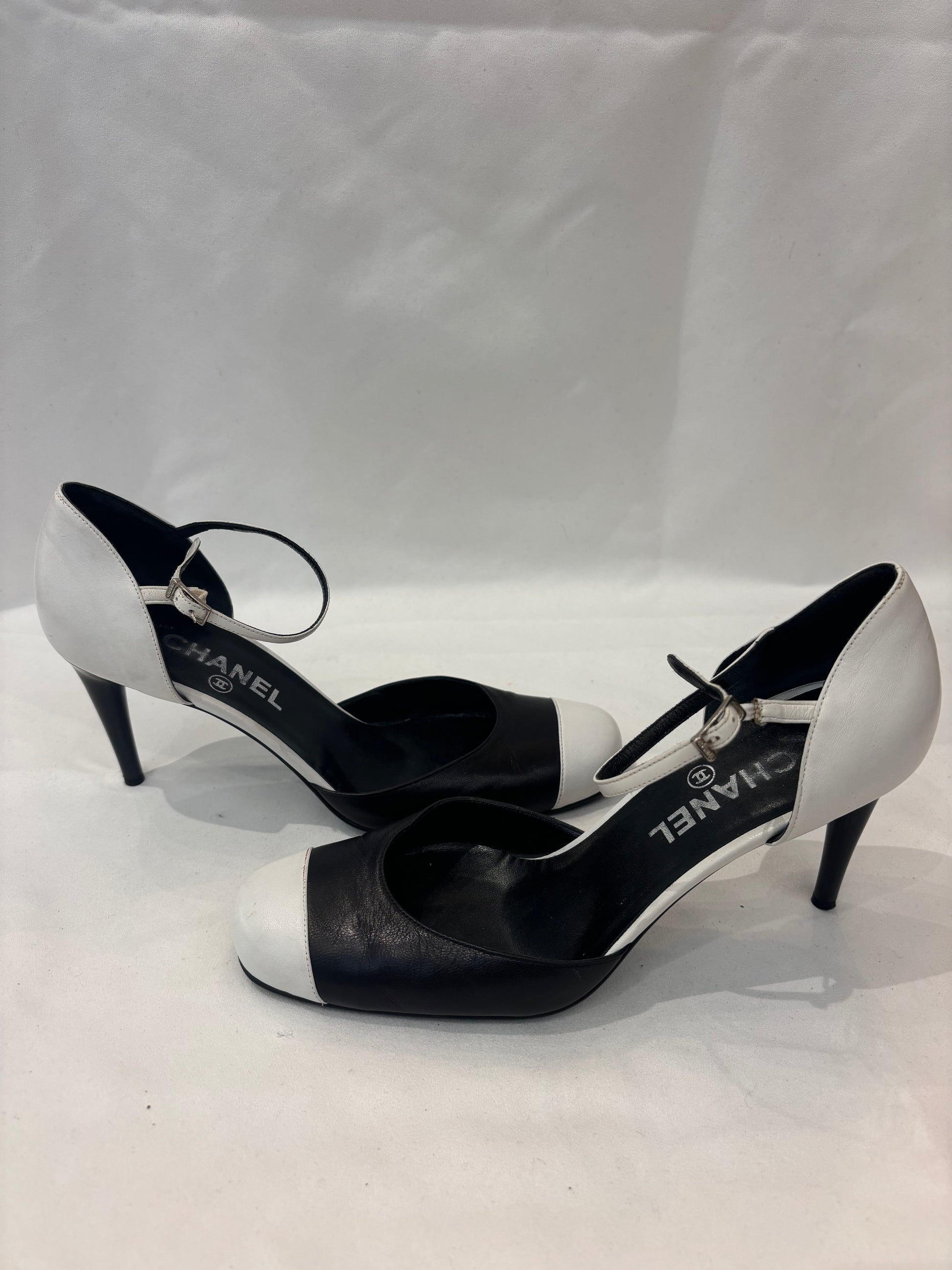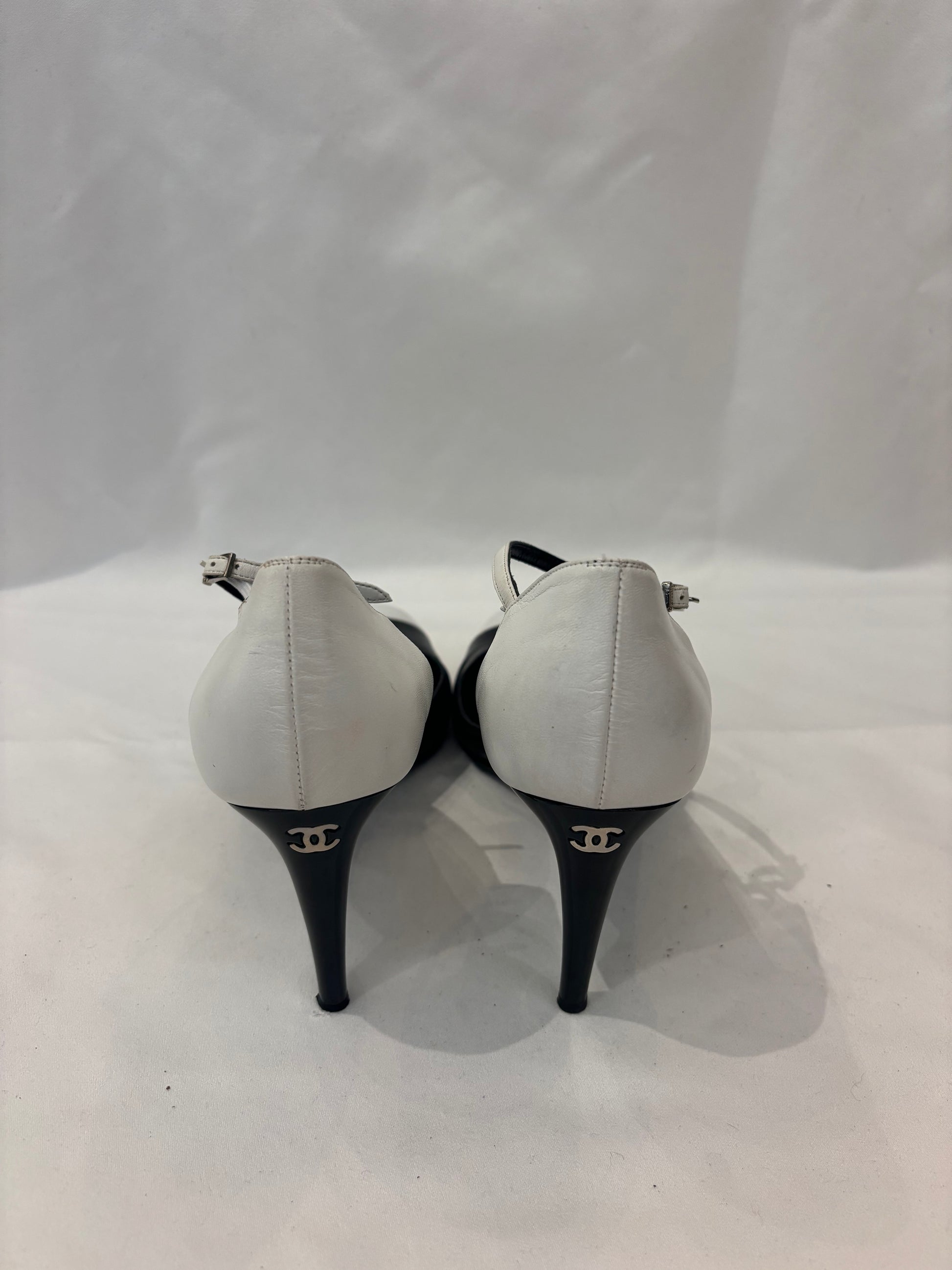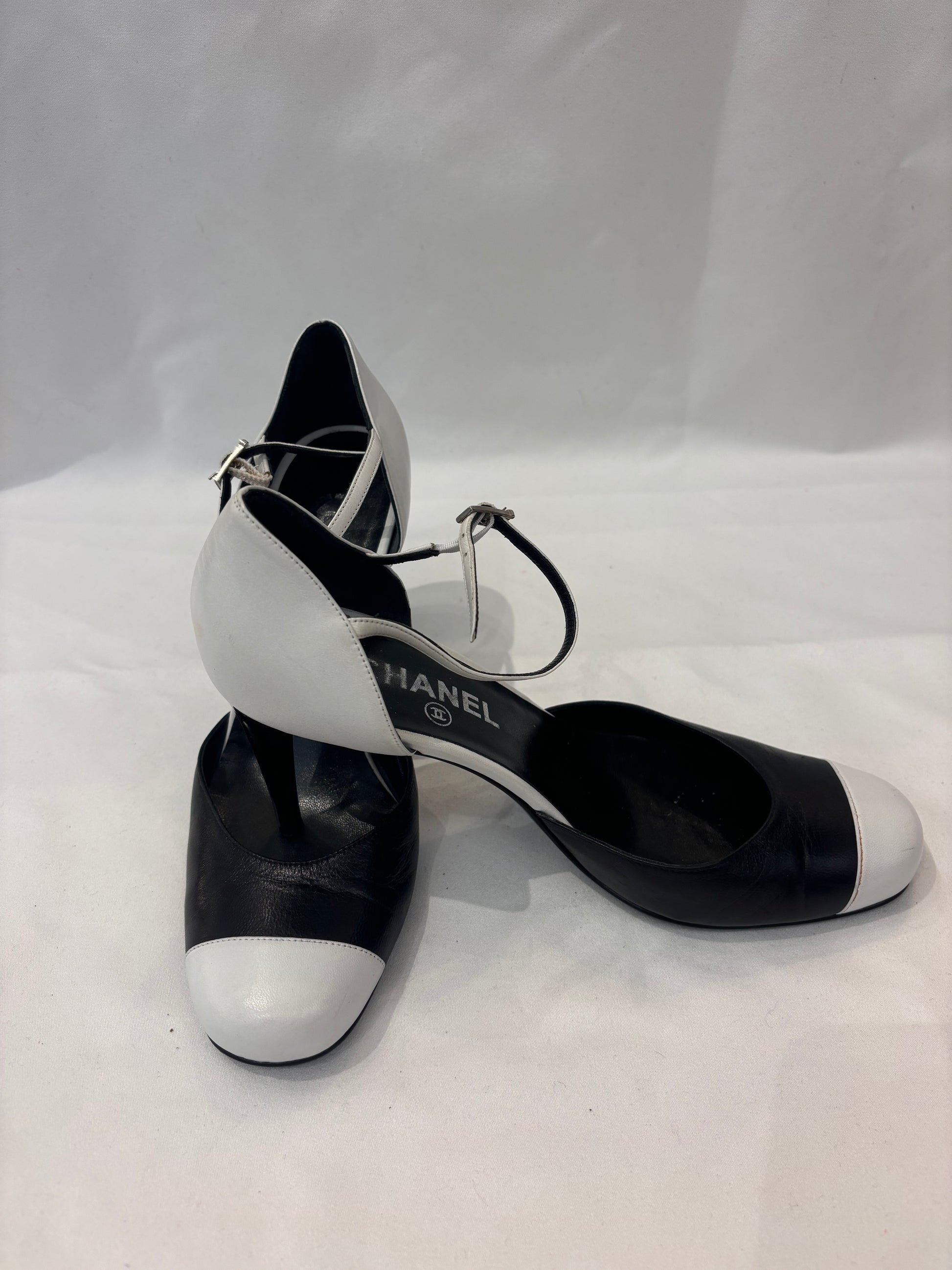 Chanel Black Round Toe Pump with White Toe Cap Size 40