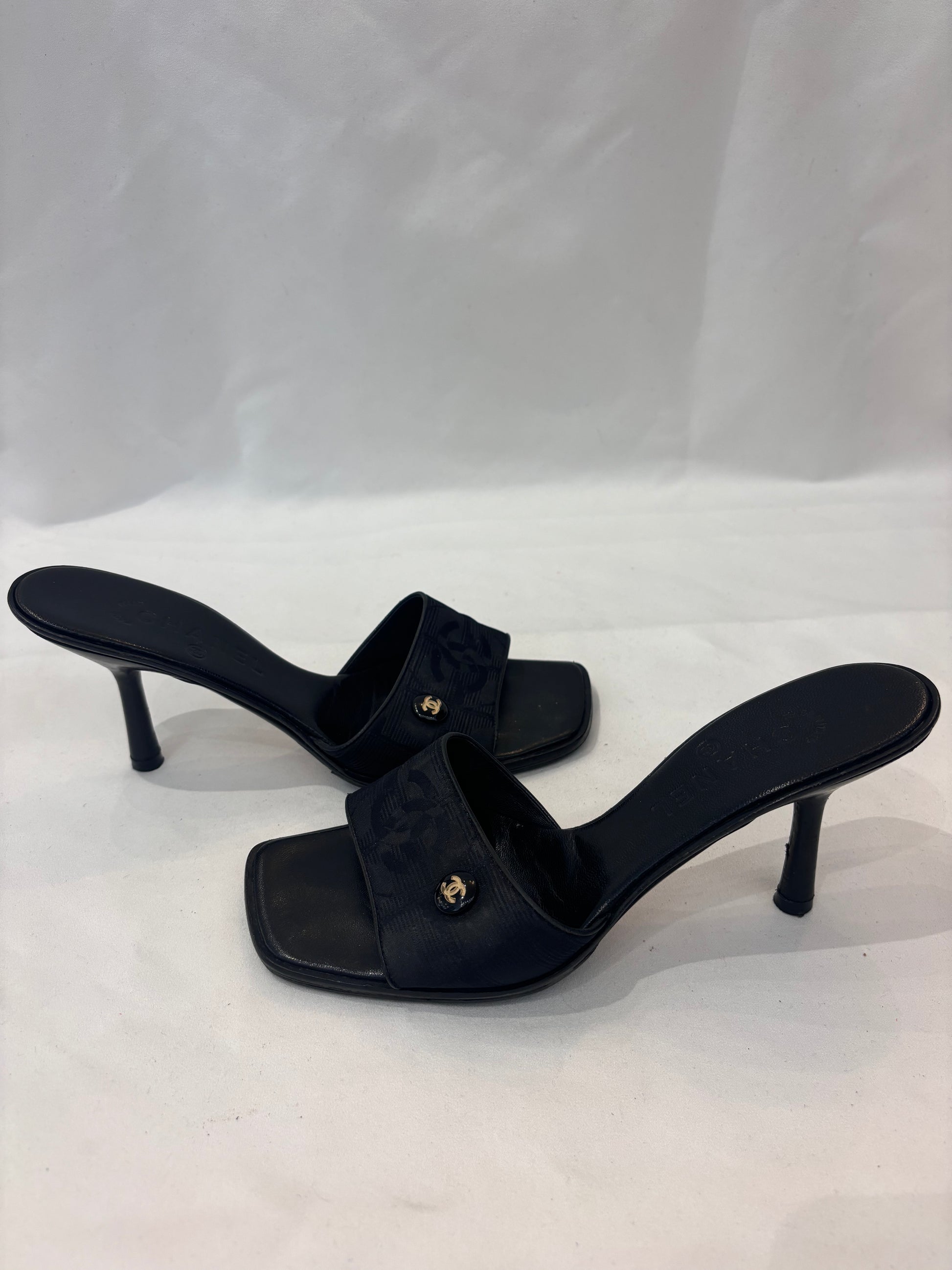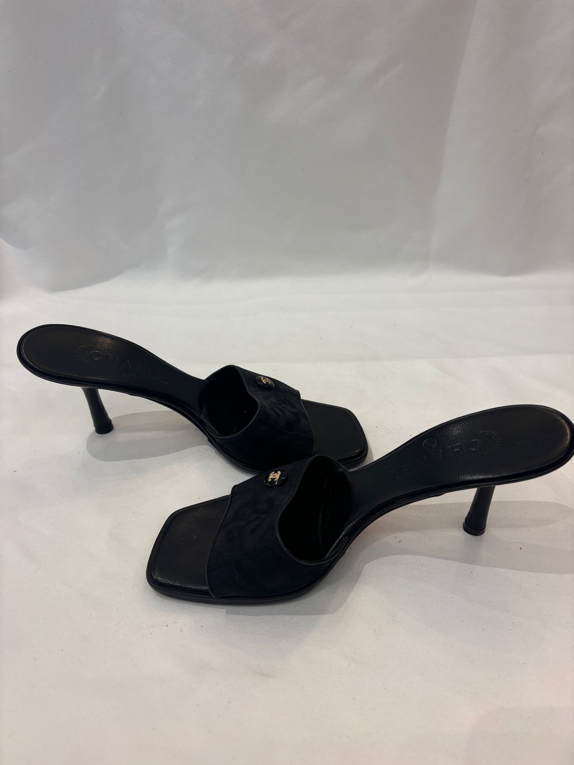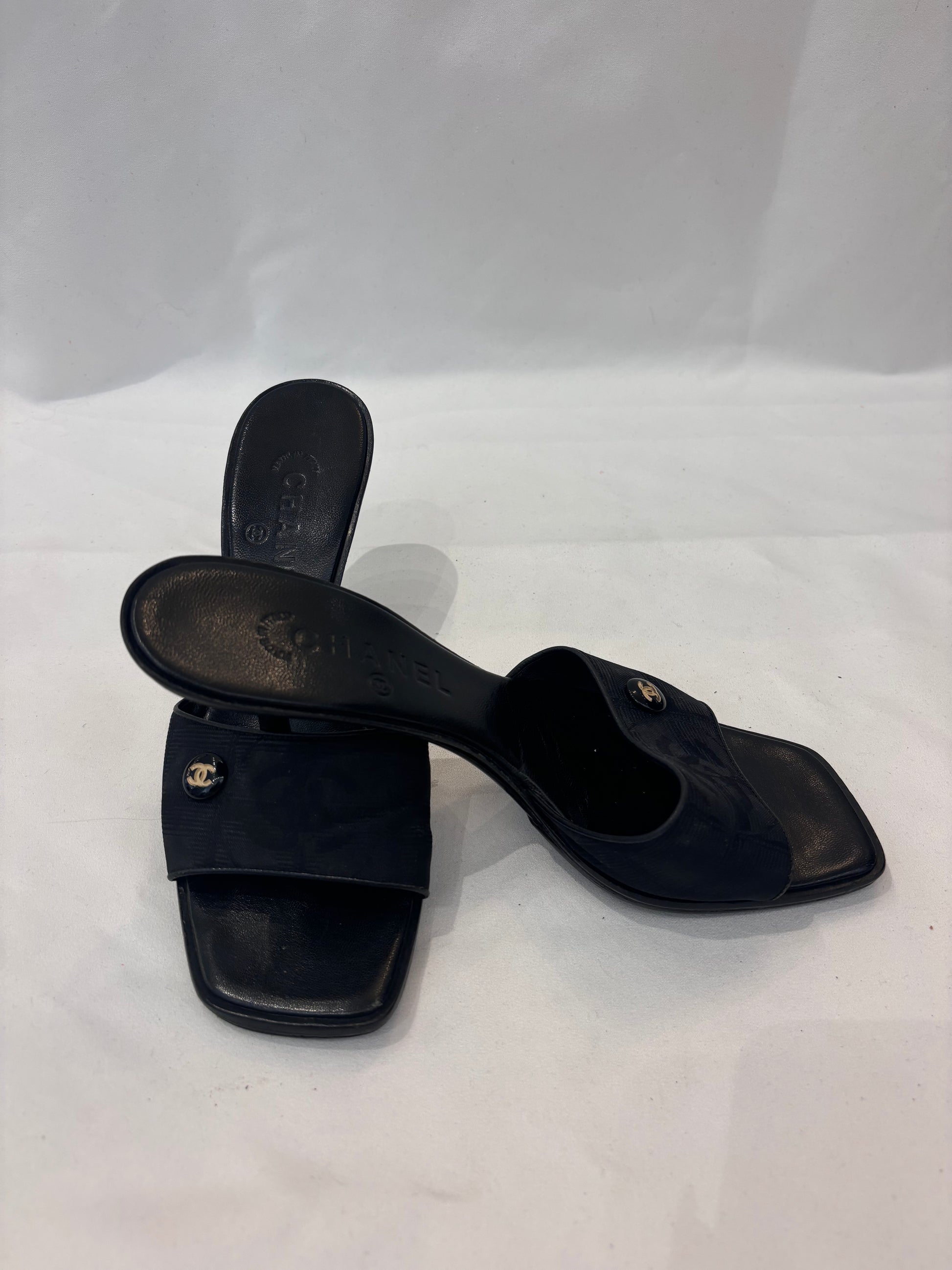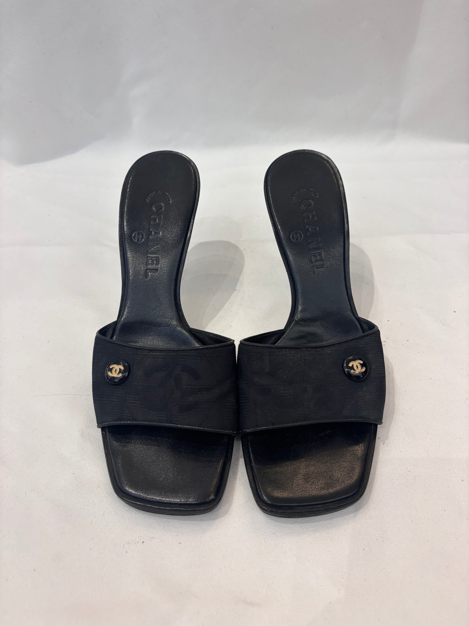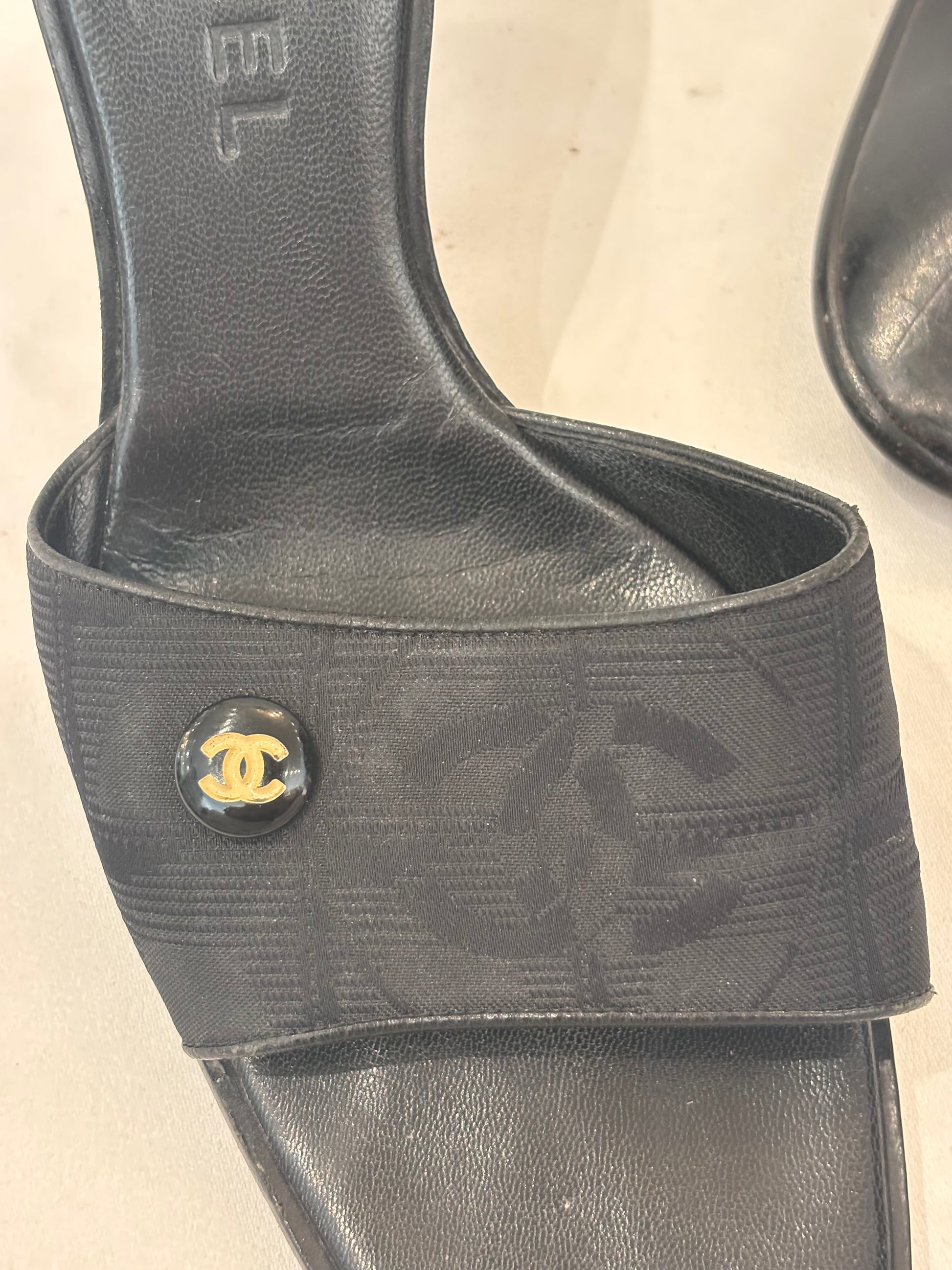 Chanel Black Canvas Slides with CC Buckle Size 40