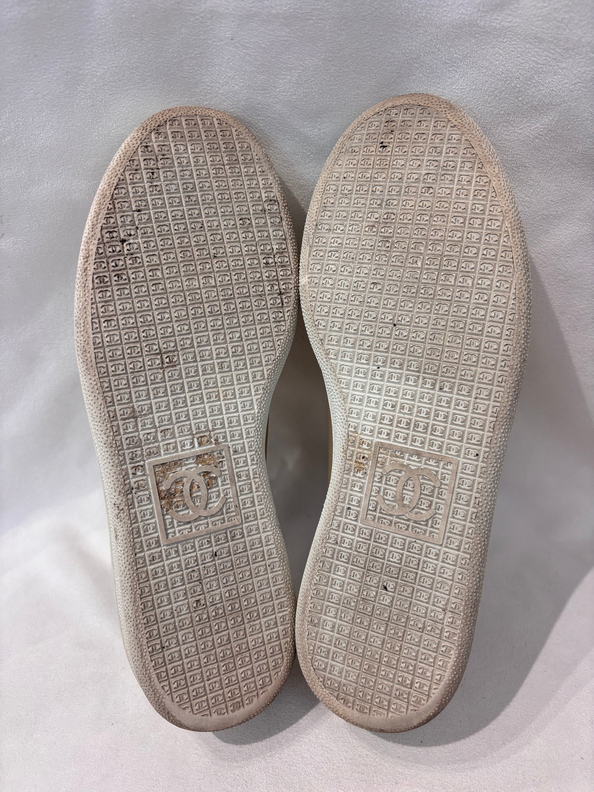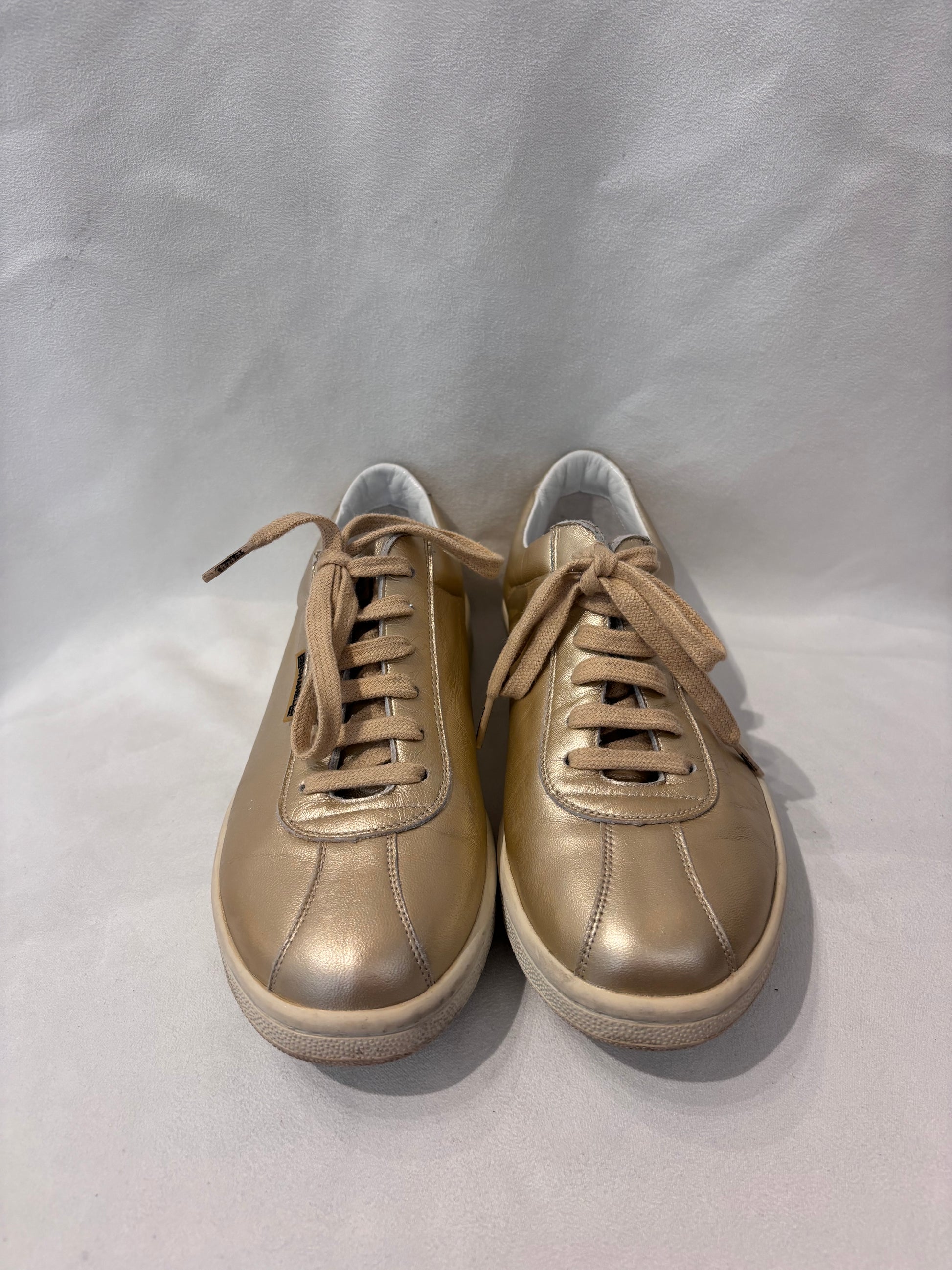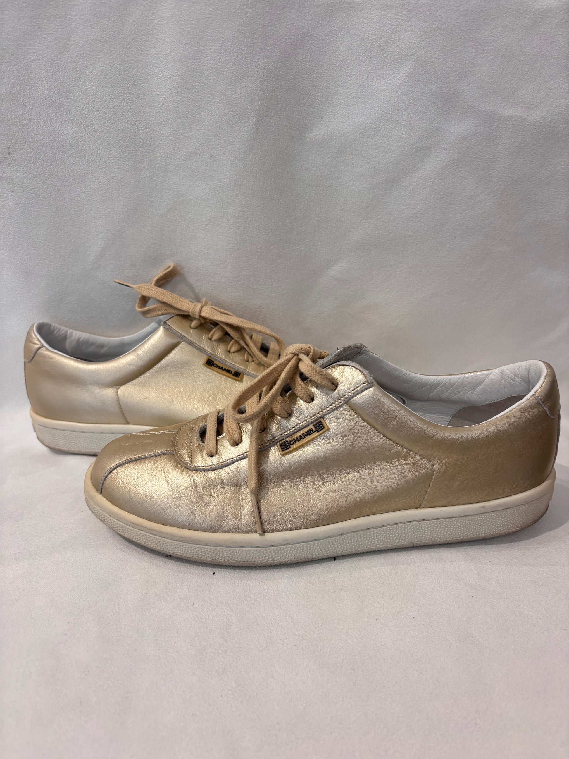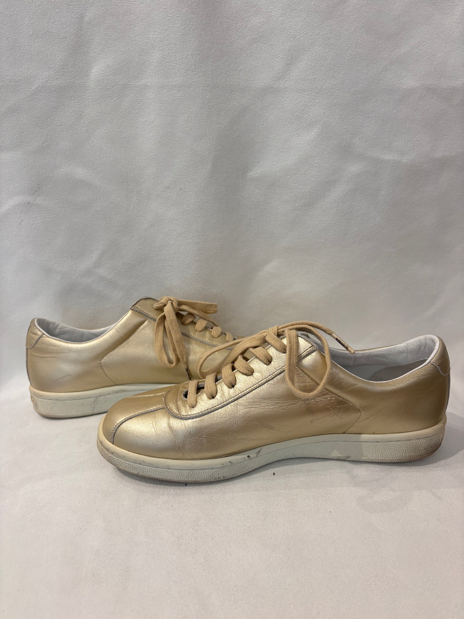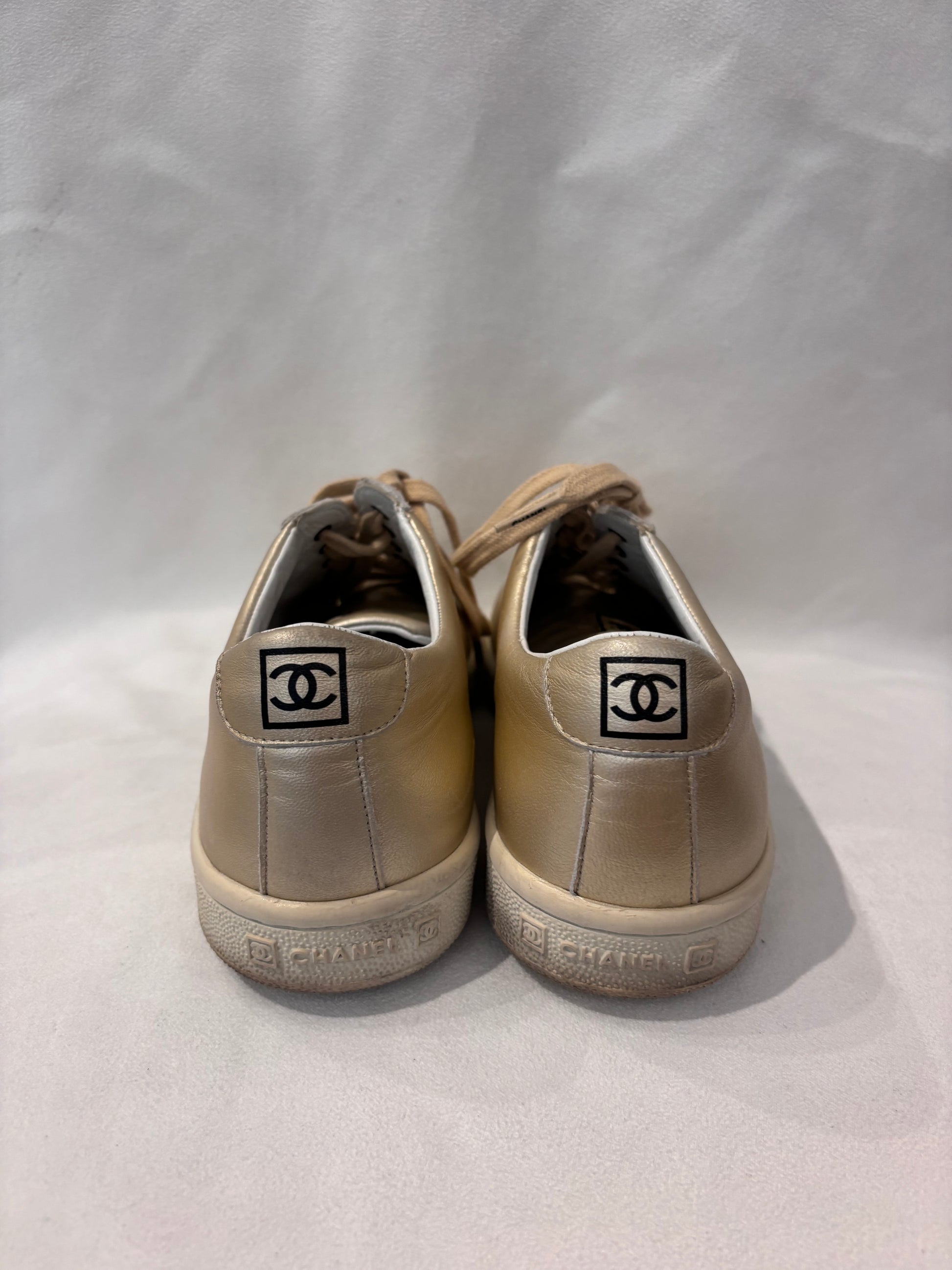Chanel Gold Lace Up Low Top Sneakers Size 38.5