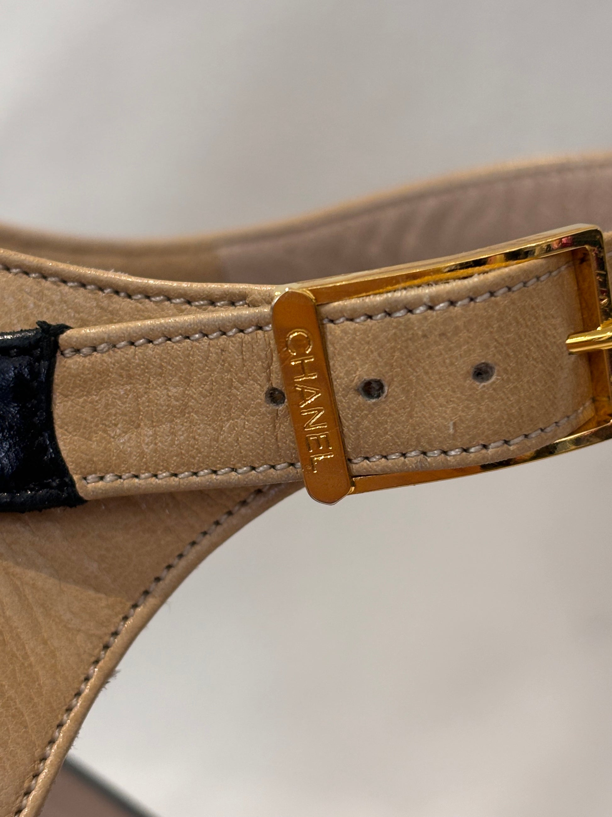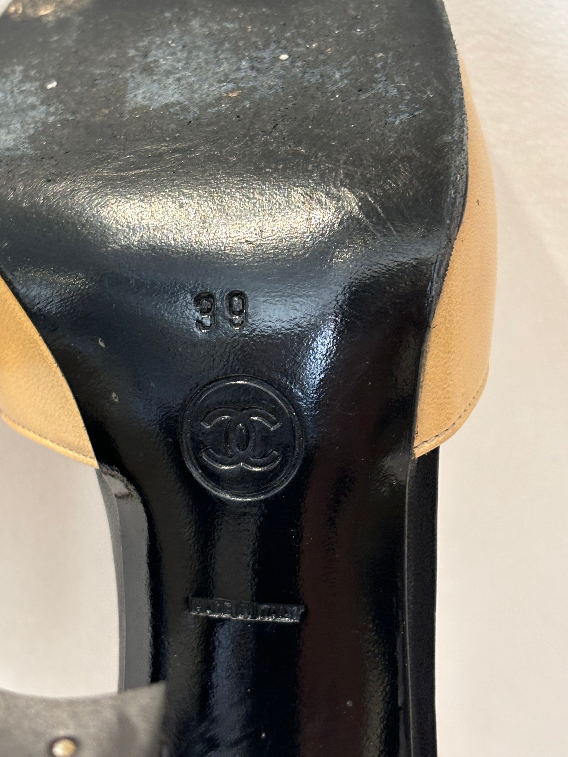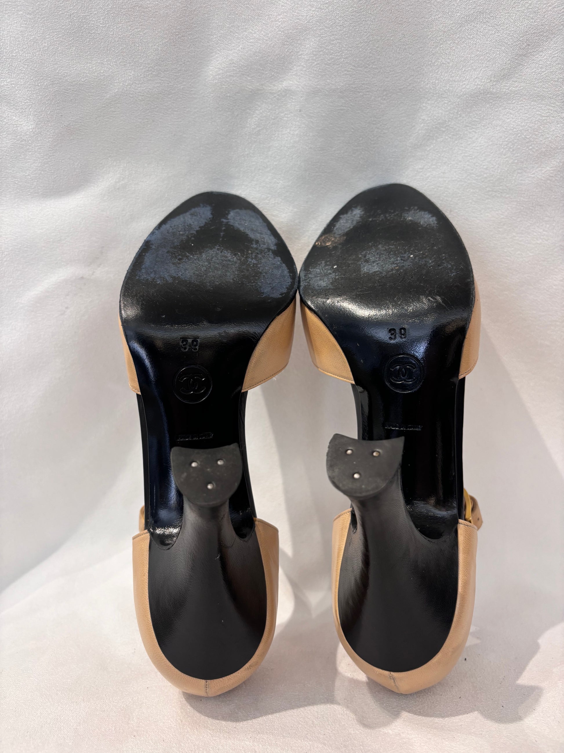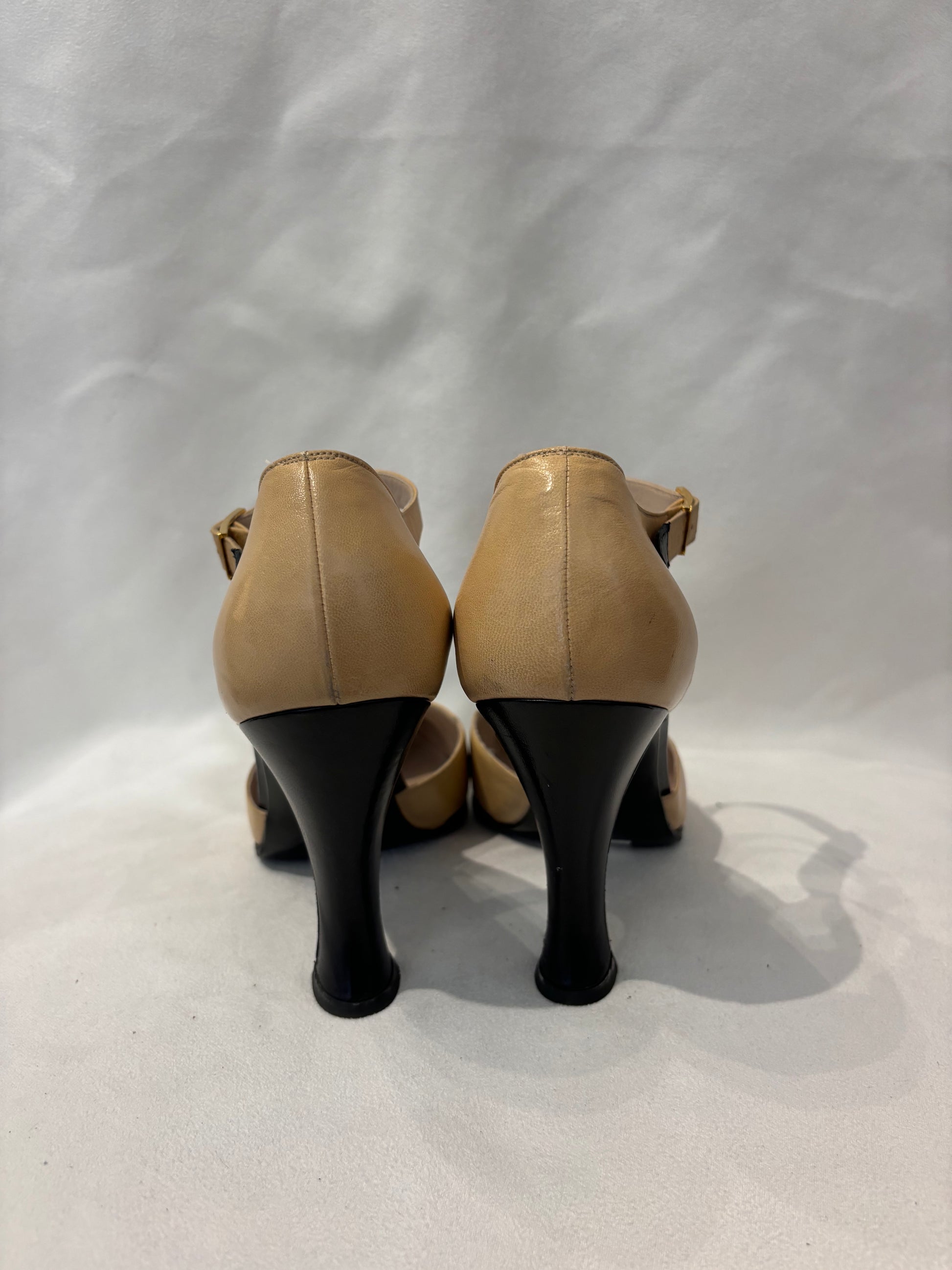 Chanel Vintage Beige Mary Jane’s with Black Toe Cap Size 39