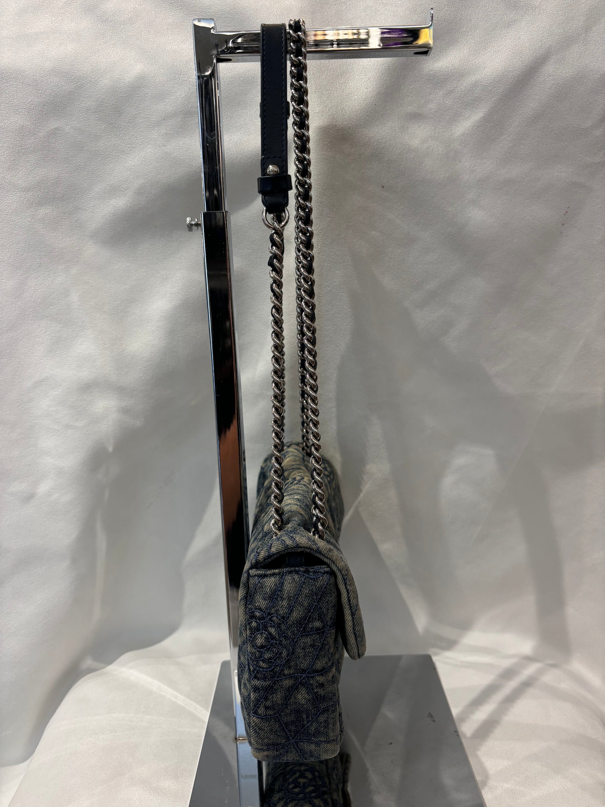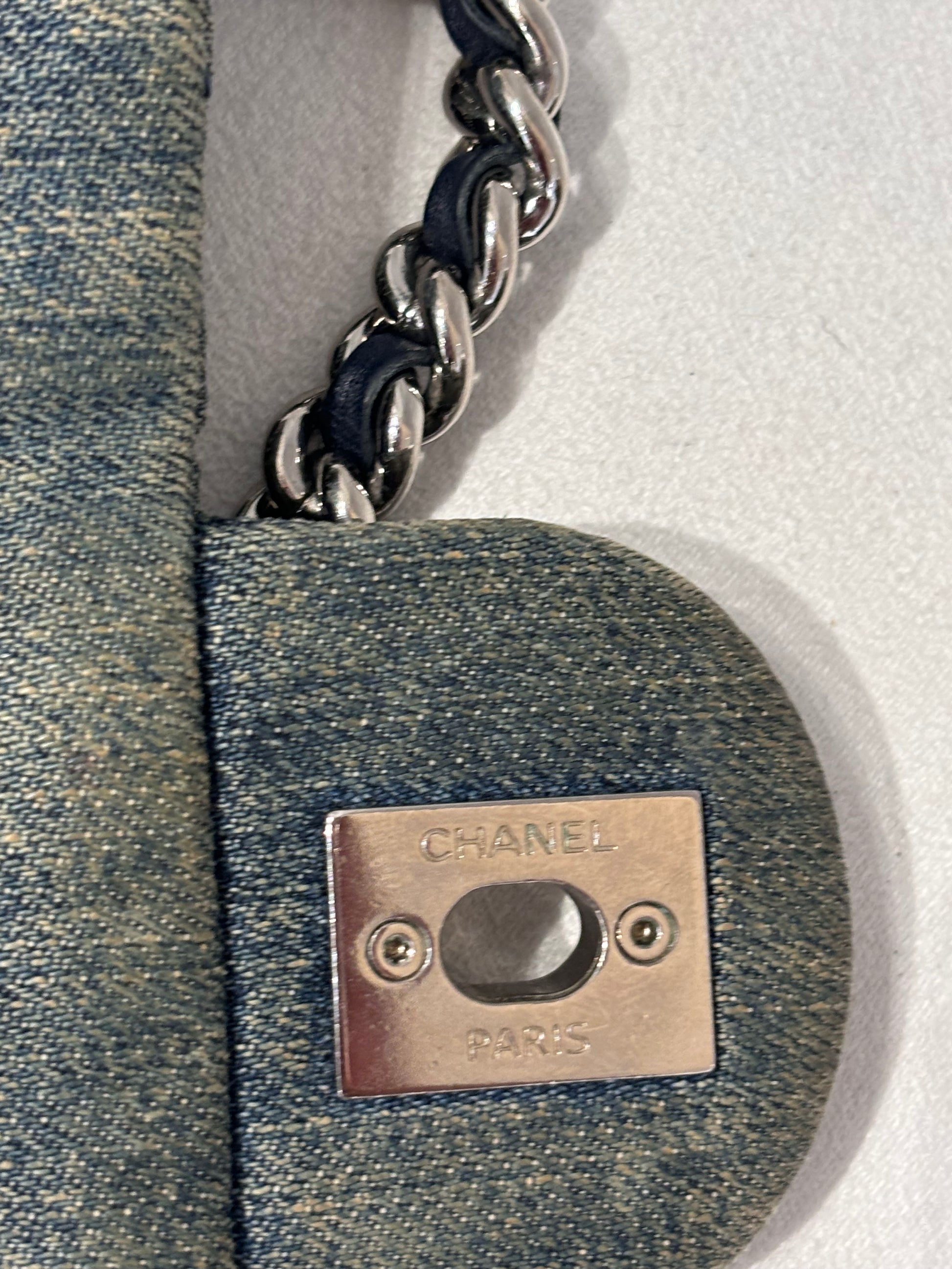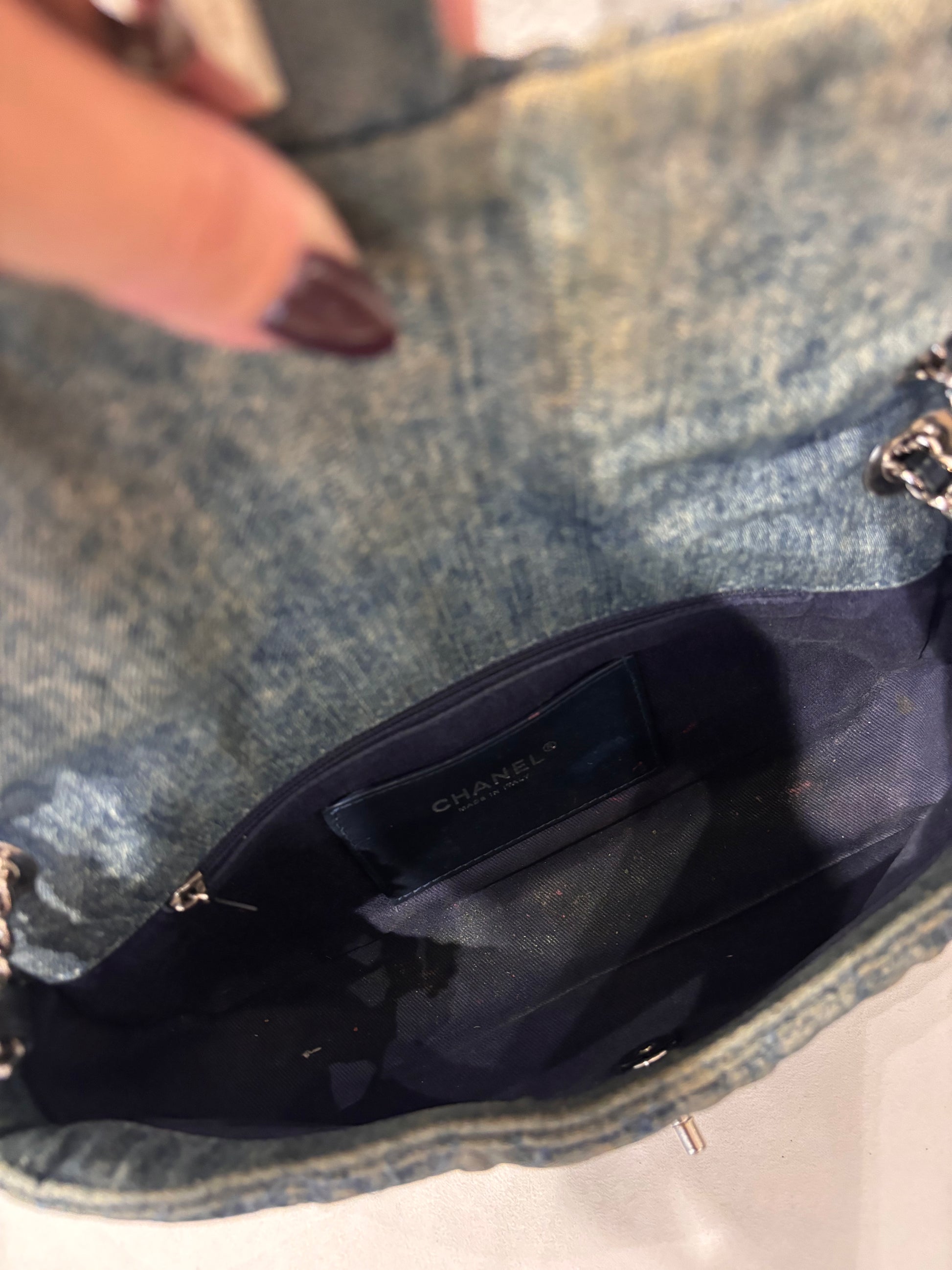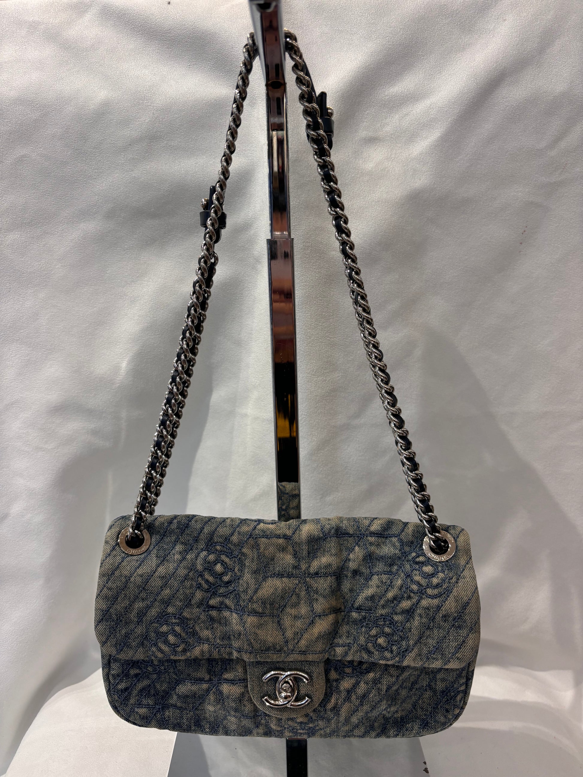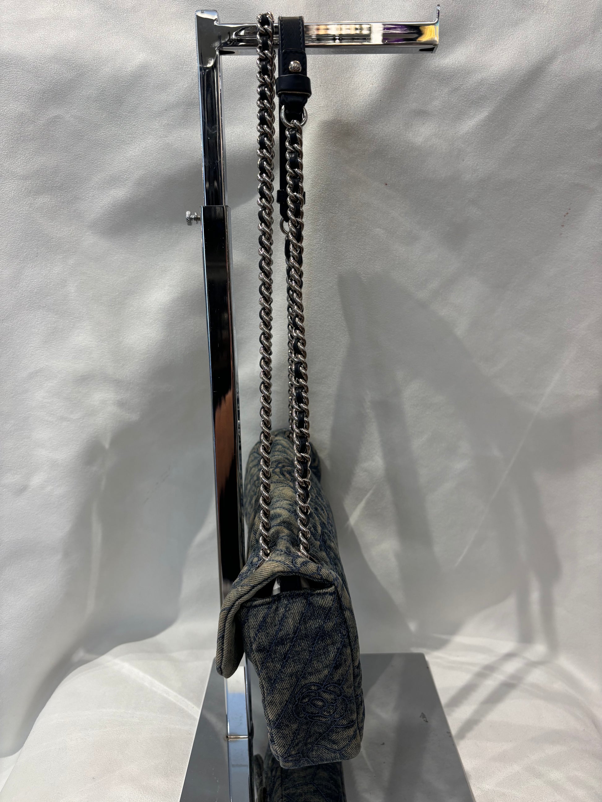 Chanel Blue Denim Camellia Embroidered Flap Bag with Silver Hardware
