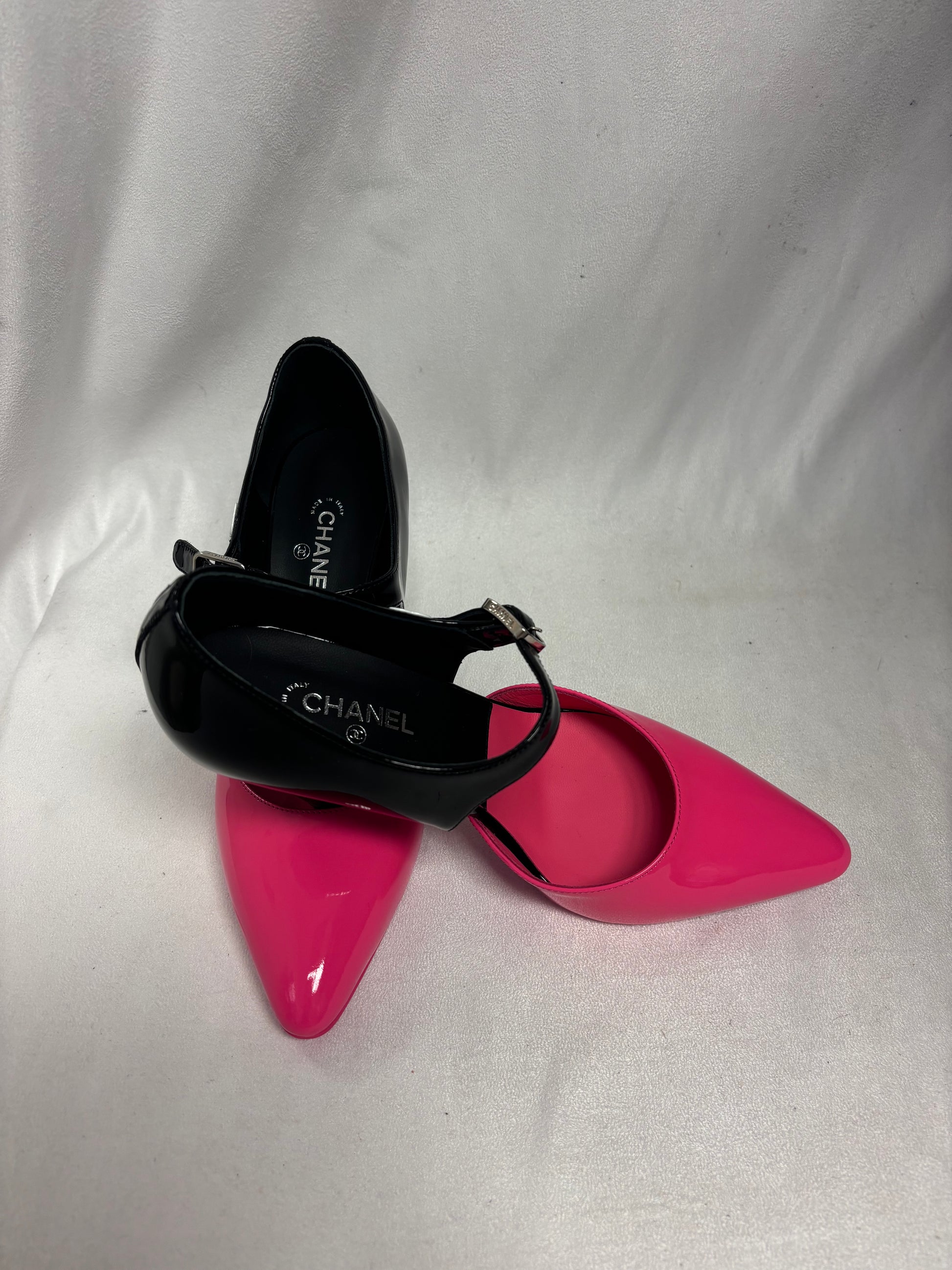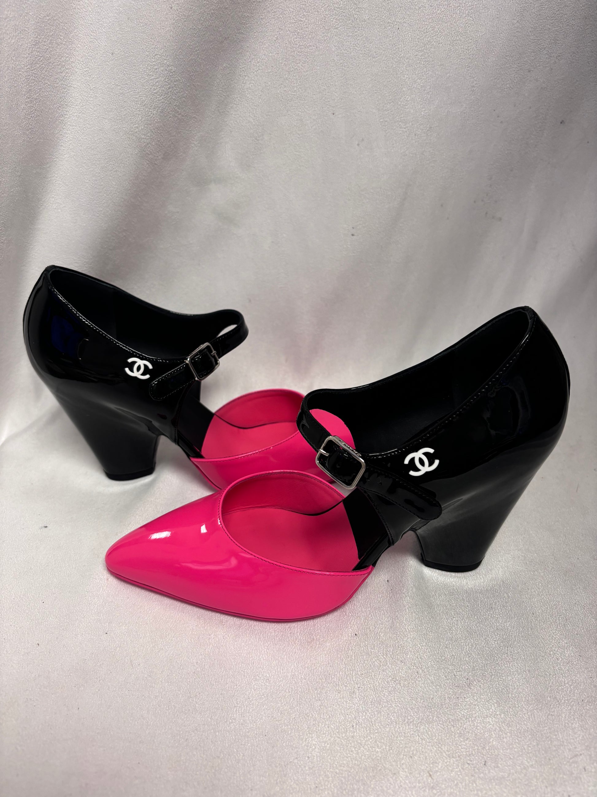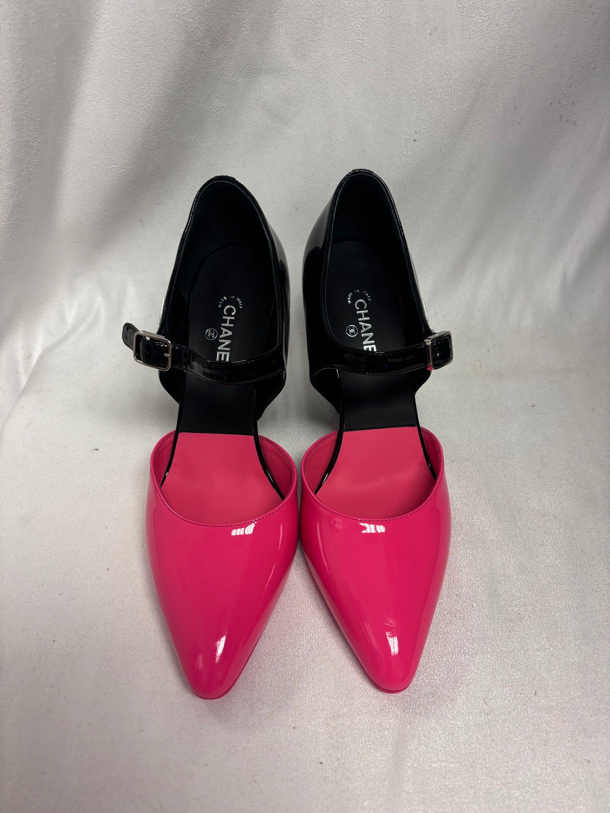 Chanel Pink/Black Patent Leather Mary Jane Pump Size 37