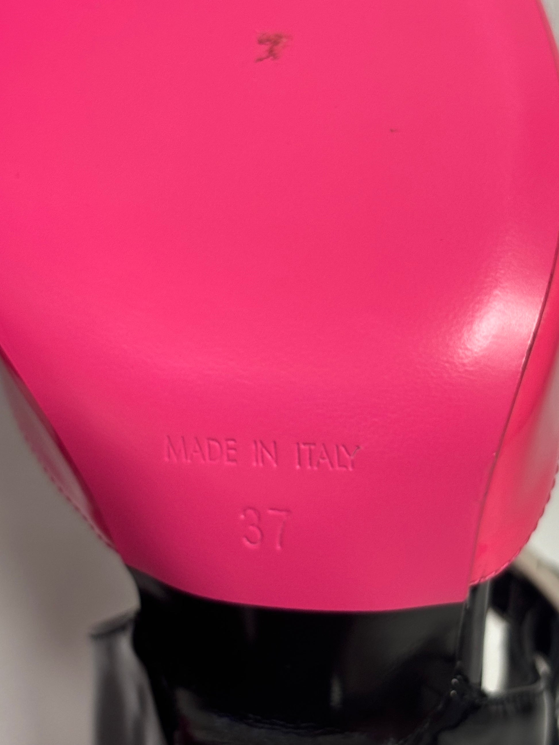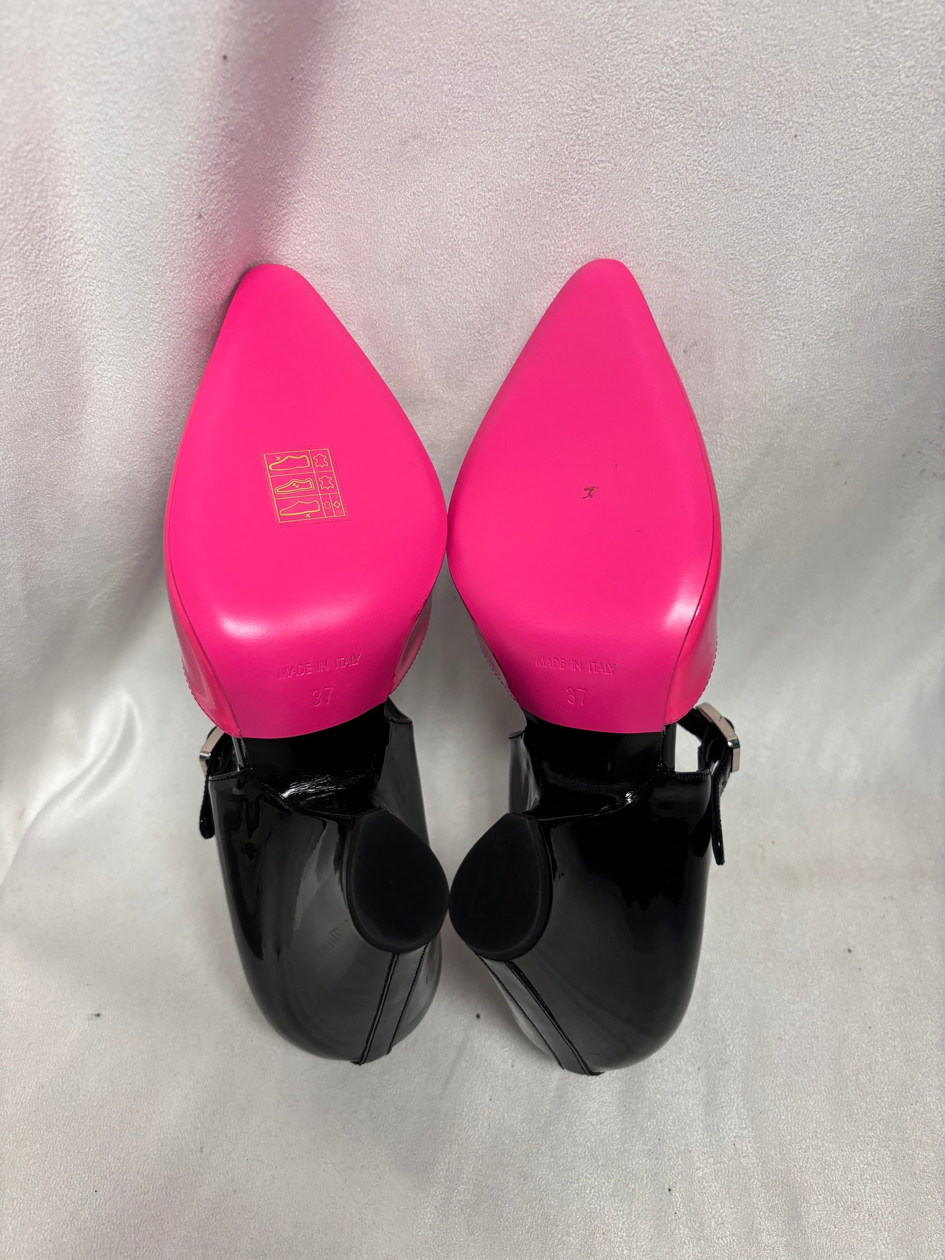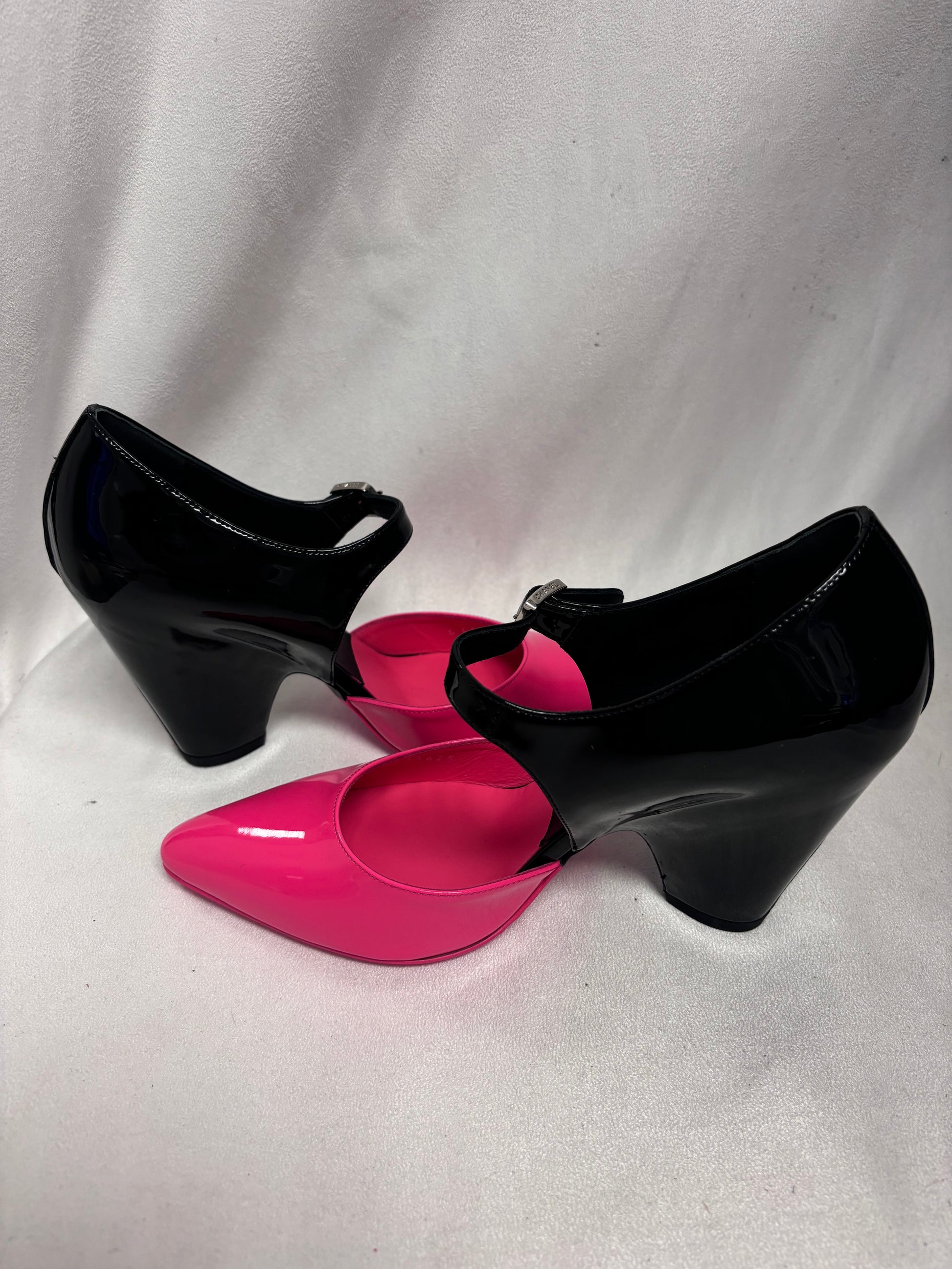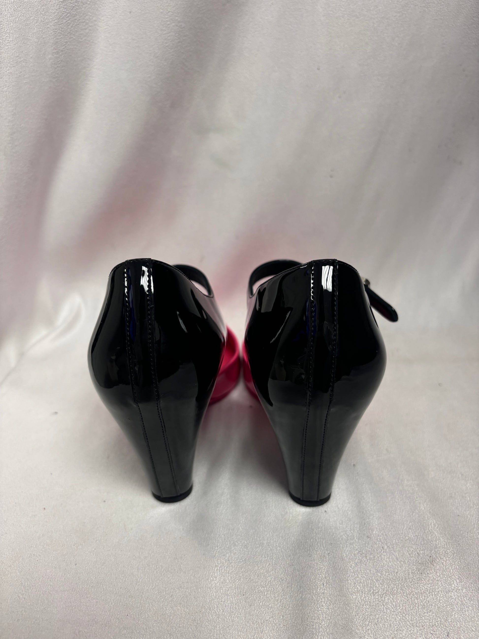 Chanel Pink/Black Patent Leather Mary Jane Pump Size 37