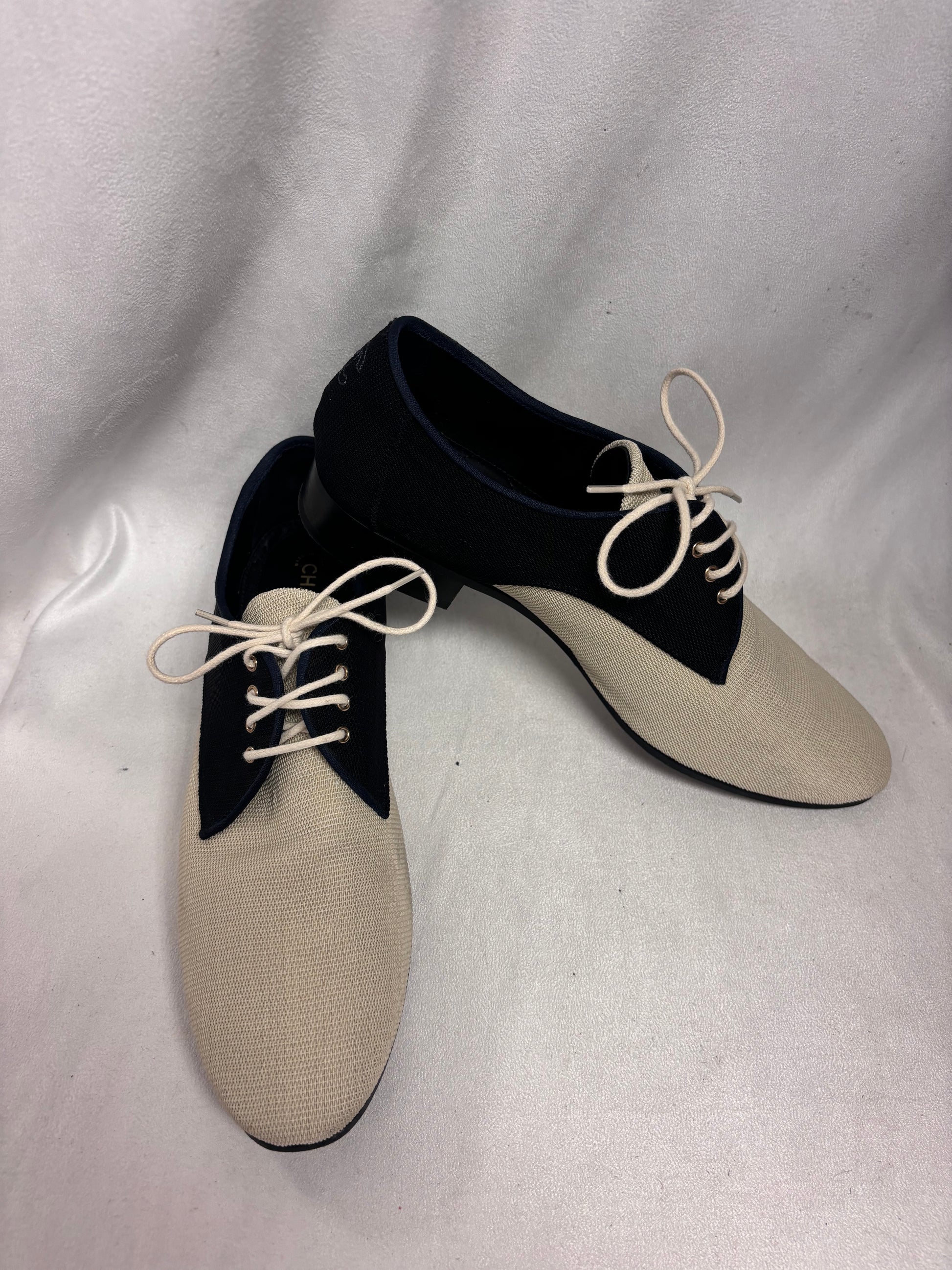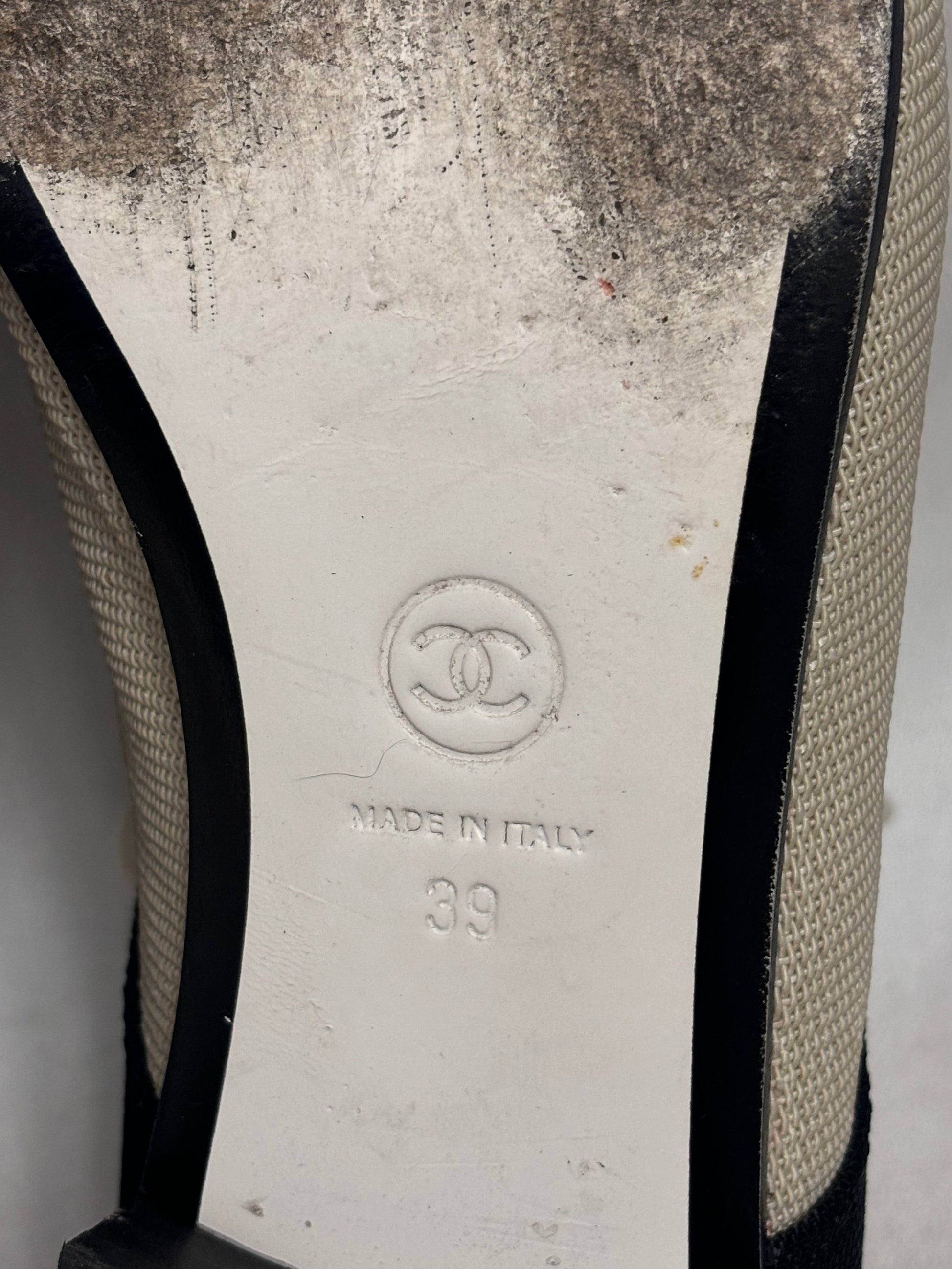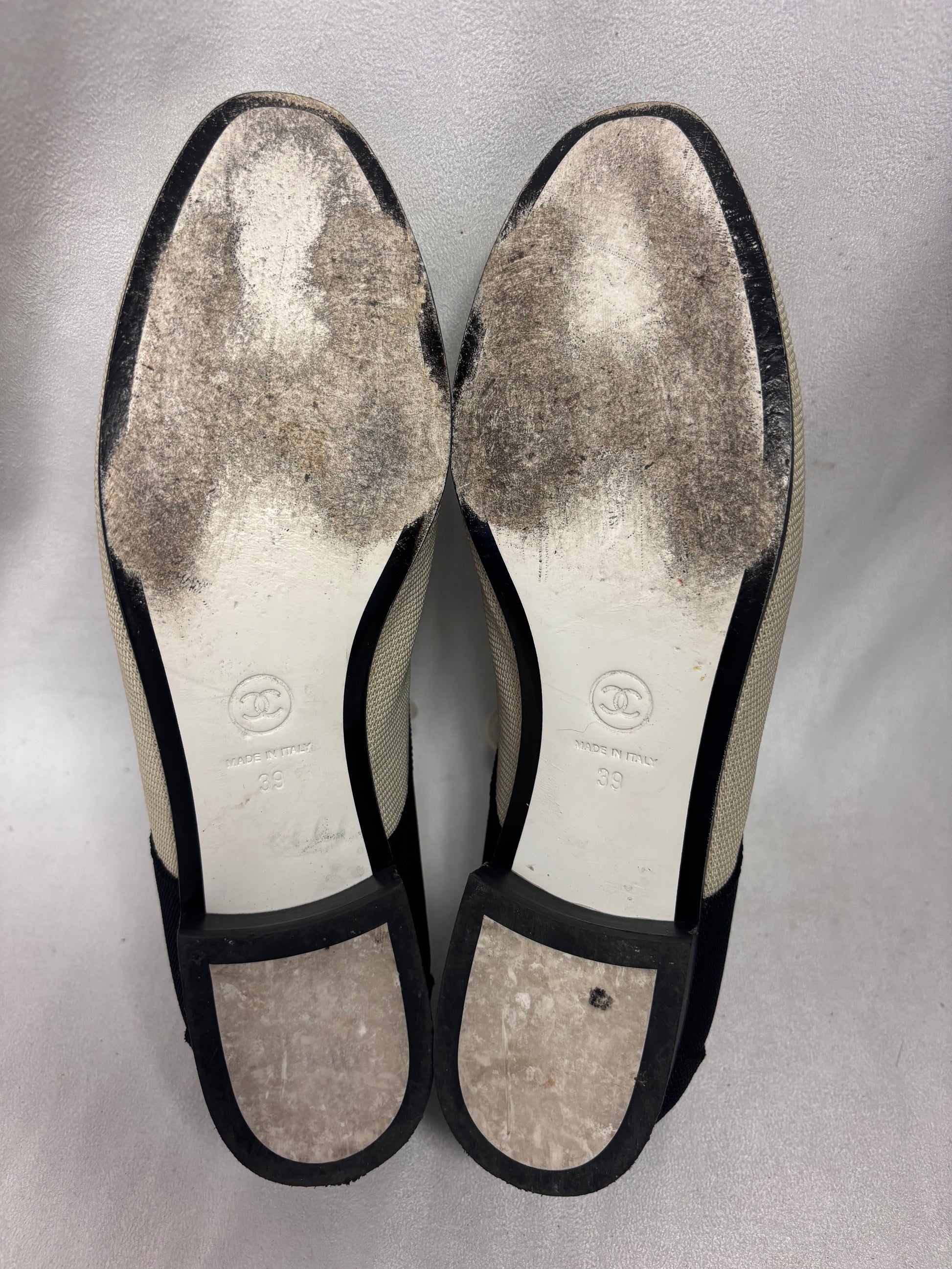 Chanel Beige Lace Up Loafers with Black Top Size 39