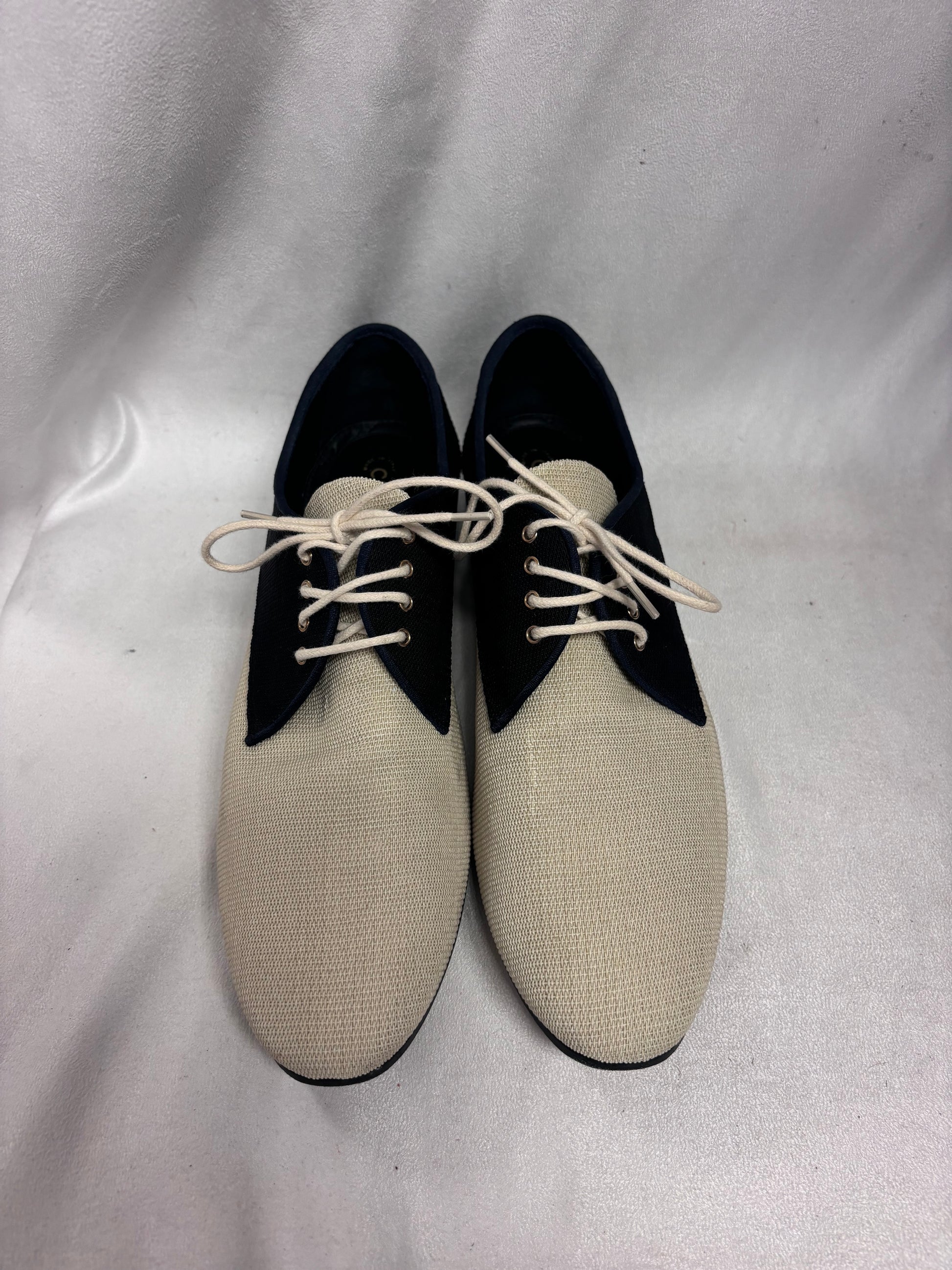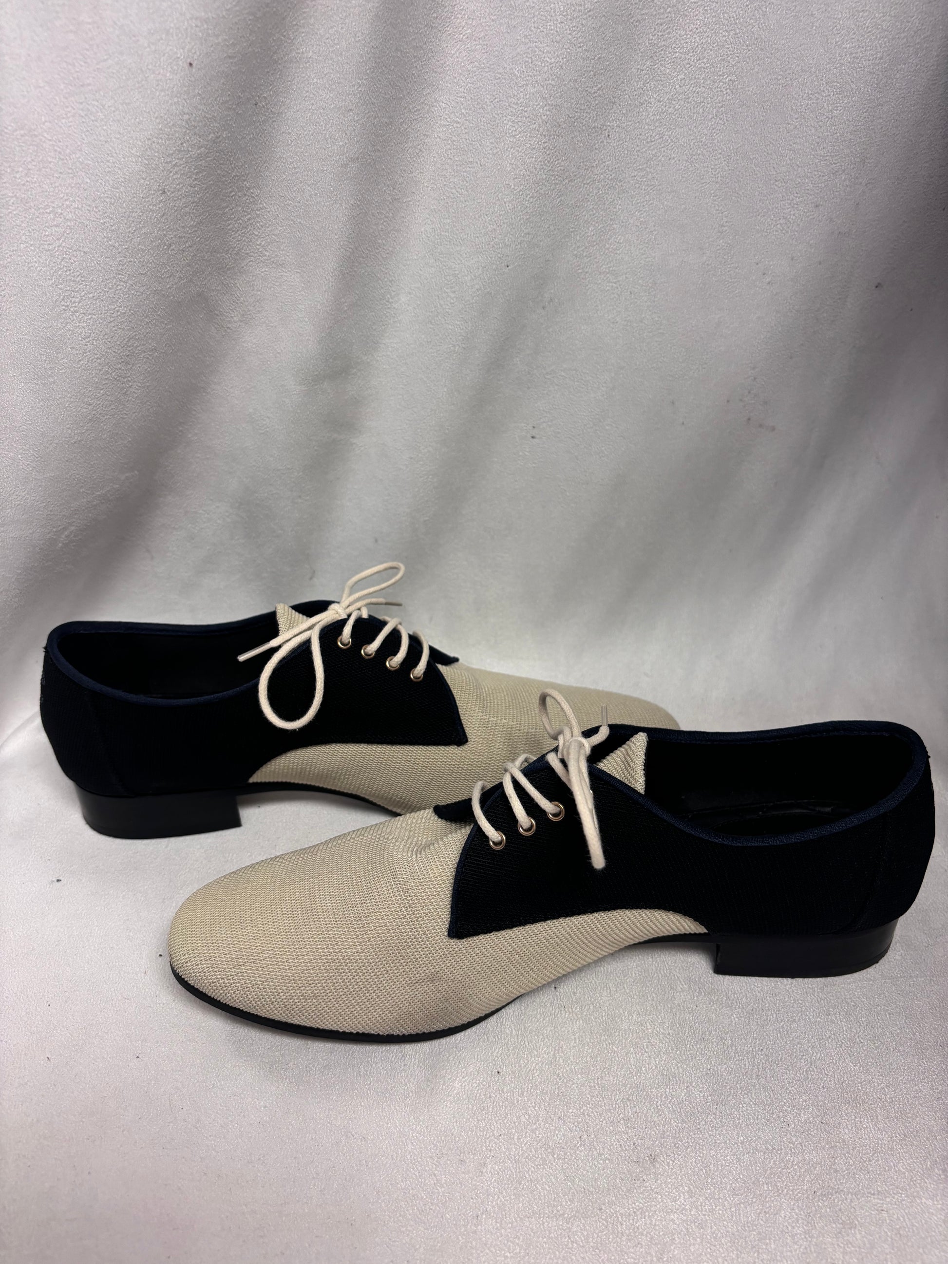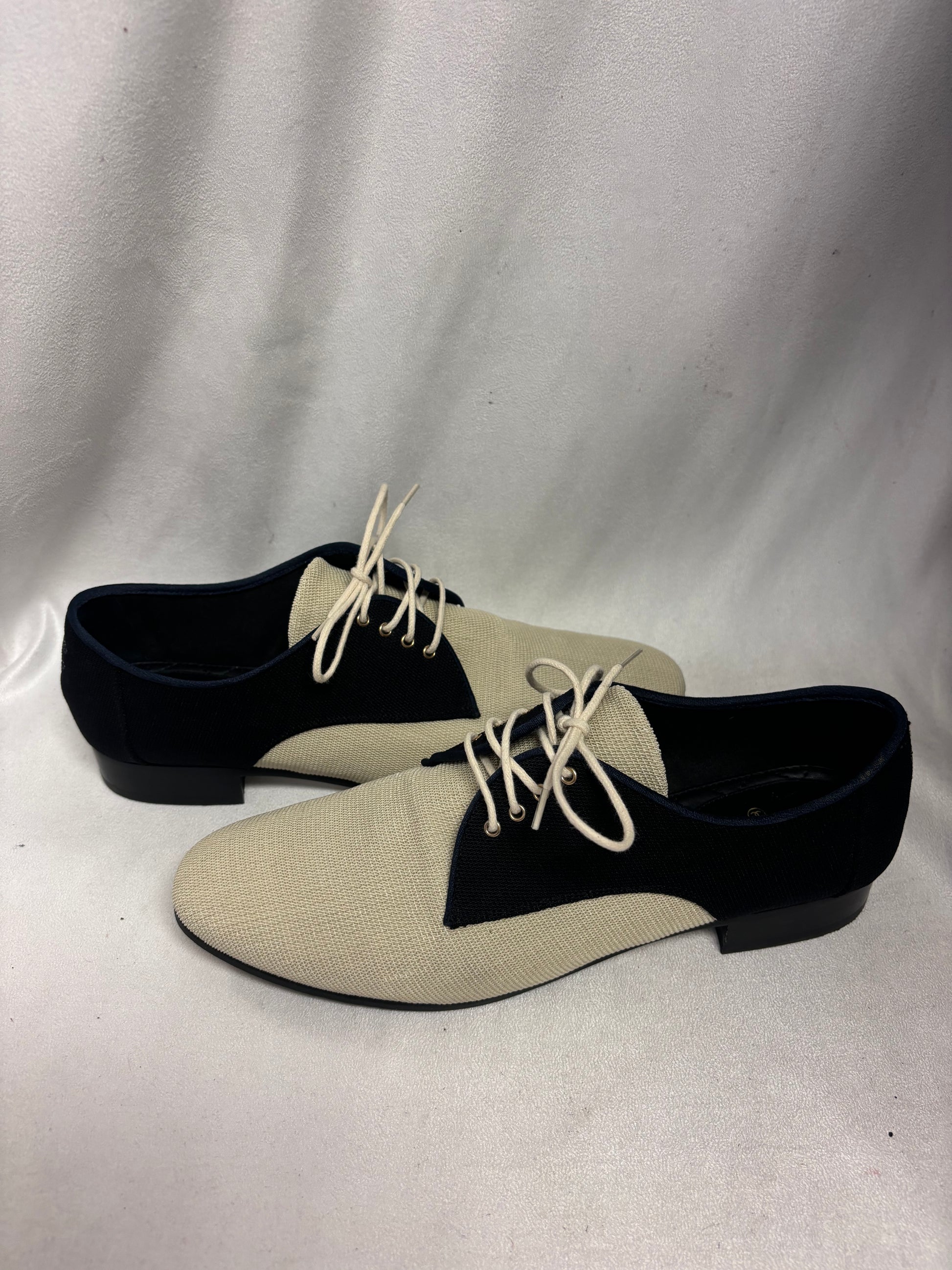 Chanel Beige Lace Up Loafers with Black Top Size 39