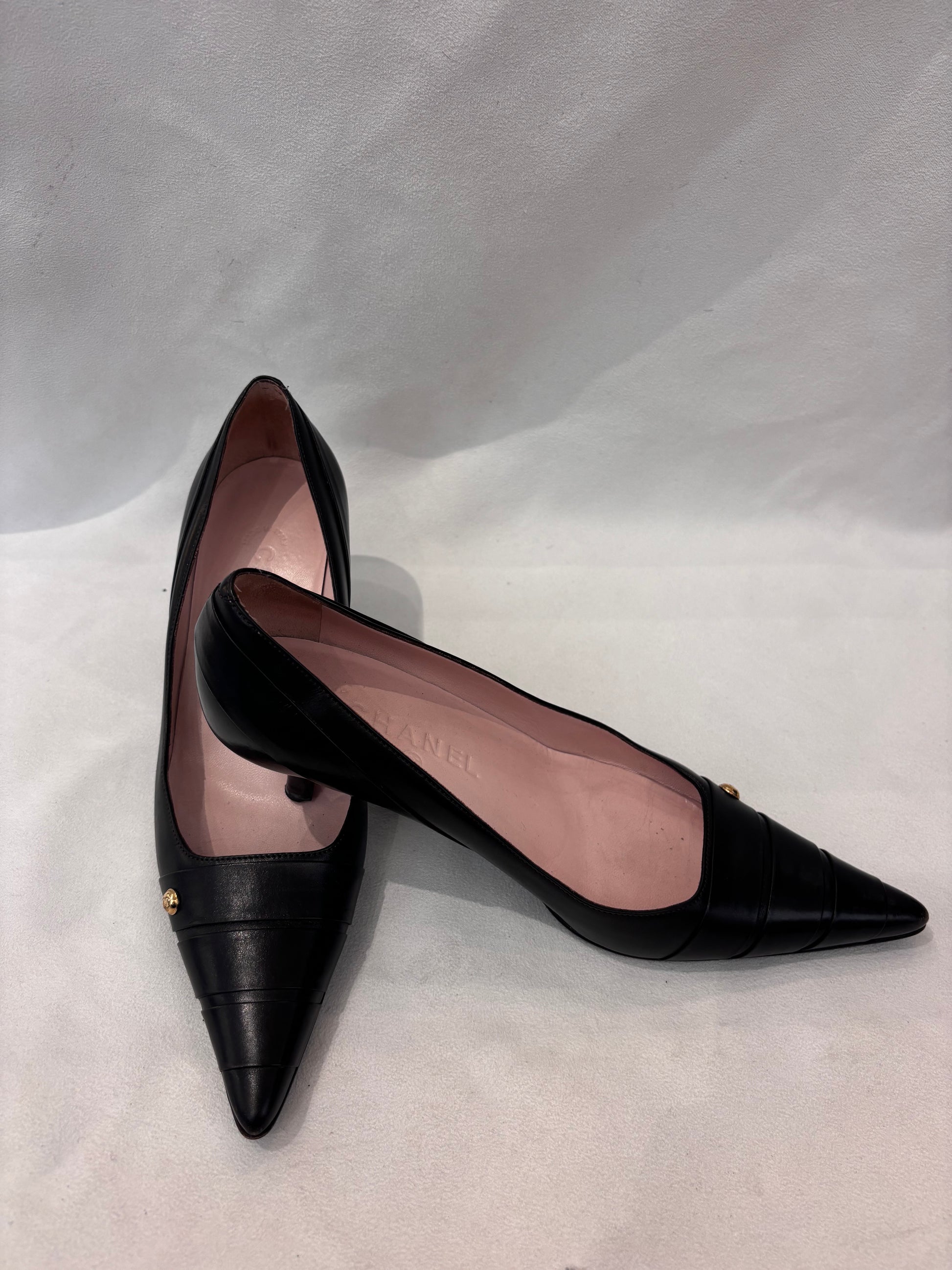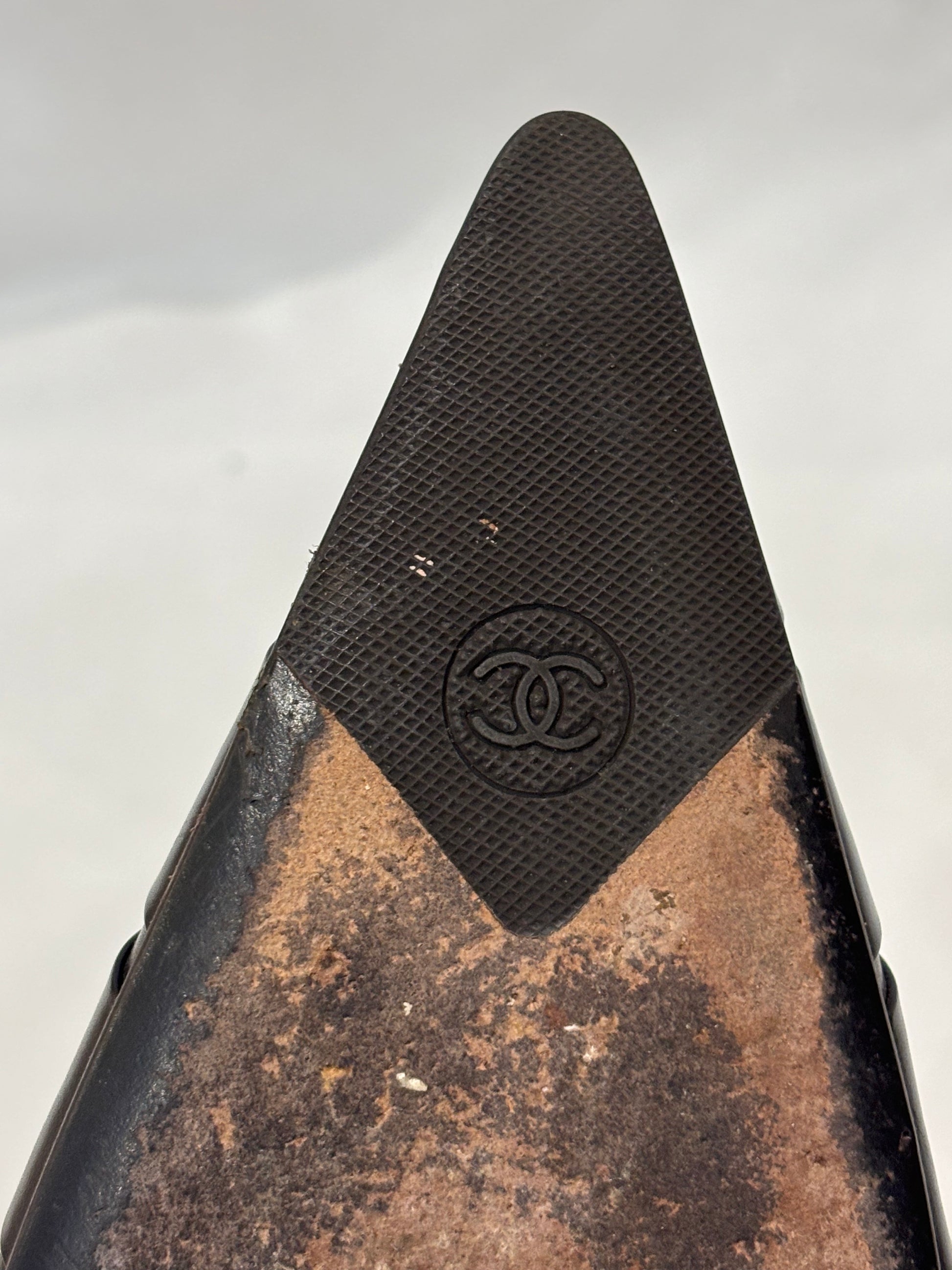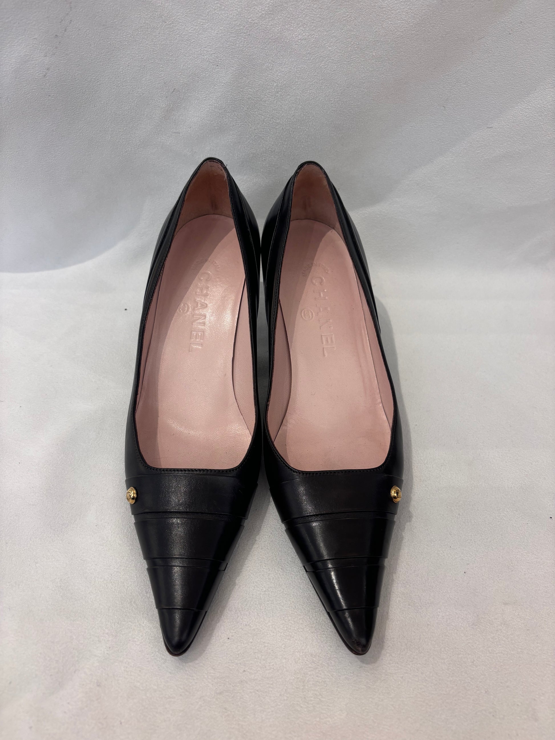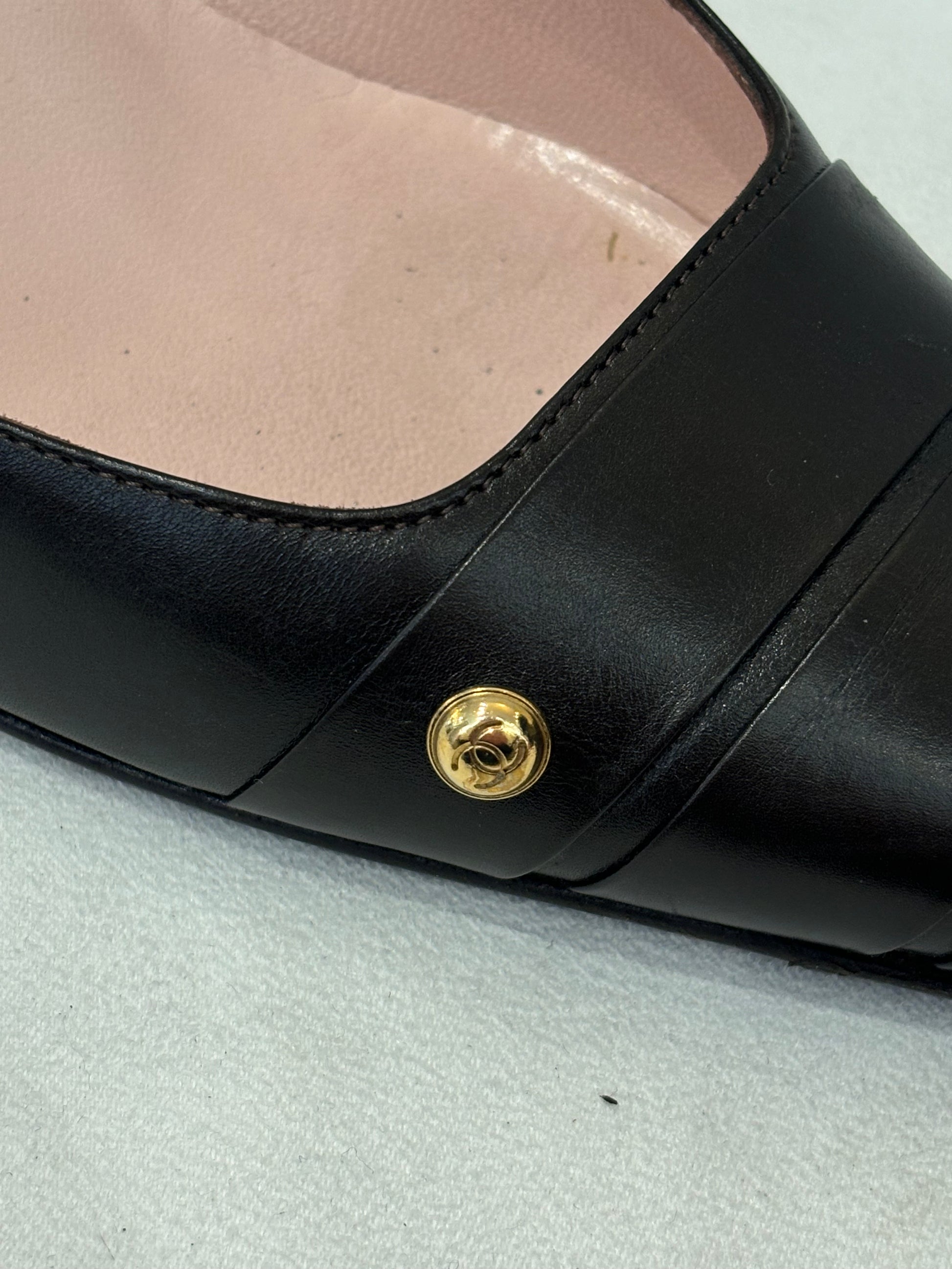 Chanel Brown Pointy Pump with Gold Side Button Size 38