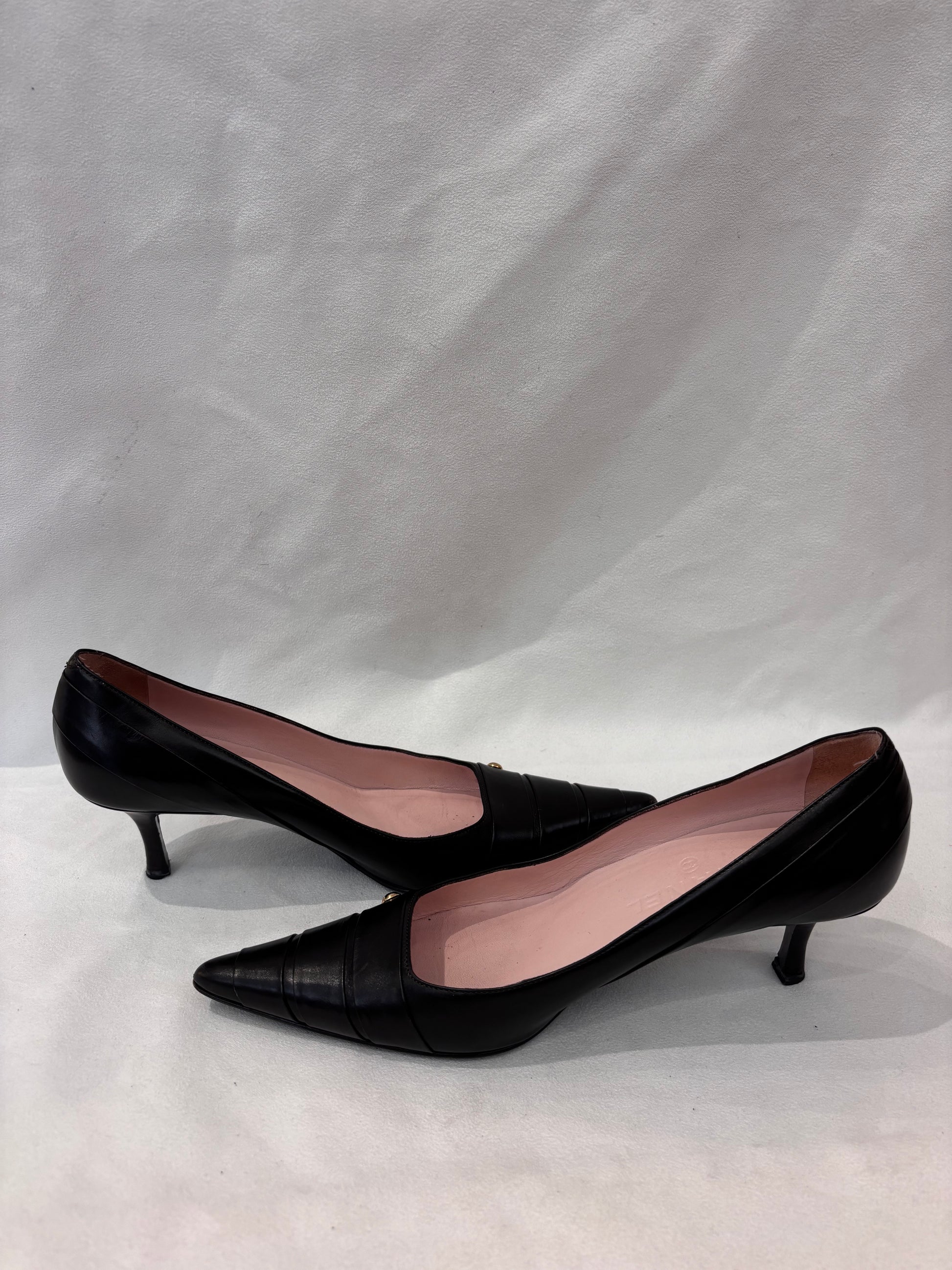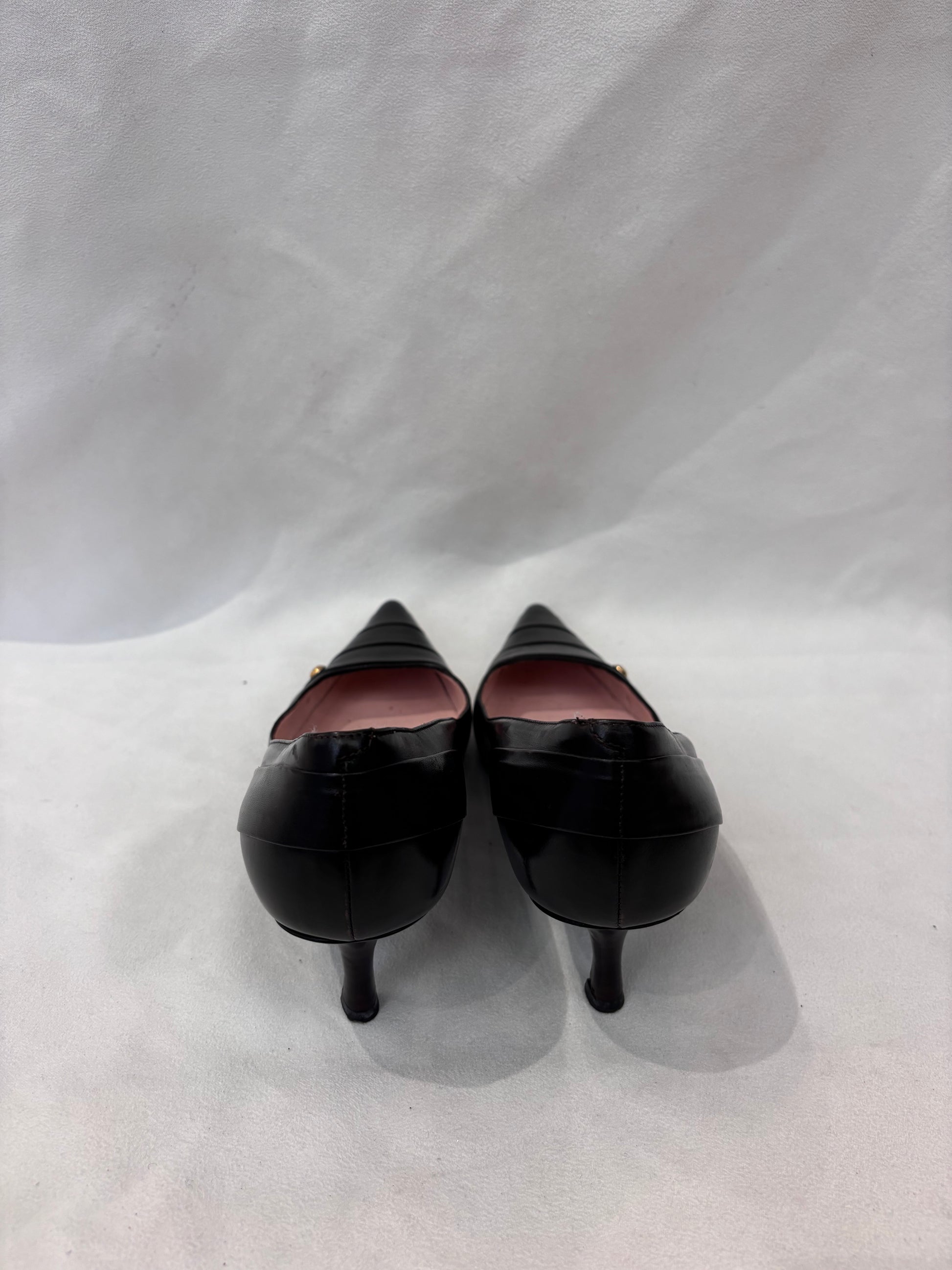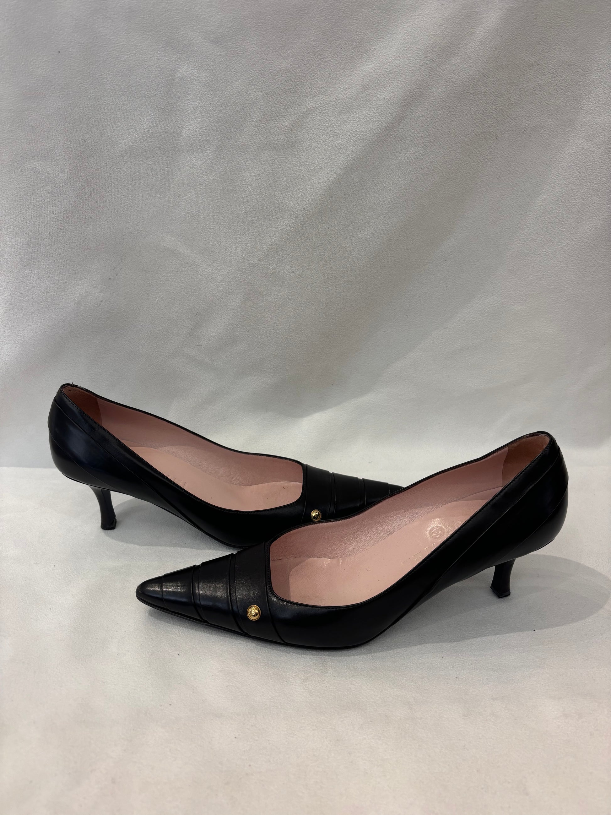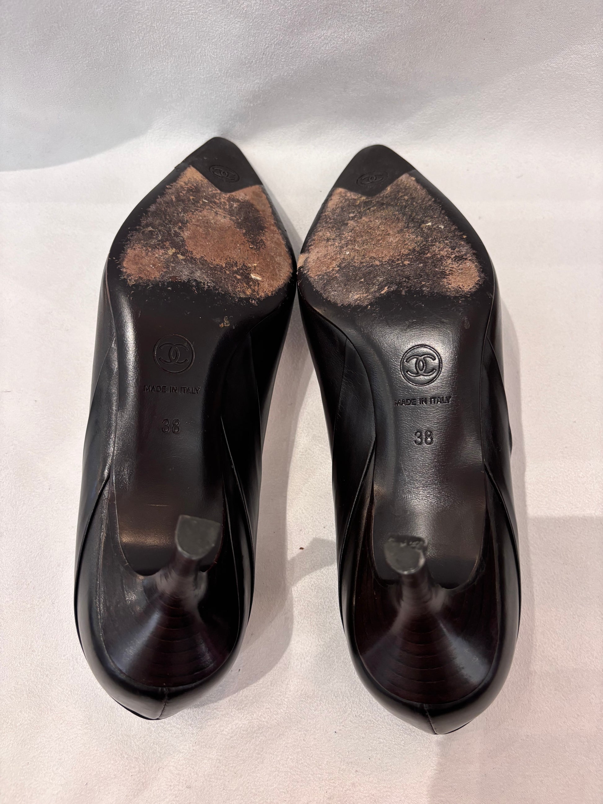 Chanel Brown Pointy Pump with Gold Side Button Size 38