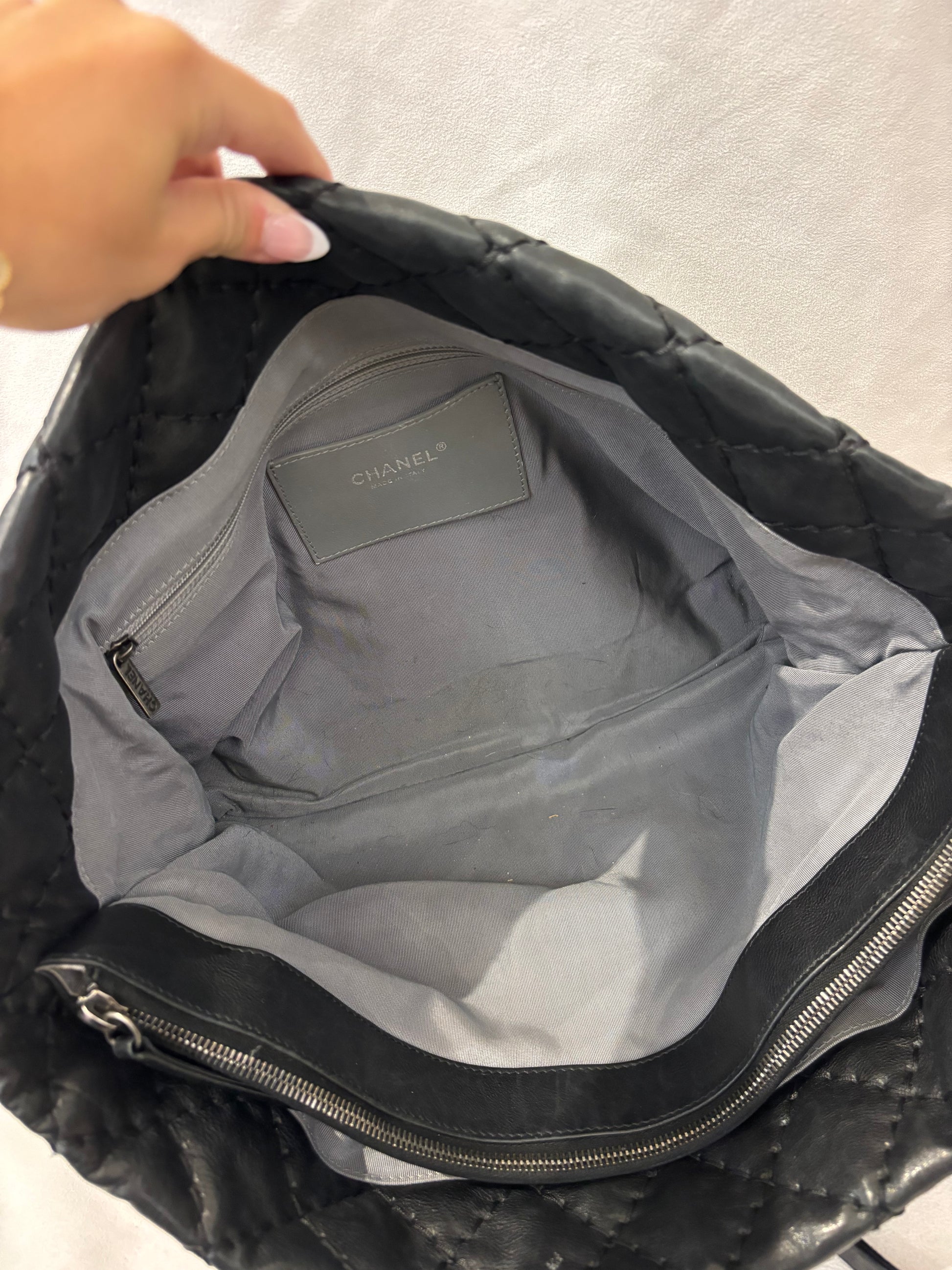 Chanel Large Black Coco Pleats Tote with Ruthenium Hardware
