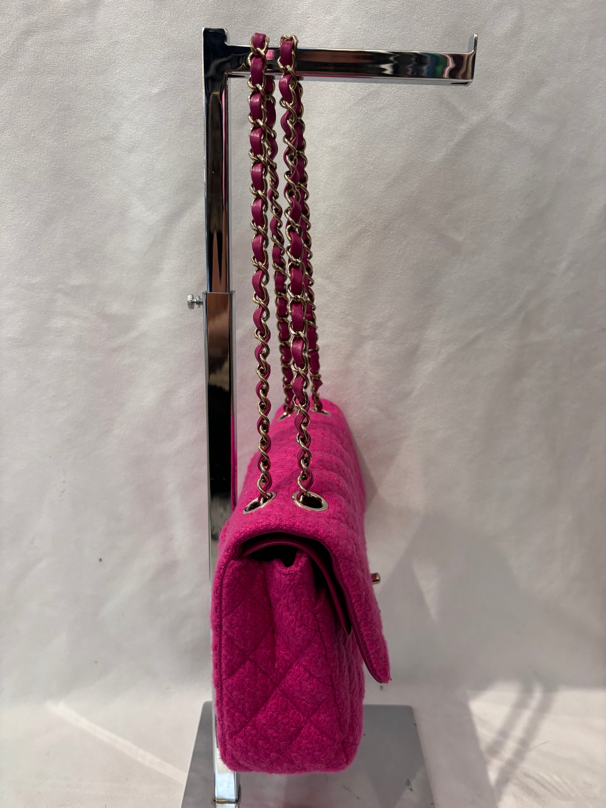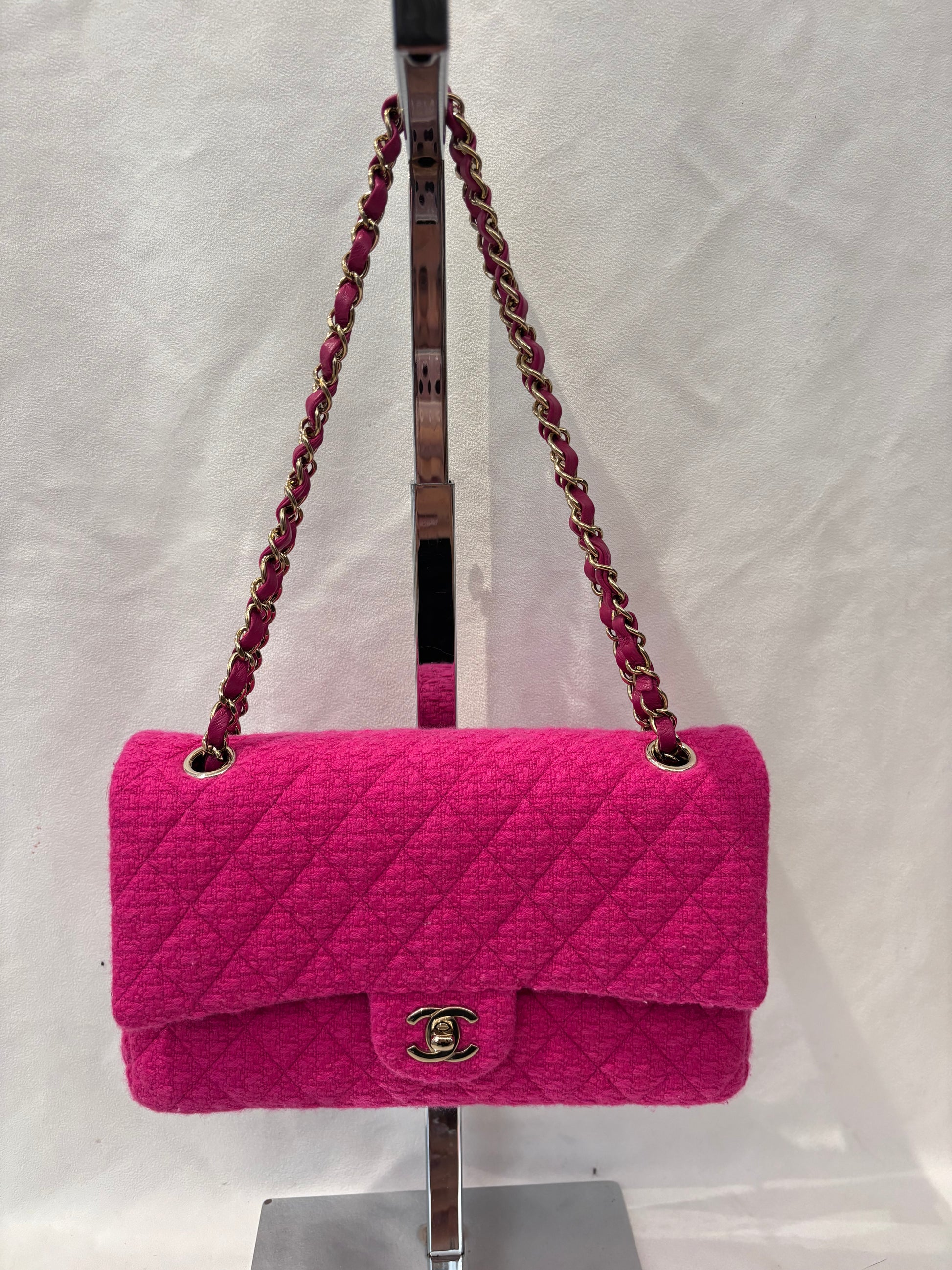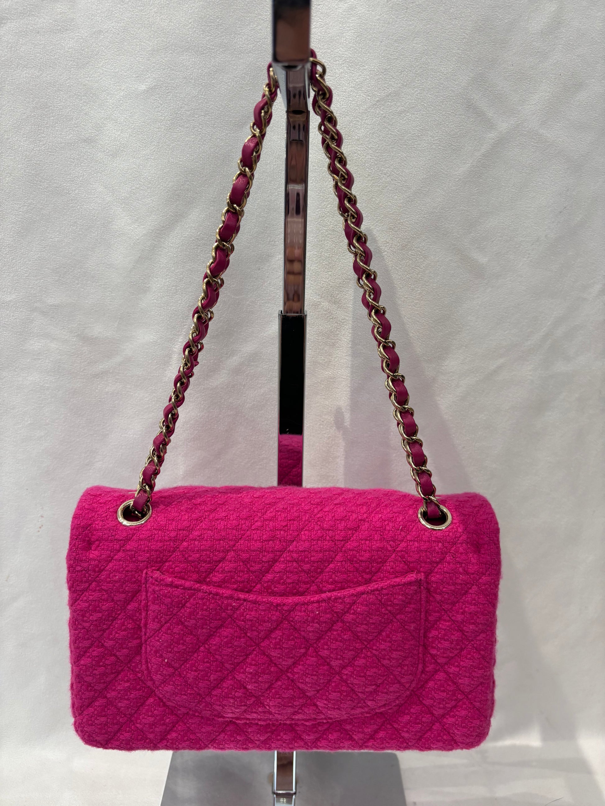 Chanel Fuschia Tweed Medium Classic Double Flap with Gold Hardware
