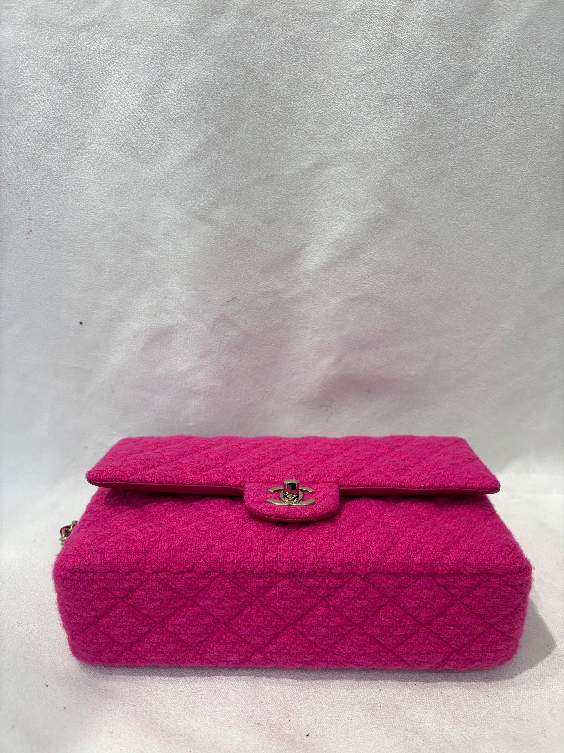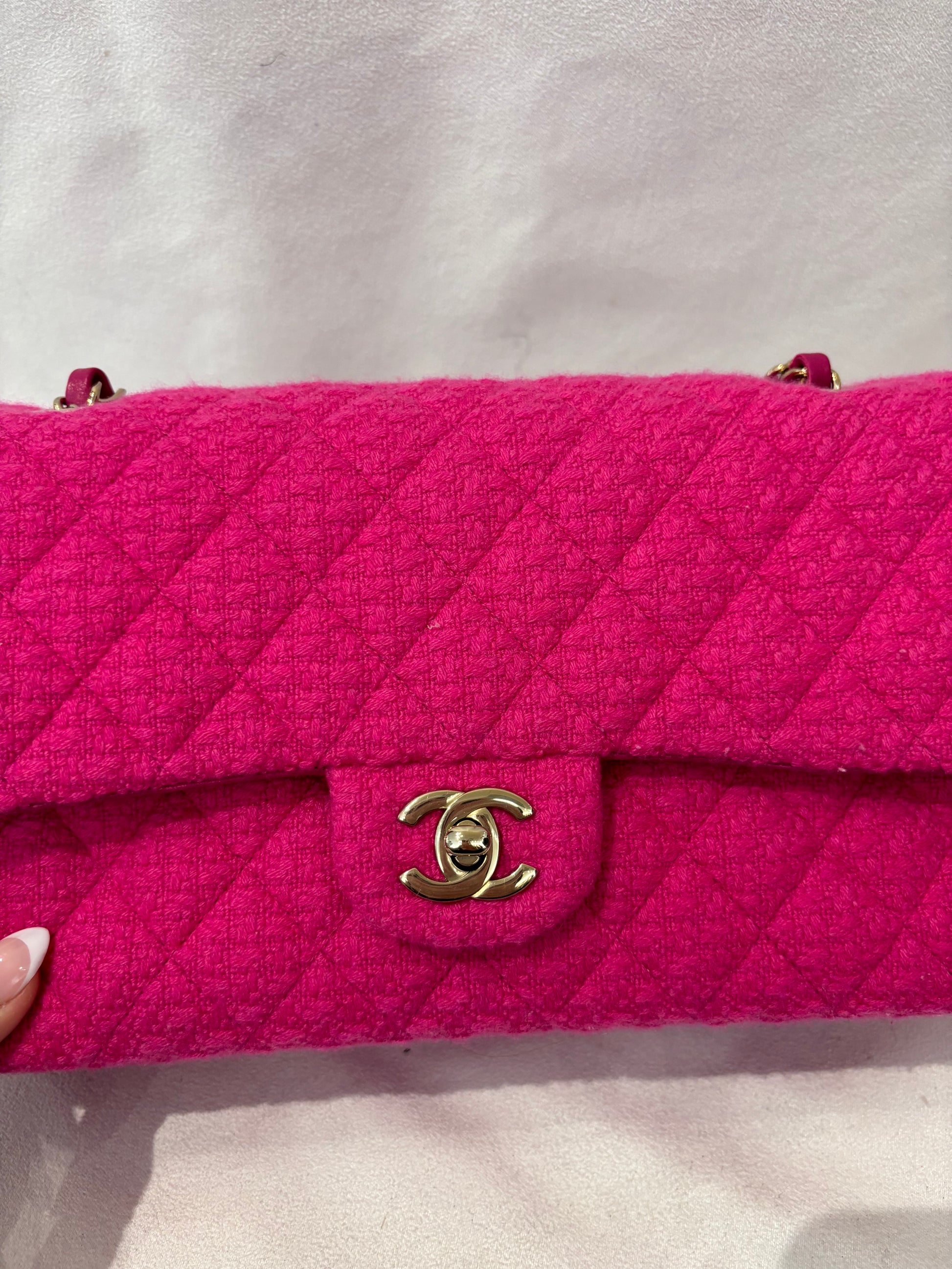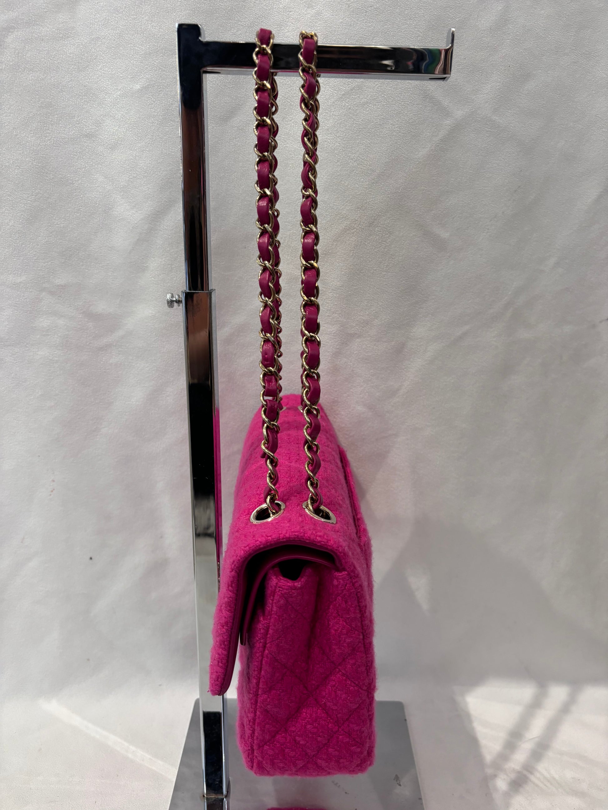 Chanel Fuschia Tweed Medium Classic Double Flap with Gold Hardware