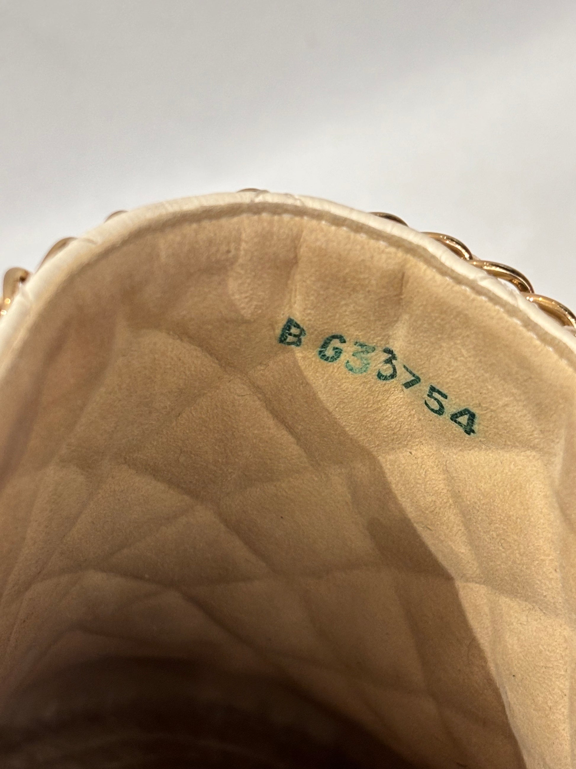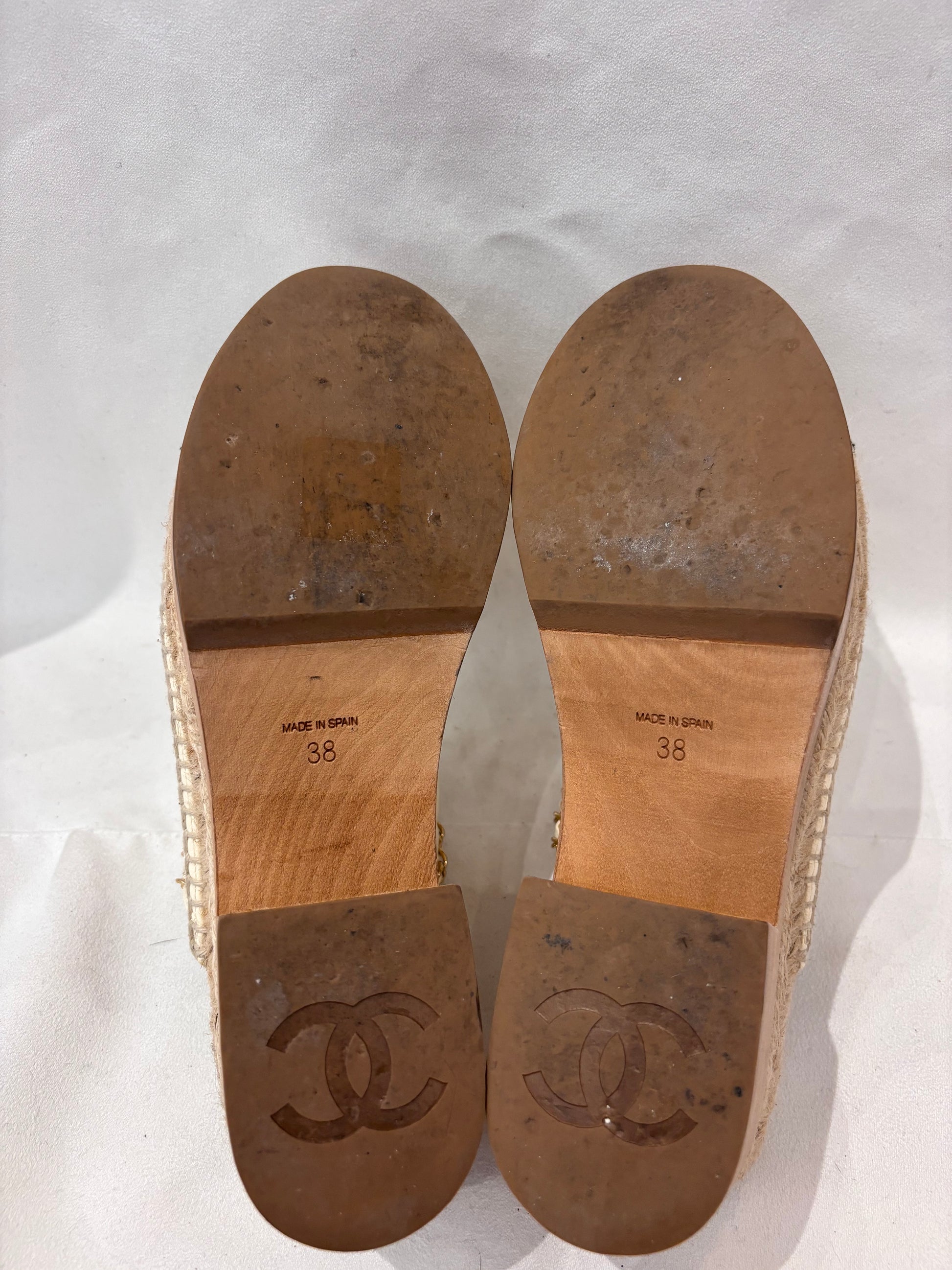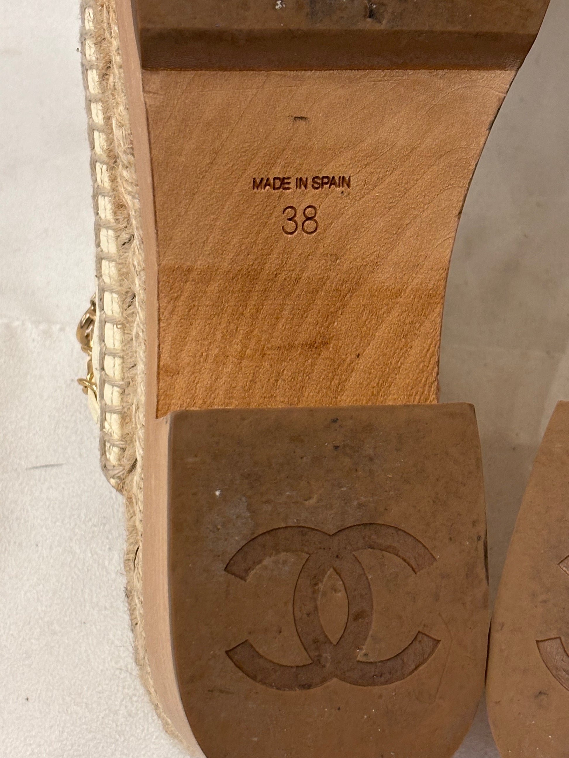 Chanel Cream Diamond Quilted Mules with Black Toe Cap/Gold Chain CC Size 38