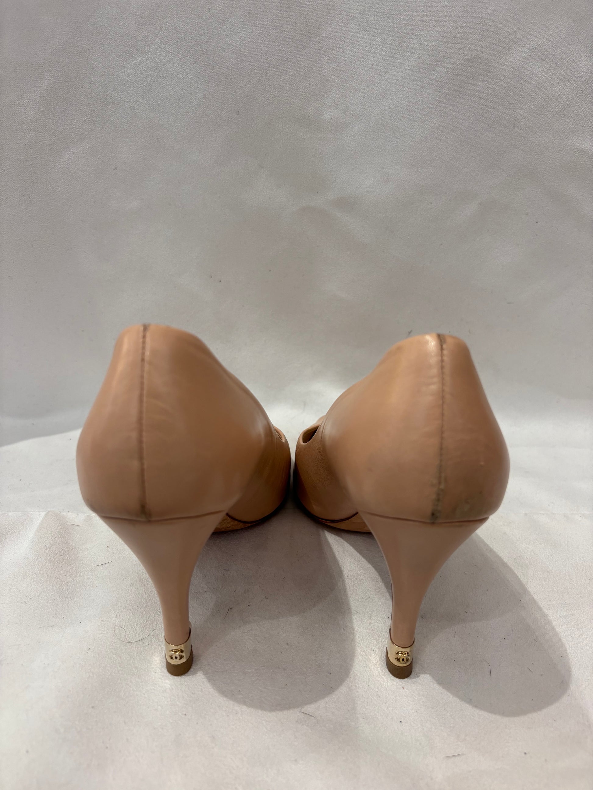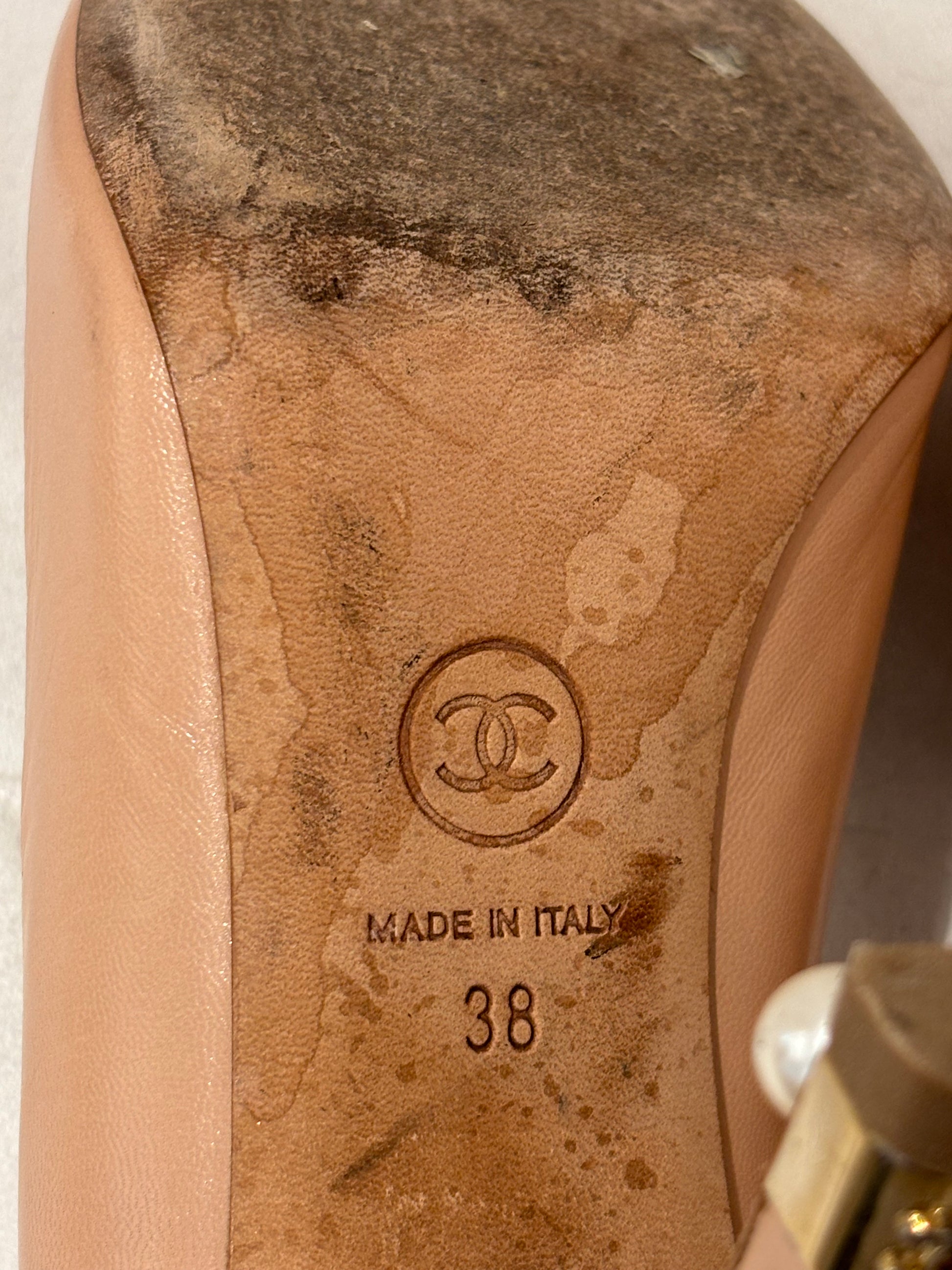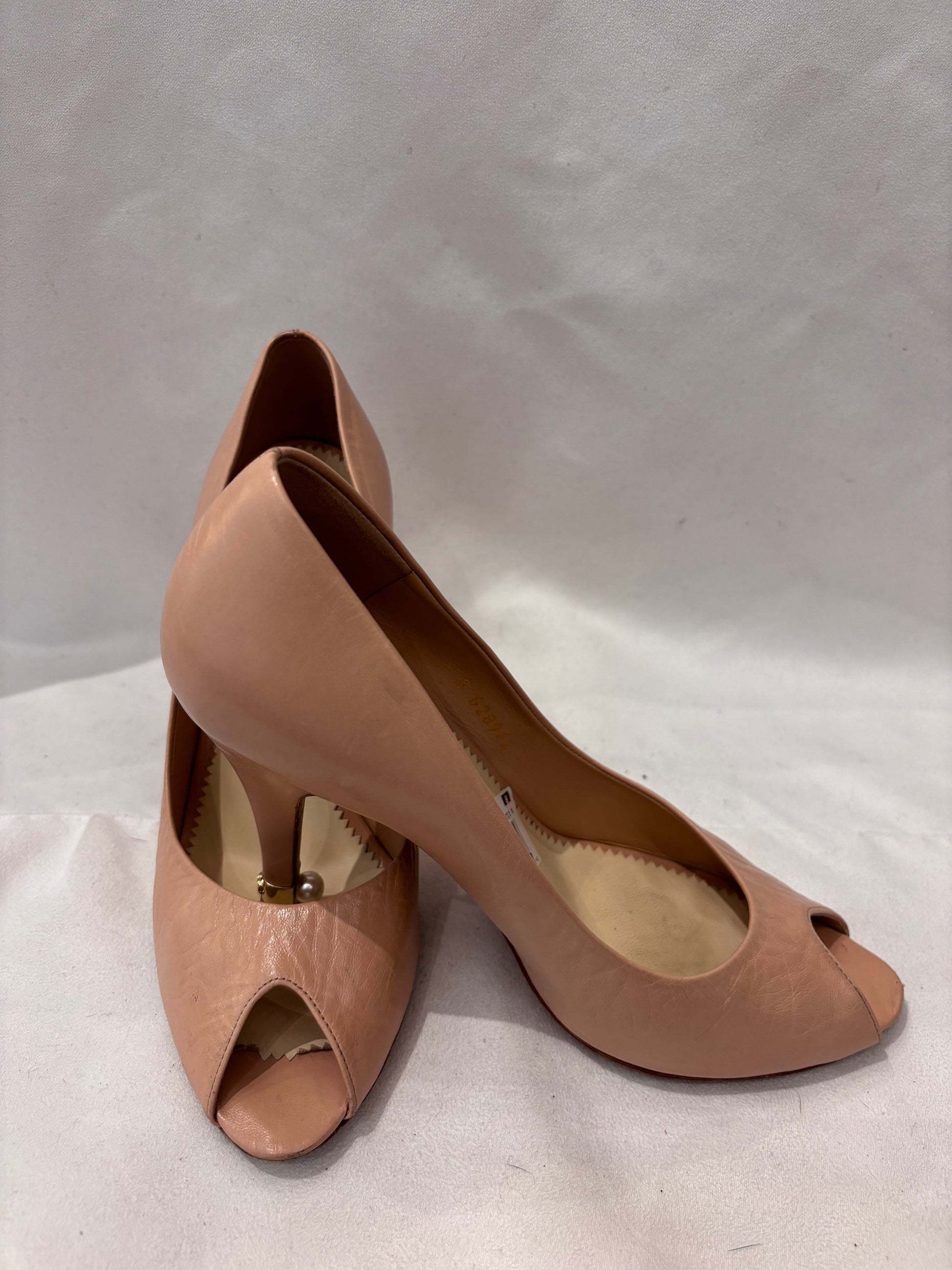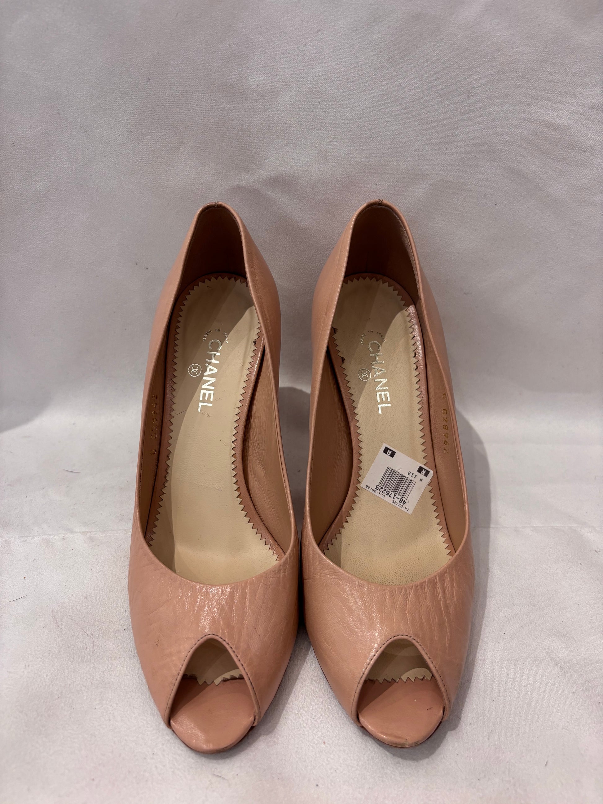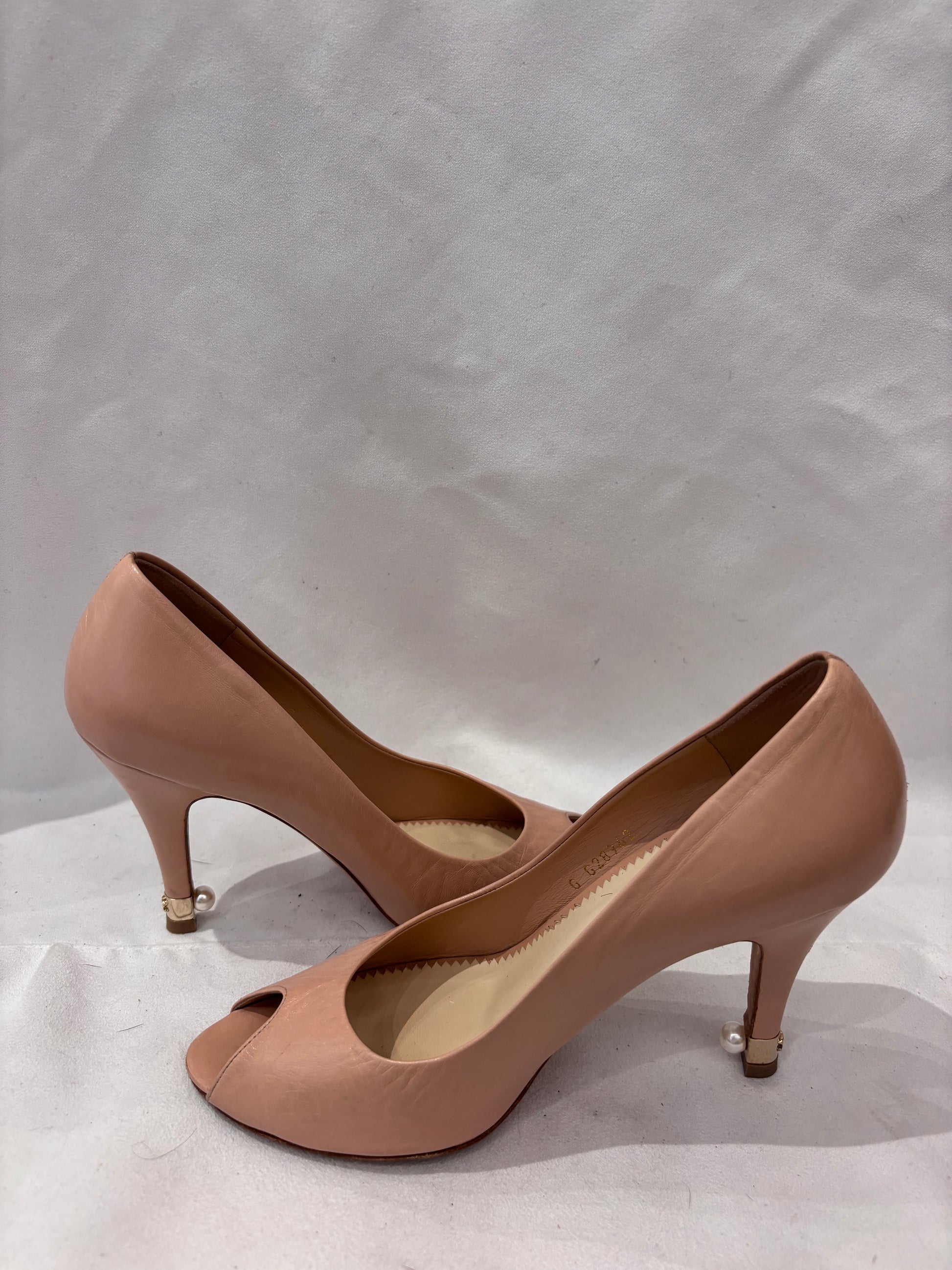 Chanel Nude Peep Toe Pump with One Pearl Heel Size 38