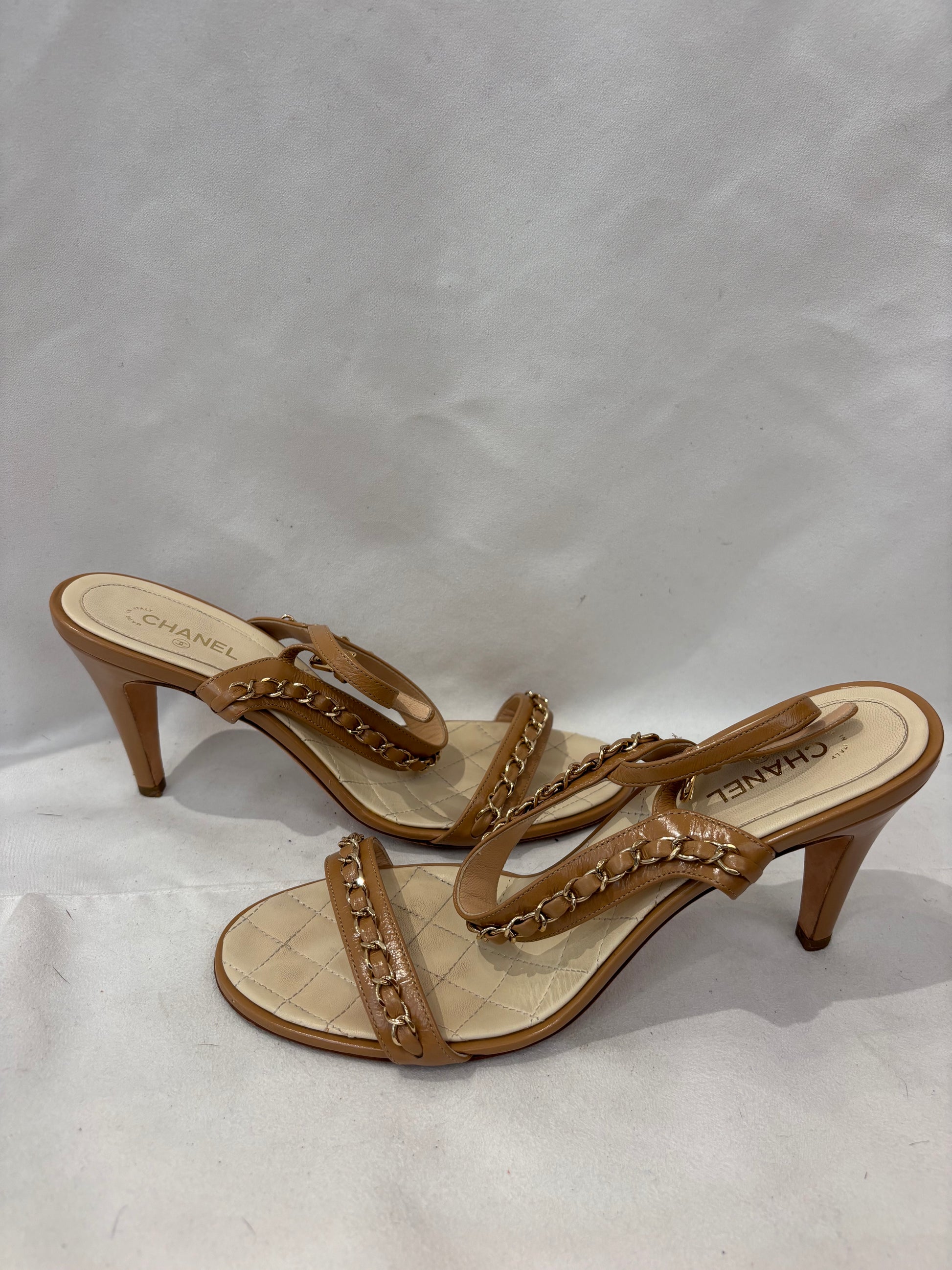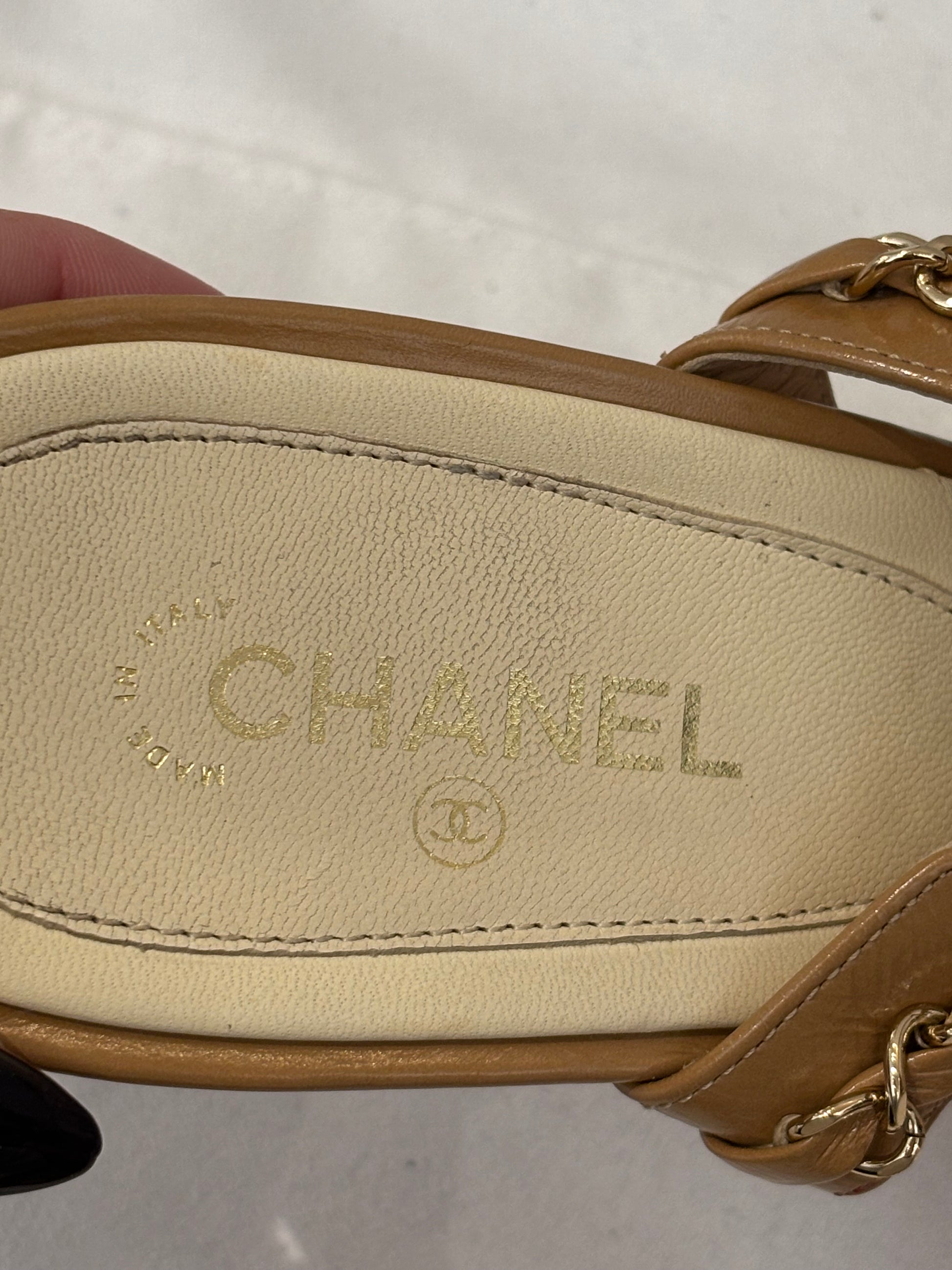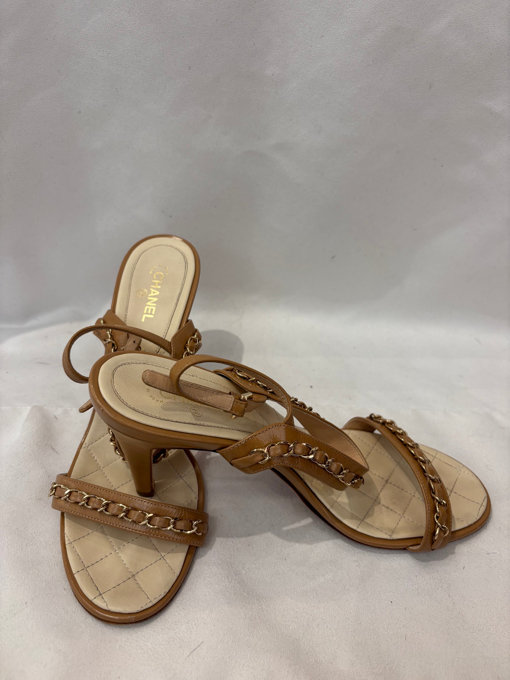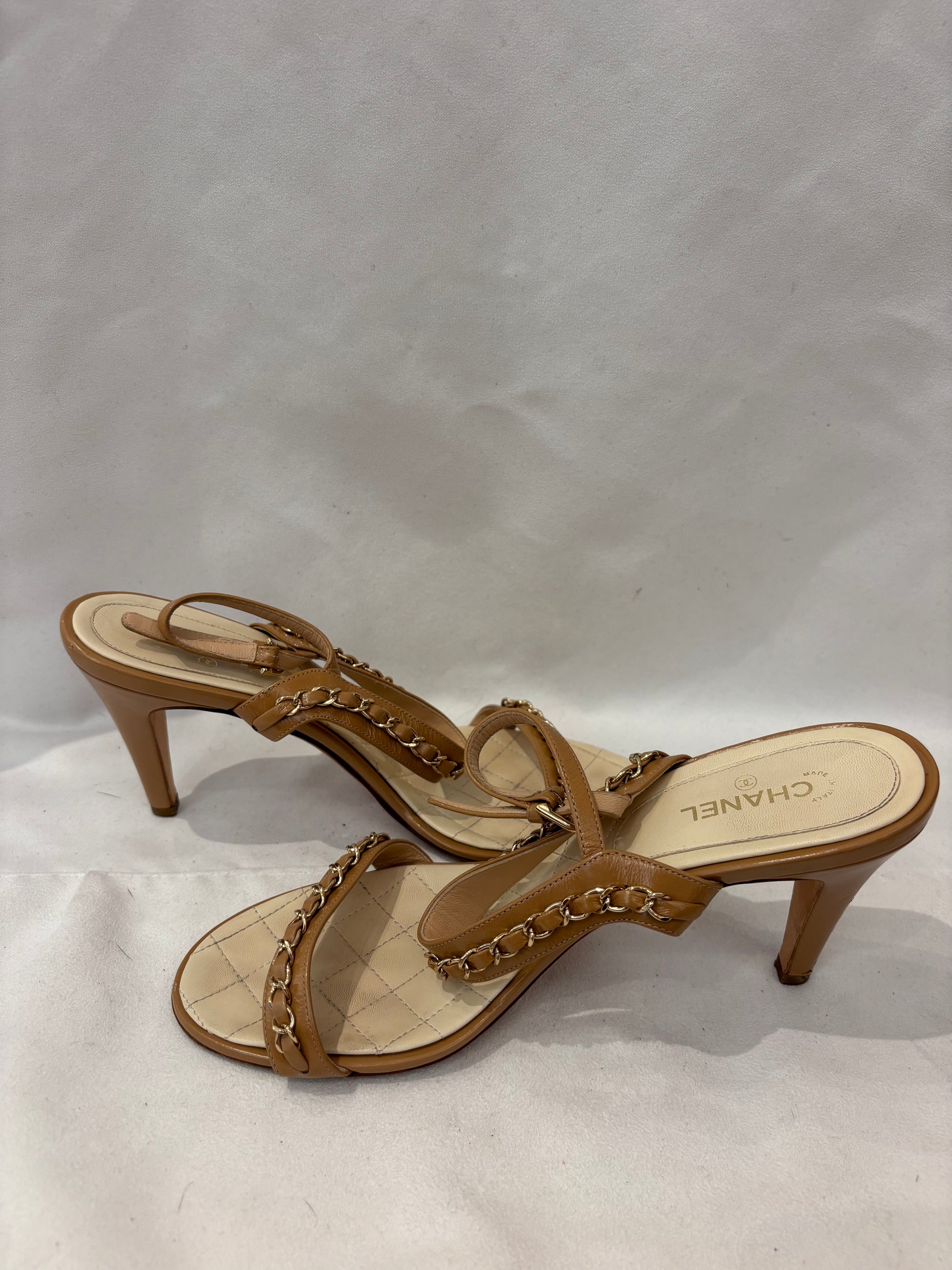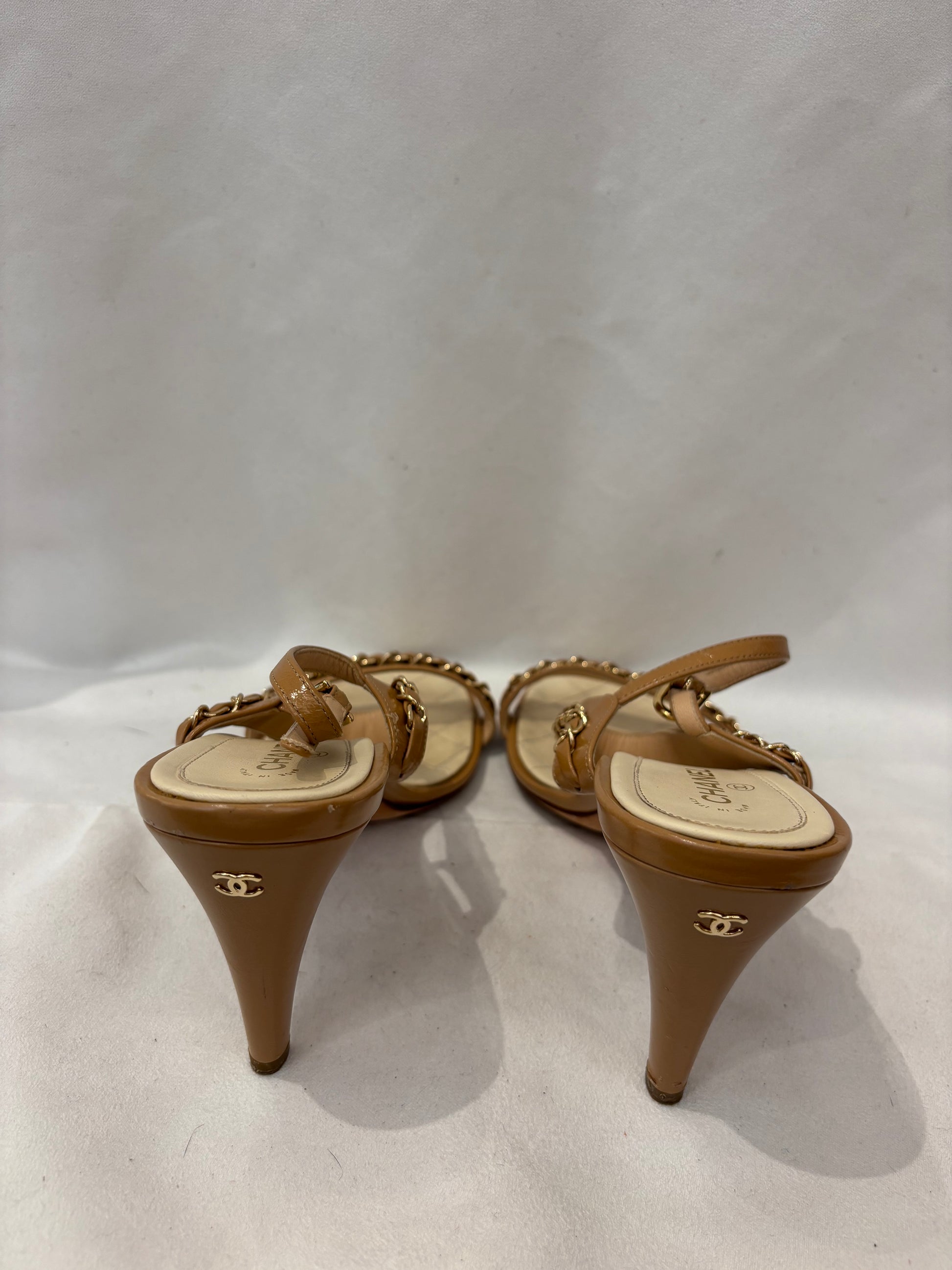 Chanel Beige Sandals with Gold Chain Trim Size 40