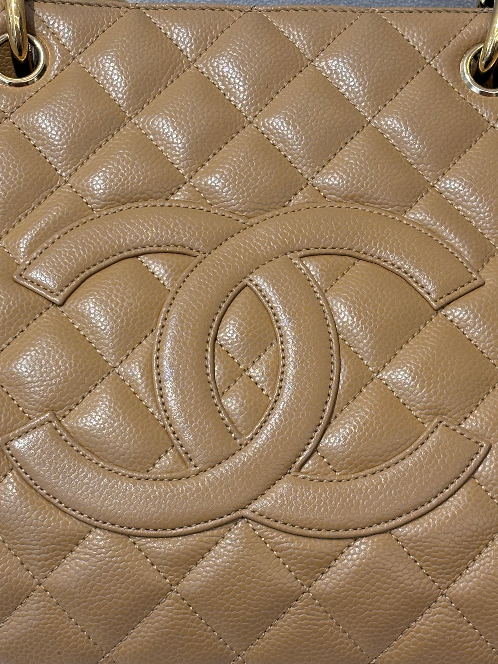 Chanel Beige Caviar Grand Shopping Tote with Silver Hardware