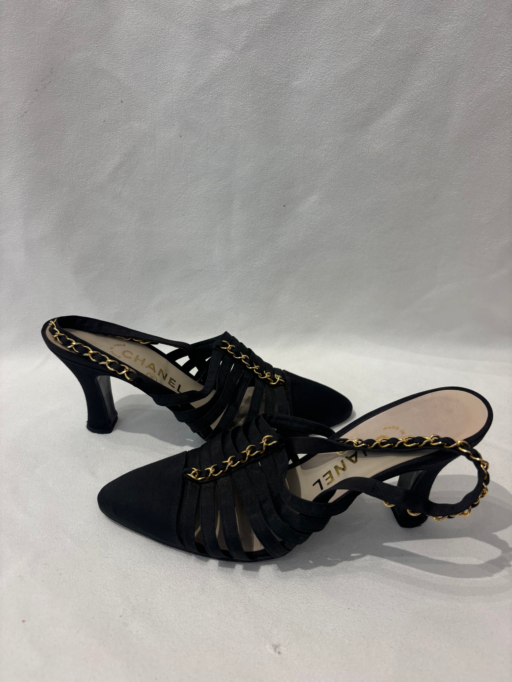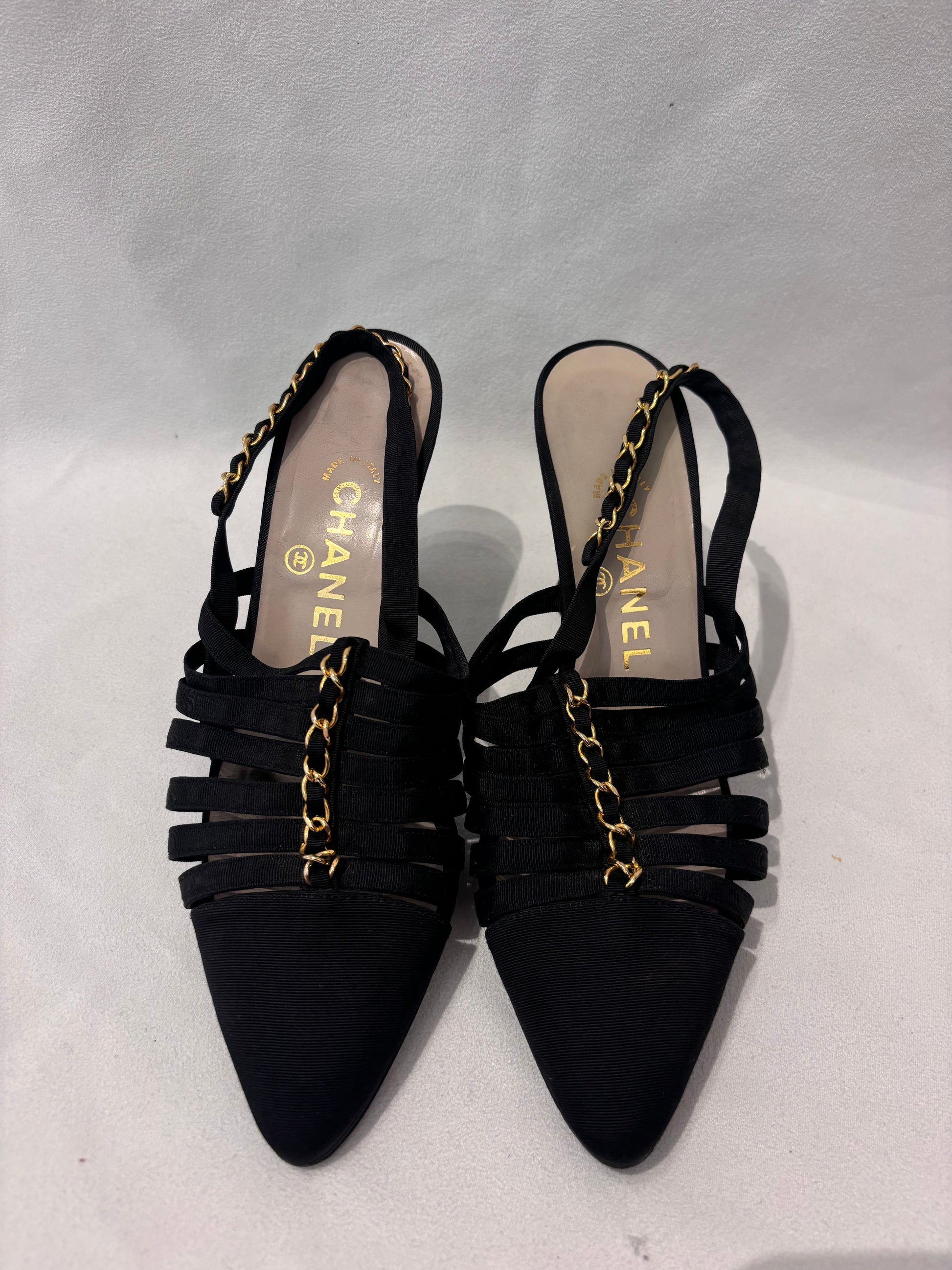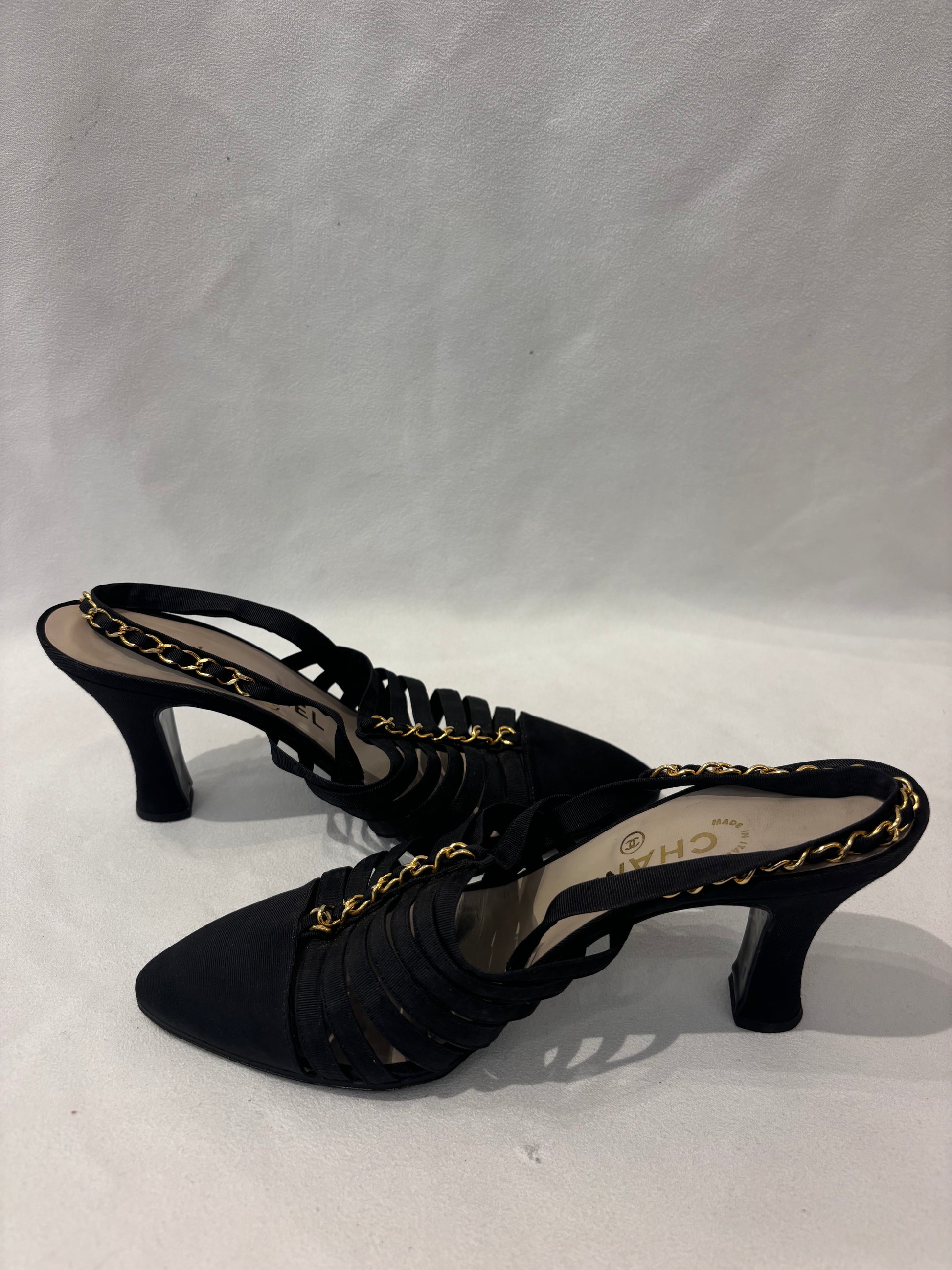 Chanel Vintage Black Grosgrain Pump with Gold Chain