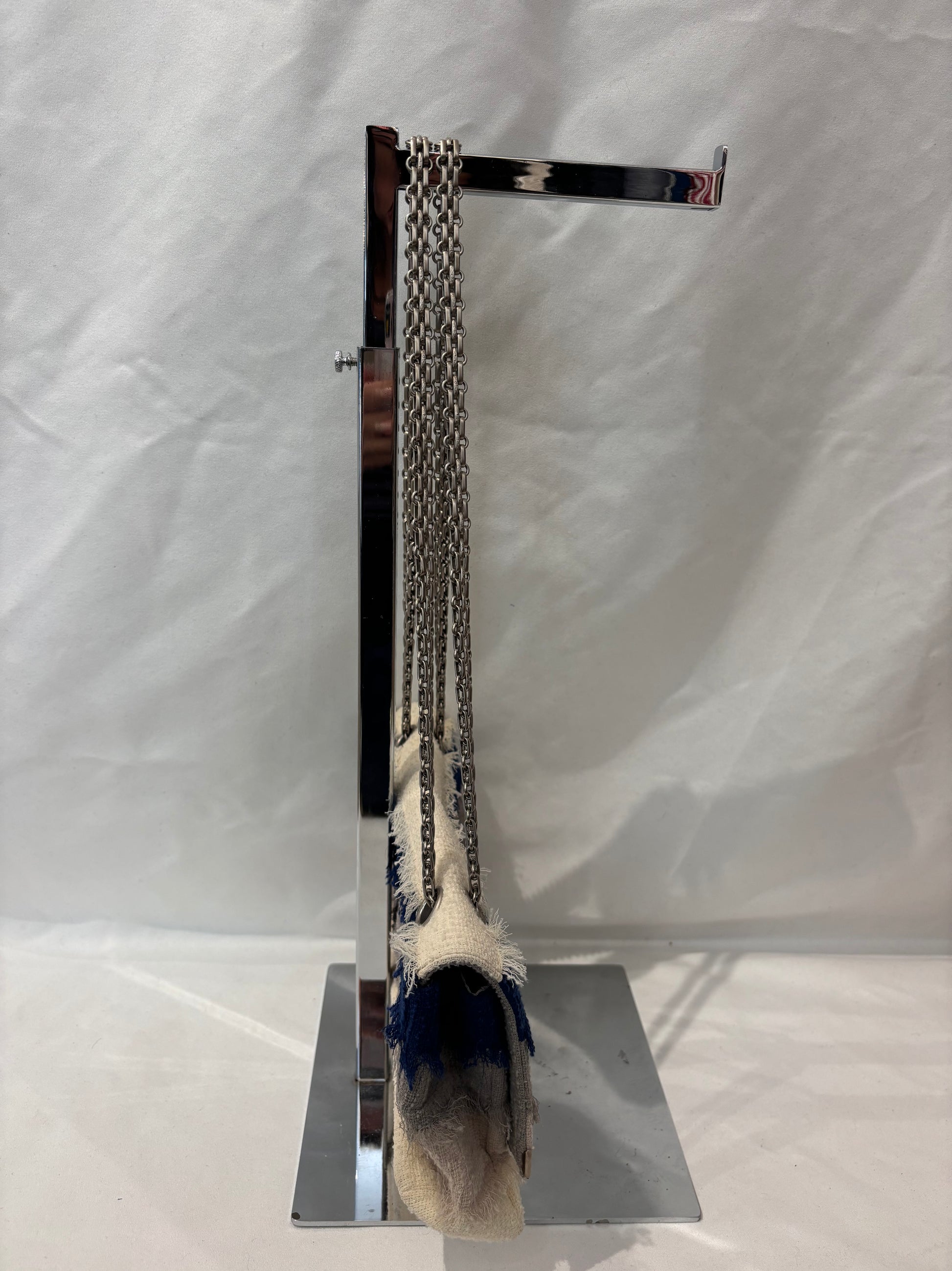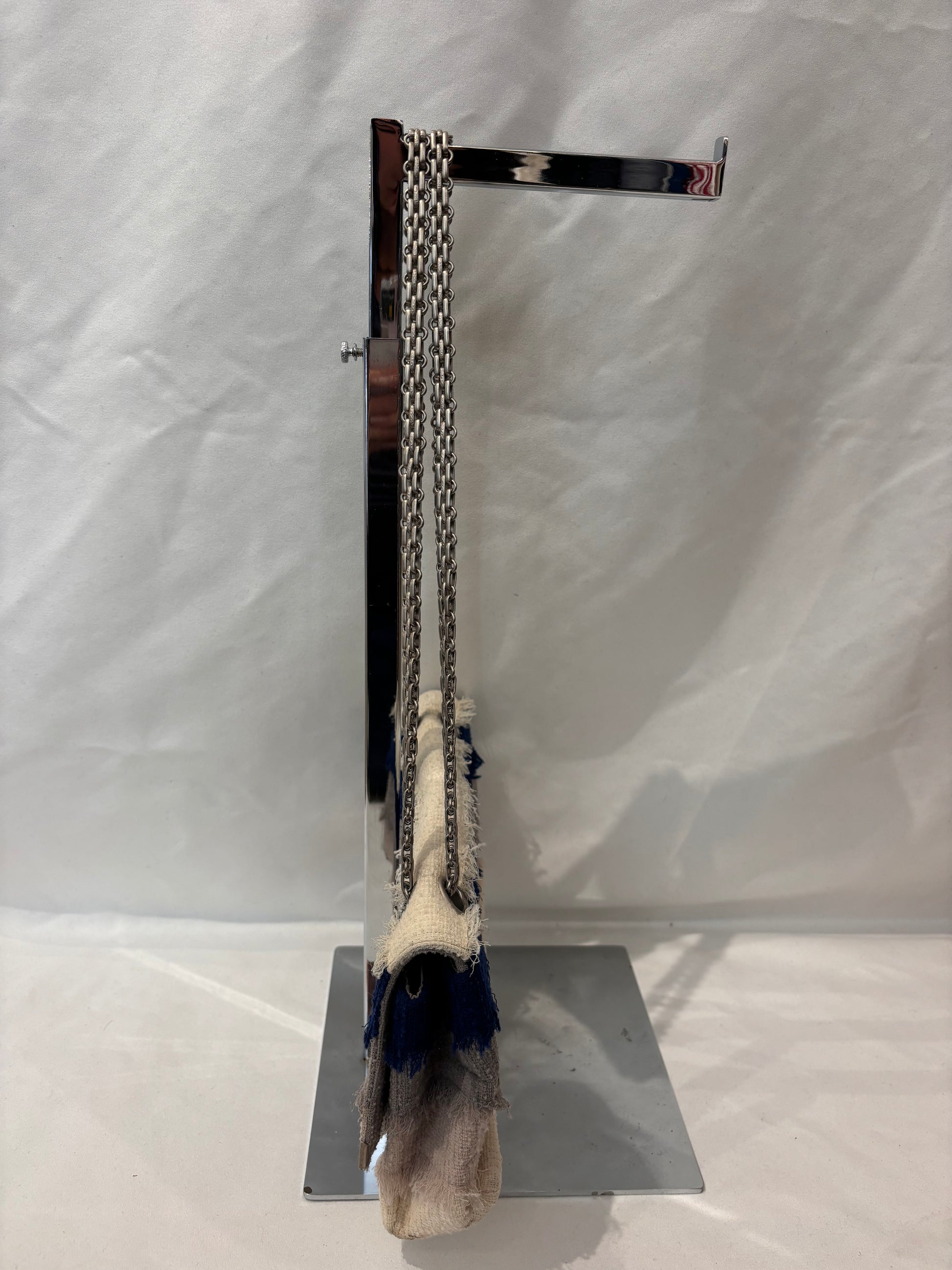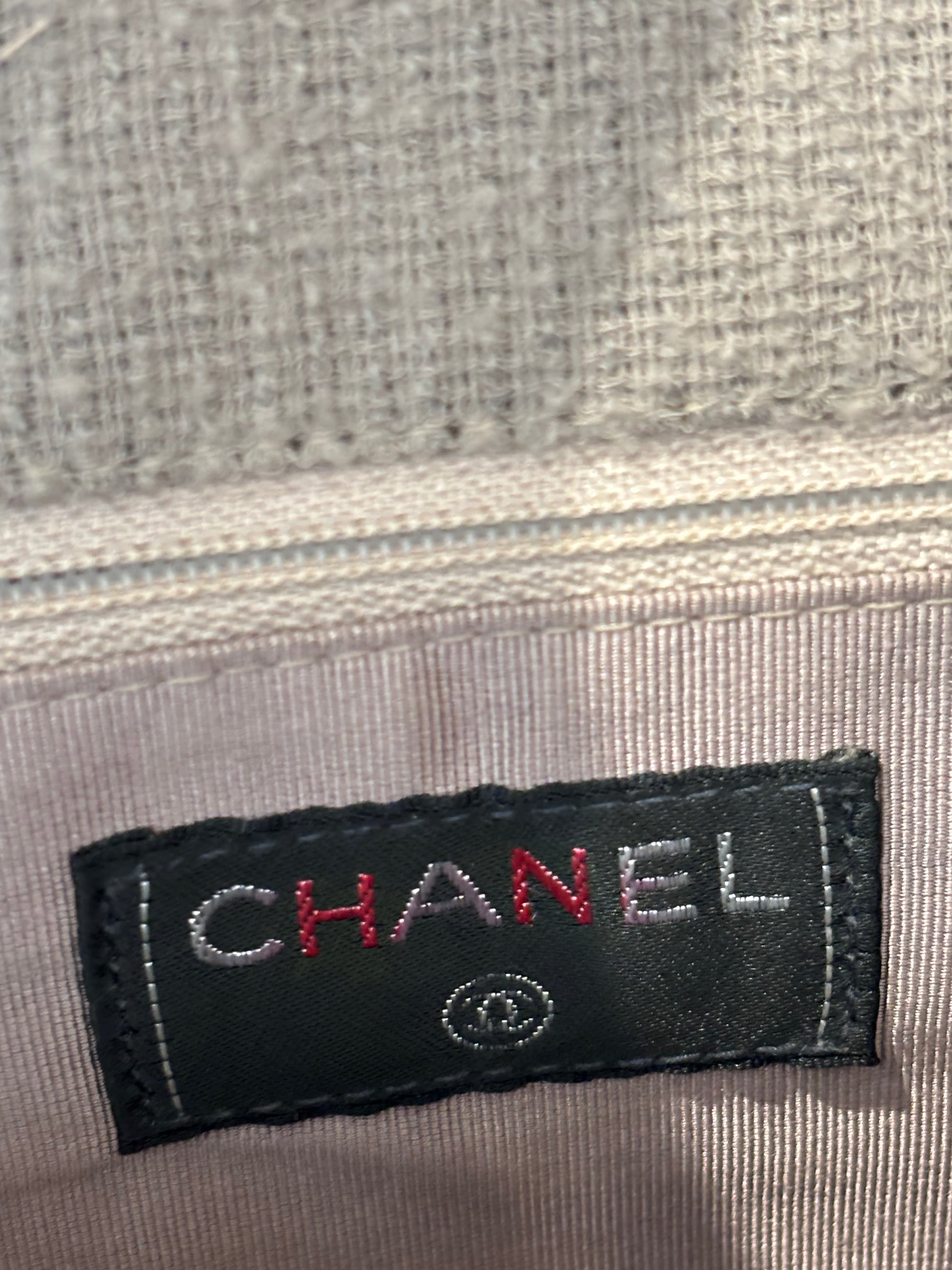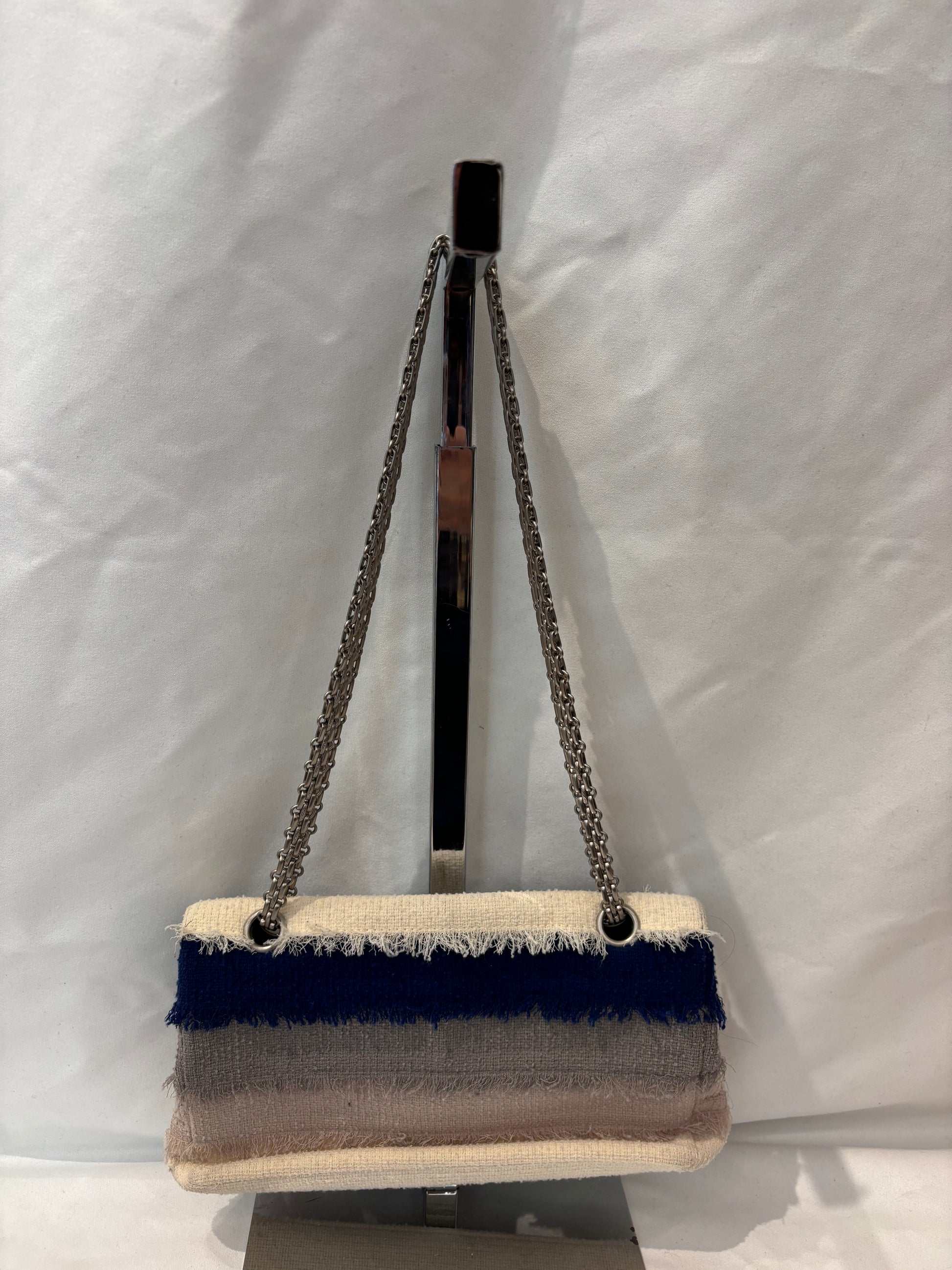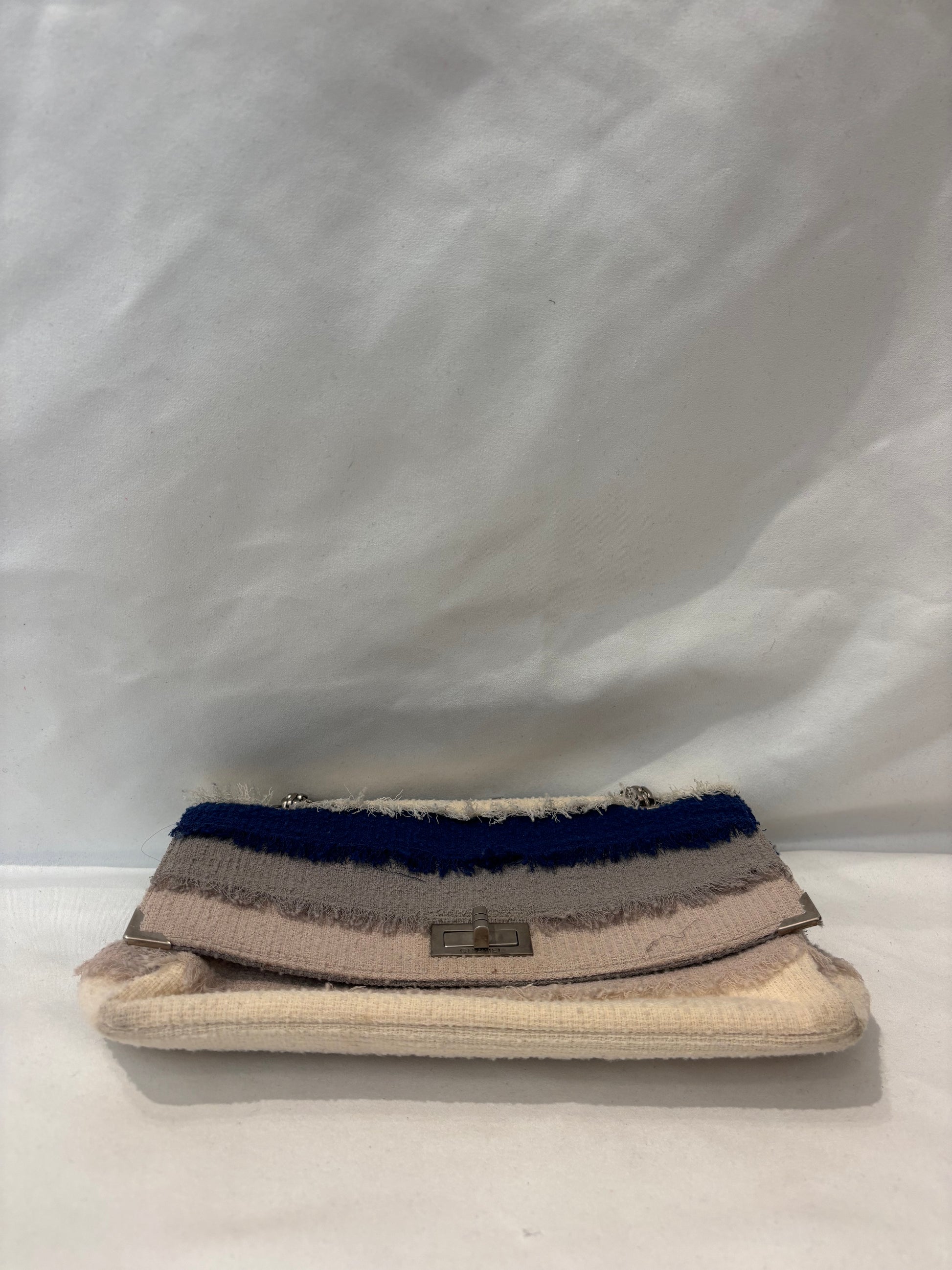 Chanel Cream/Beige/Grey/Navy Tweed Flap Bag with Ruthenium Hardware