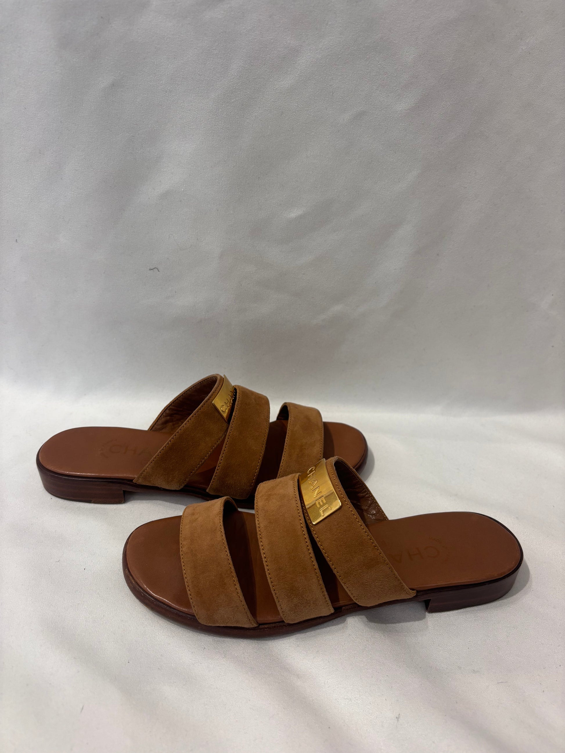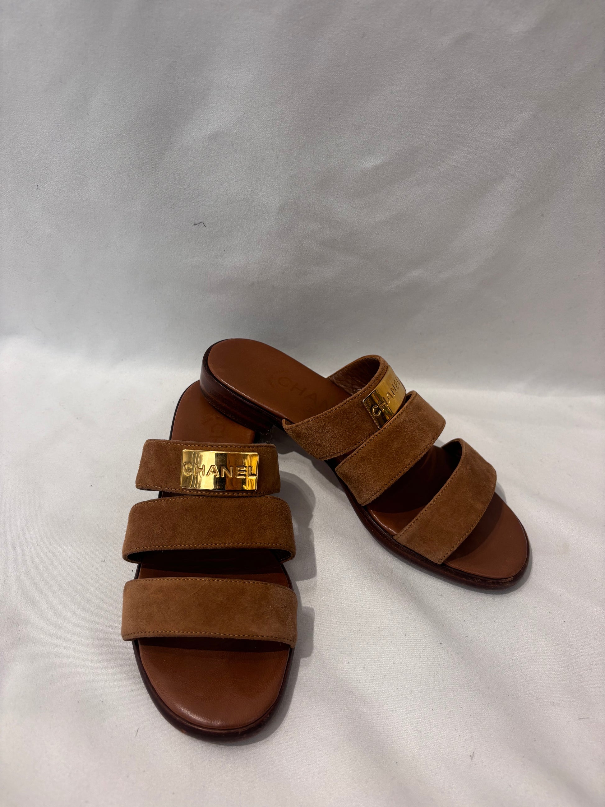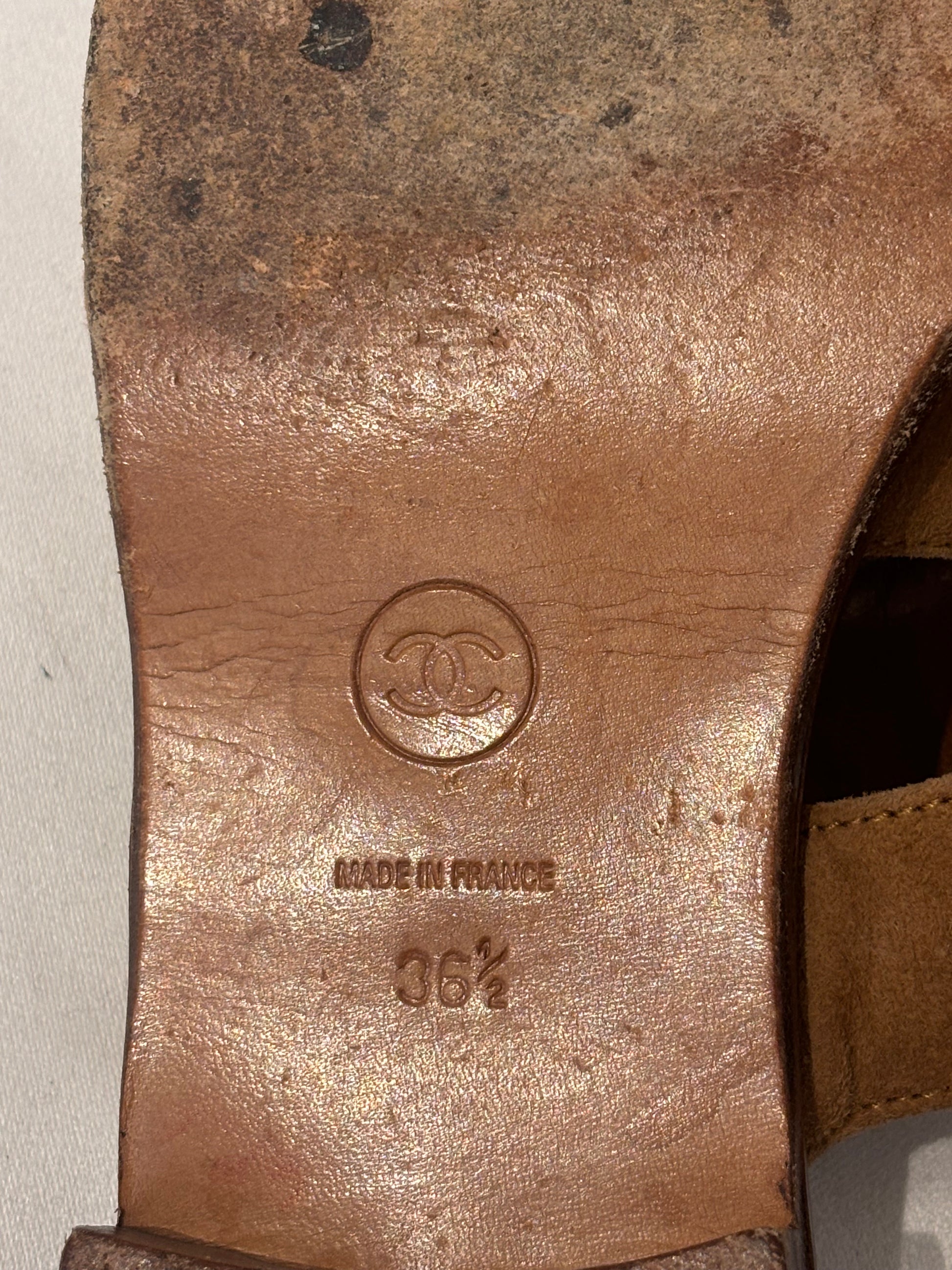 Chanel Vintage Brown Suede Three Strap Sandal Size 36.5
