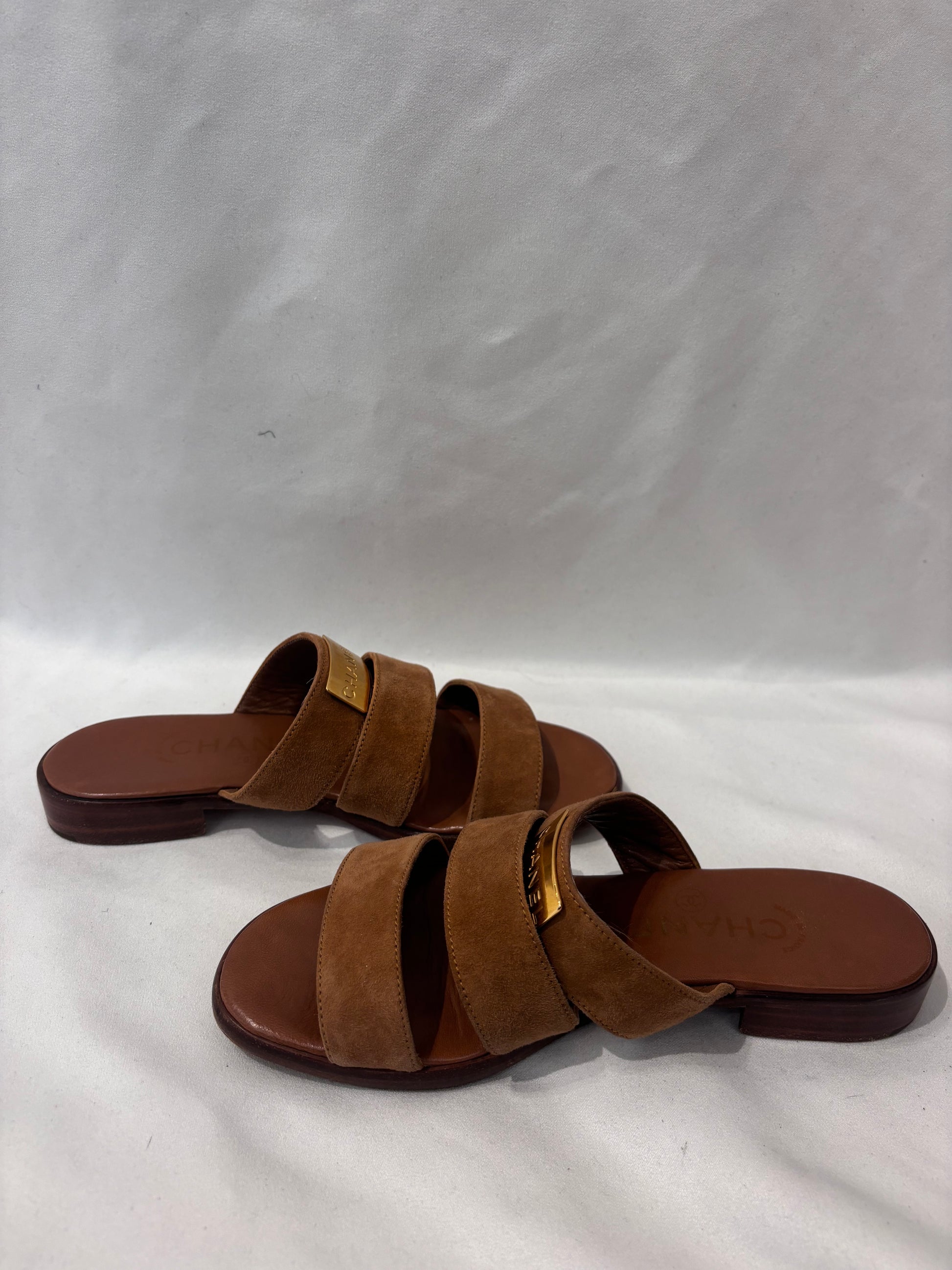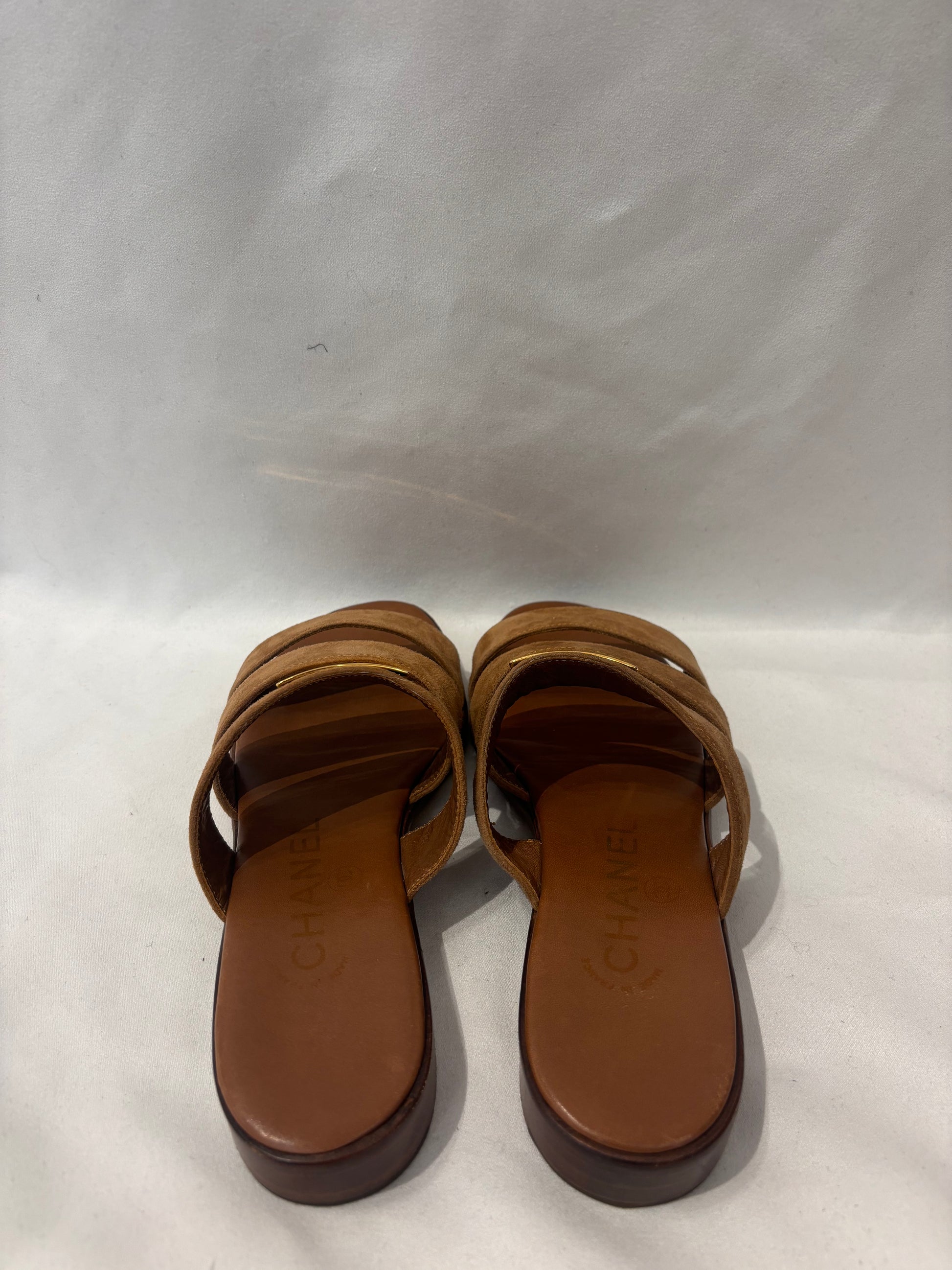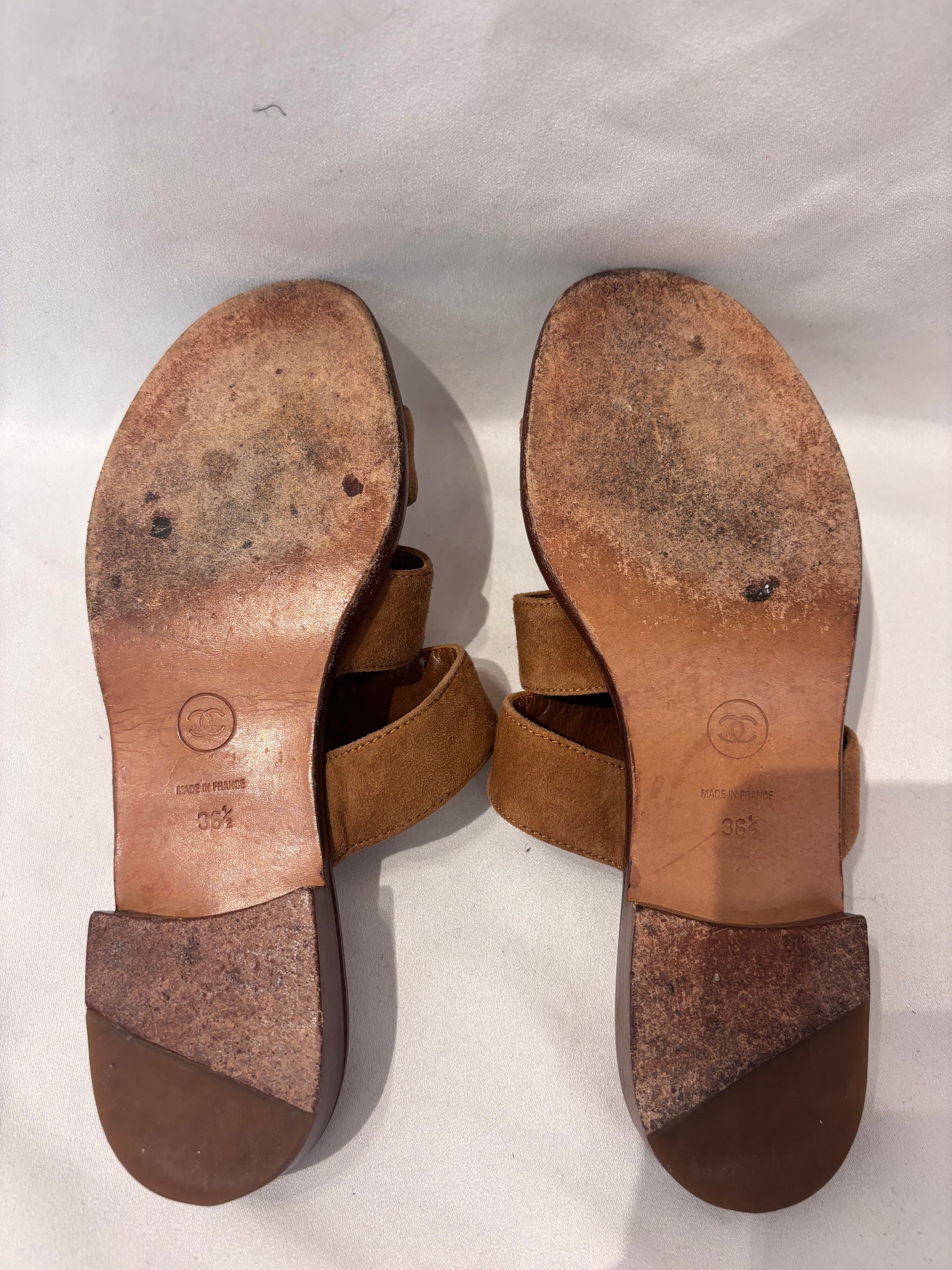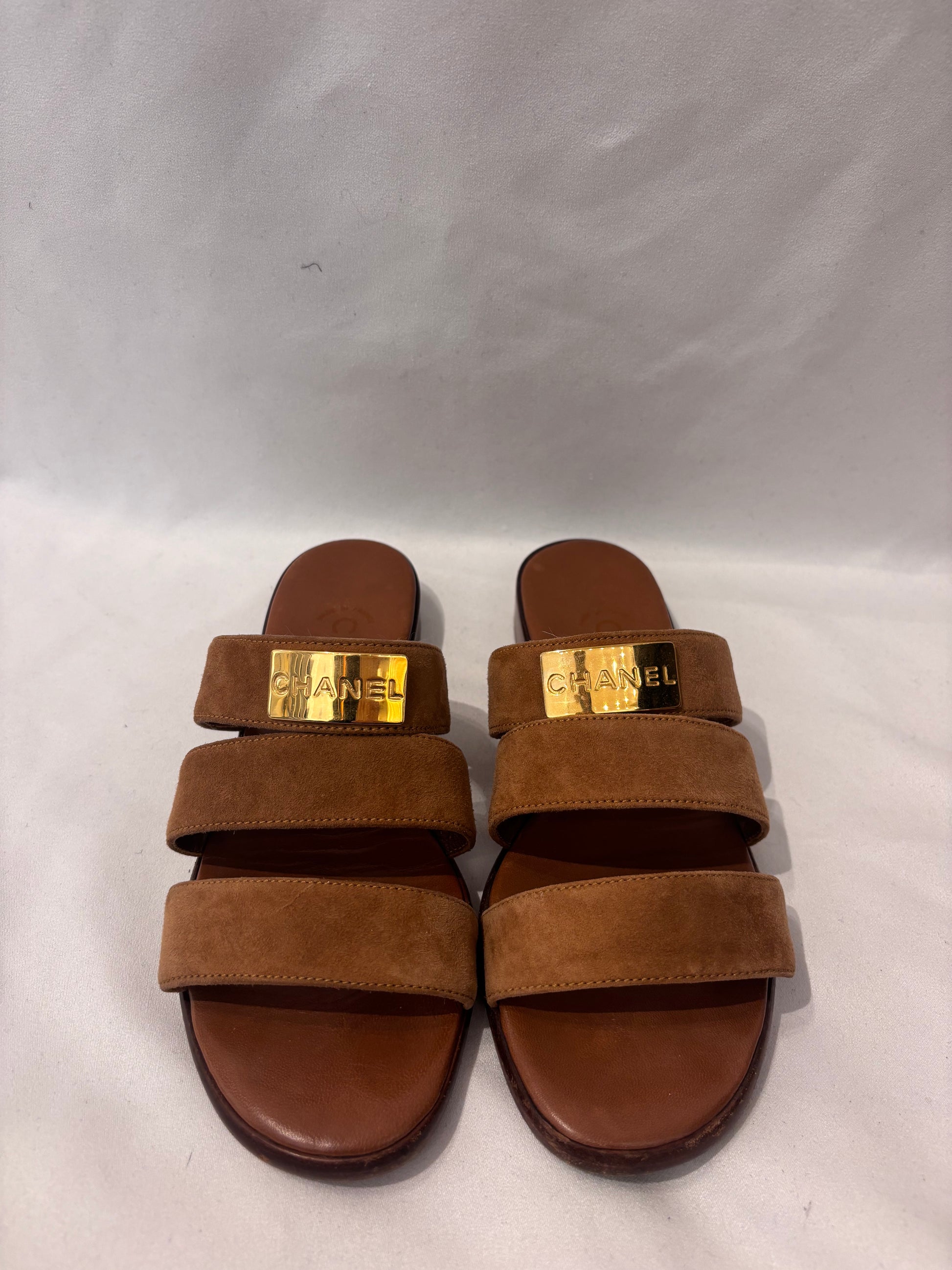 Chanel Vintage Brown Suede Three Strap Sandal Size 36.5