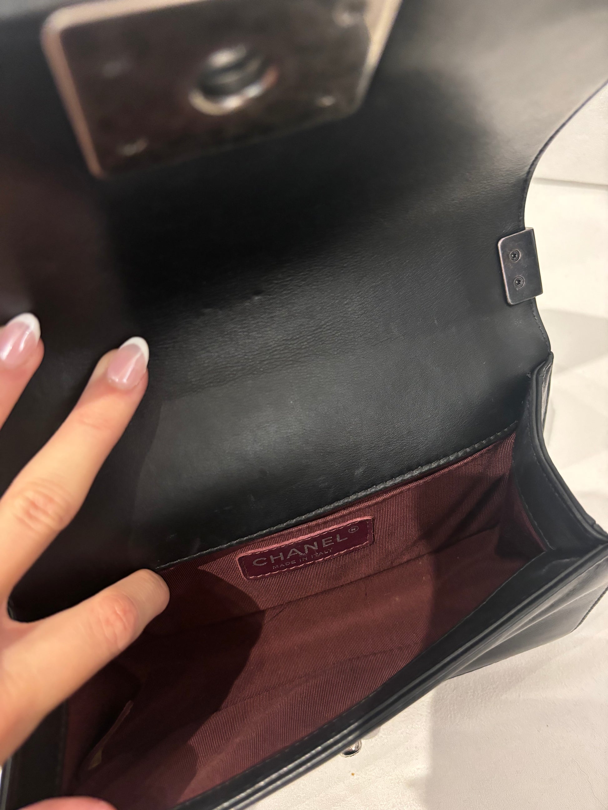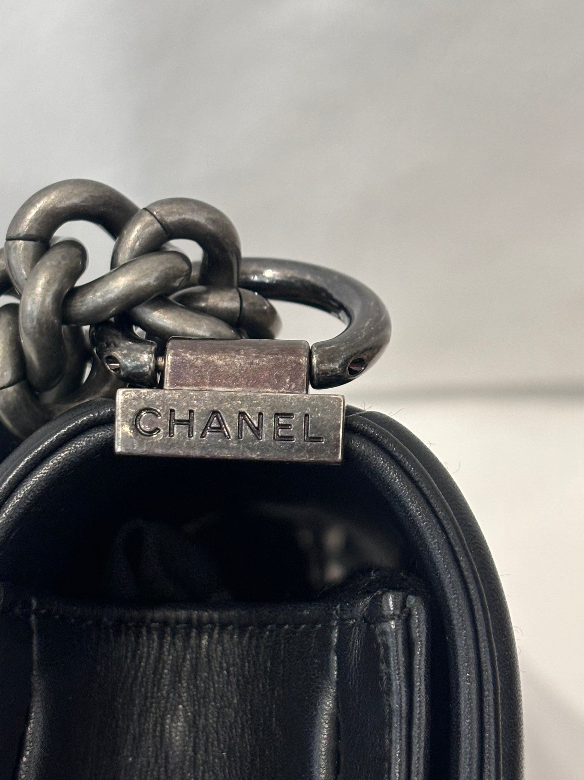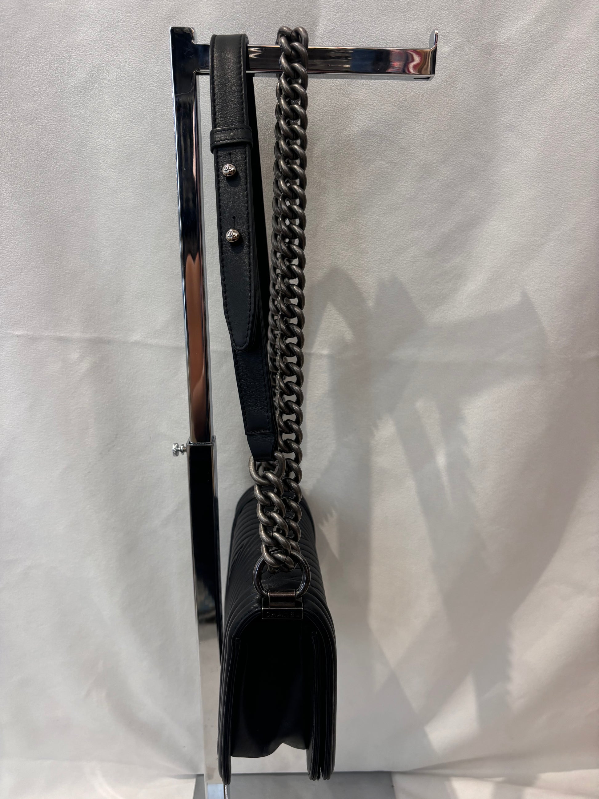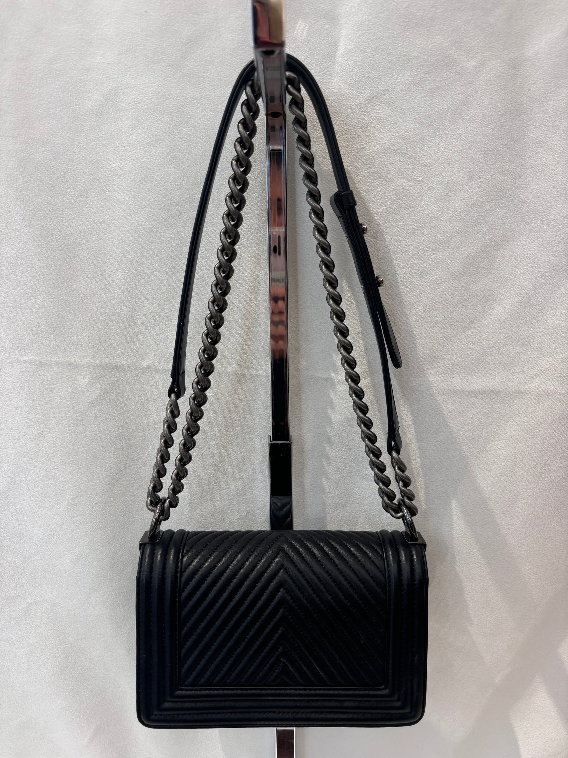 Chanel Black Chevron Stitched Small Boy Bag with Ruthenium Hardware