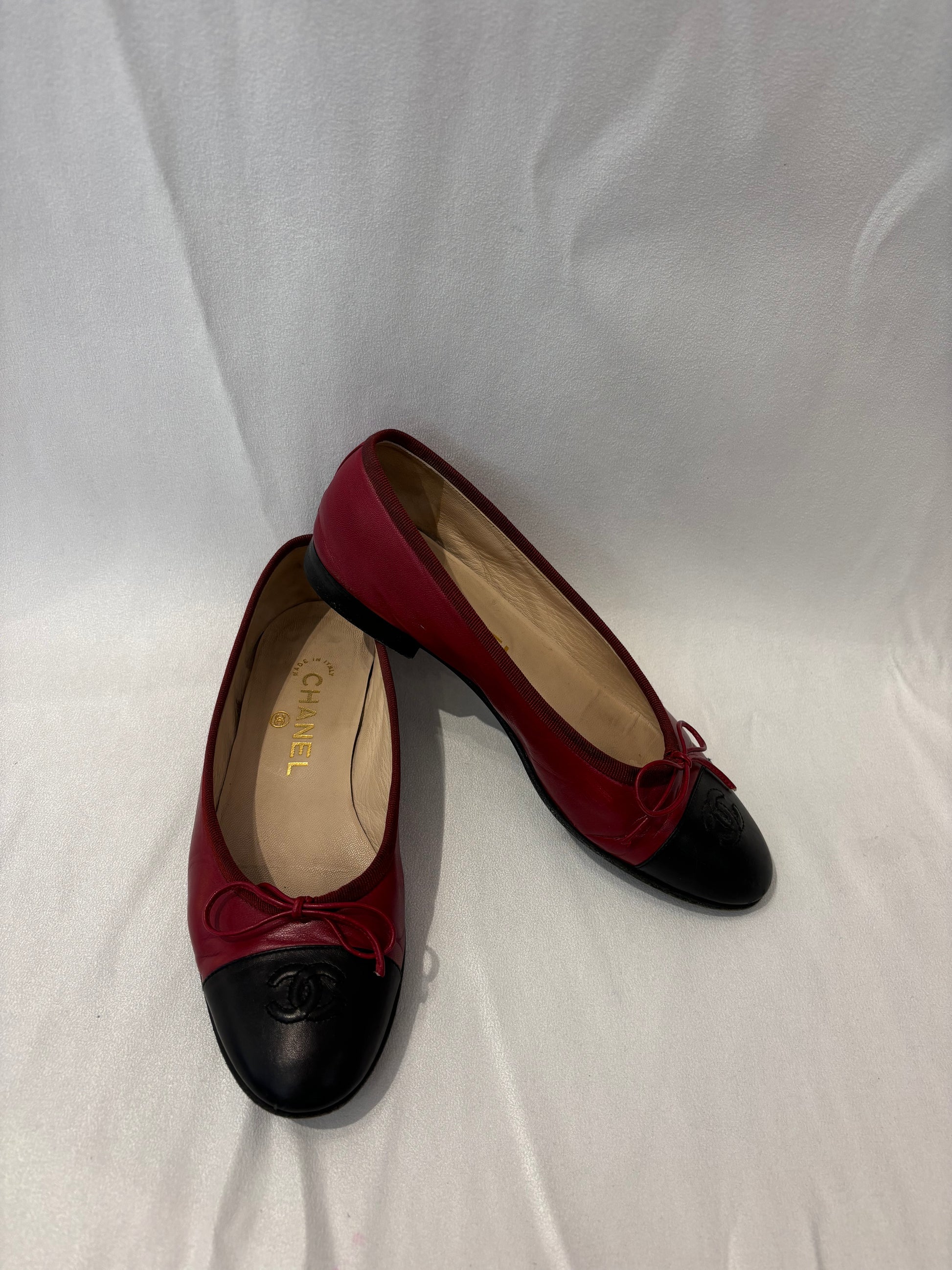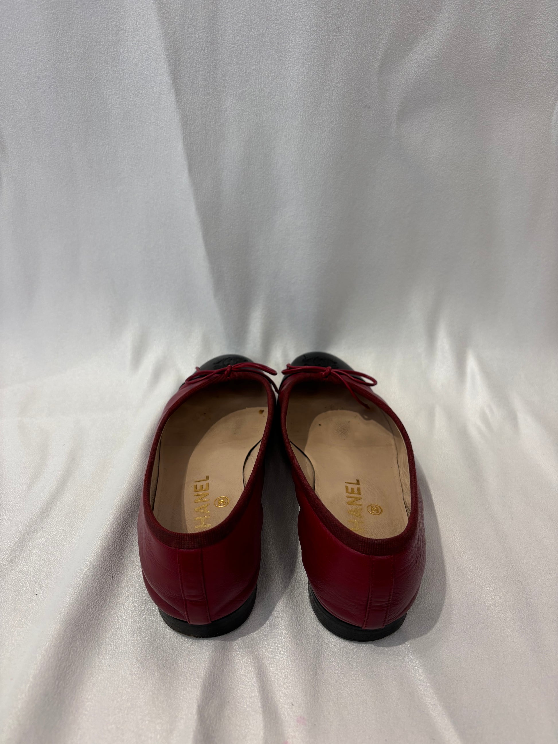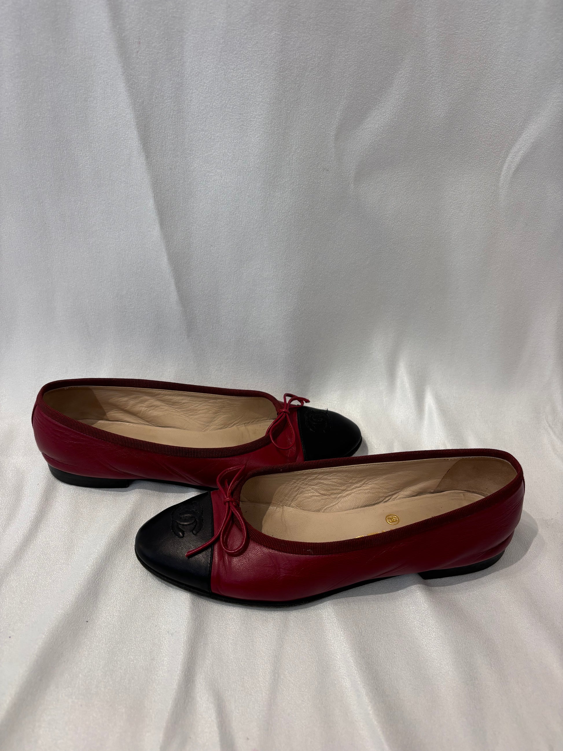 Chanel Burgundy Ballet Flats with Black Toe Cap Size 37