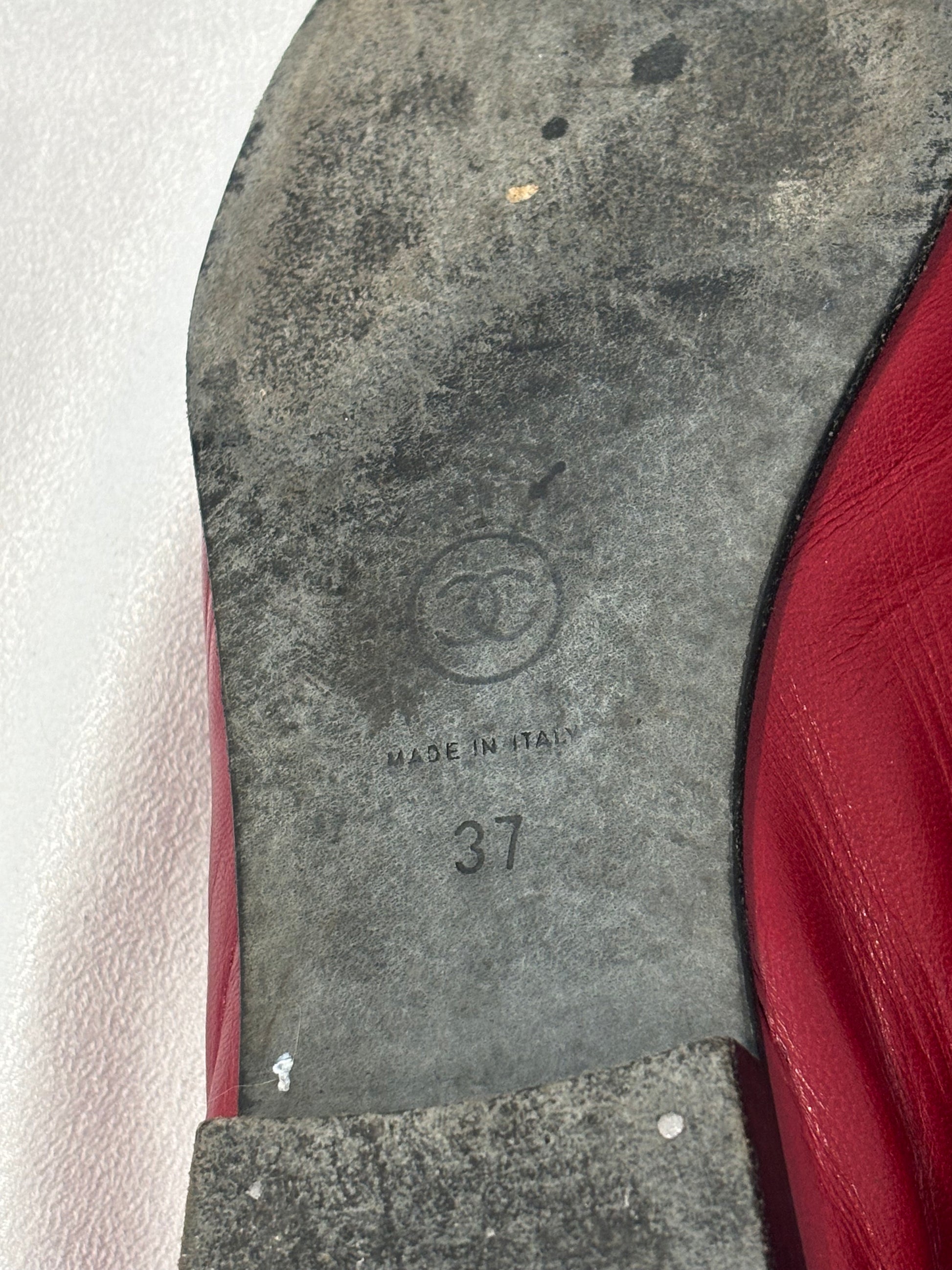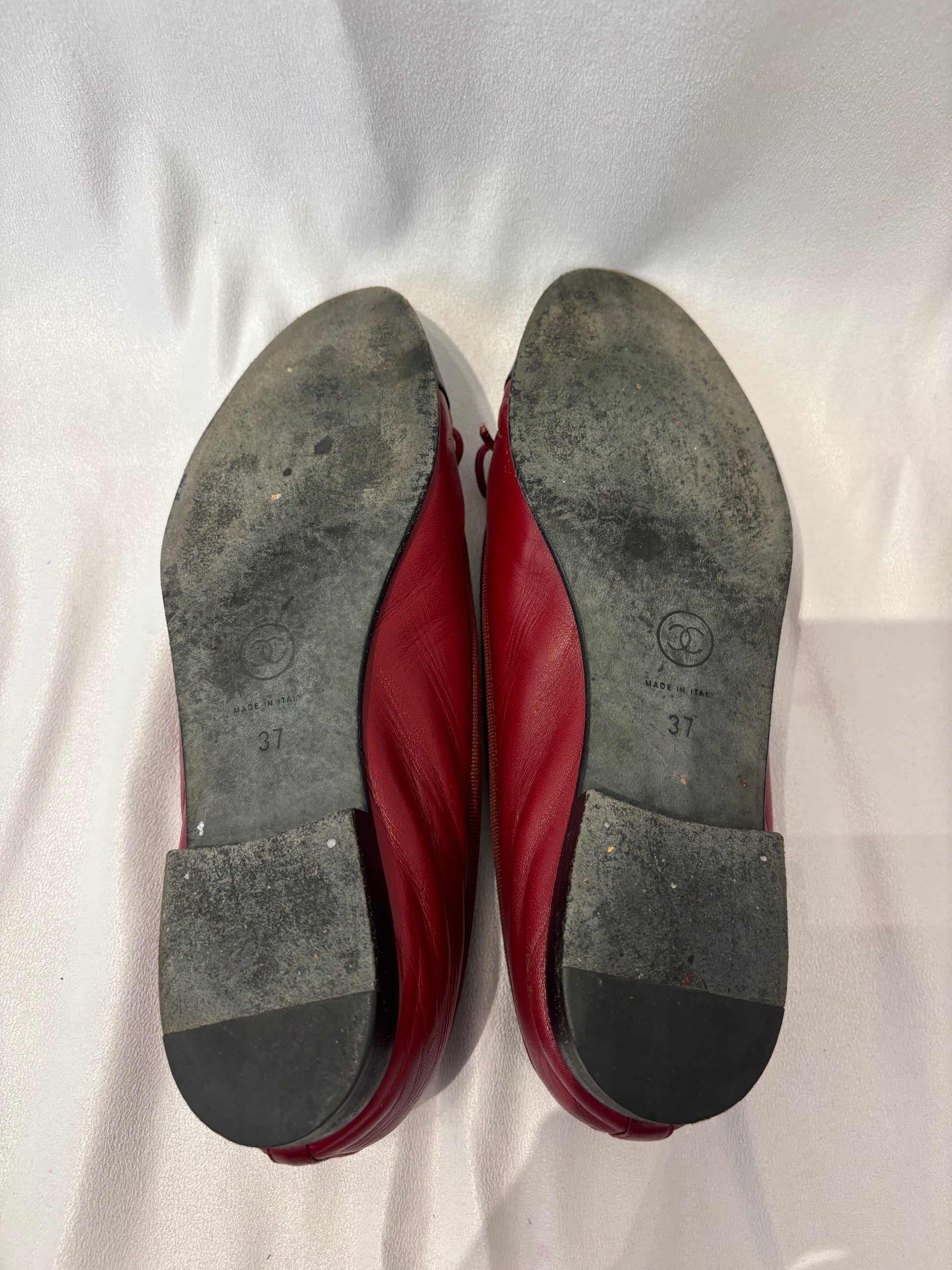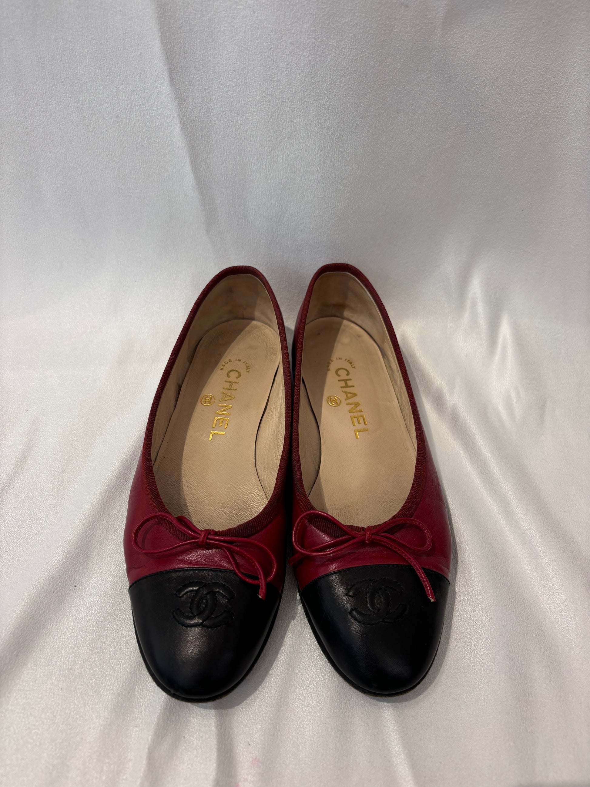 Chanel Burgundy Ballet Flats with Black Toe Cap Size 37