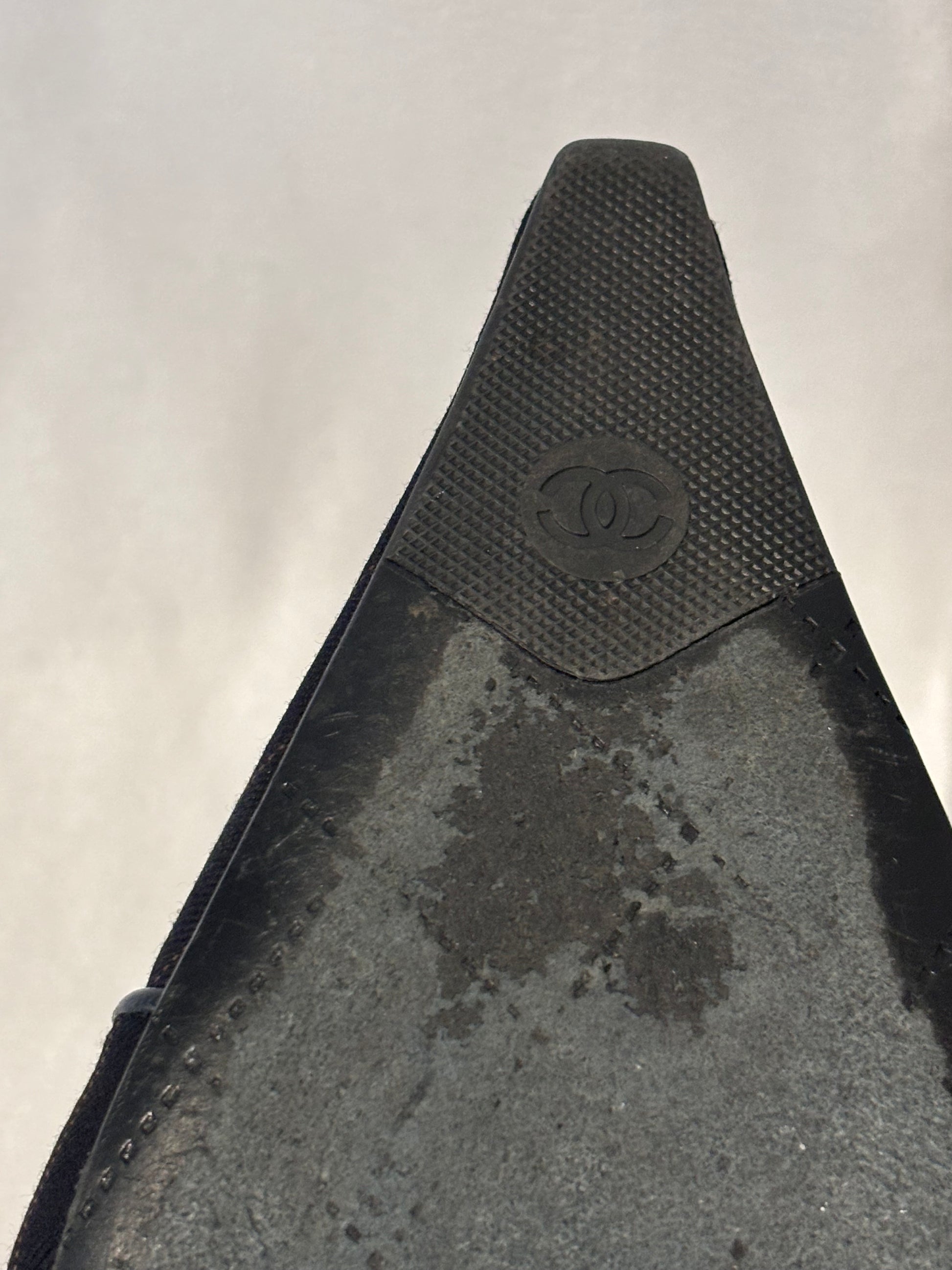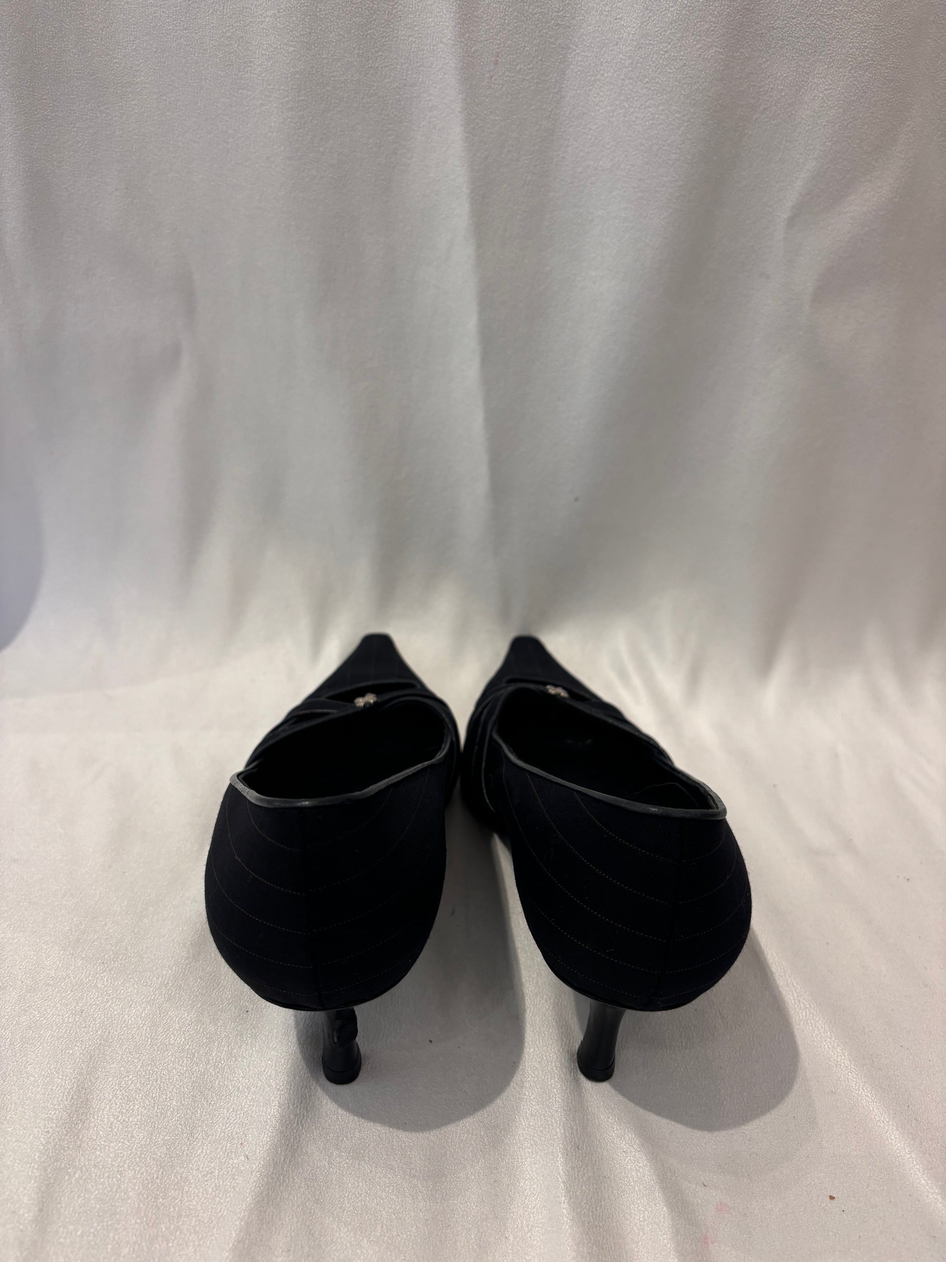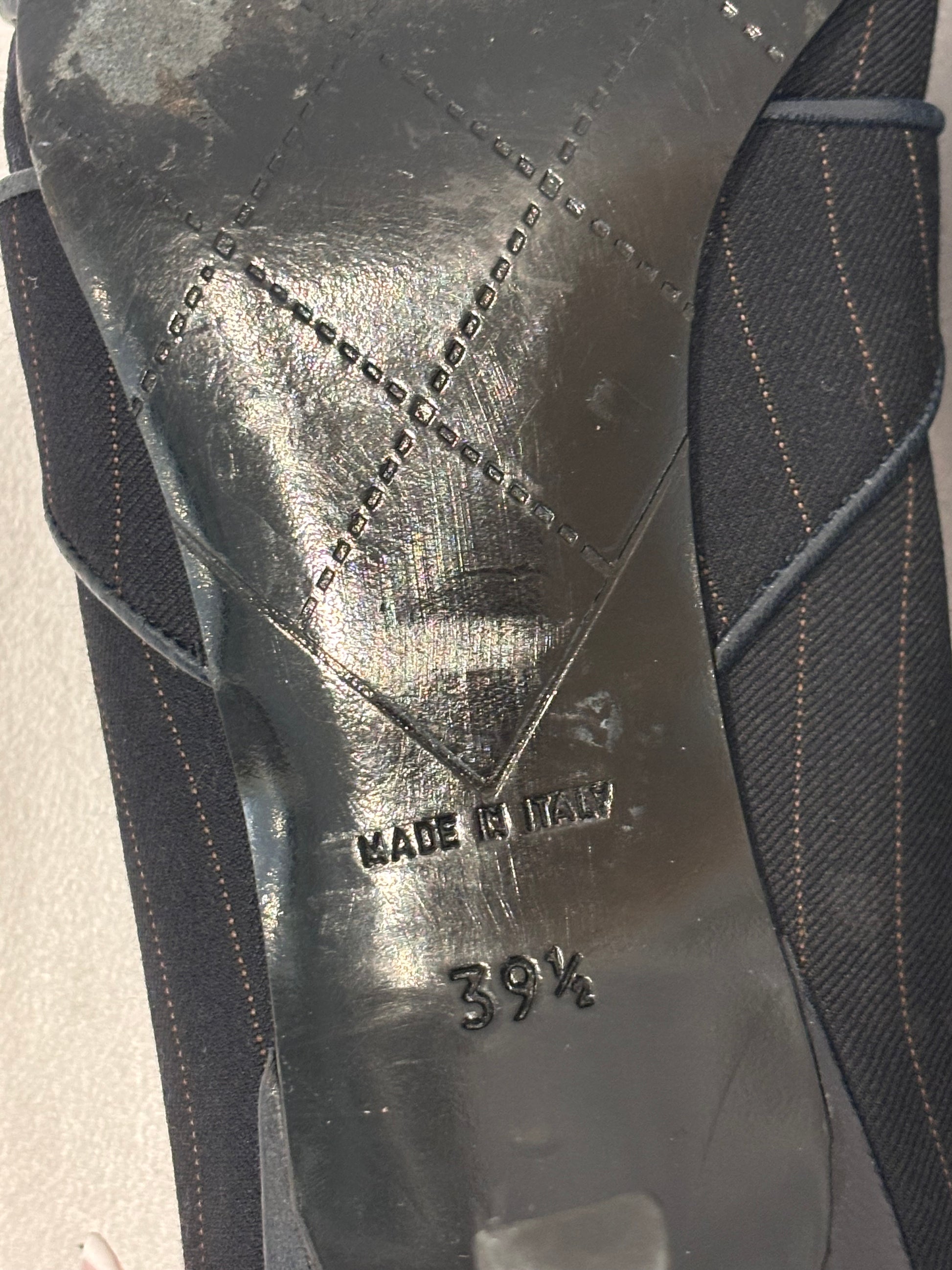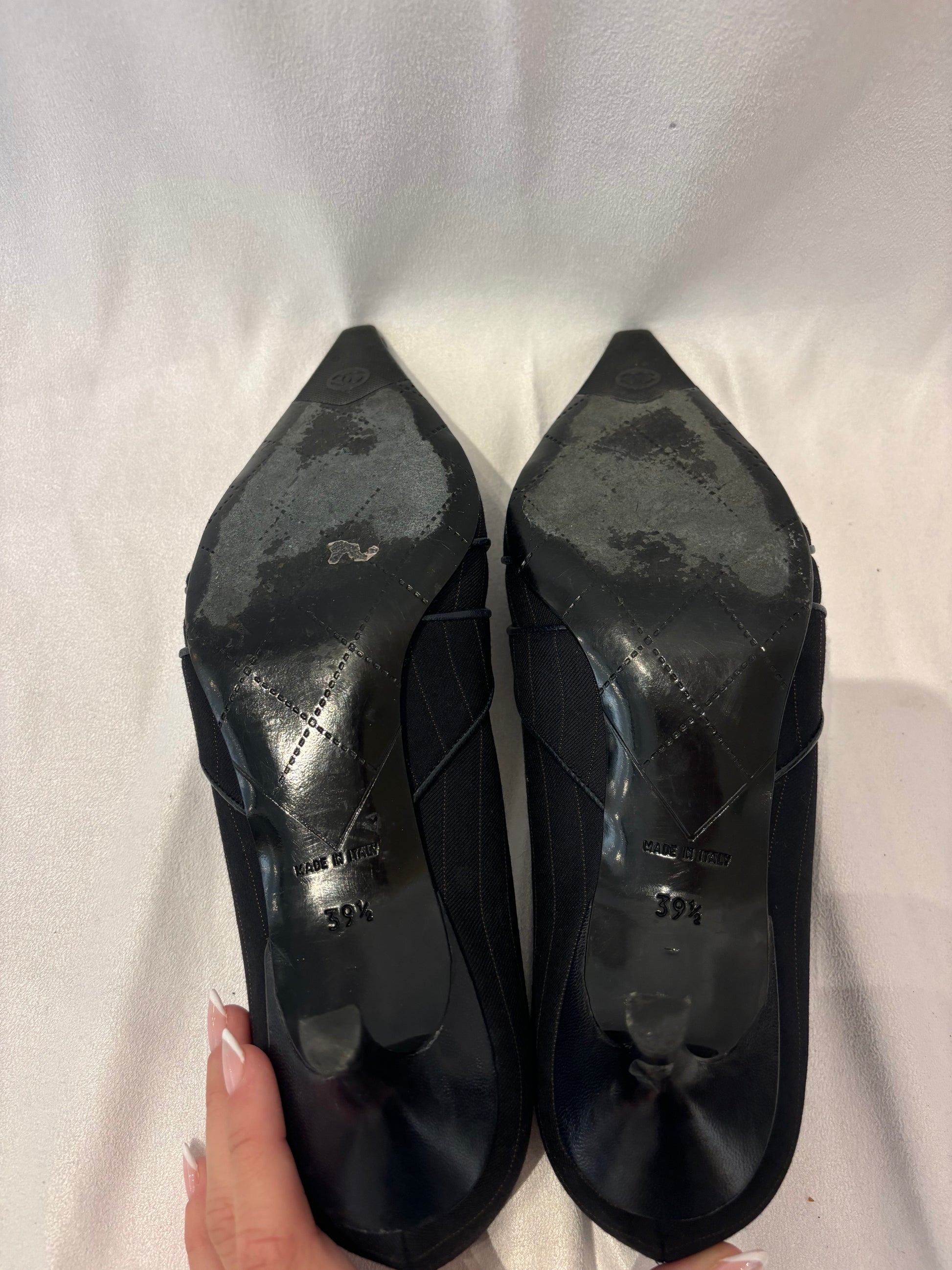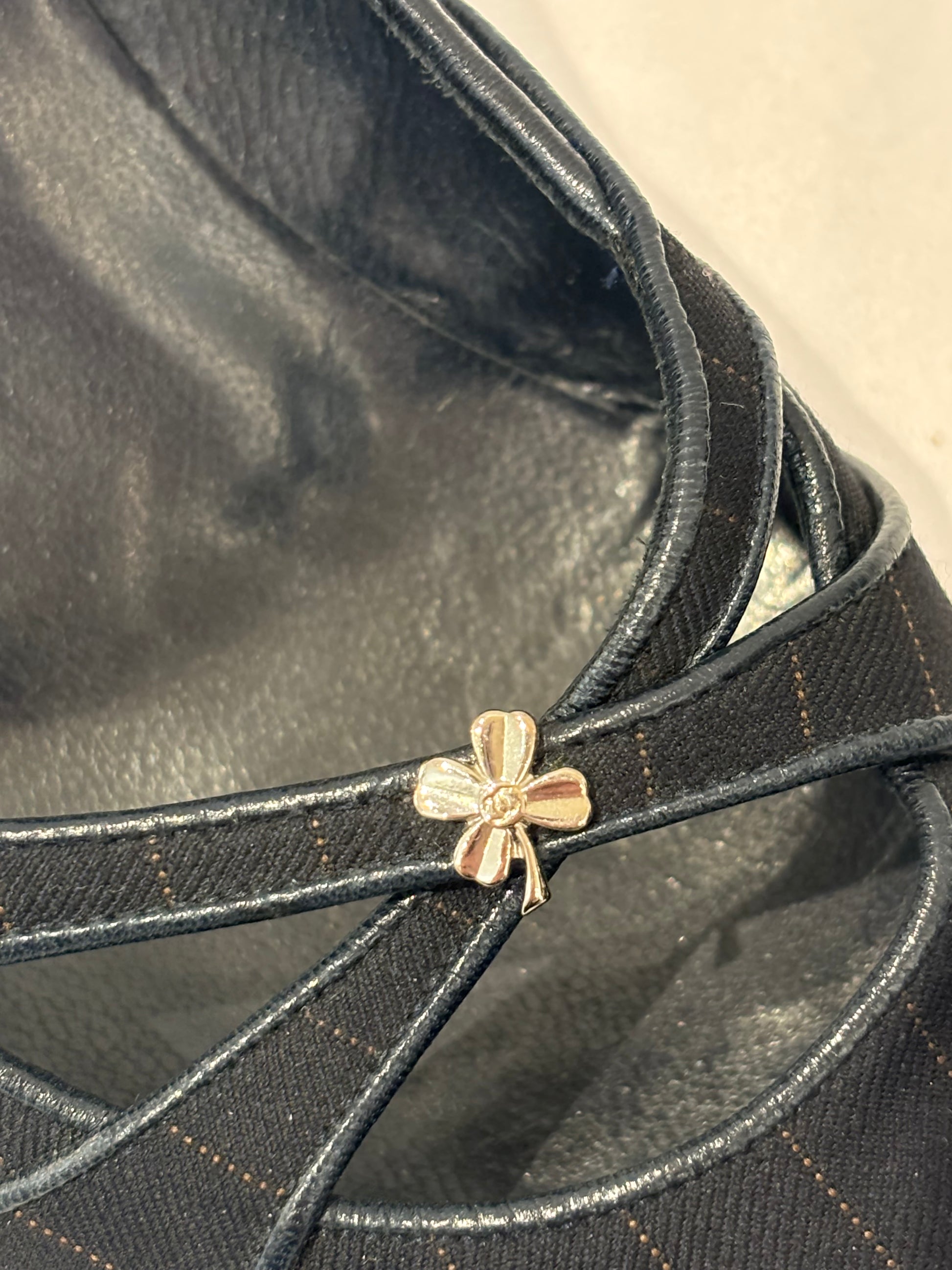 Chanel Black/Burgundy Pinstripe Pointy Pump with Silver Clover Size 39.5