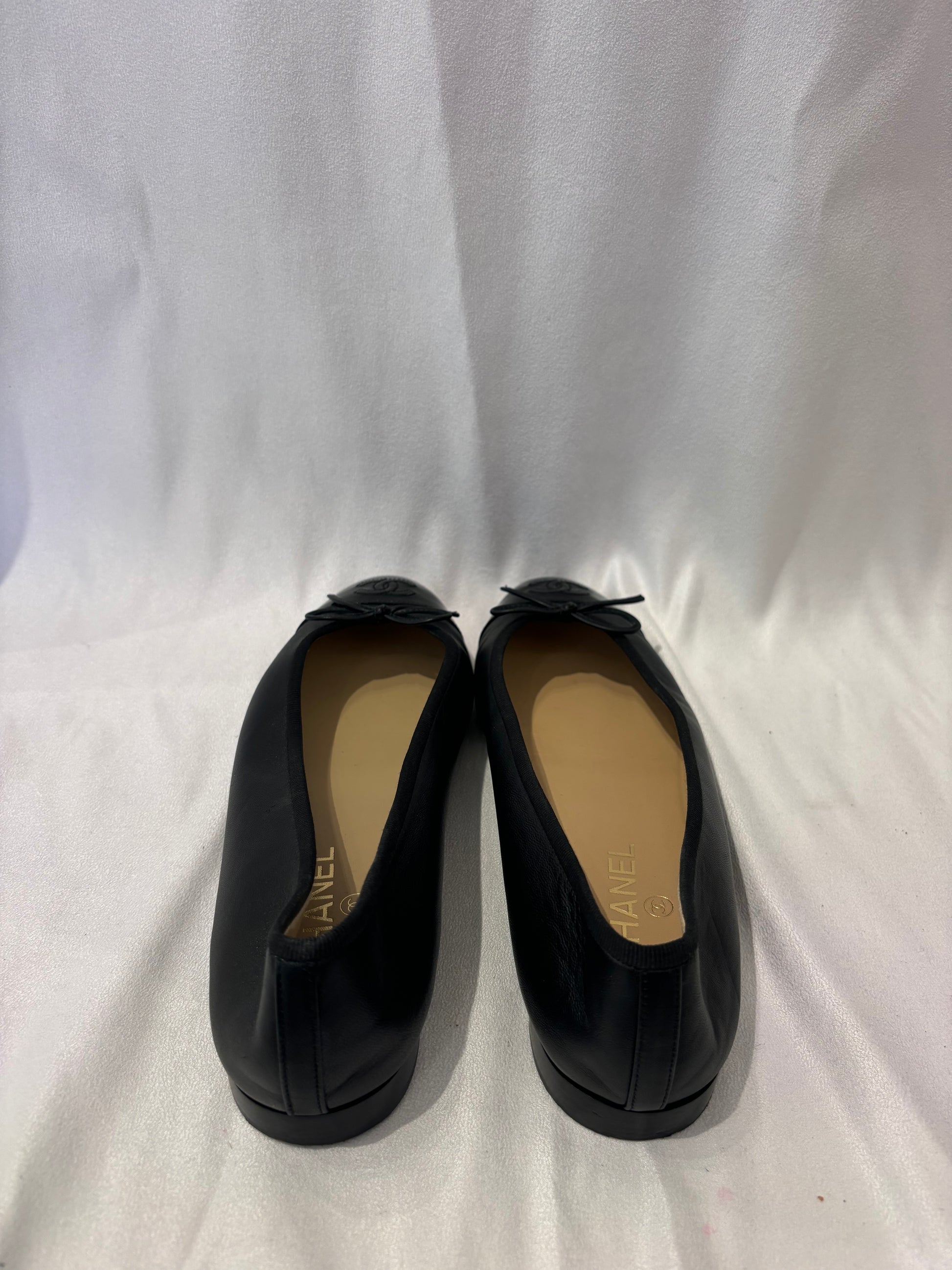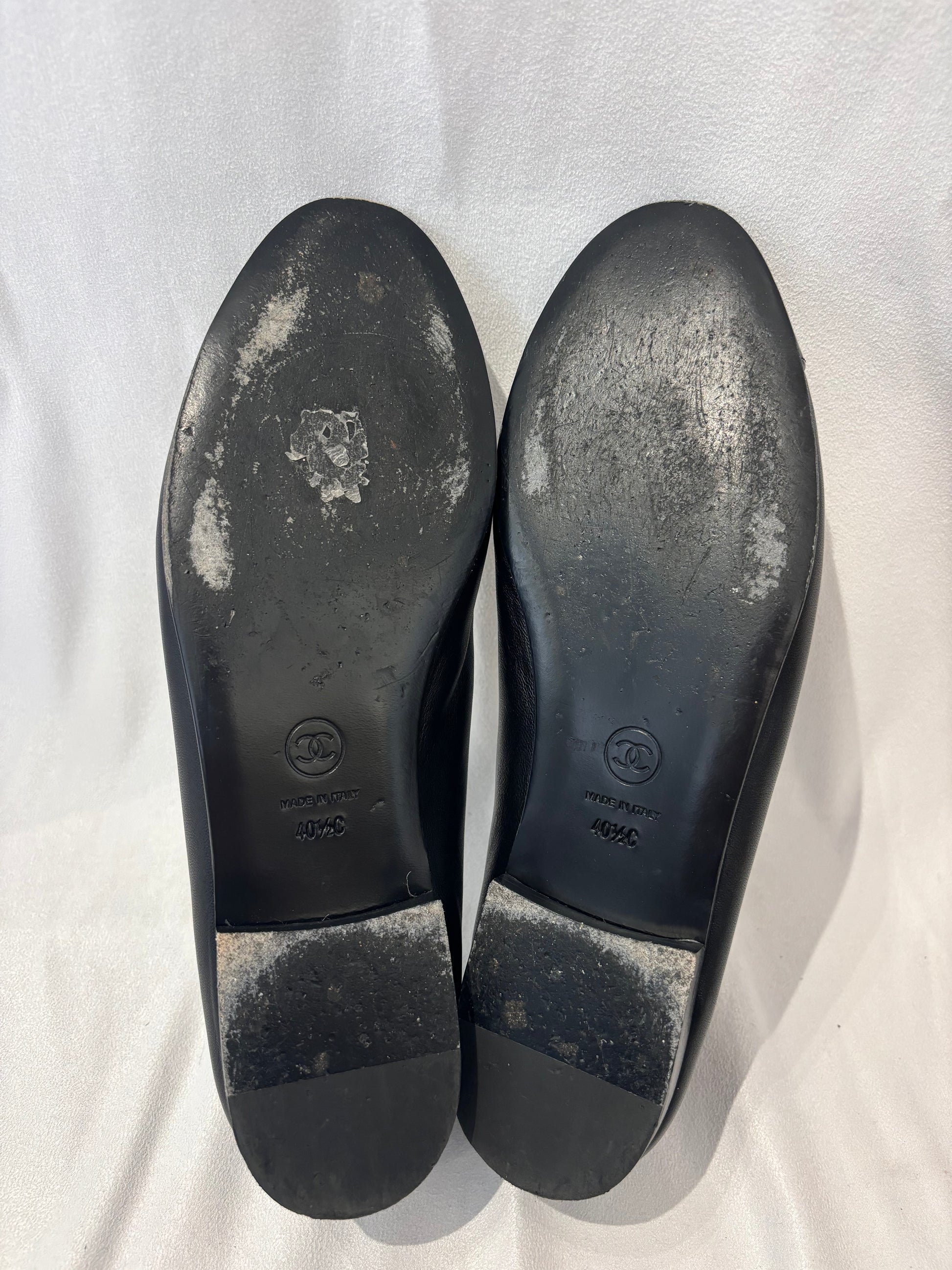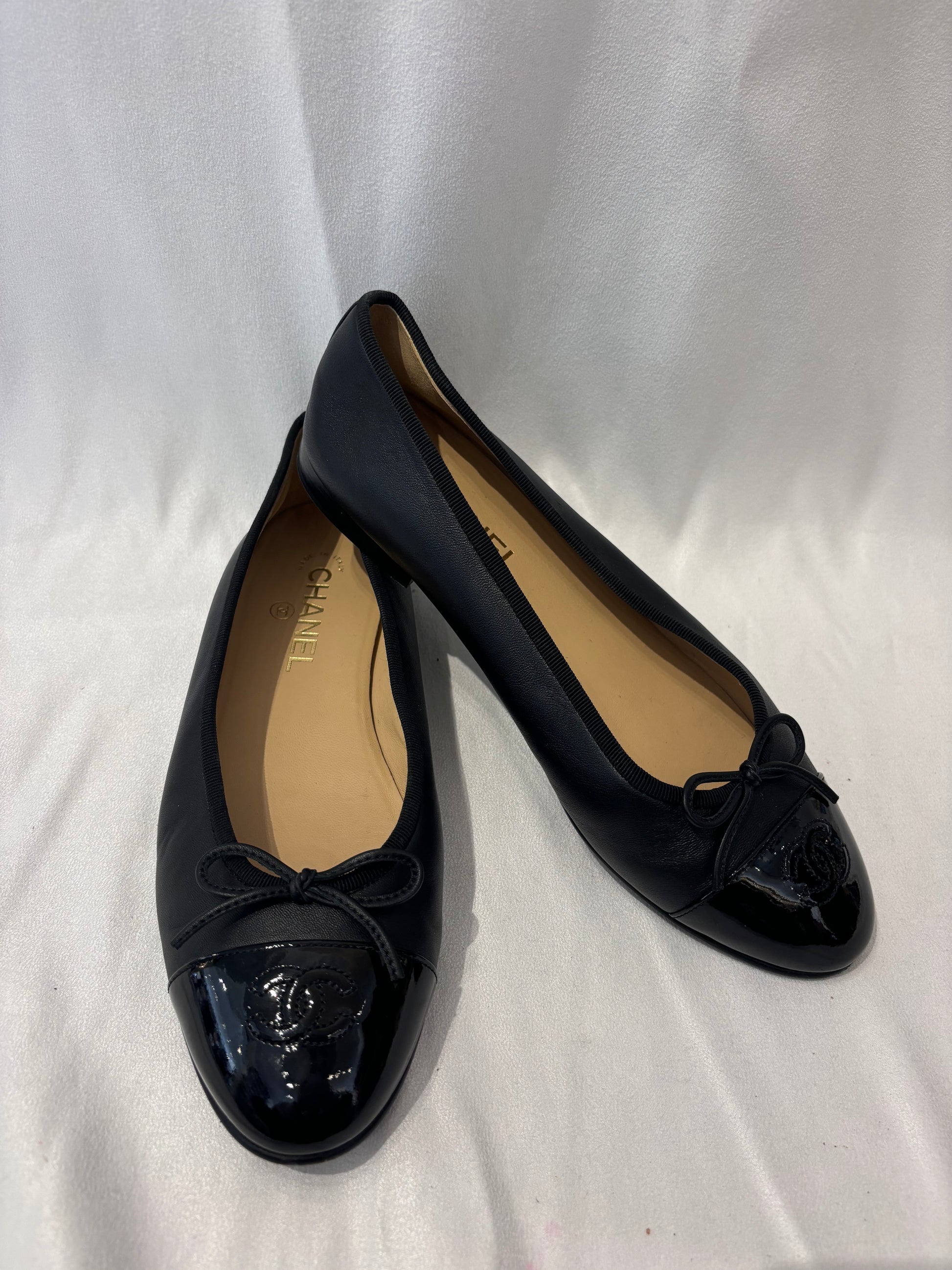 Chanel Black Patent Leather Ballet Flat with Patent Toe Cap Size 40.5