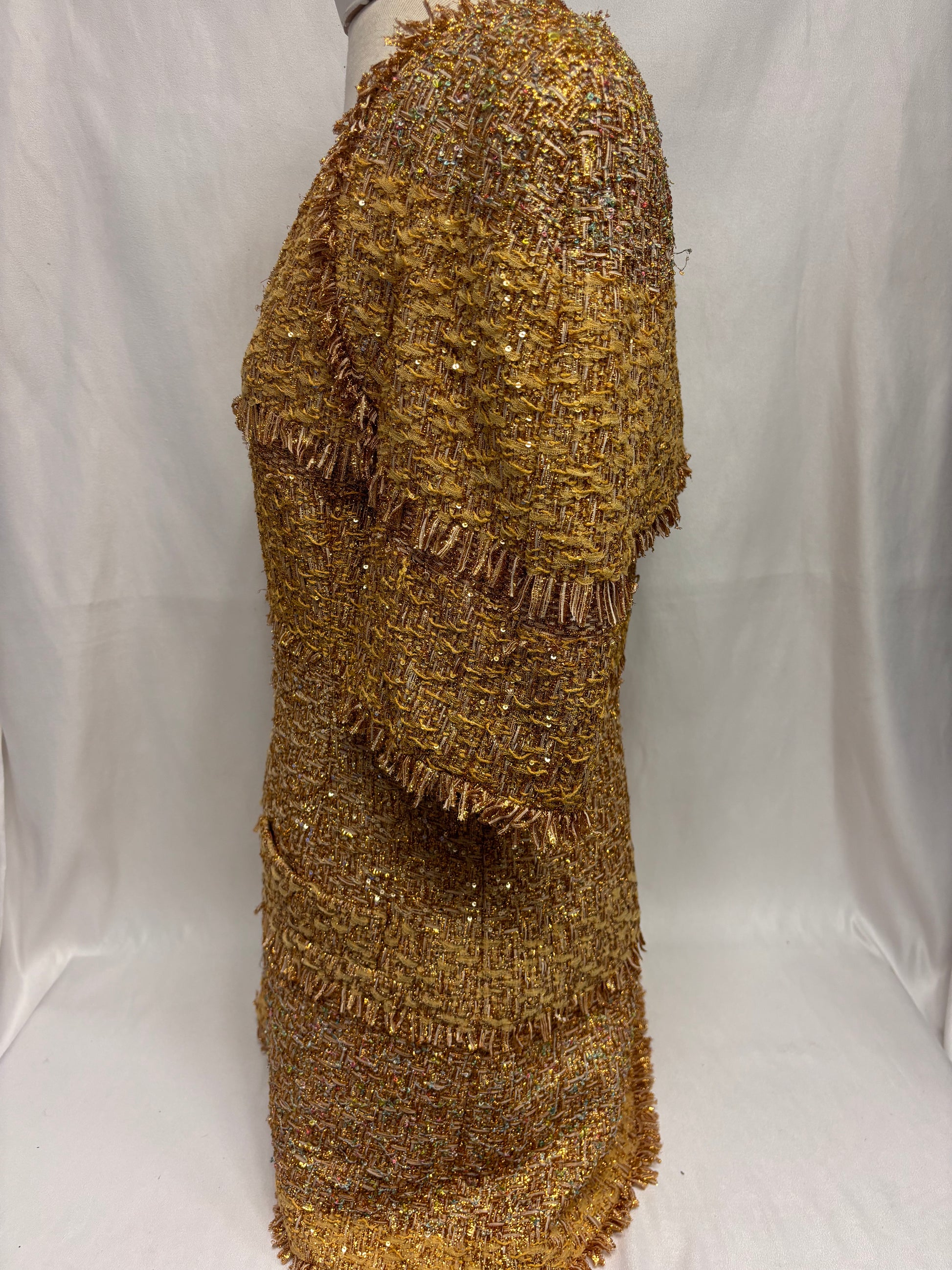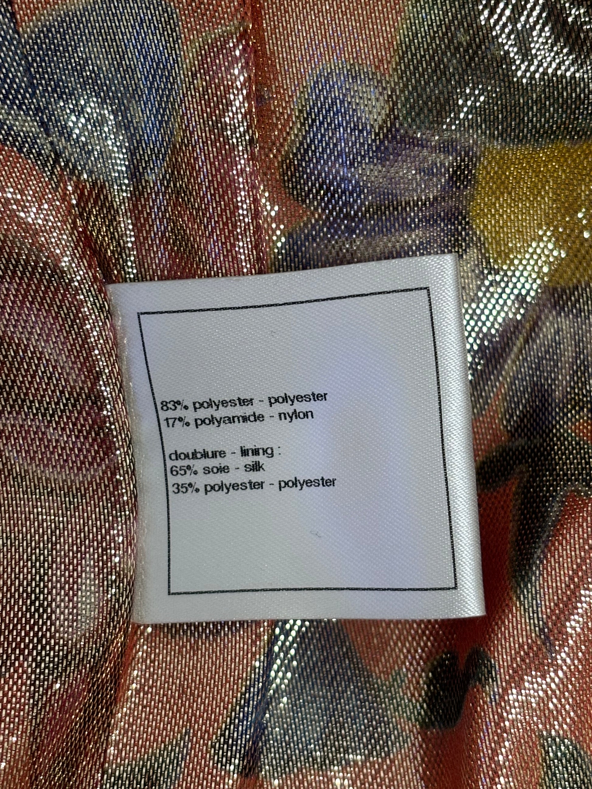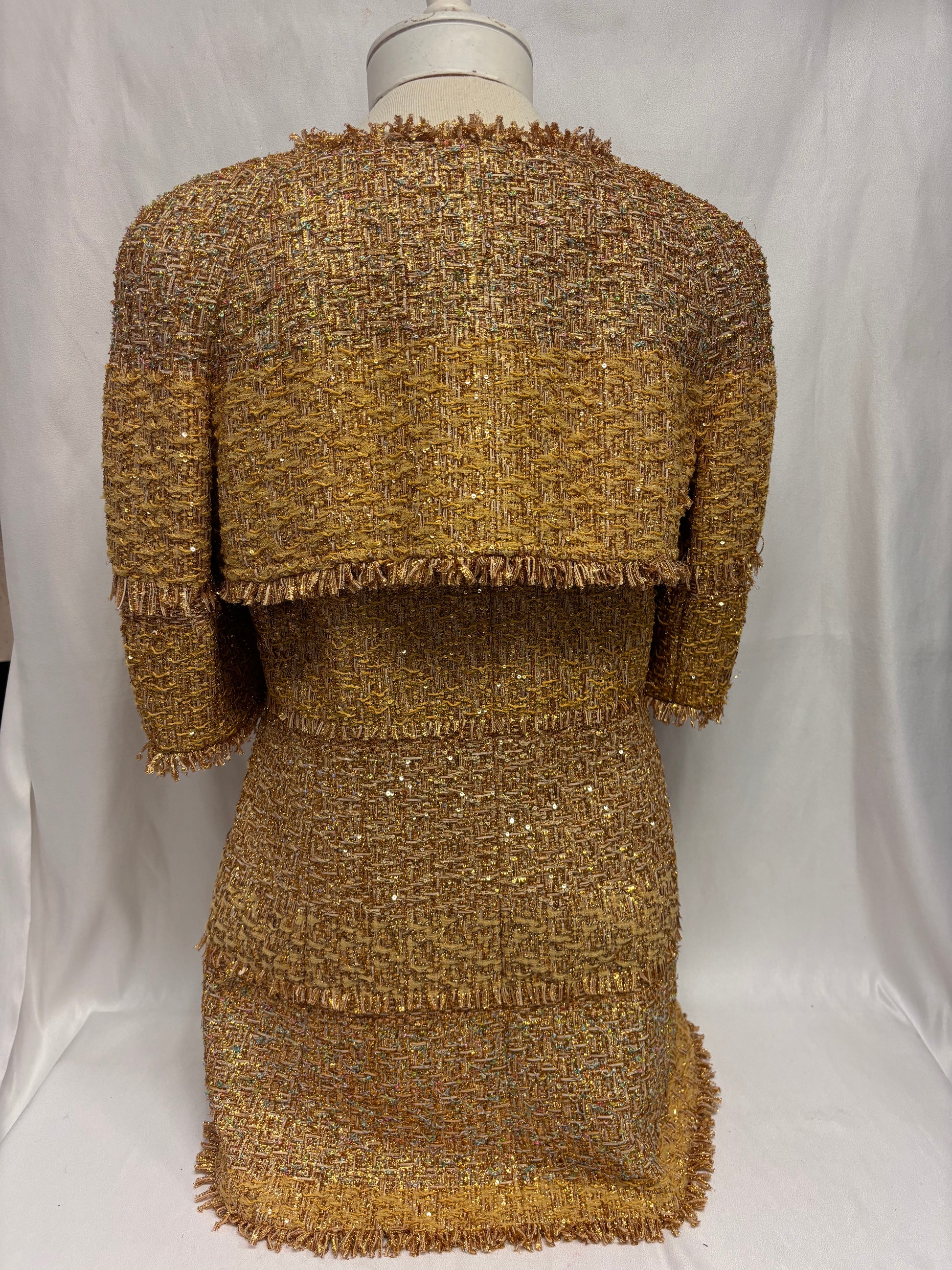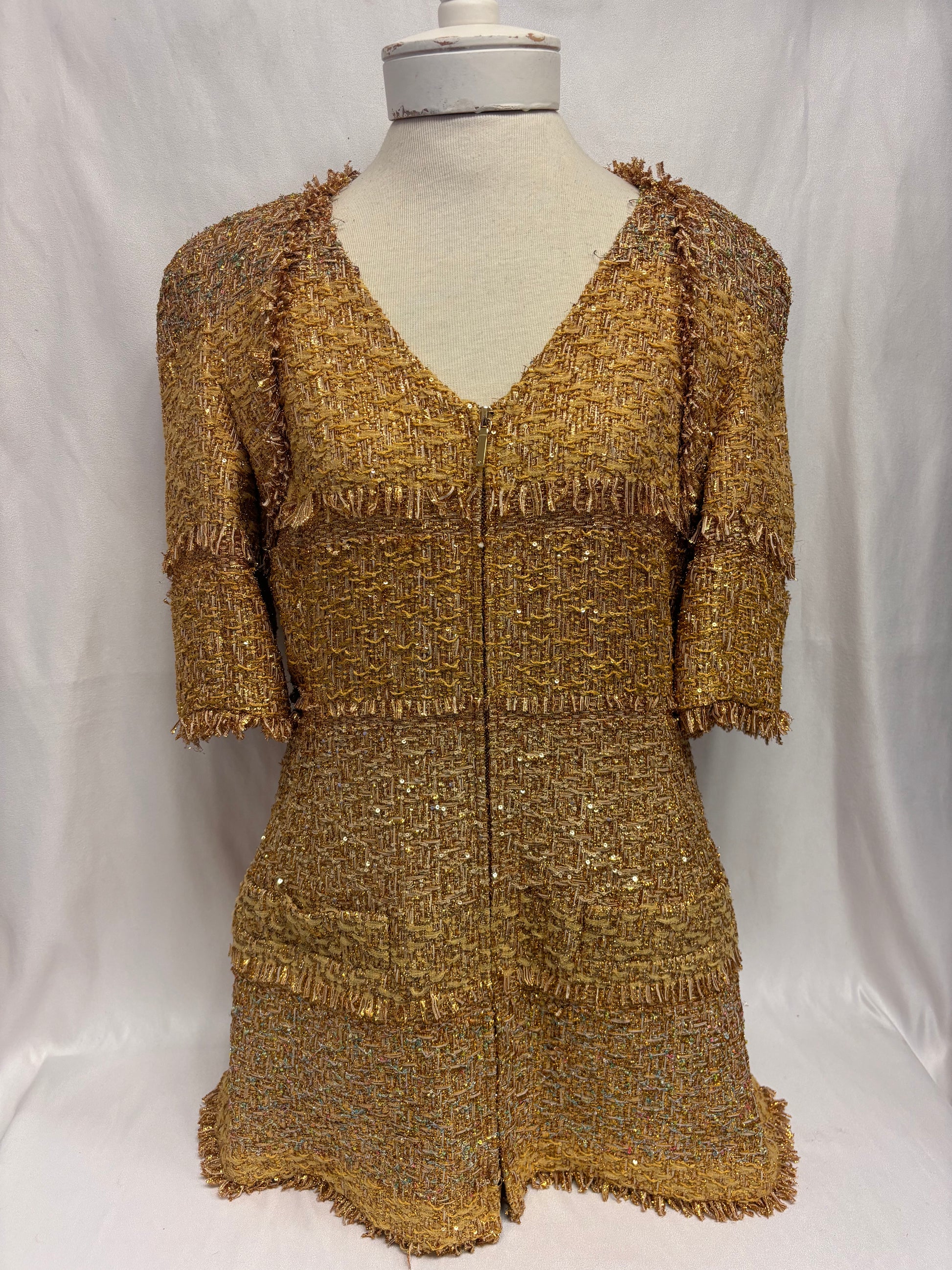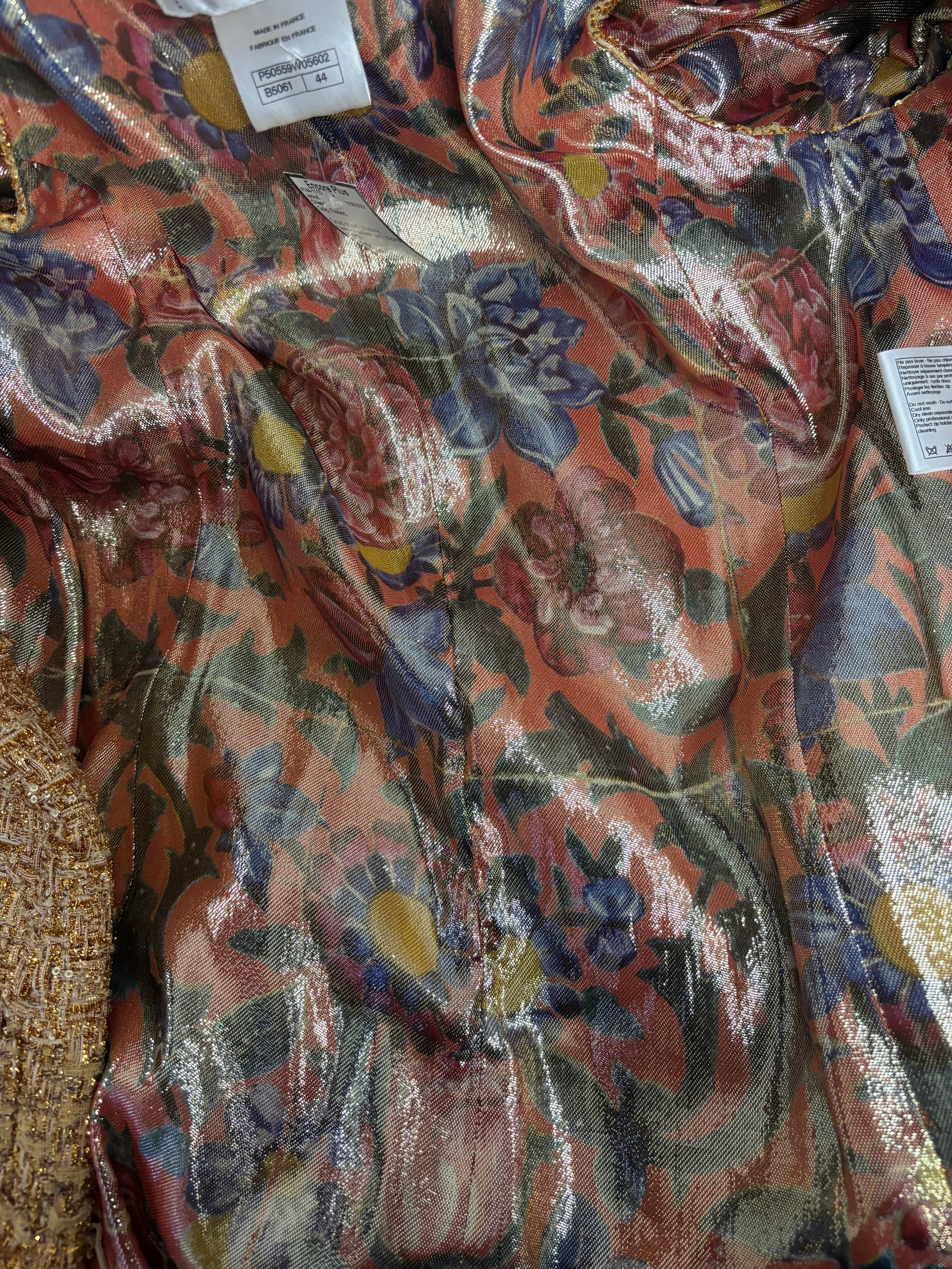 Chanel Gold Short Sleeve Tweed Jacket with Floral Lining Size 44