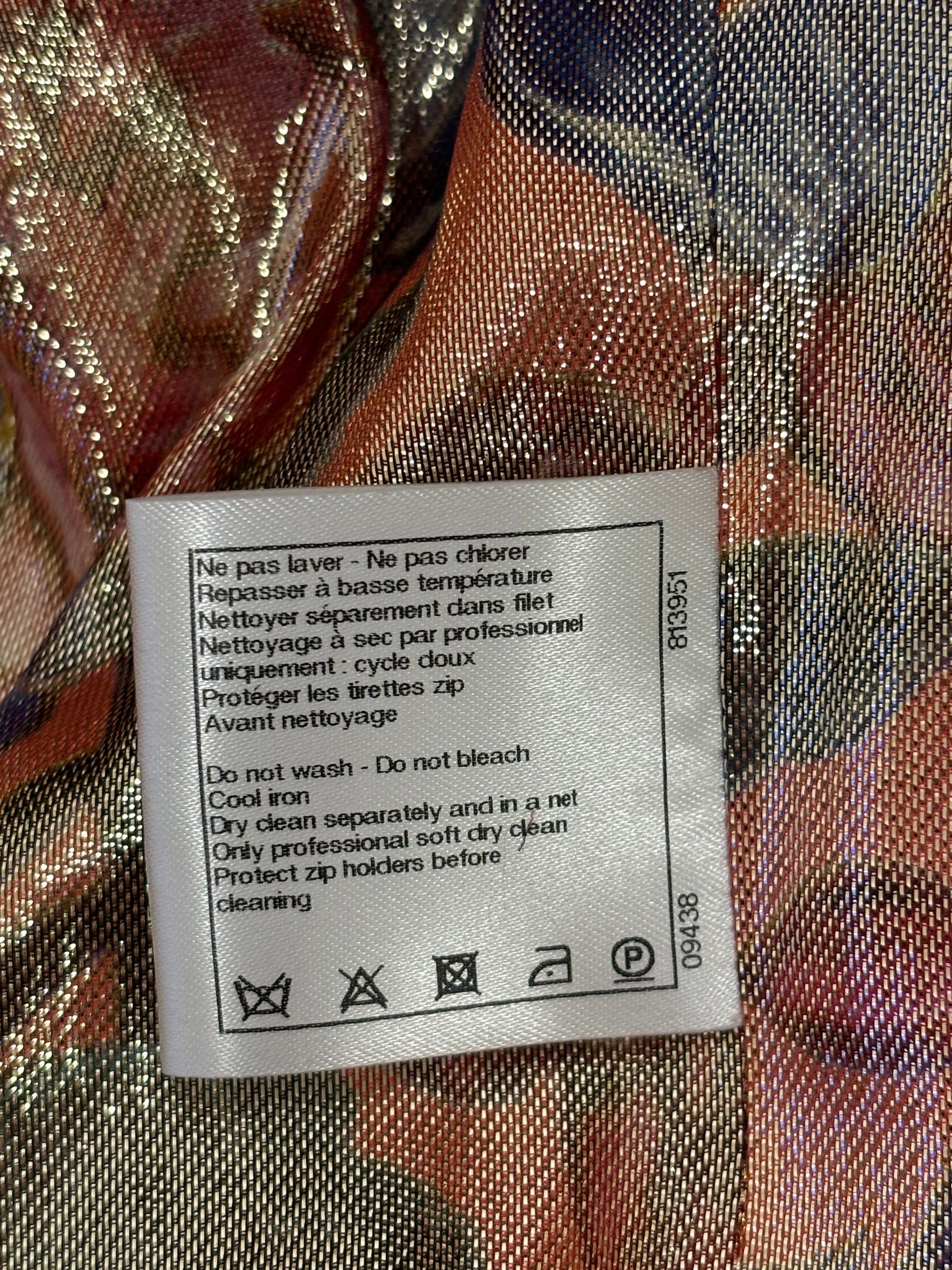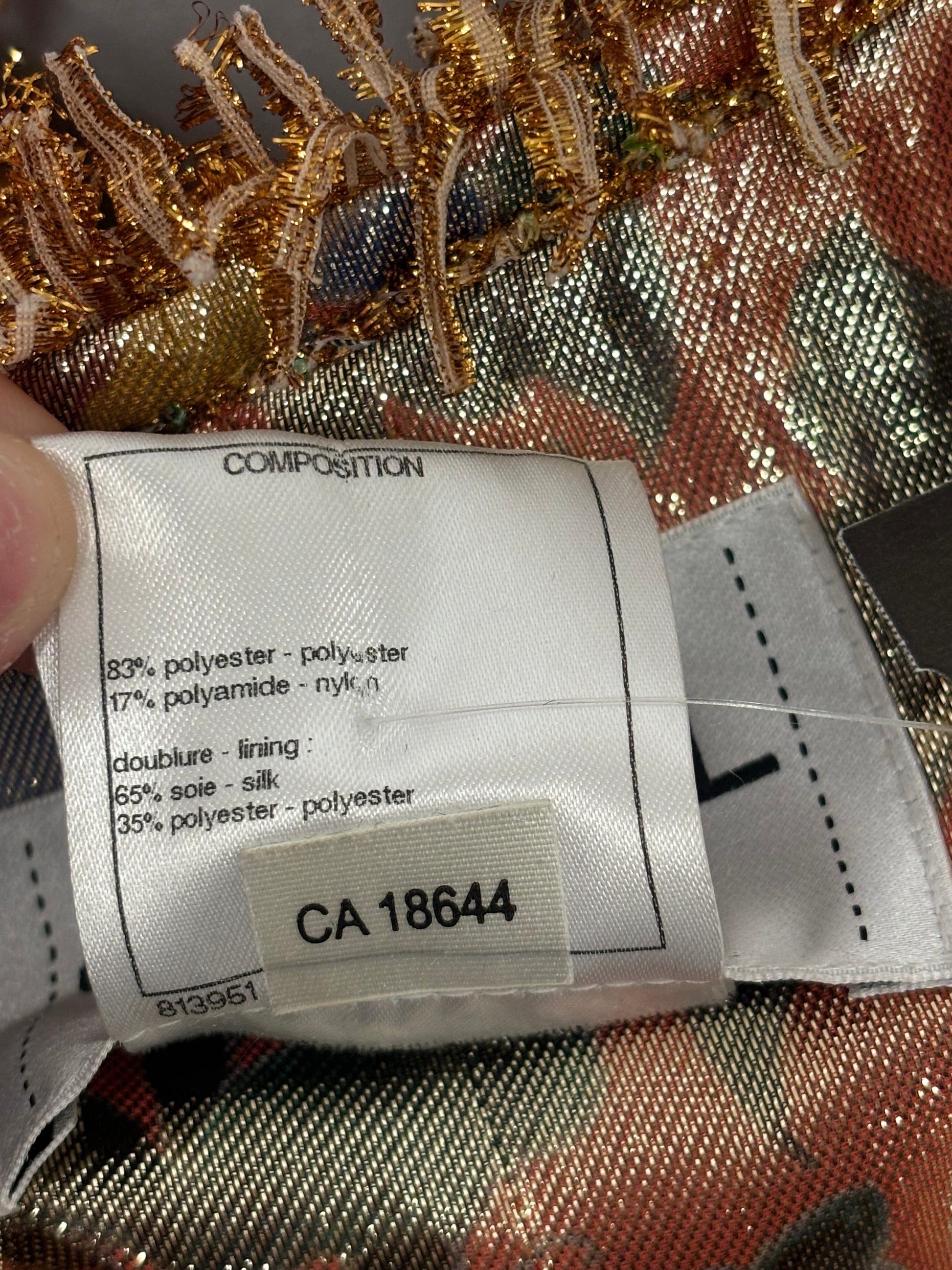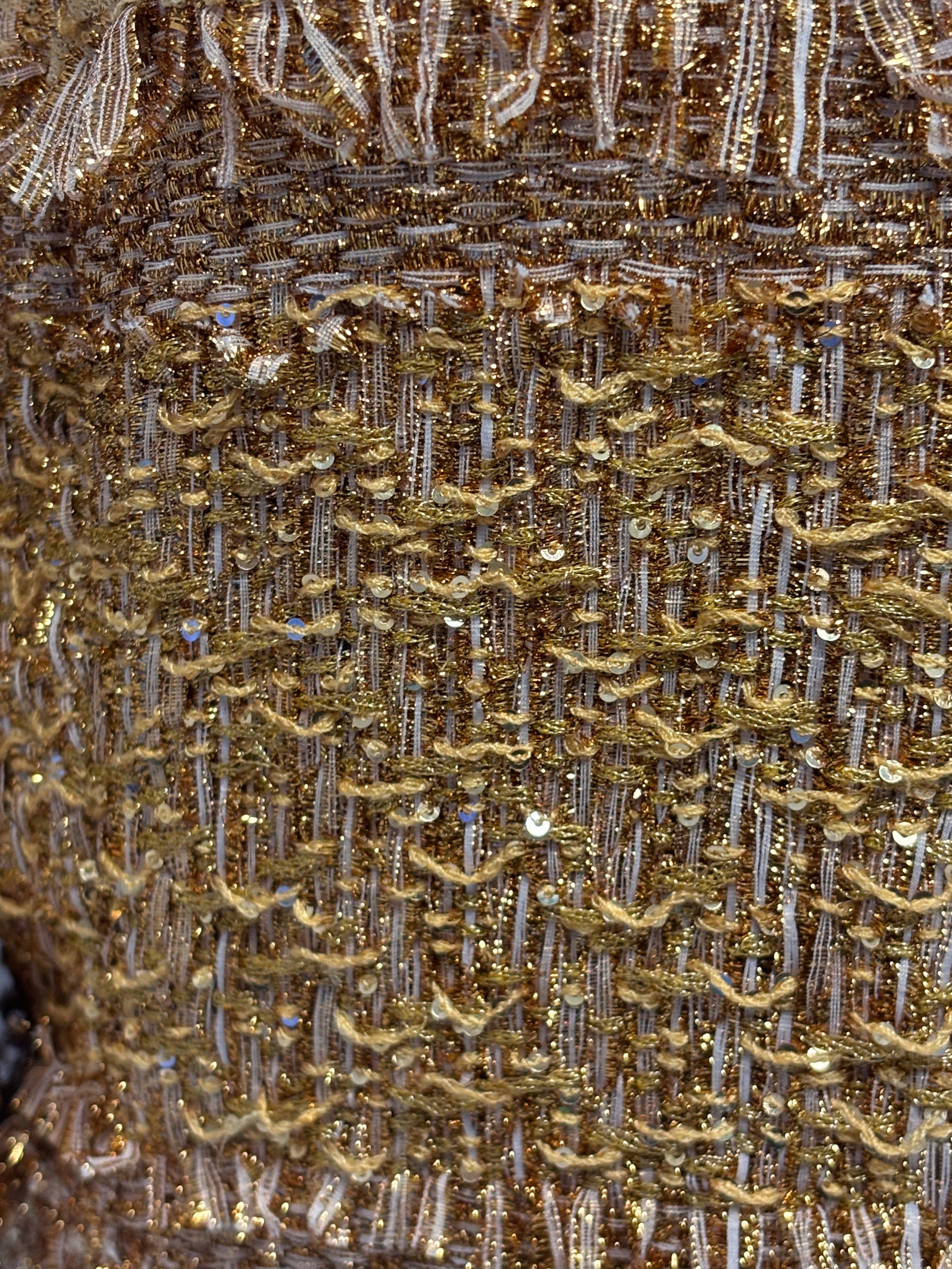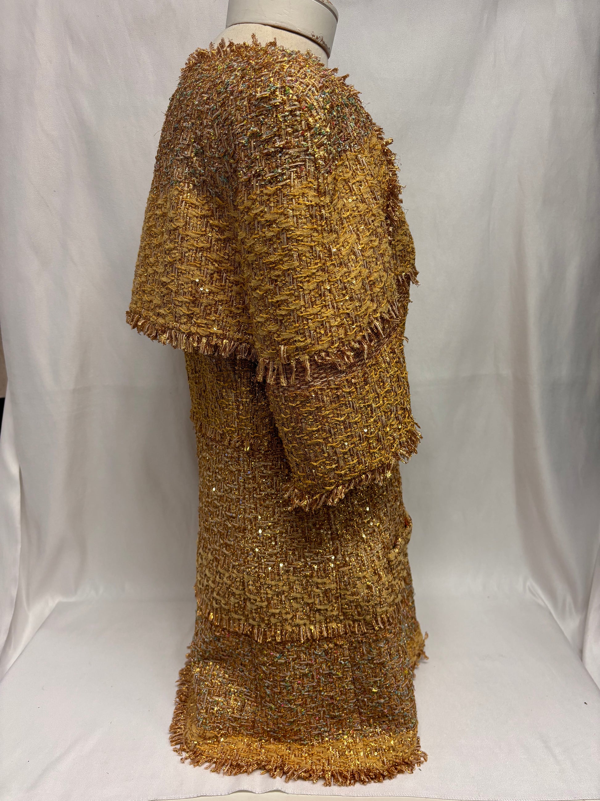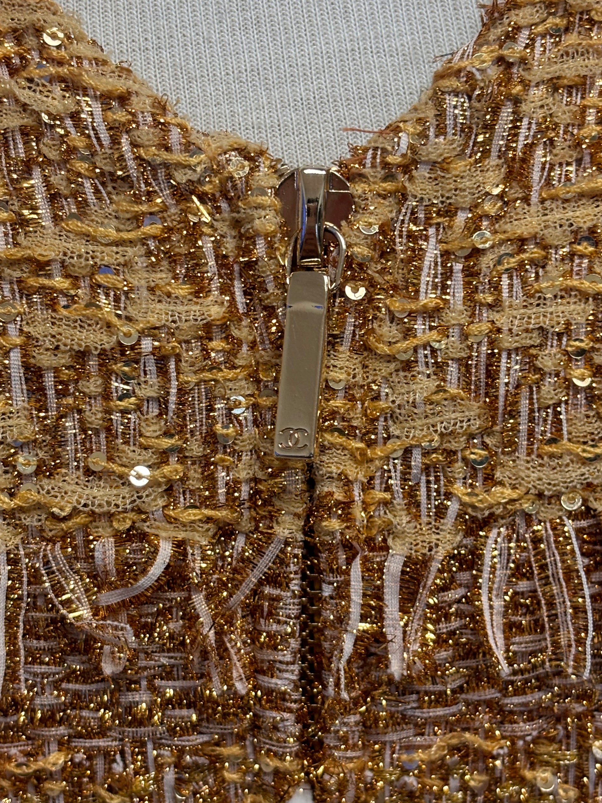 Chanel Gold Short Sleeve Tweed Jacket with Floral Lining Size 44