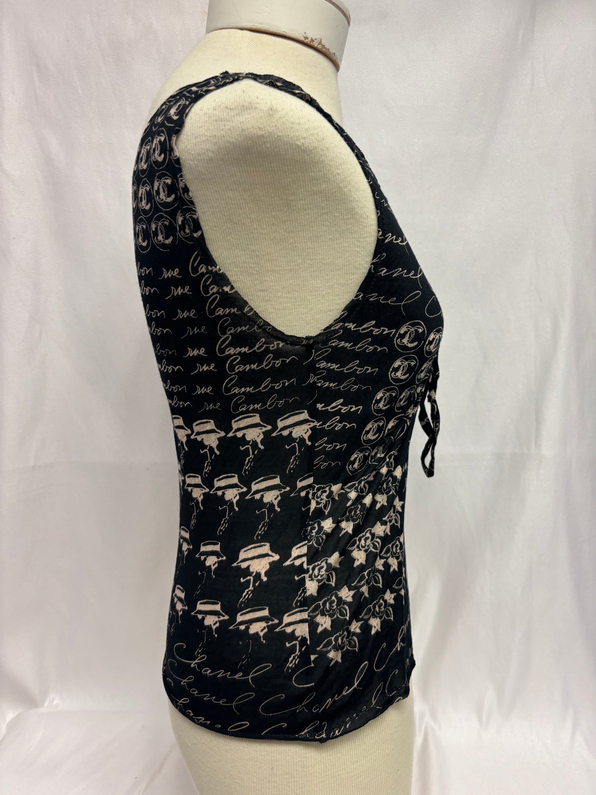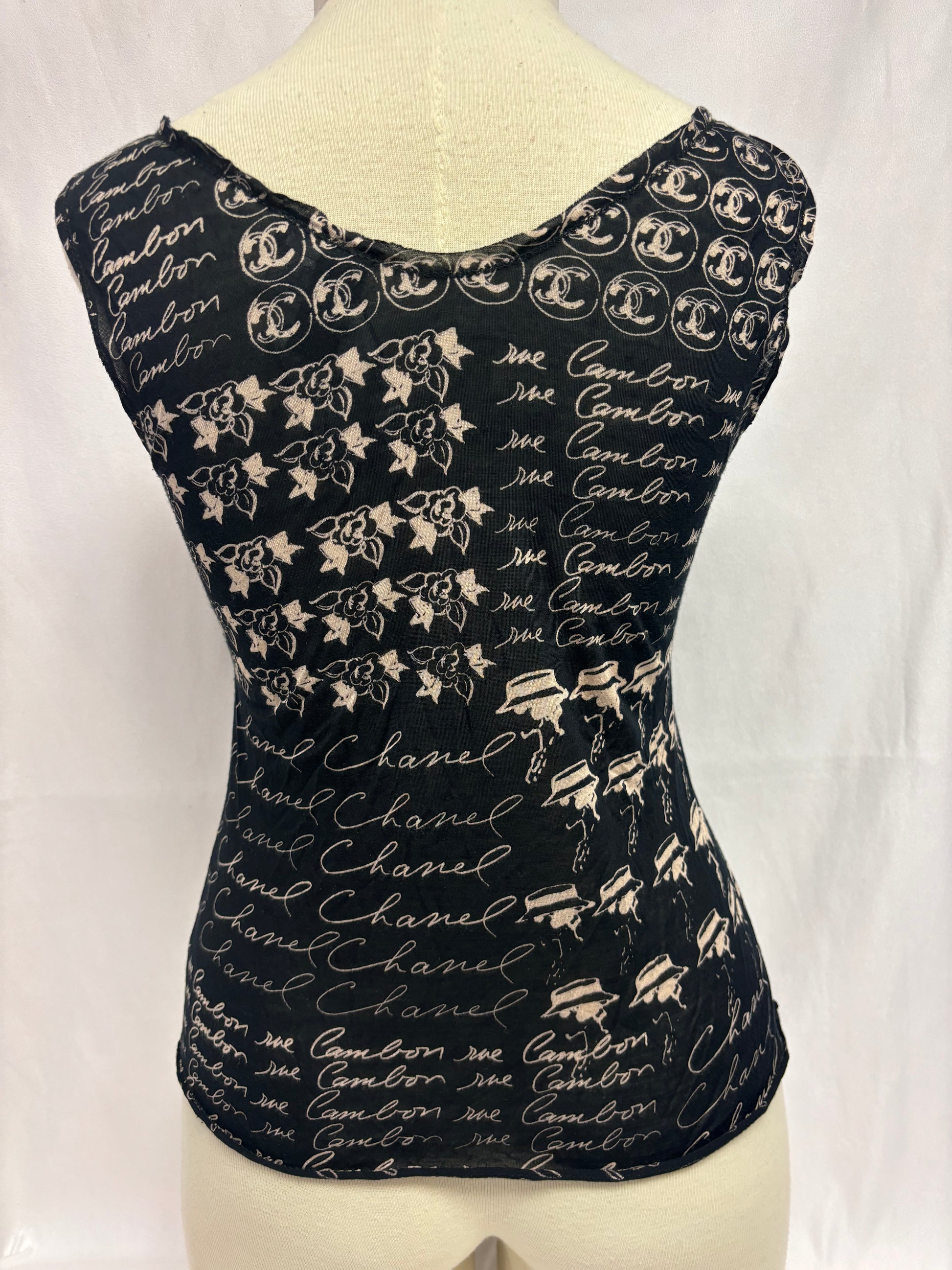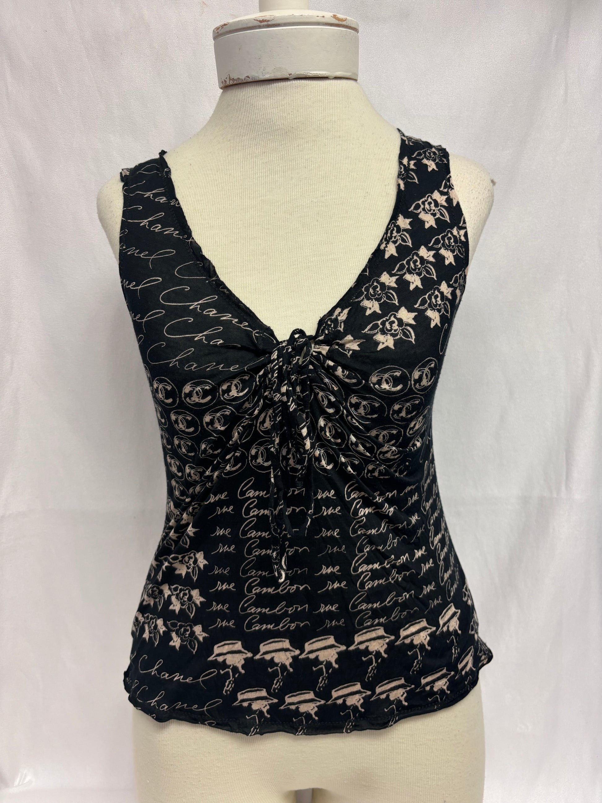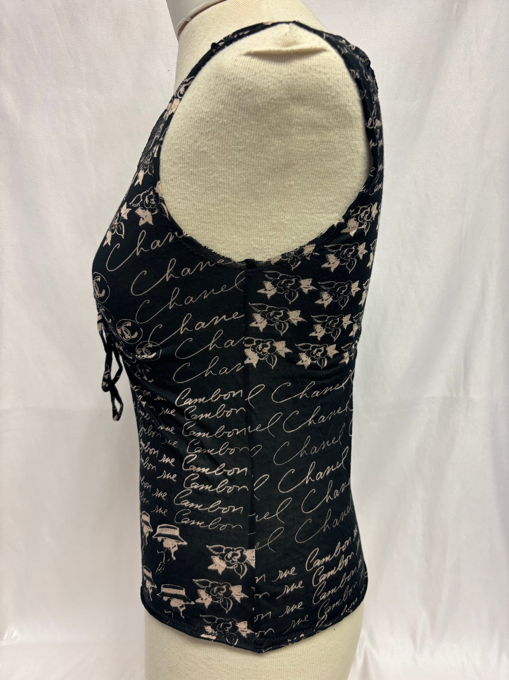 Chanel Black/Beige CC Logo Printed Tank Top Size 36