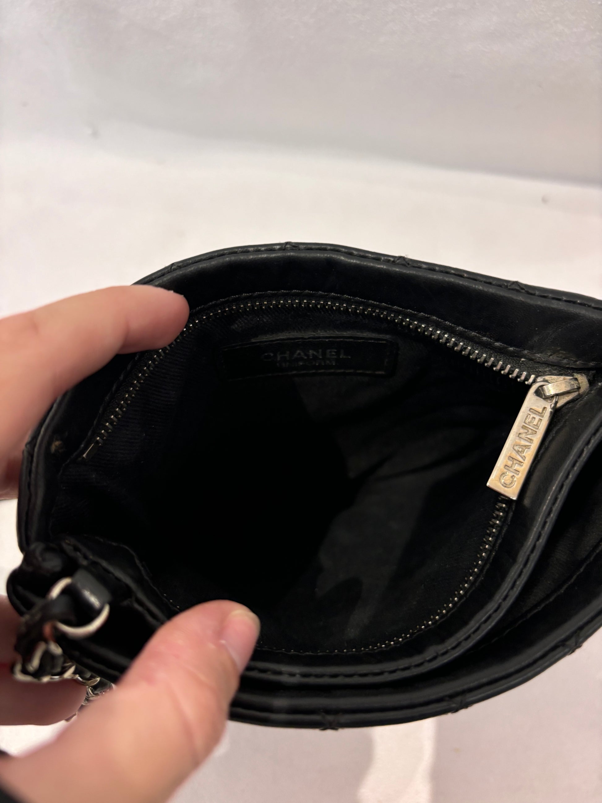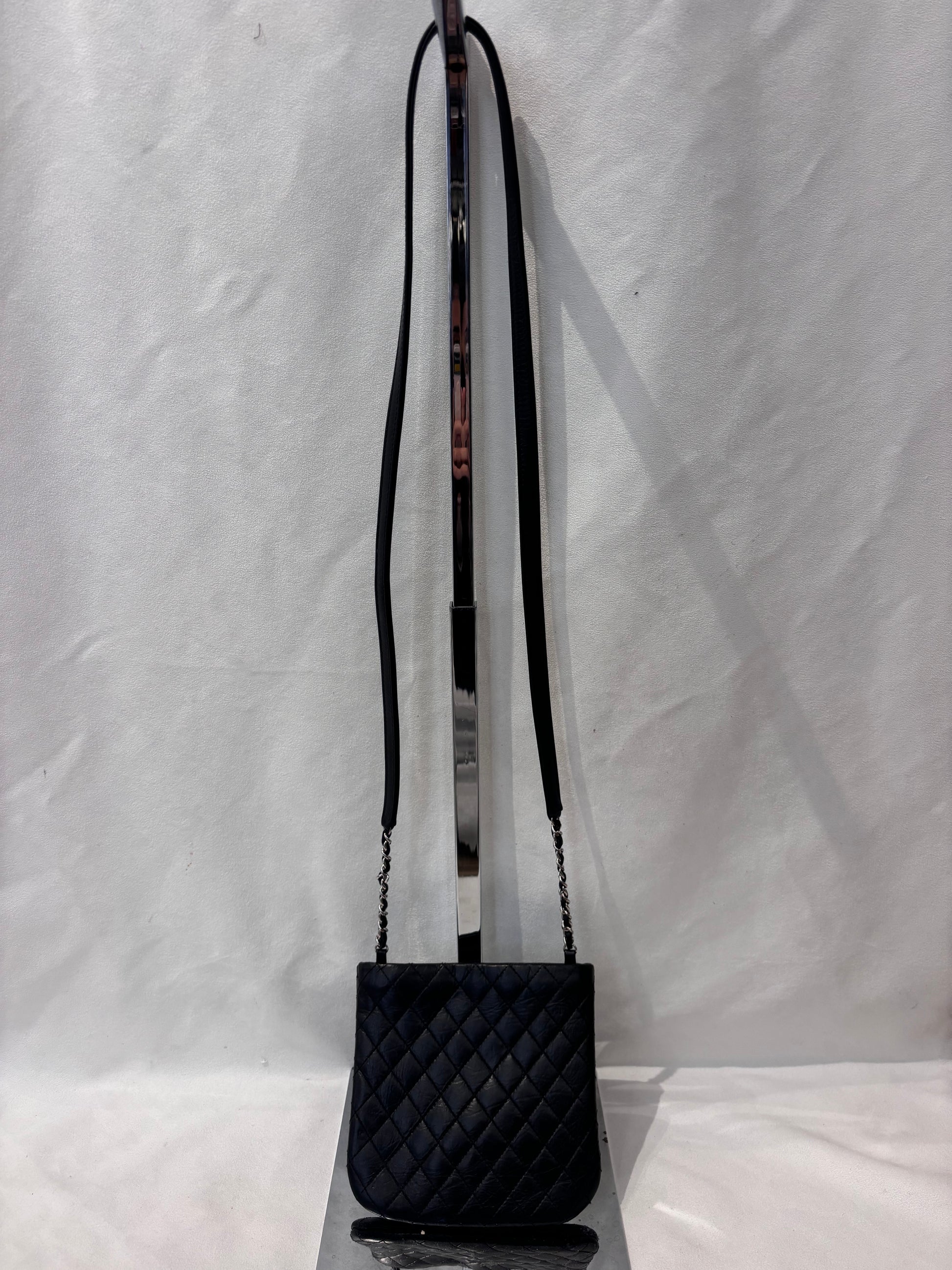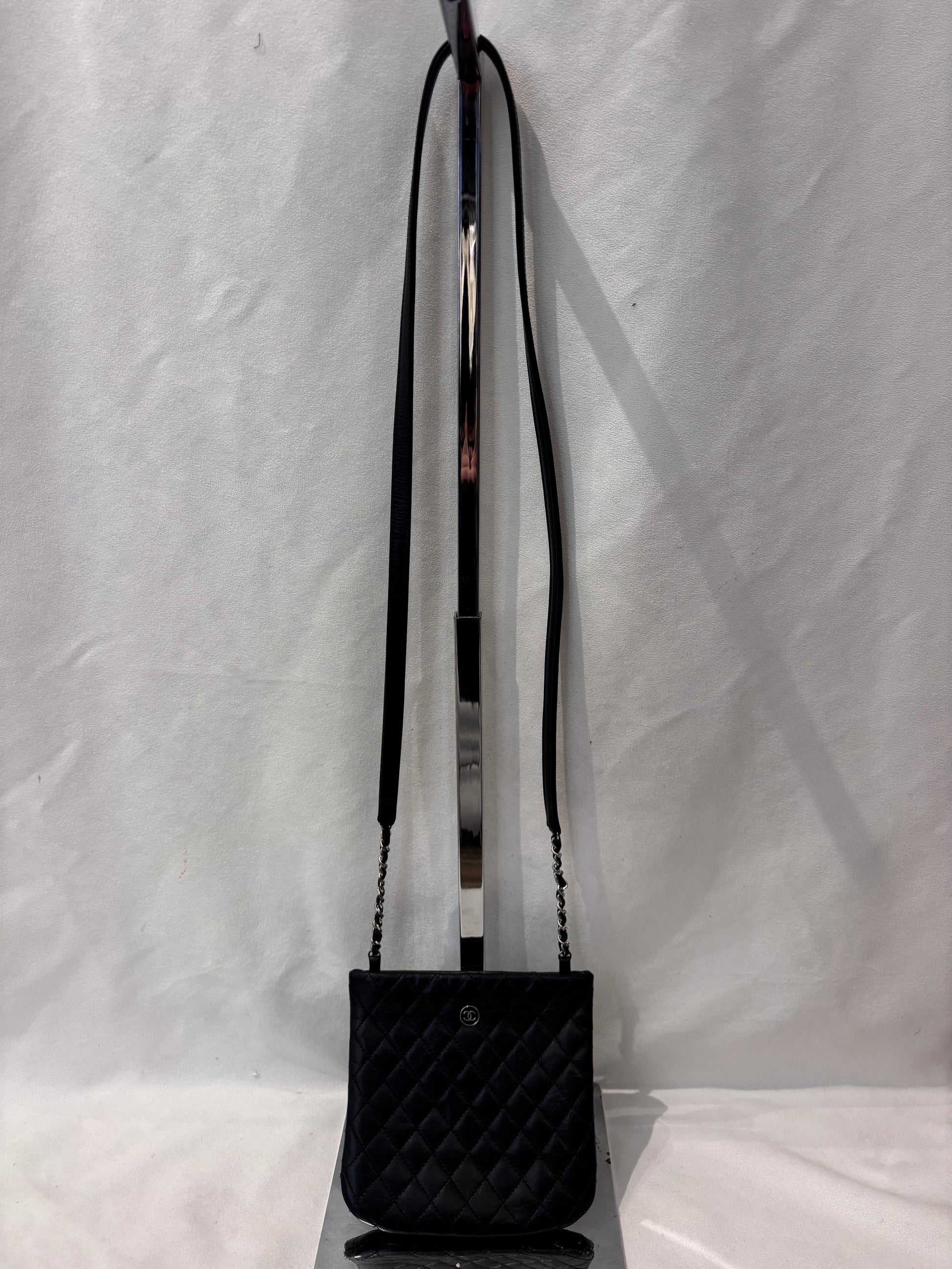 Chanel Black Diamond Stitched Cross Body Bag with Silver Hardware