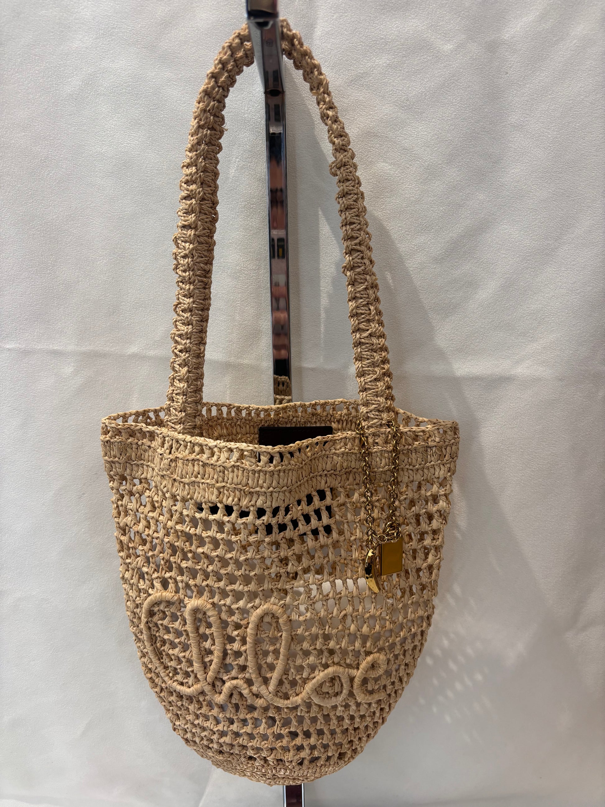 Chloe Natural Raffia Small Banana Tote