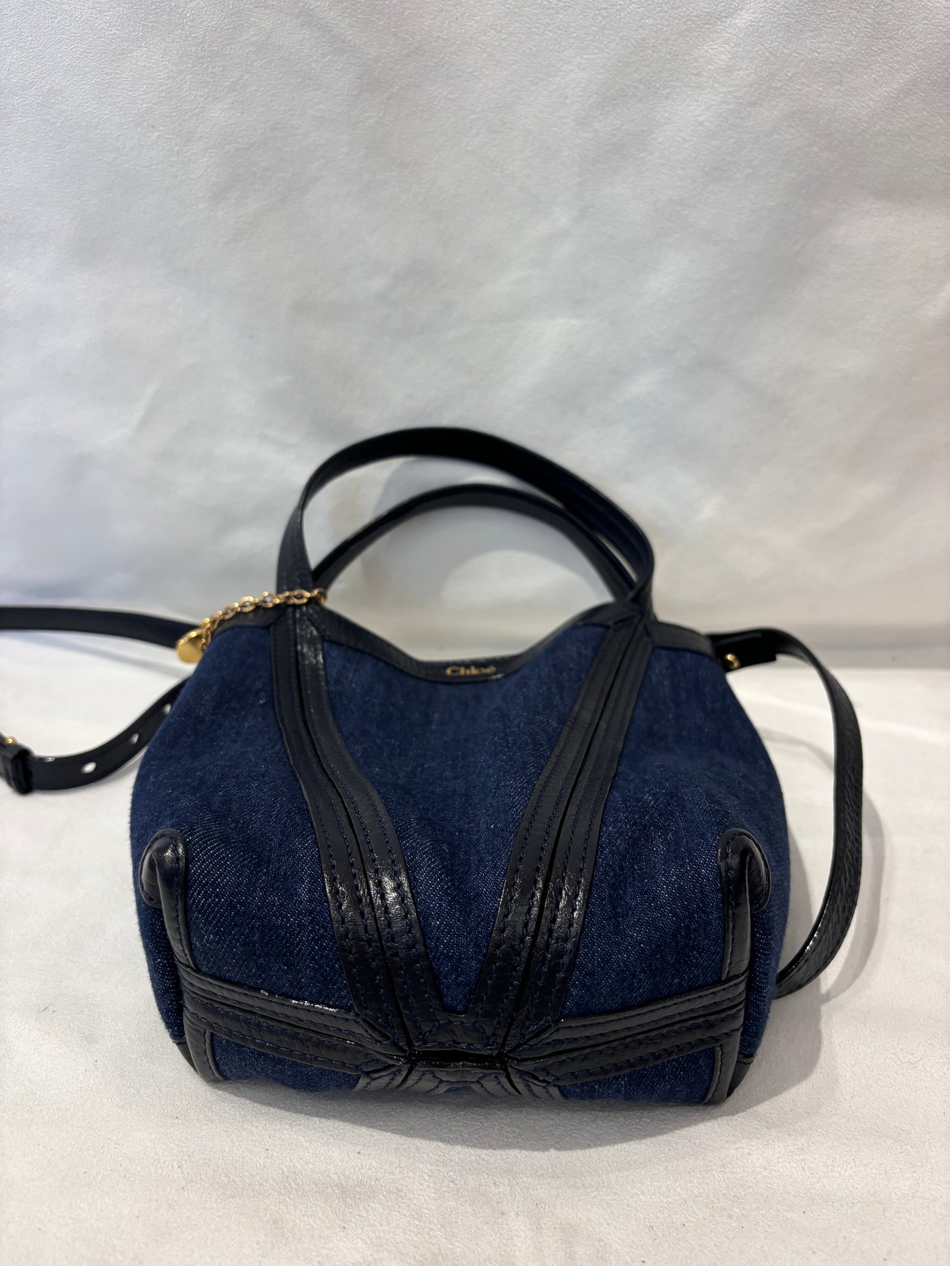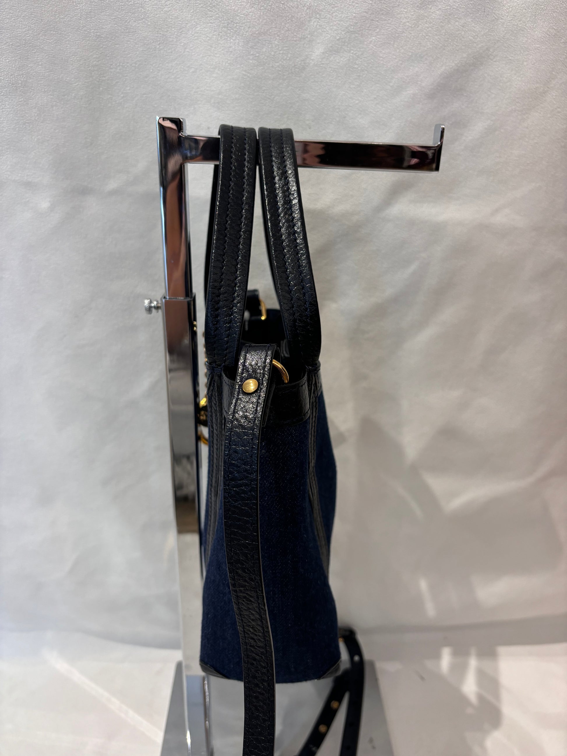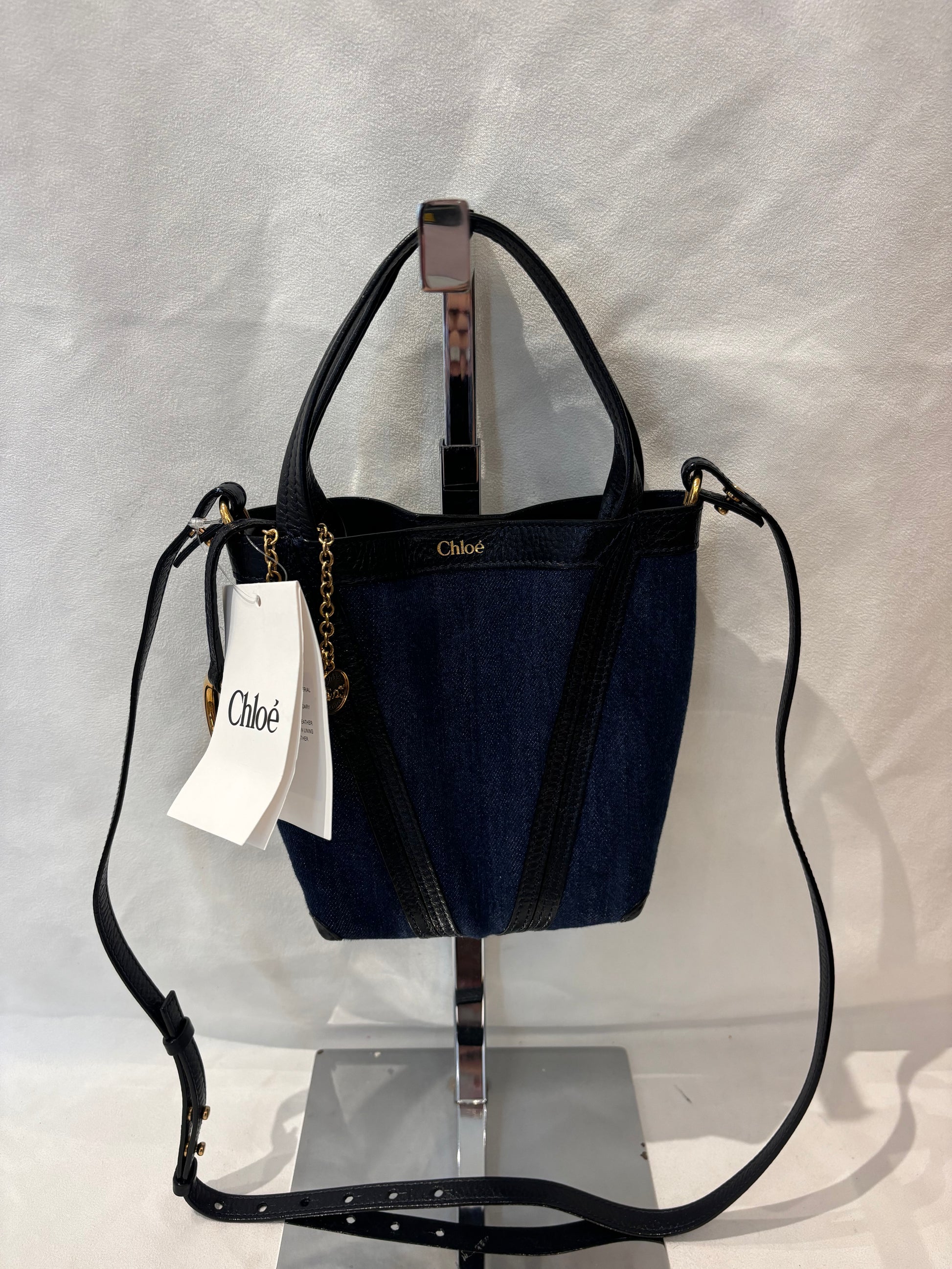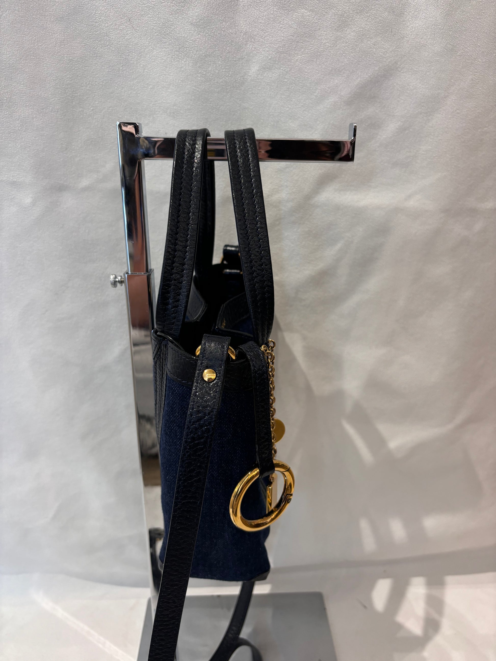 Chloe Navy Demim Tote with Black Leather Trim