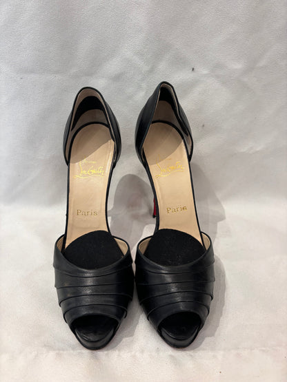 Christian Louboutin Black Pleated Leather Peep Toe Platform Pump Size 40