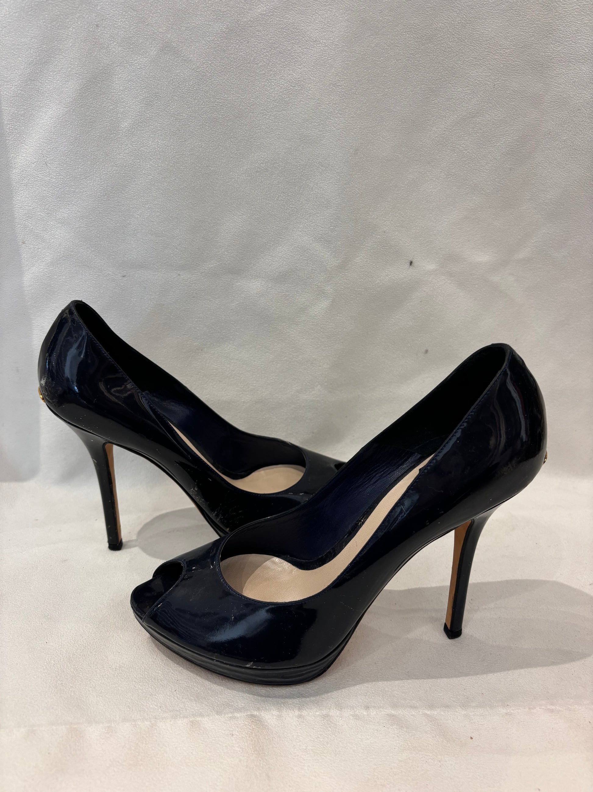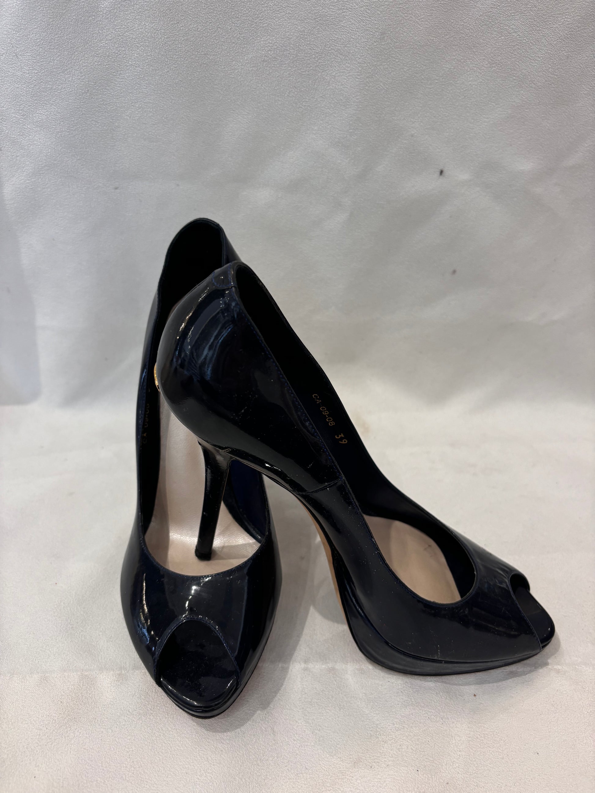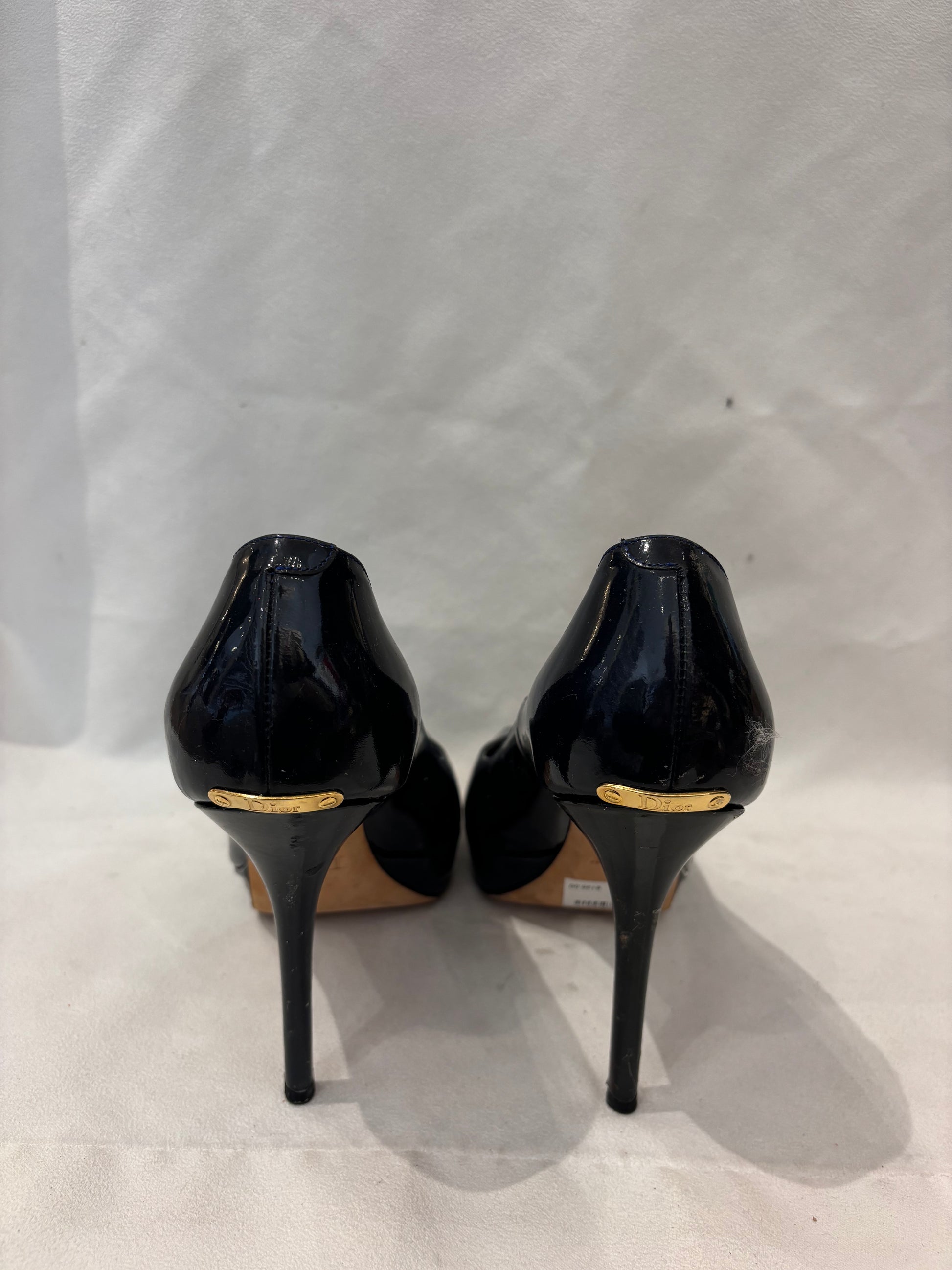 Dior Navy Peep Toe Patent Leather Pump Size 39