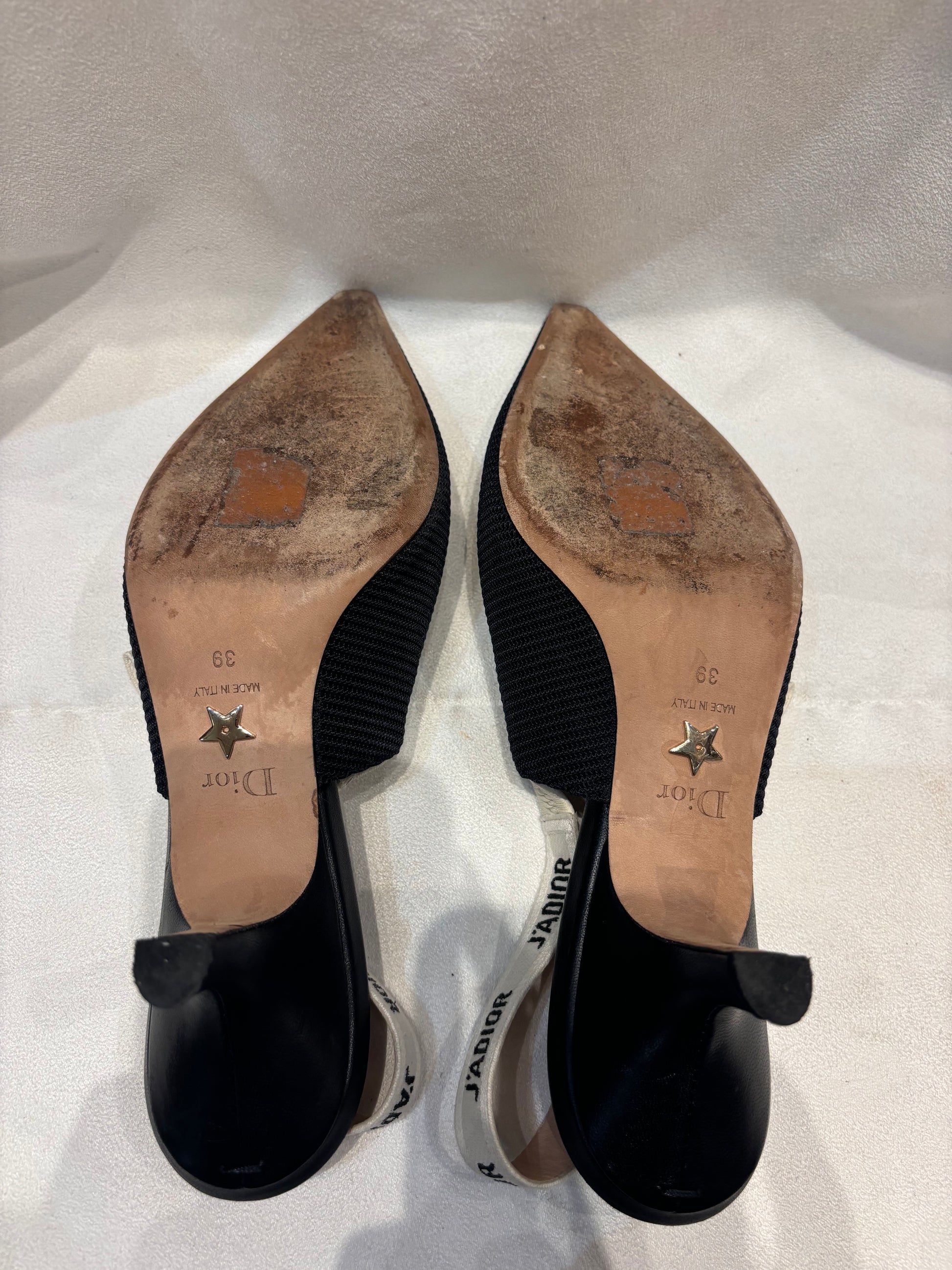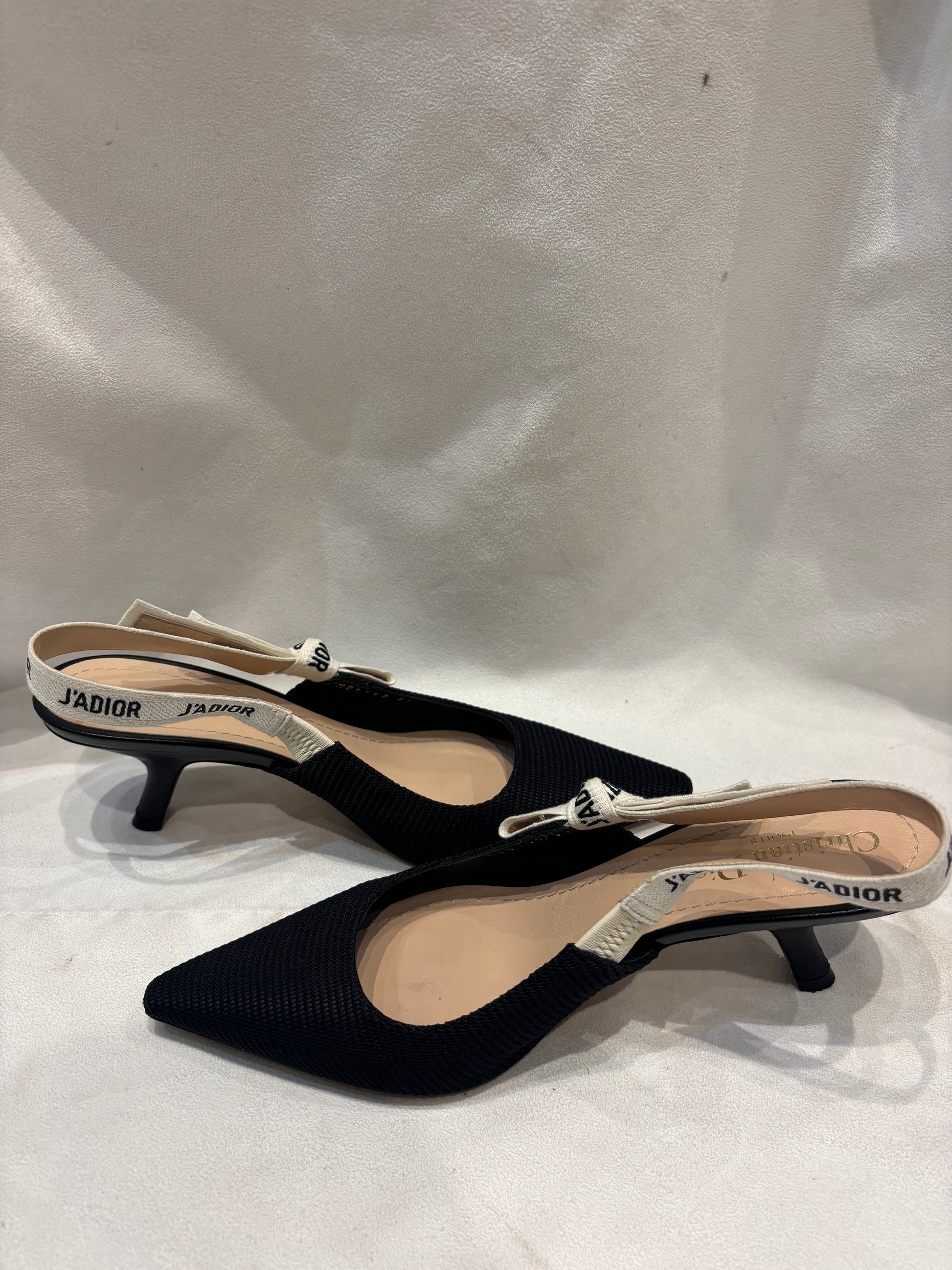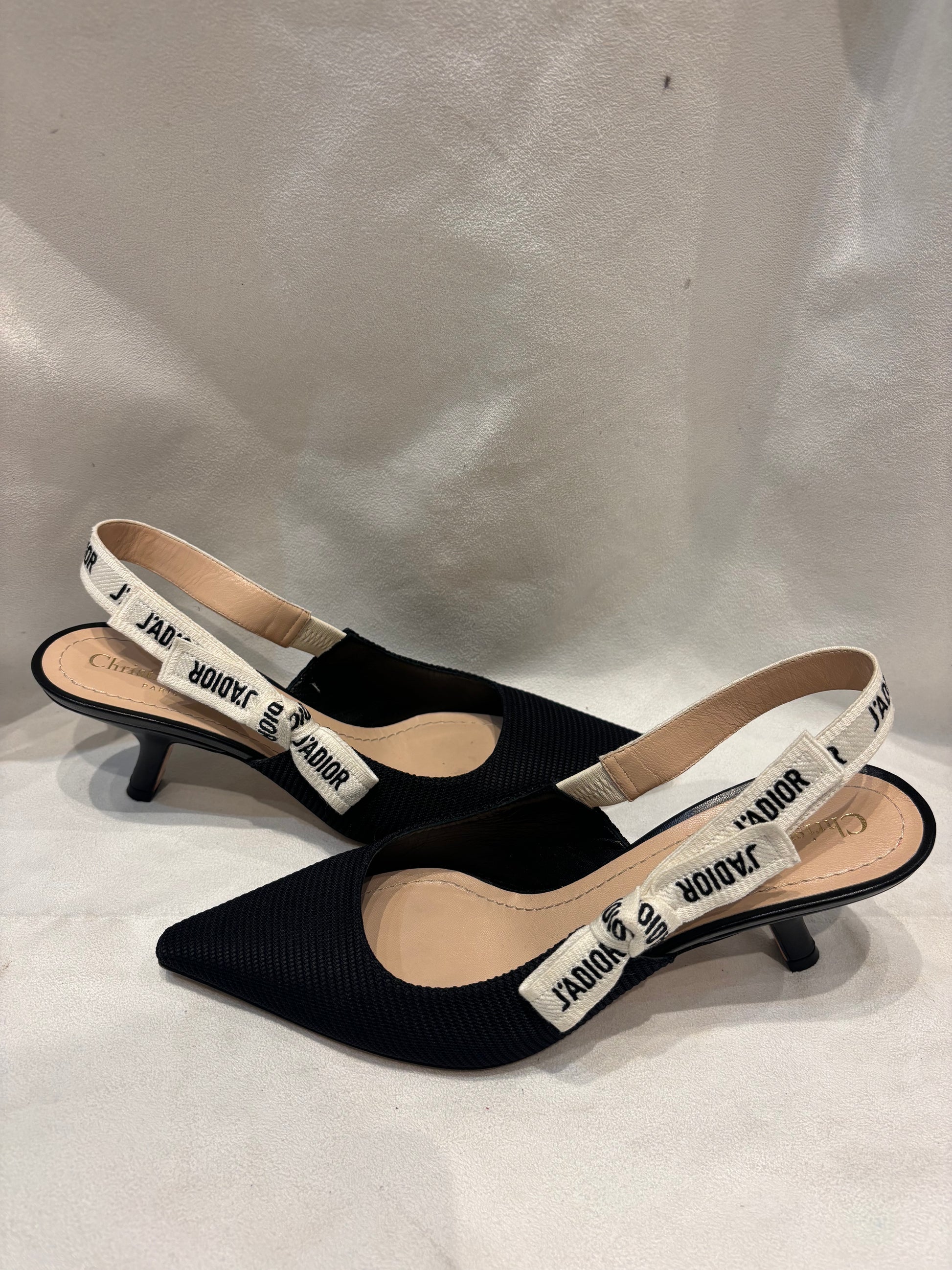 Dior Black Technical Fabric J’Adior Slingback Kitten Heel Size 39