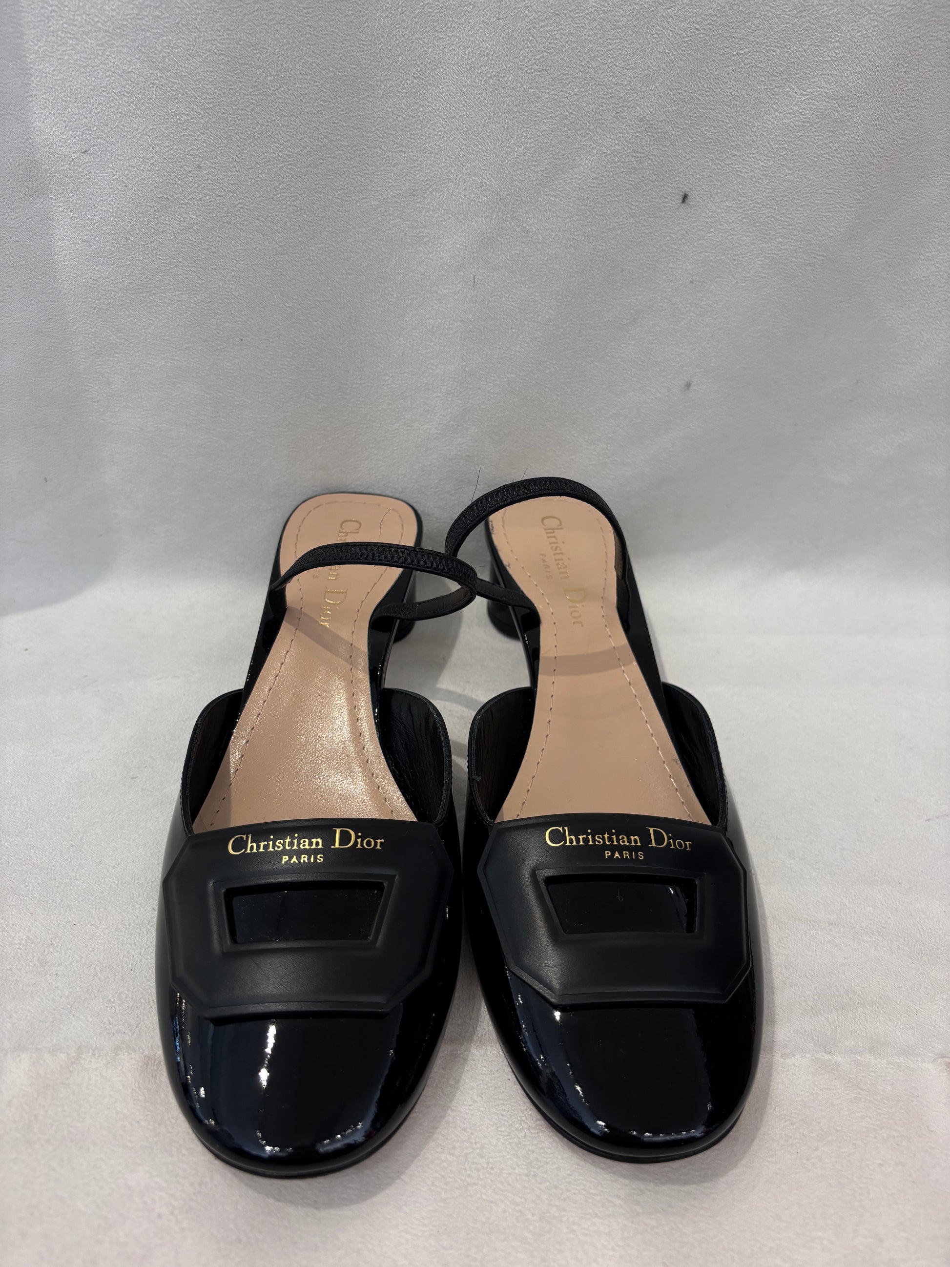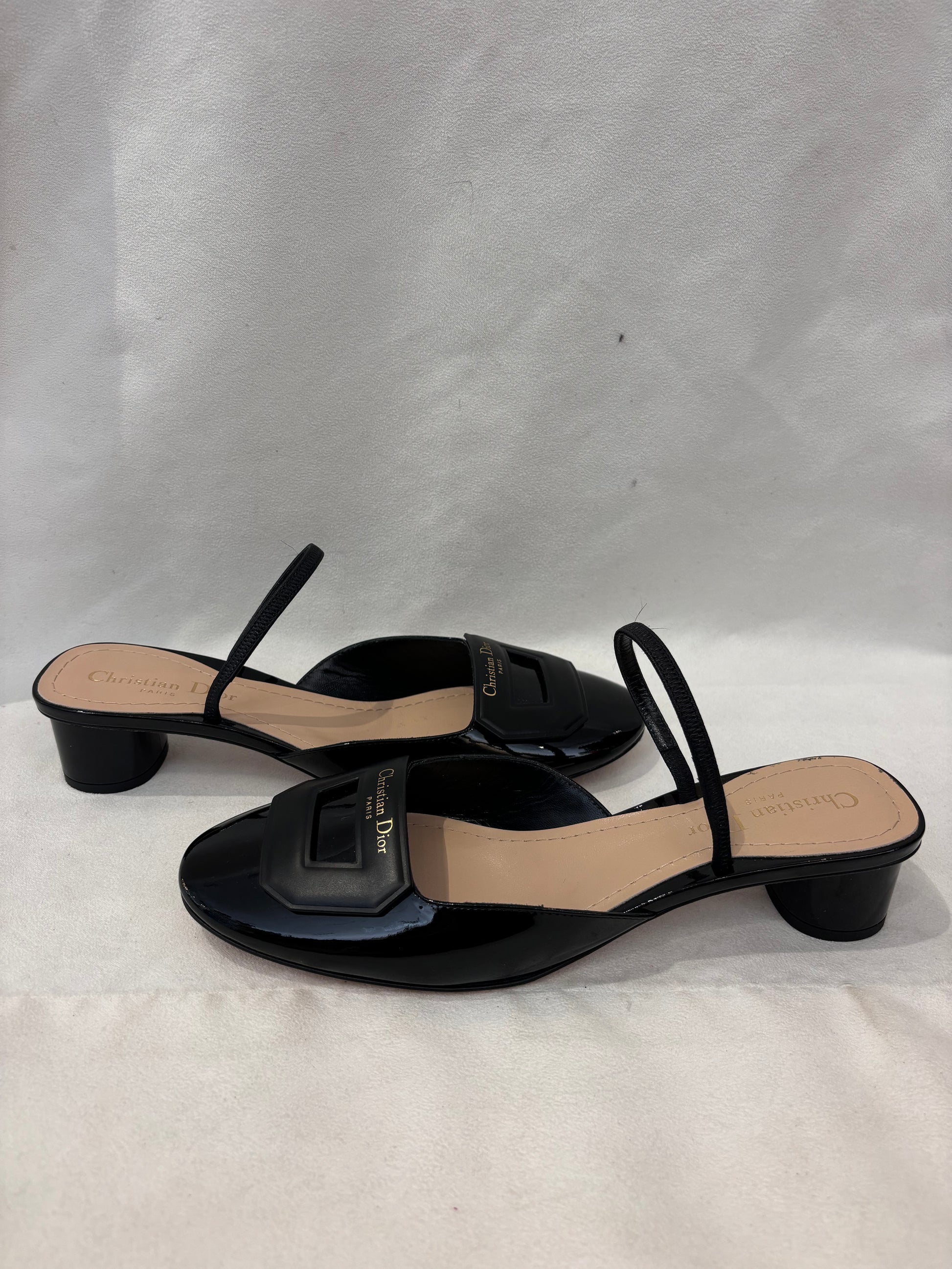 Dior Black Patent Leather Slingback Pump Size 39.5