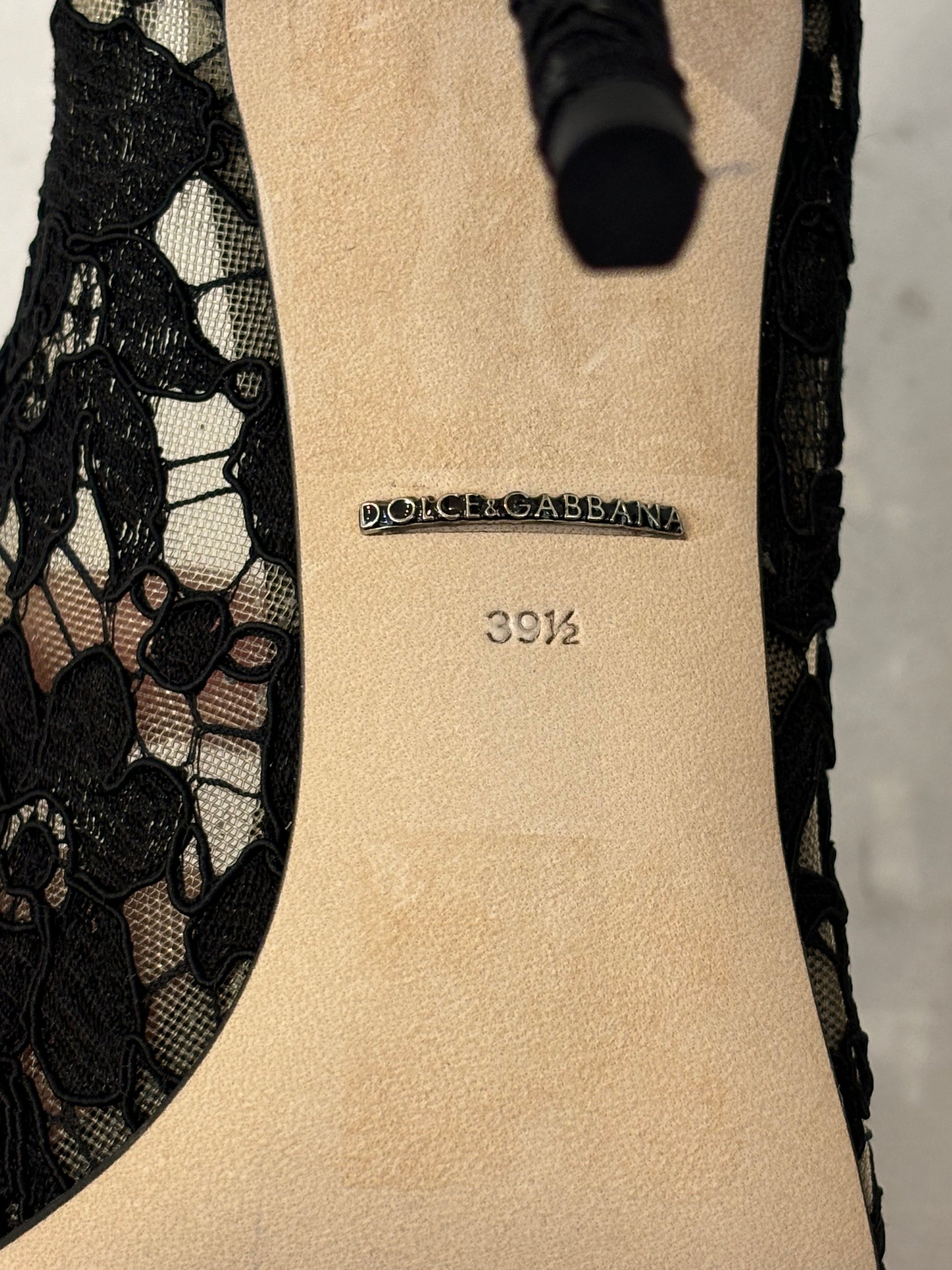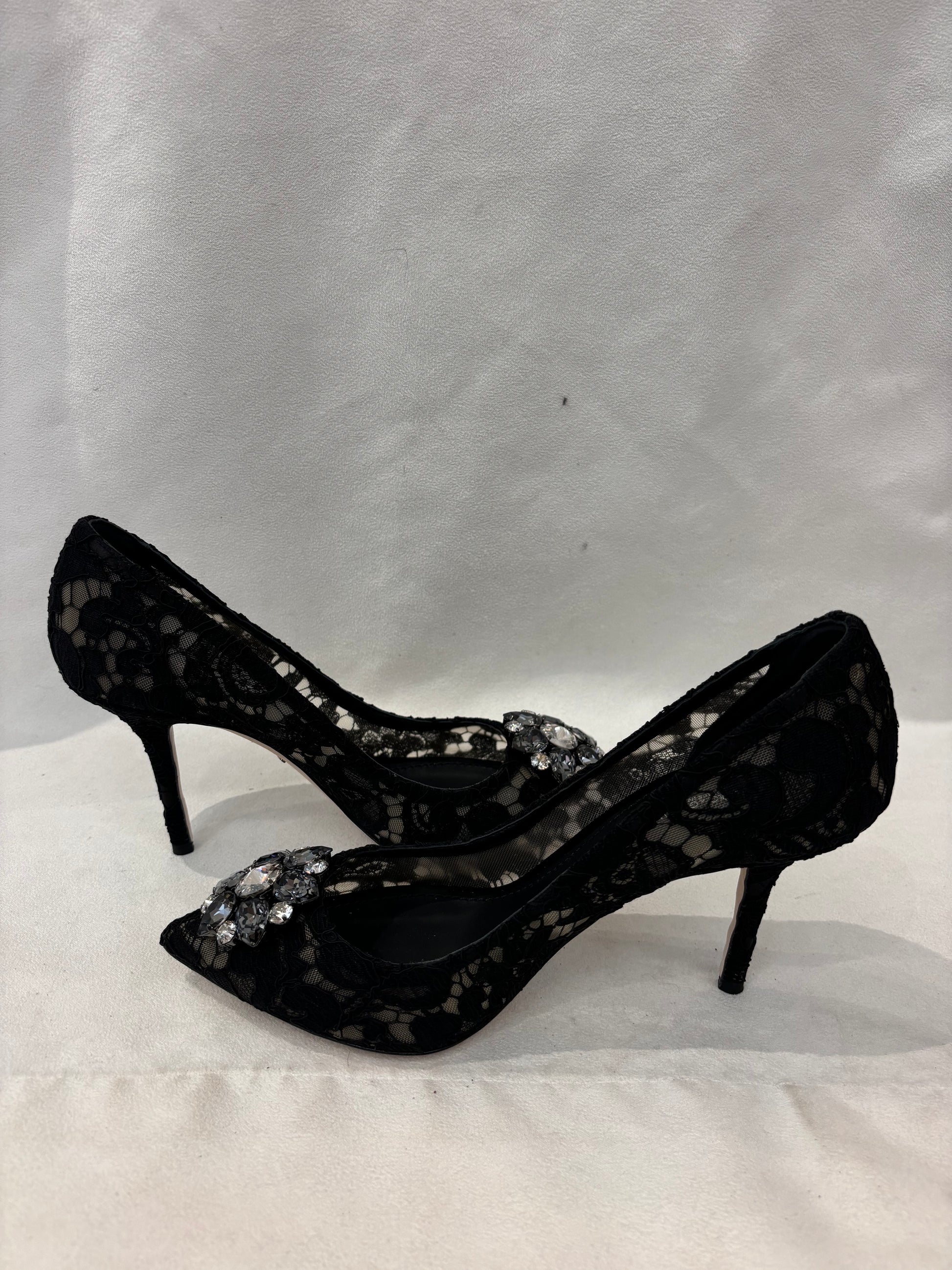Dolce & Gabbana Black Taormina Lace Pump with Crystal Detail Size 39.5