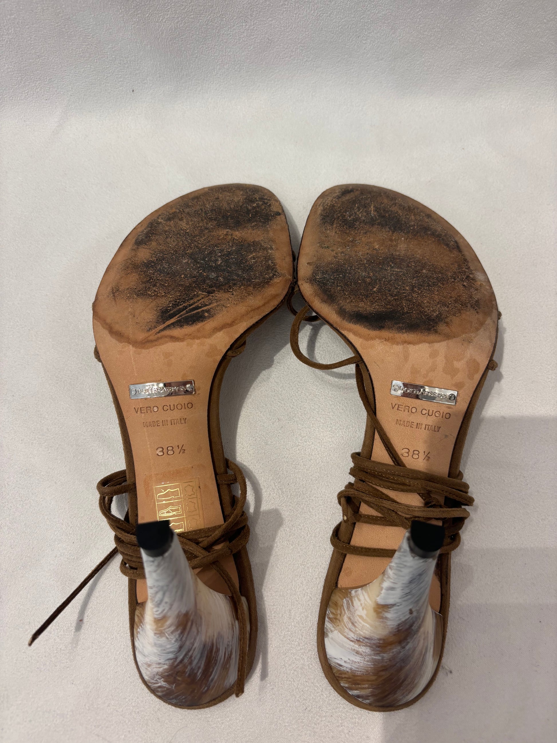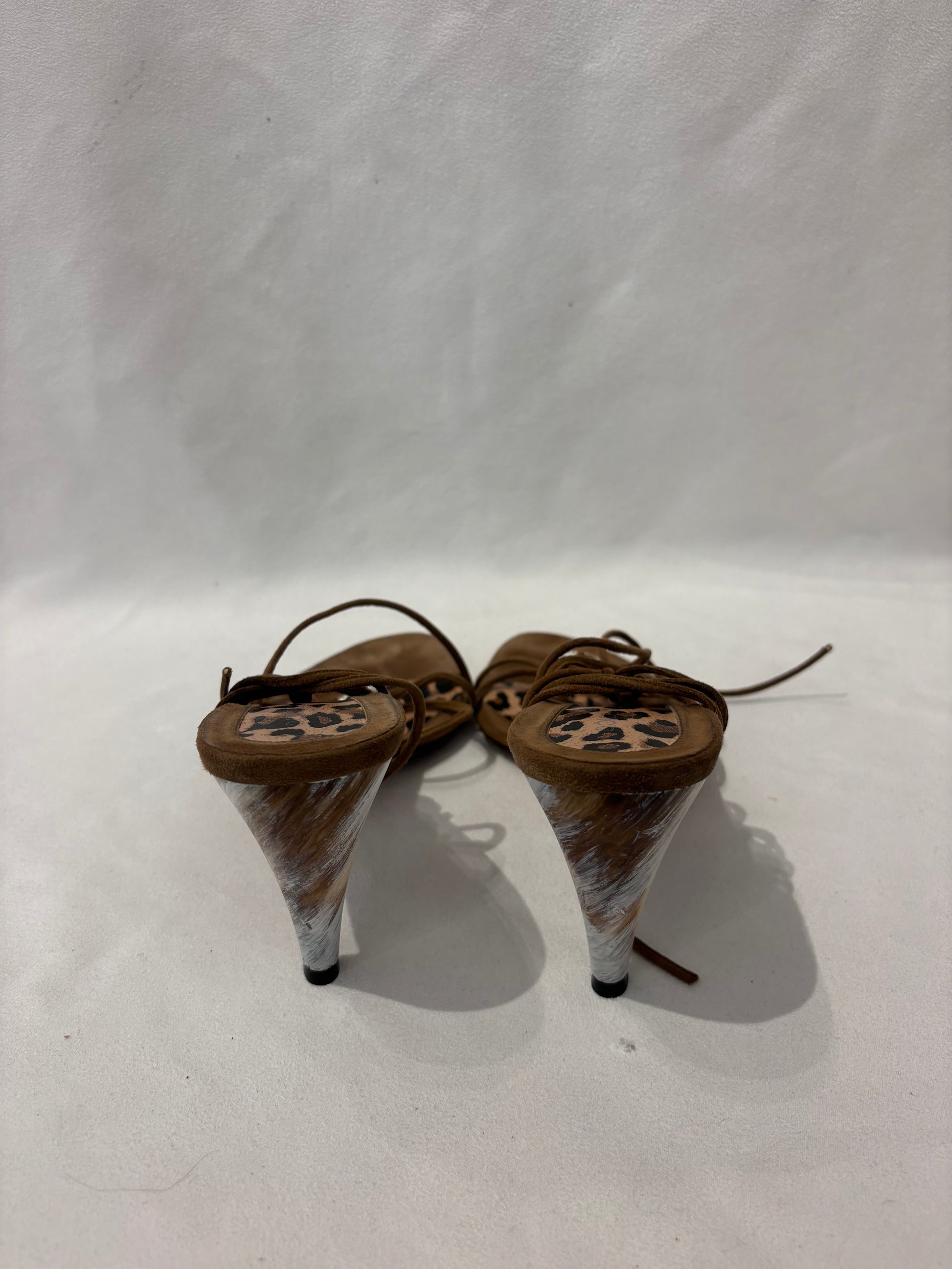 Dolce & Gabbana Brown Strappy Sandals with Painted Heel Size 38.5